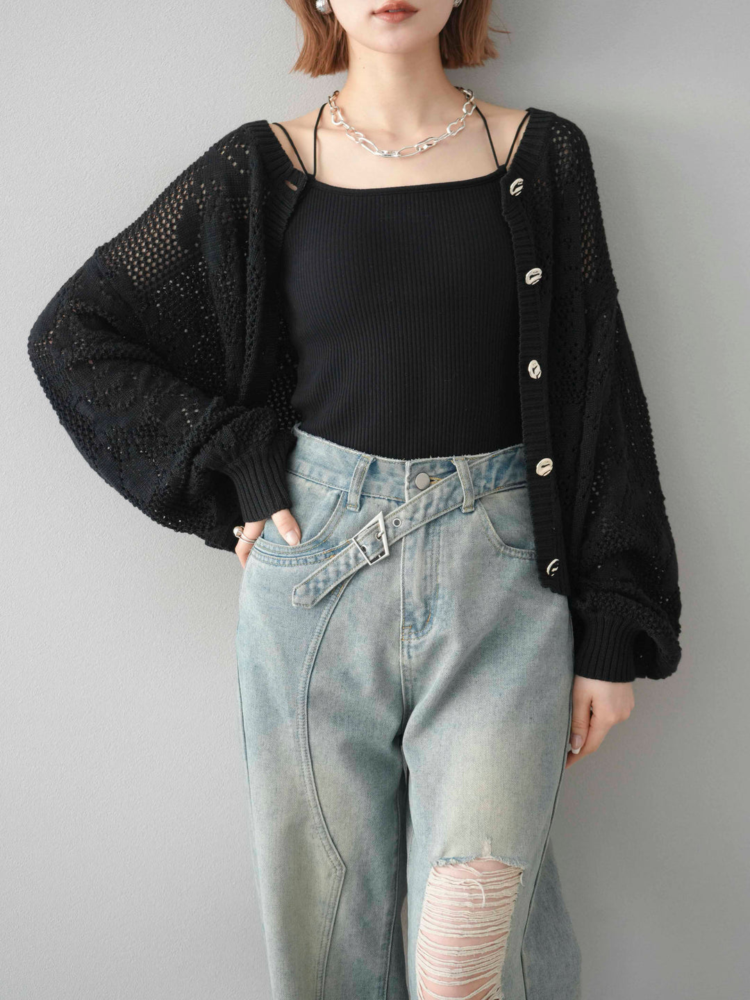 [予約]ポコポコ編みオフショルニットプルオーバー/black