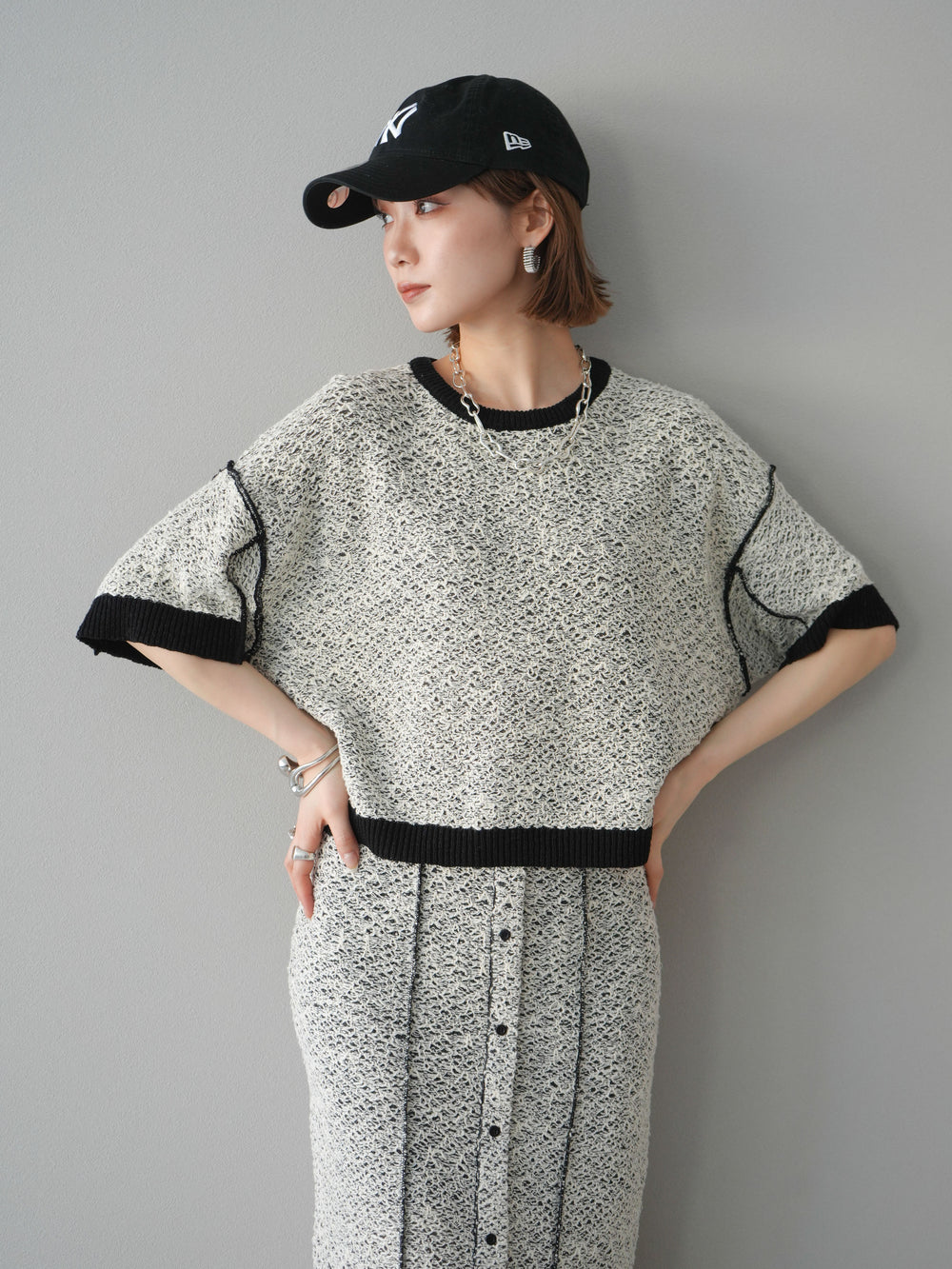 [予約]ポコポコ編みオフショルニットプルオーバー/gray