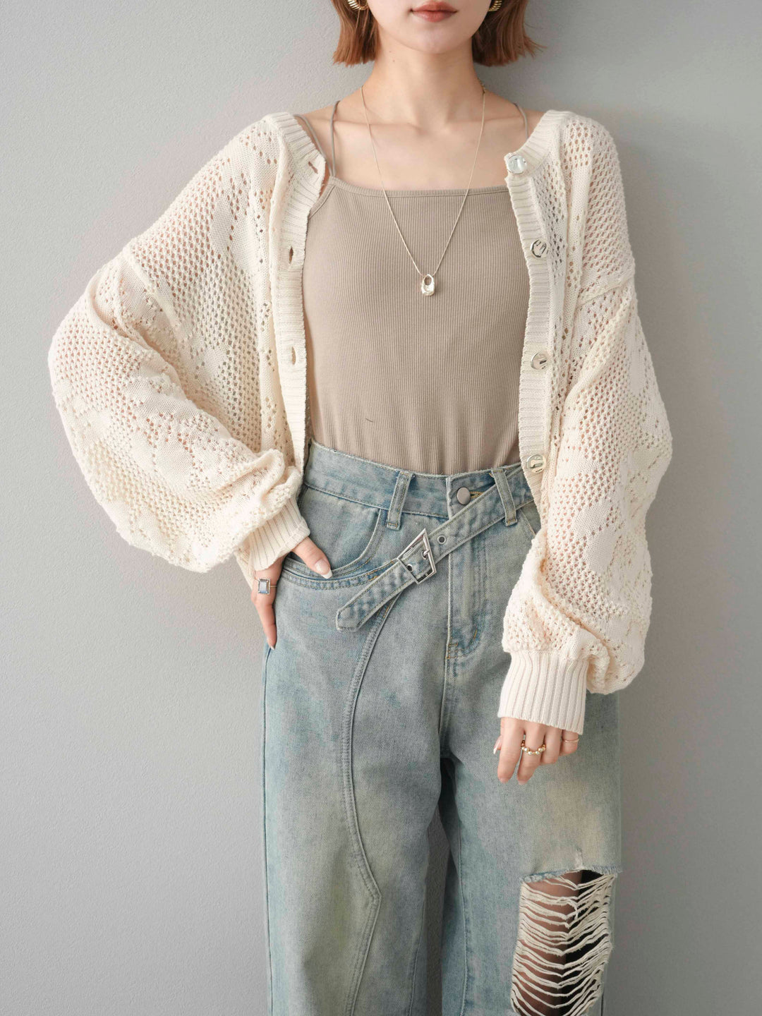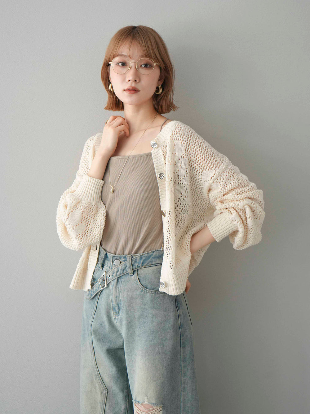 [予約]ハイネックデザインボタンニットカーディガン/ivory