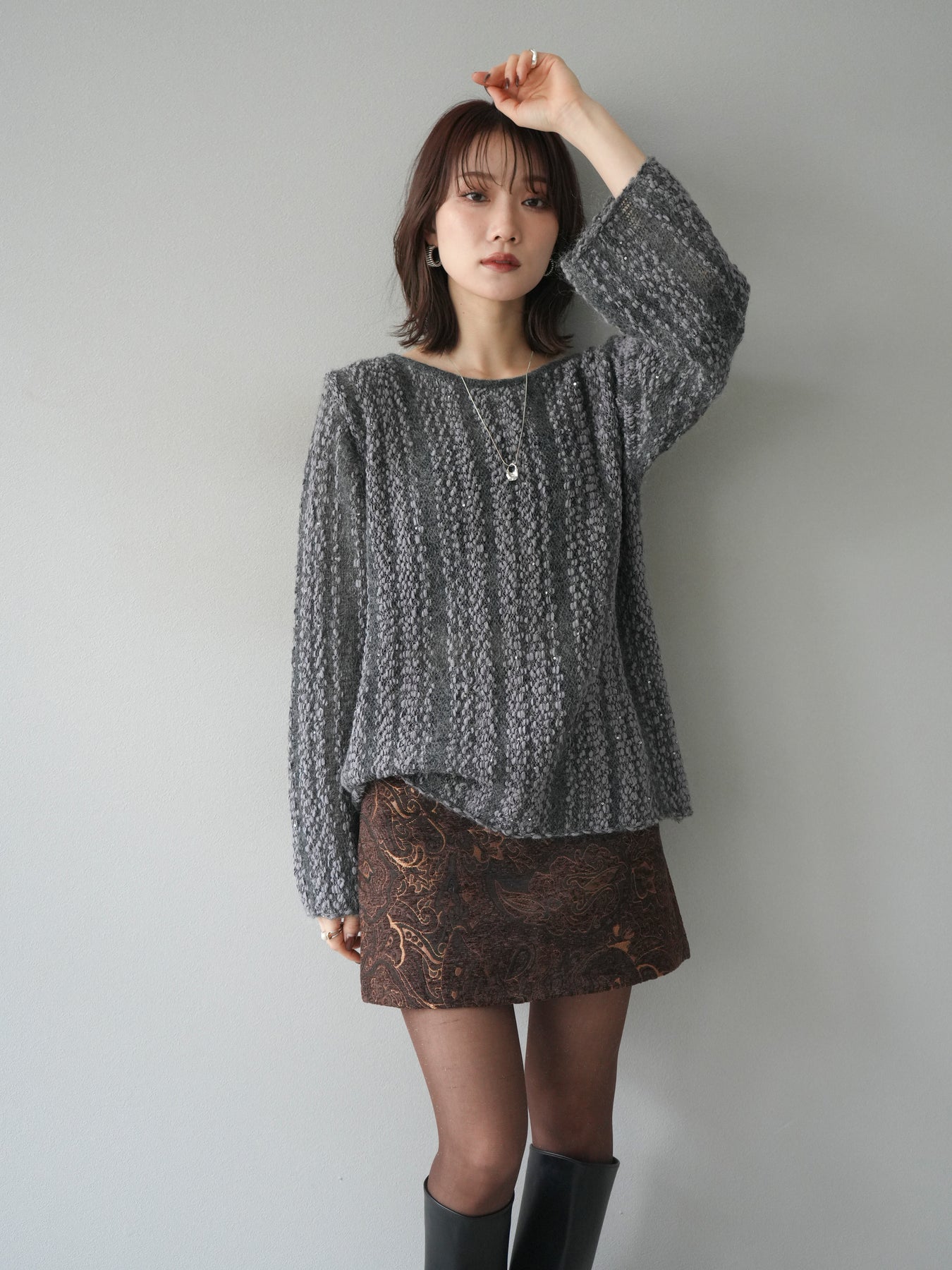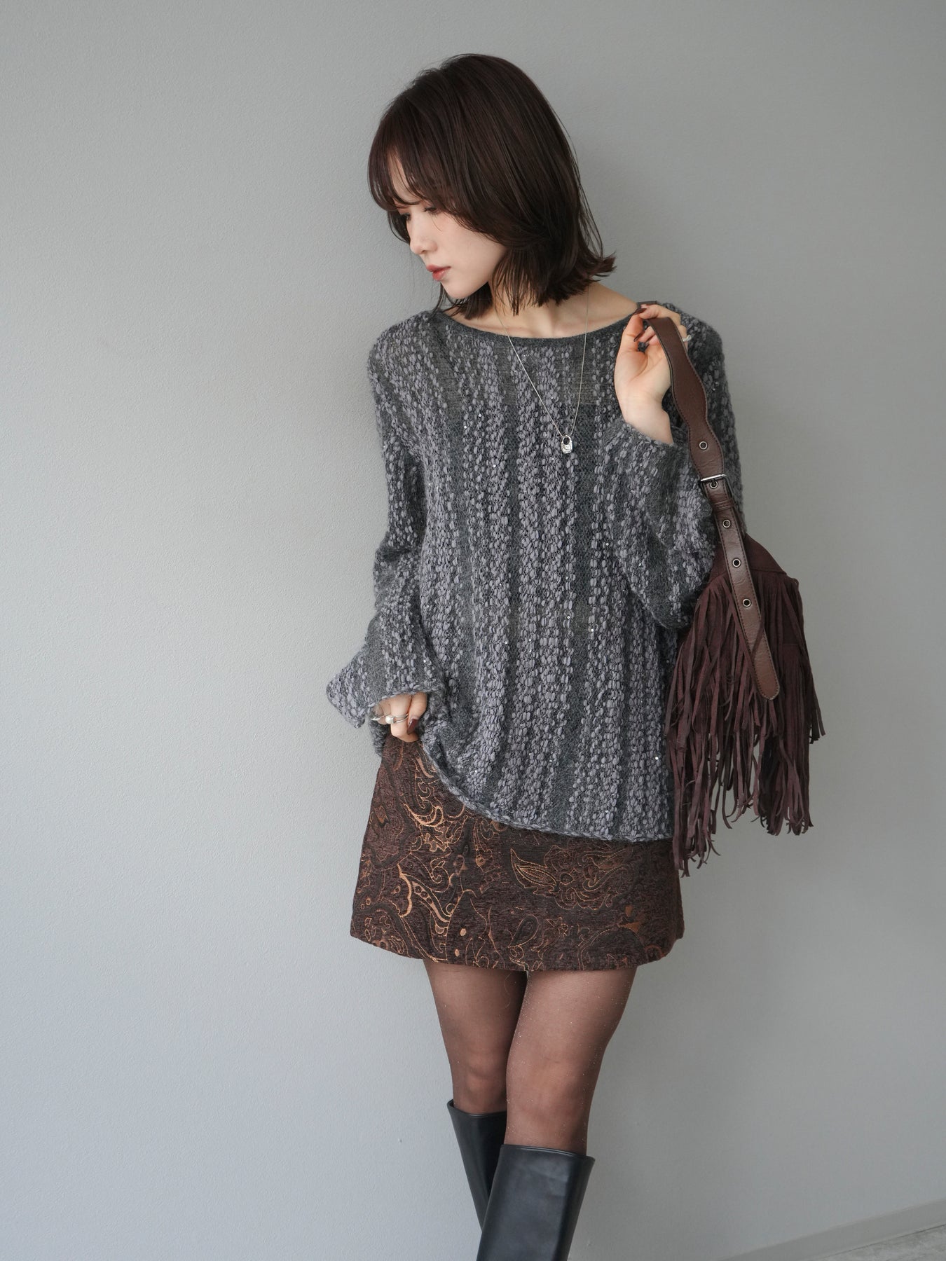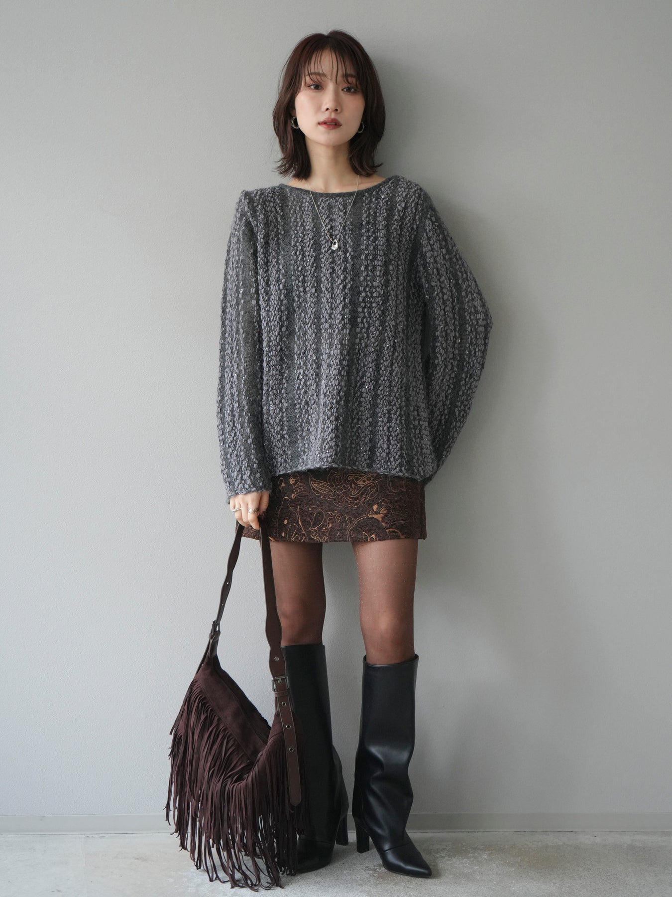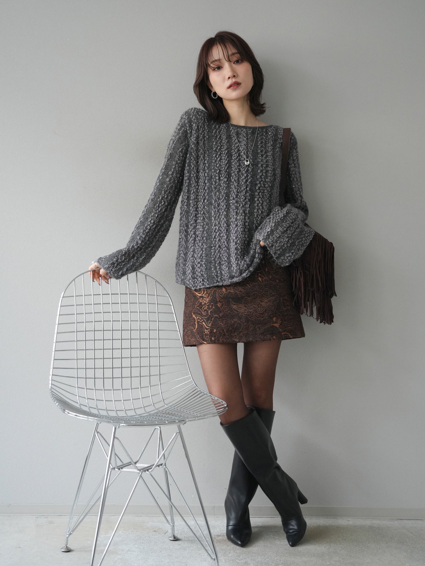 [予約]スパンコール異素材ストライプニットプルオーバー/gray