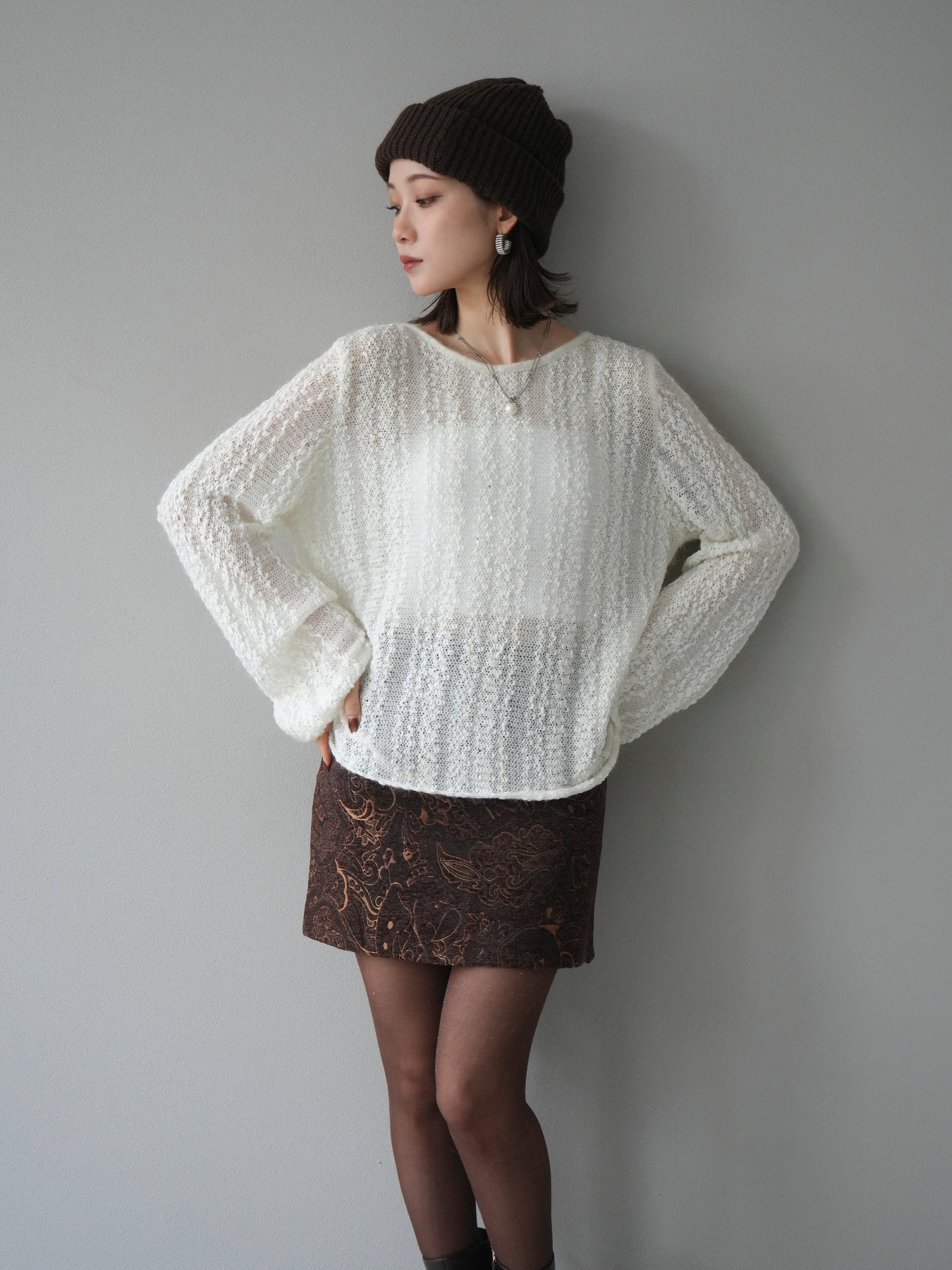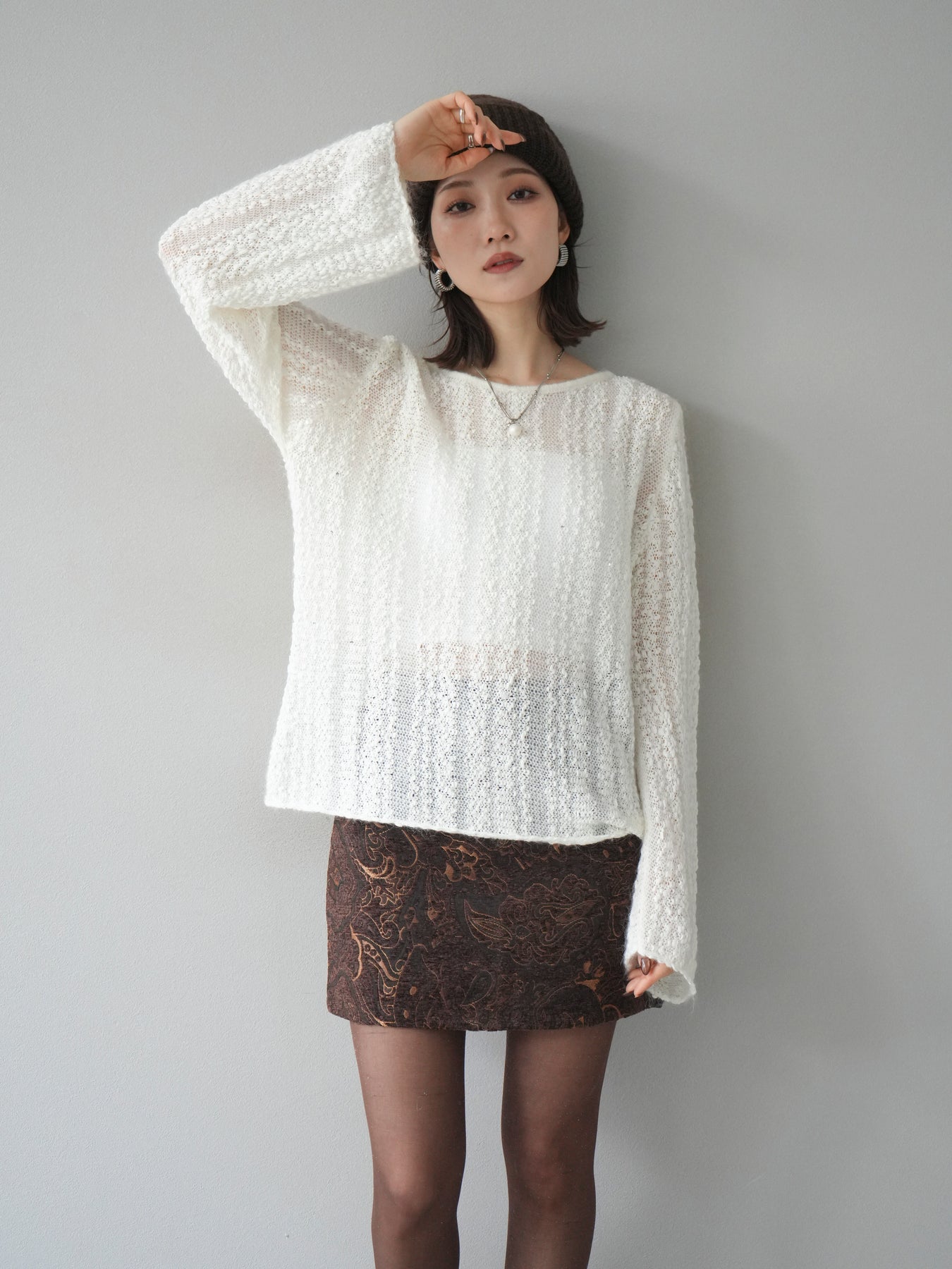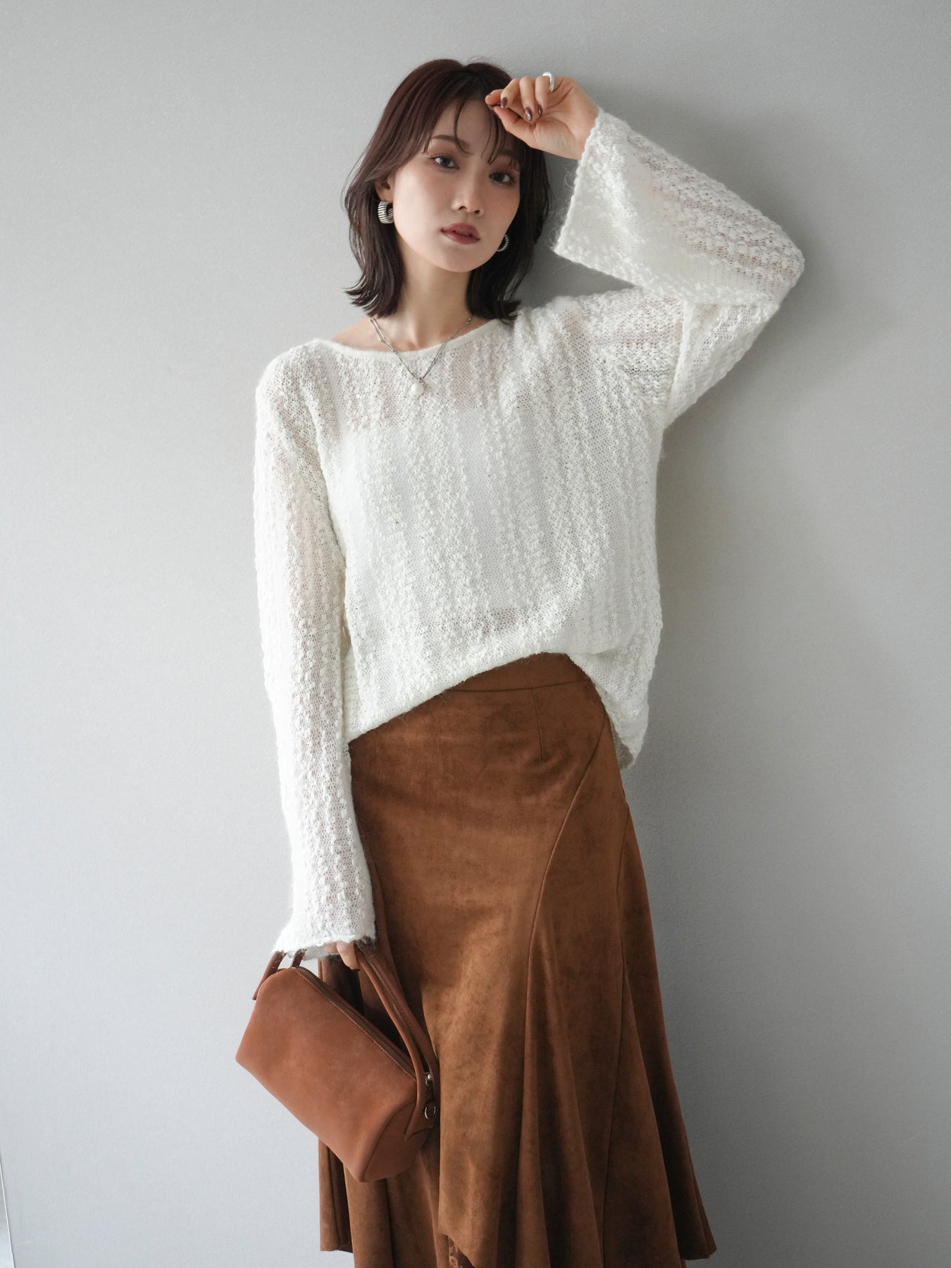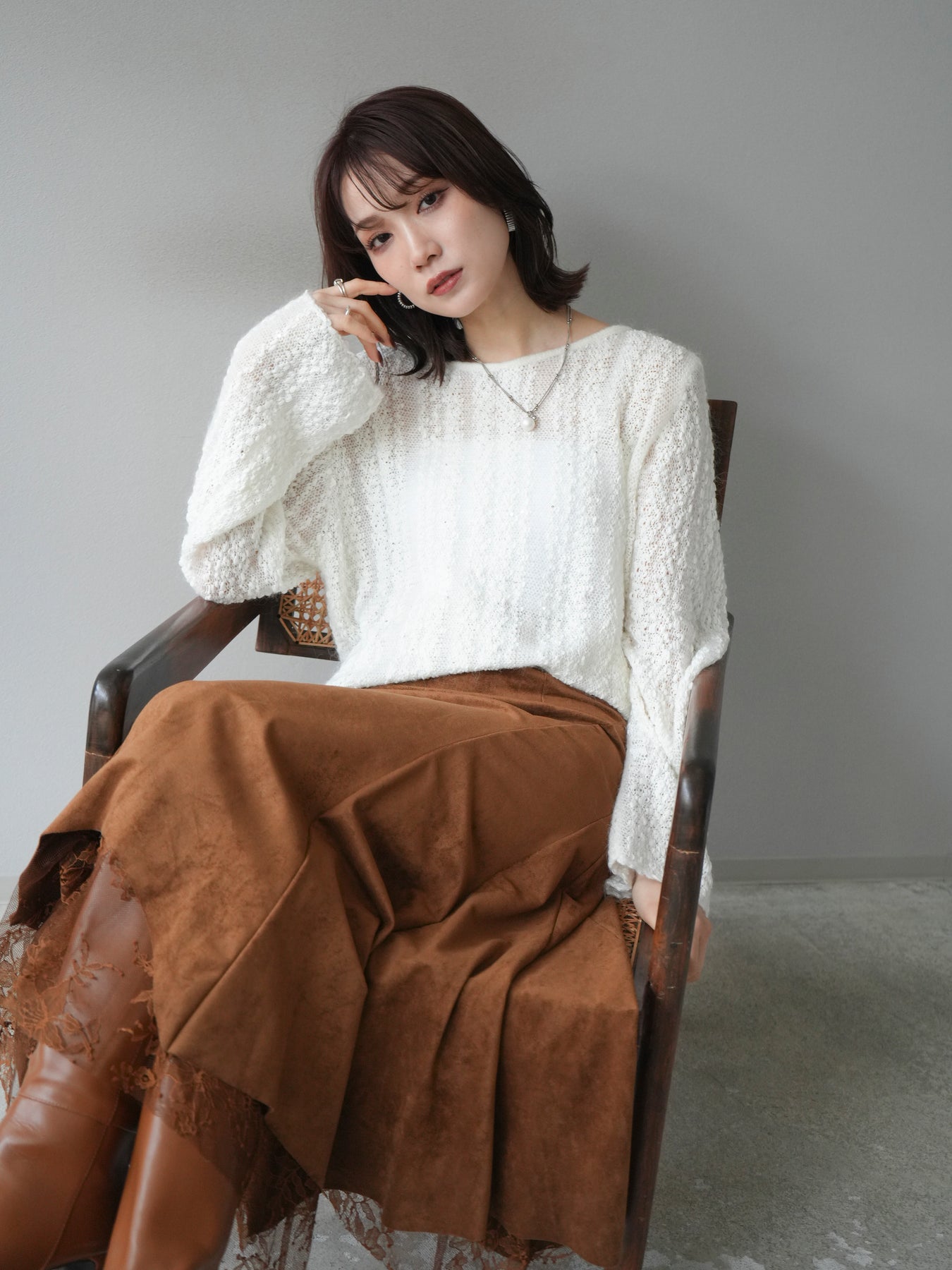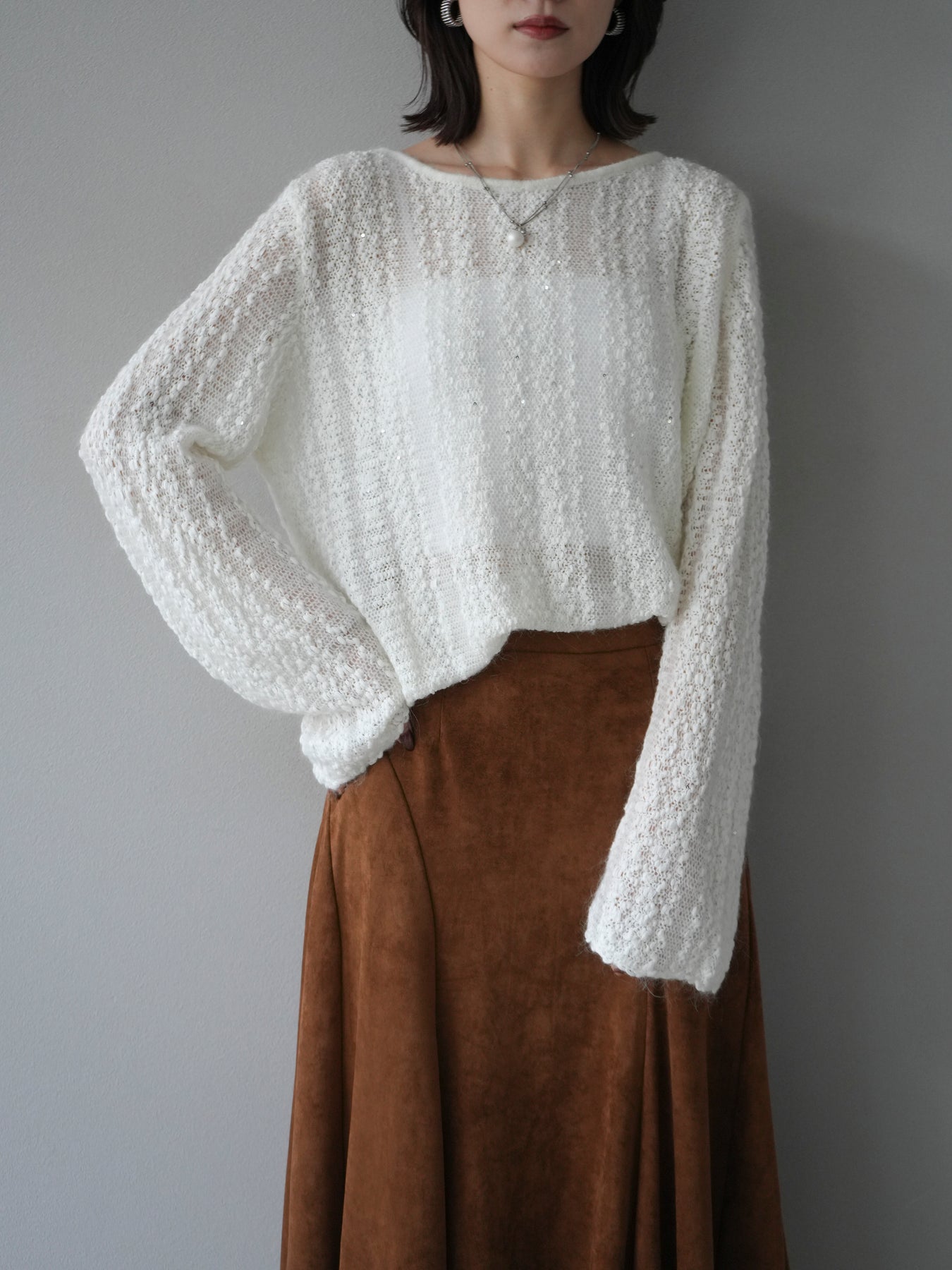 [予約]スパンコール異素材ストライプニットプルオーバー/white