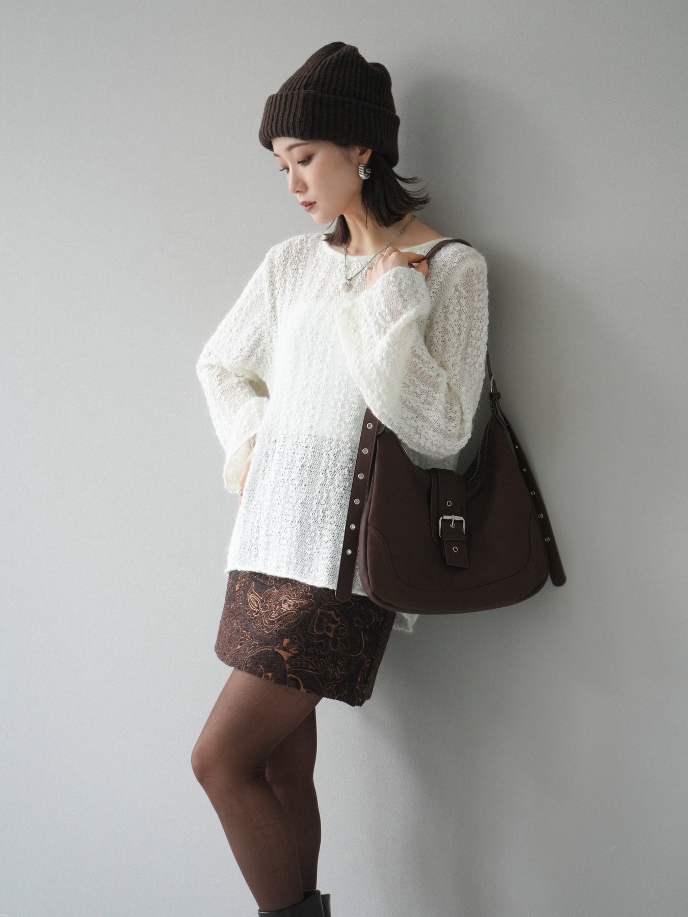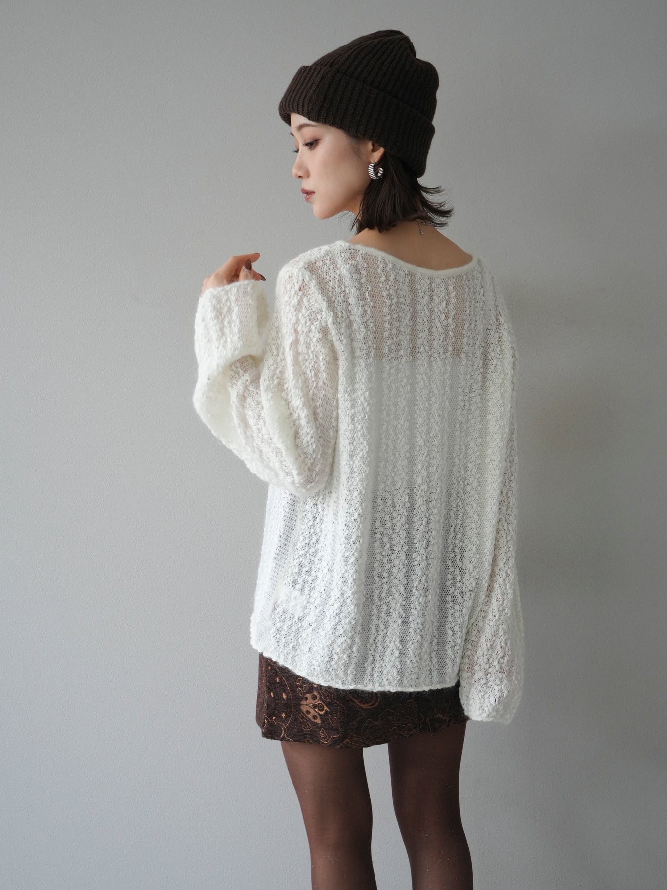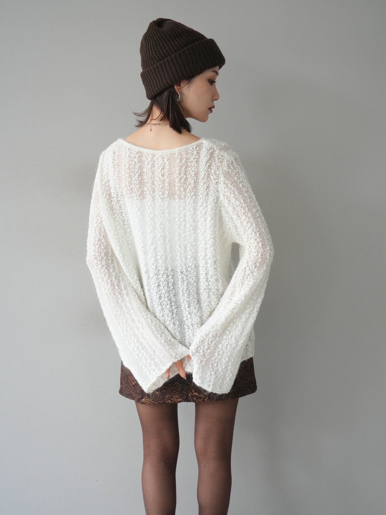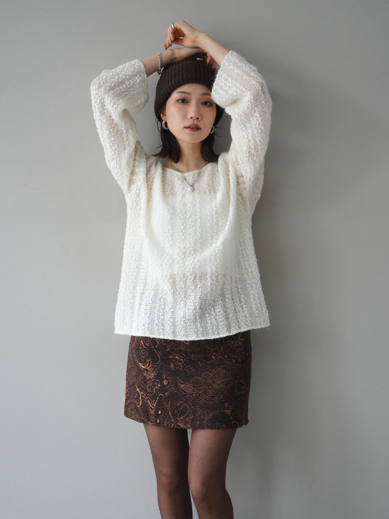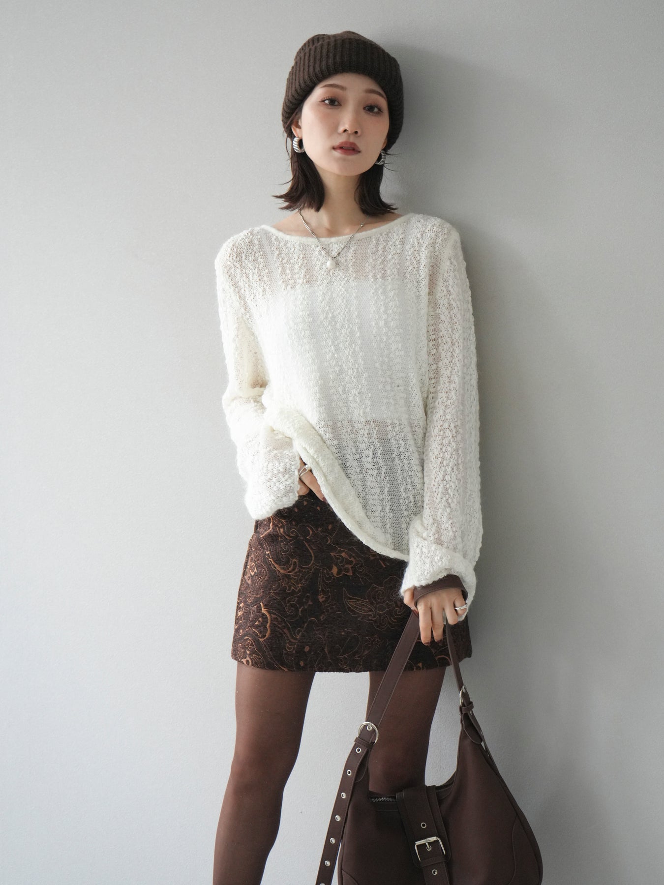 [予約]スパンコール異素材ストライプニットプルオーバー/white