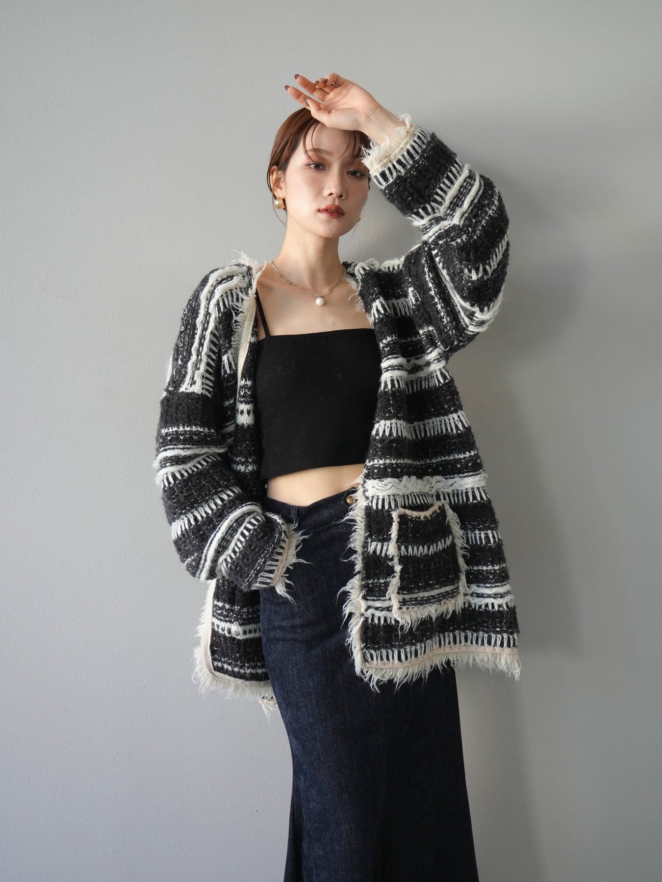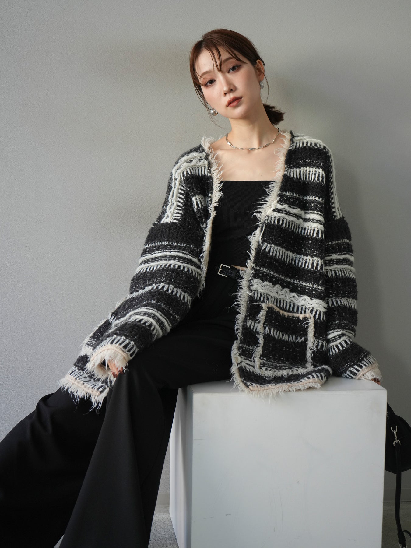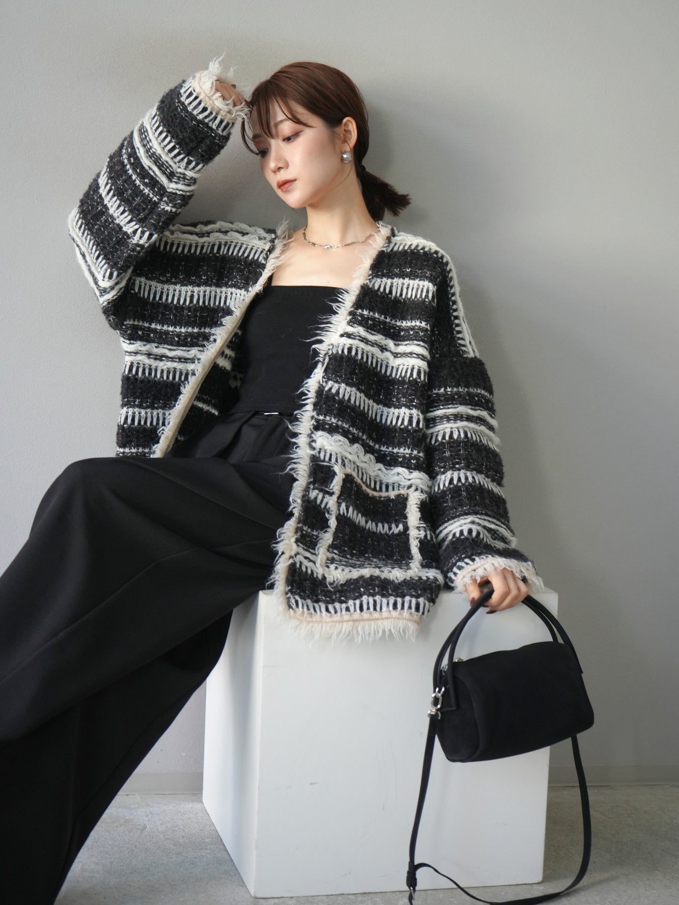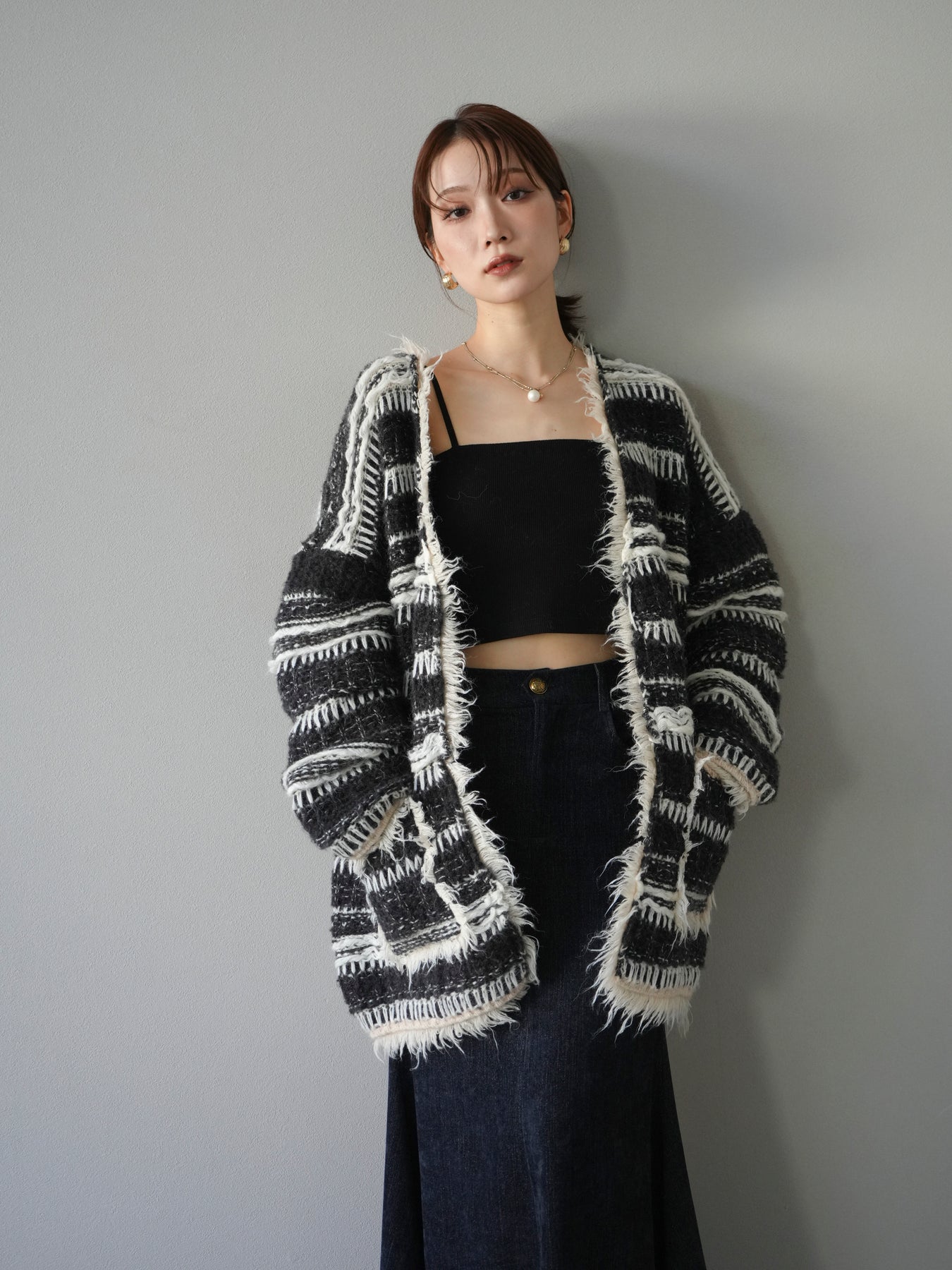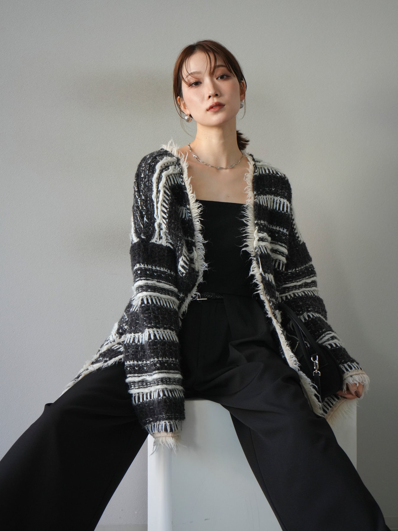 [予約]ミックスフリンジオーバーニットカーディガン/black