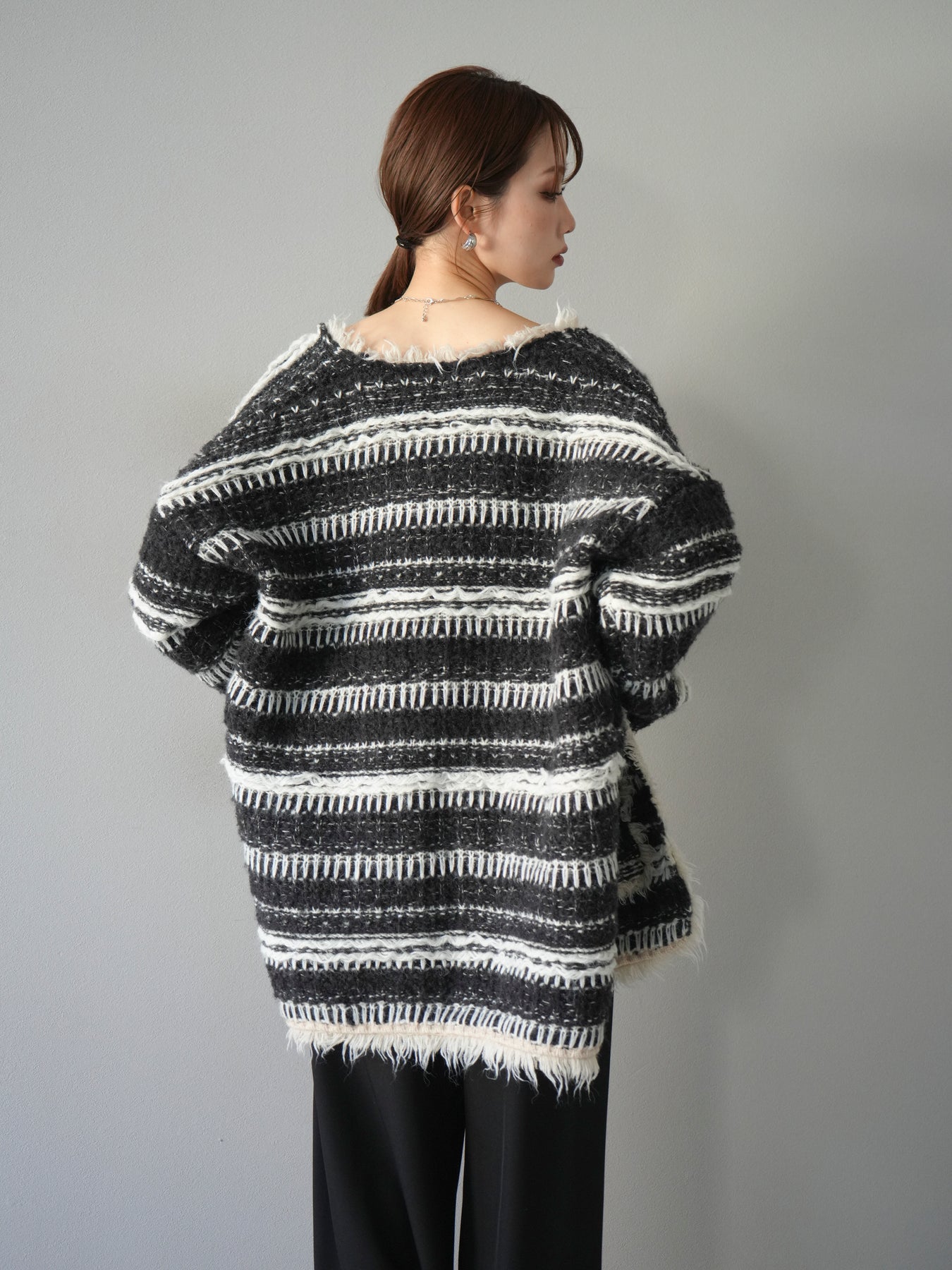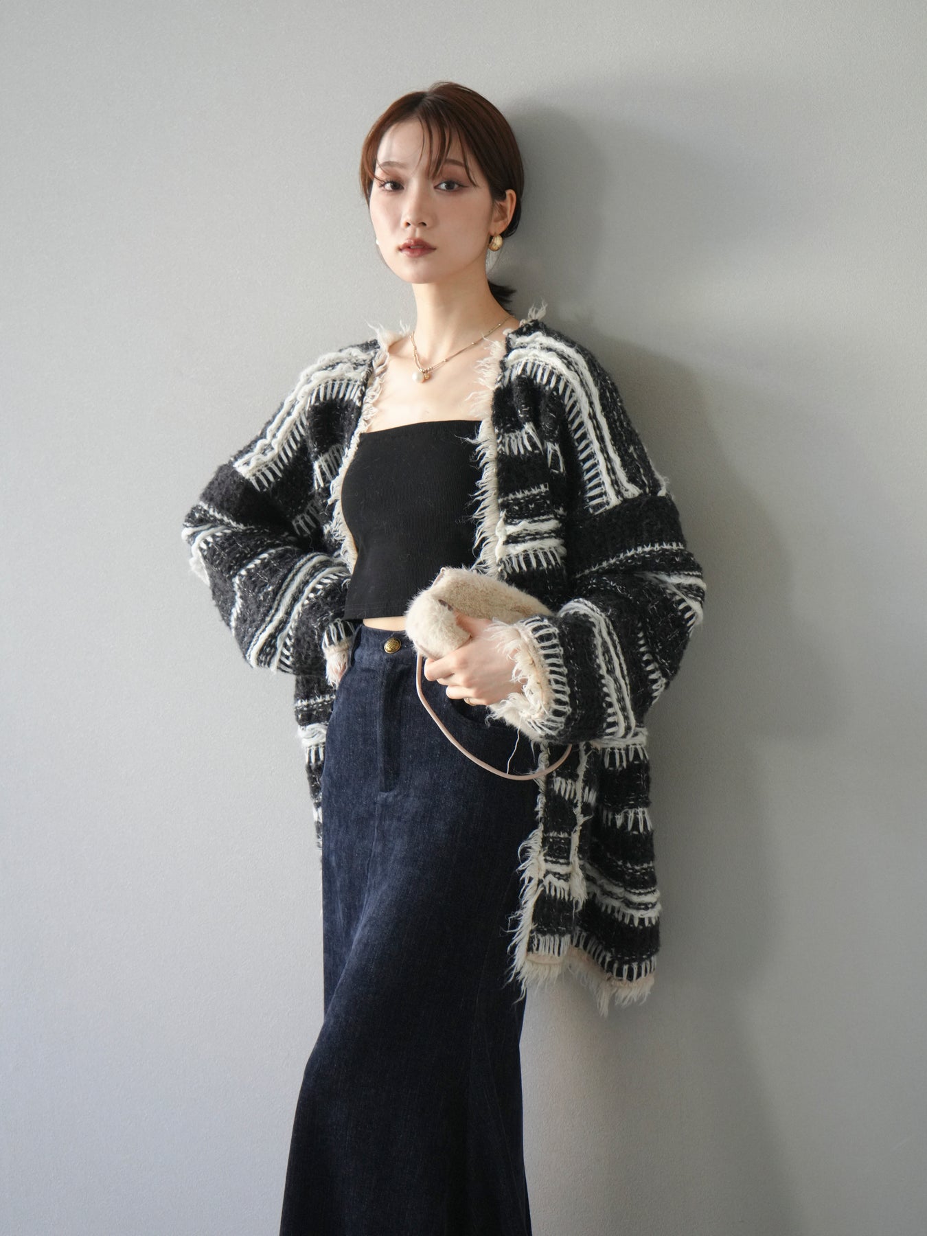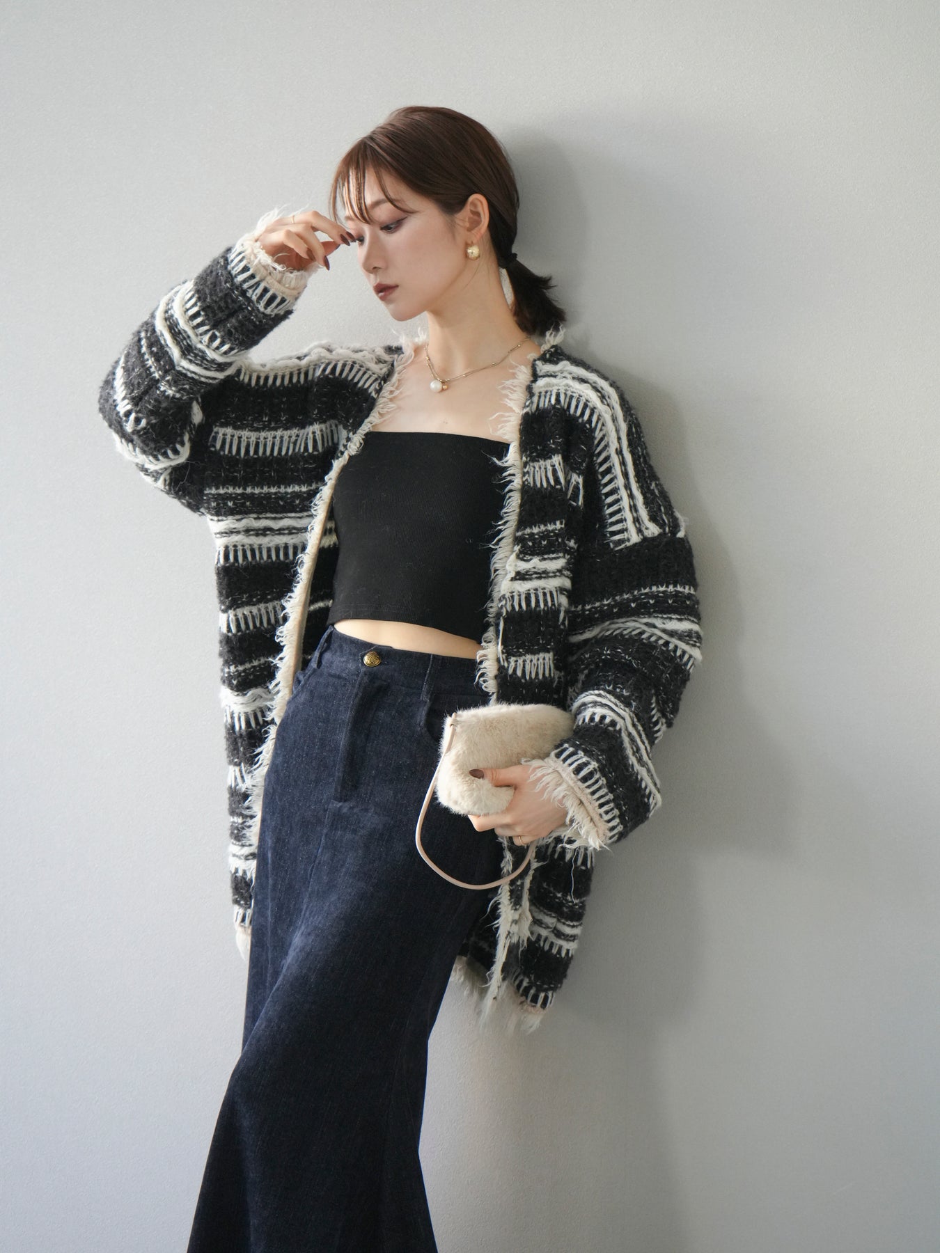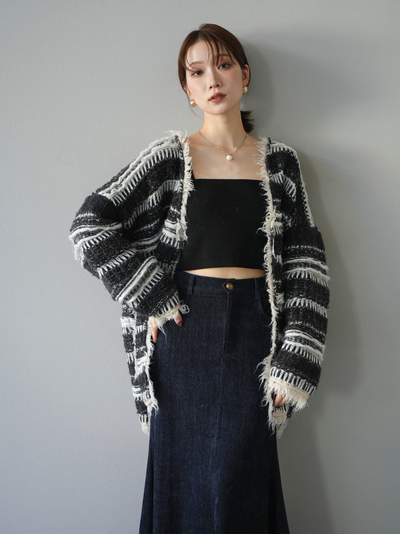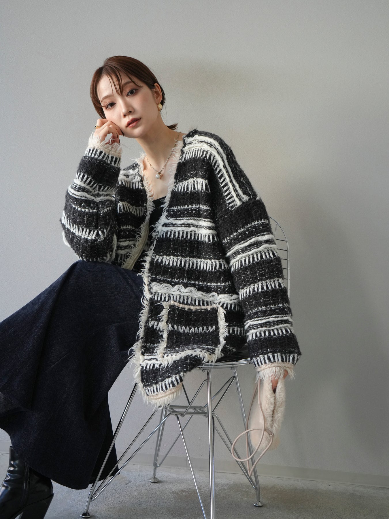 [予約]ミックスフリンジオーバーニットカーディガン/black