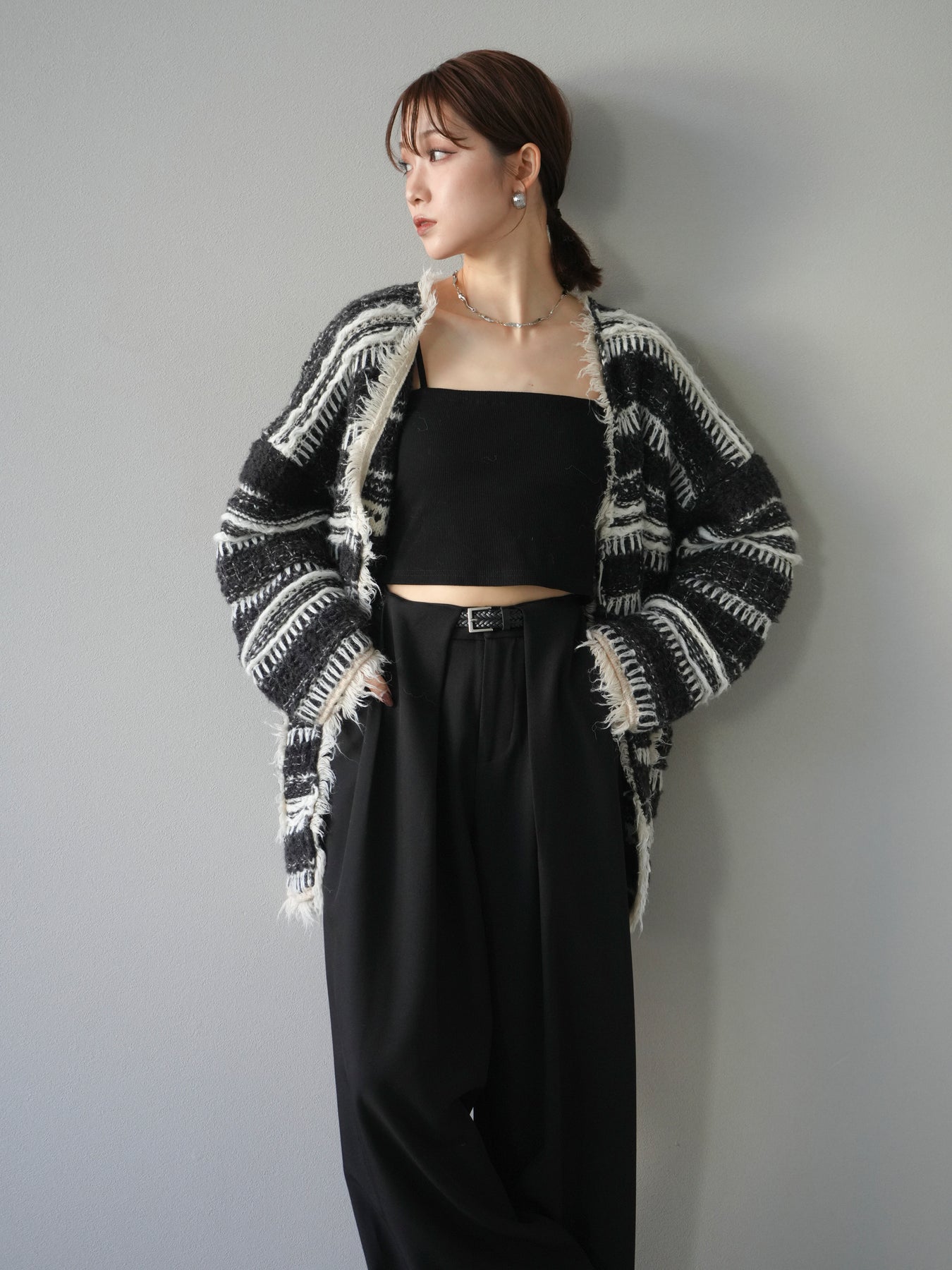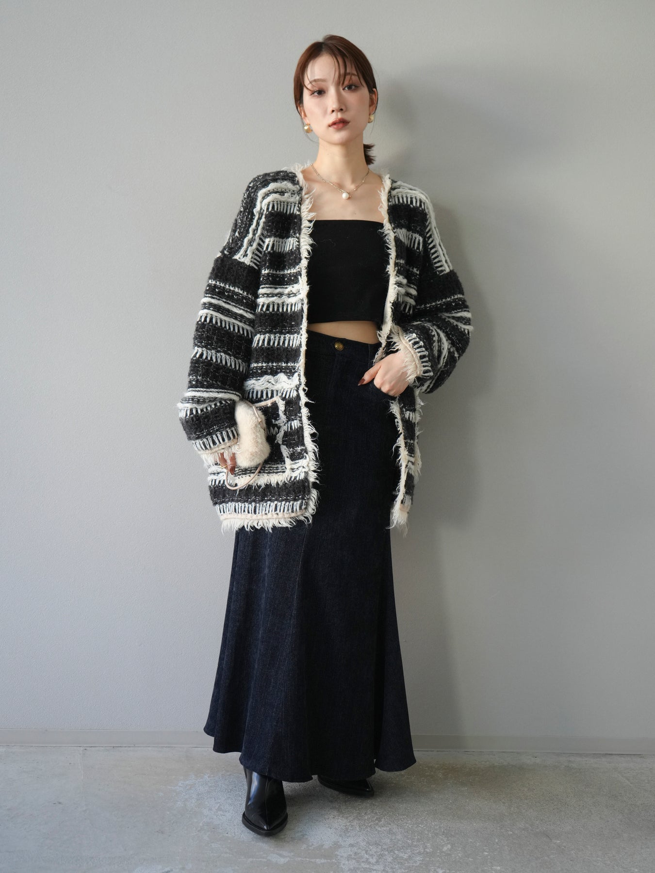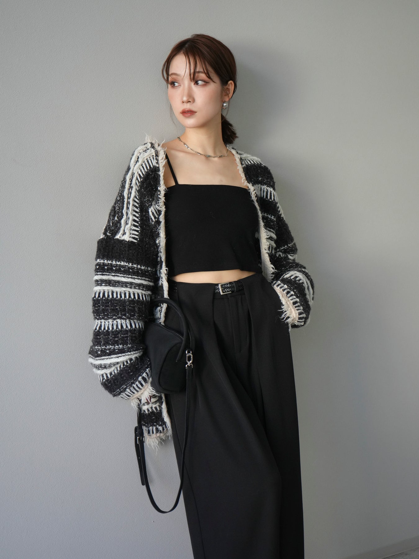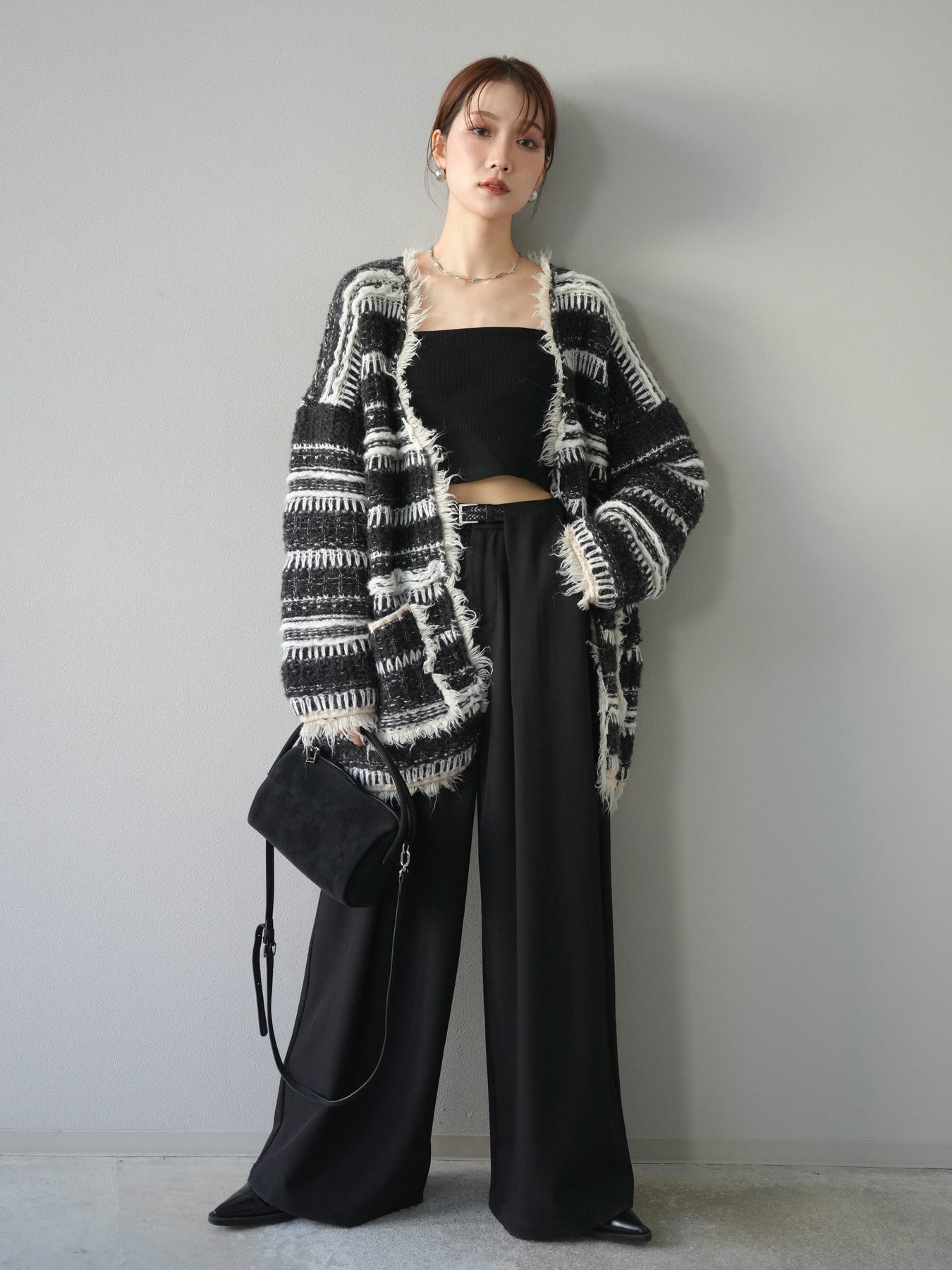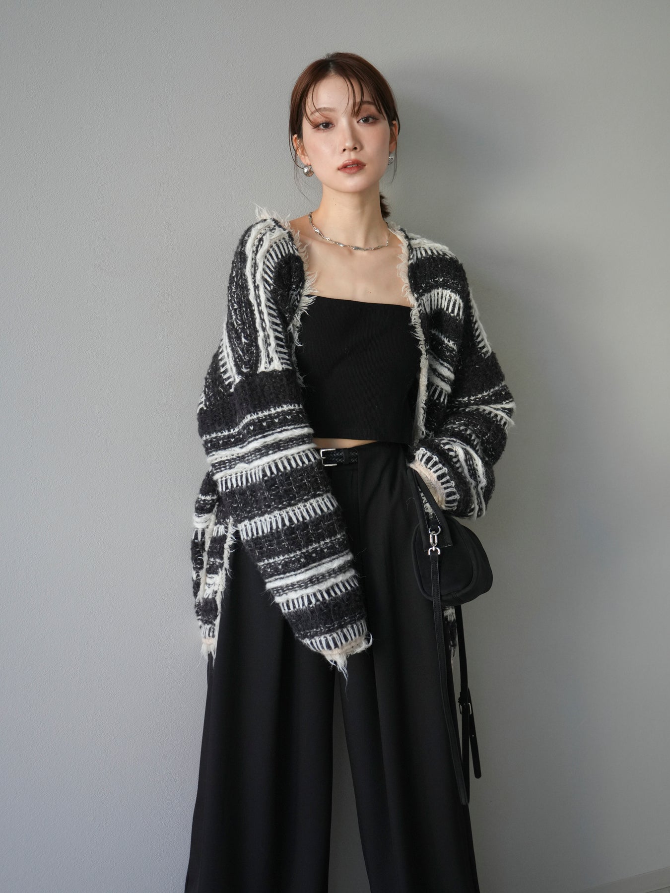 [予約]ミックスフリンジオーバーニットカーディガン/black