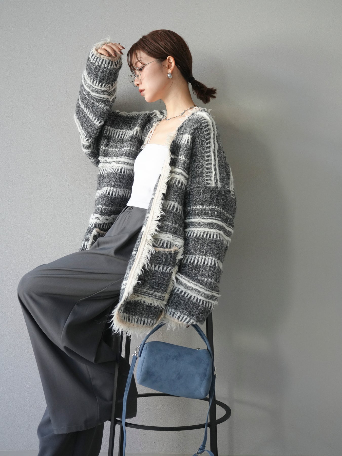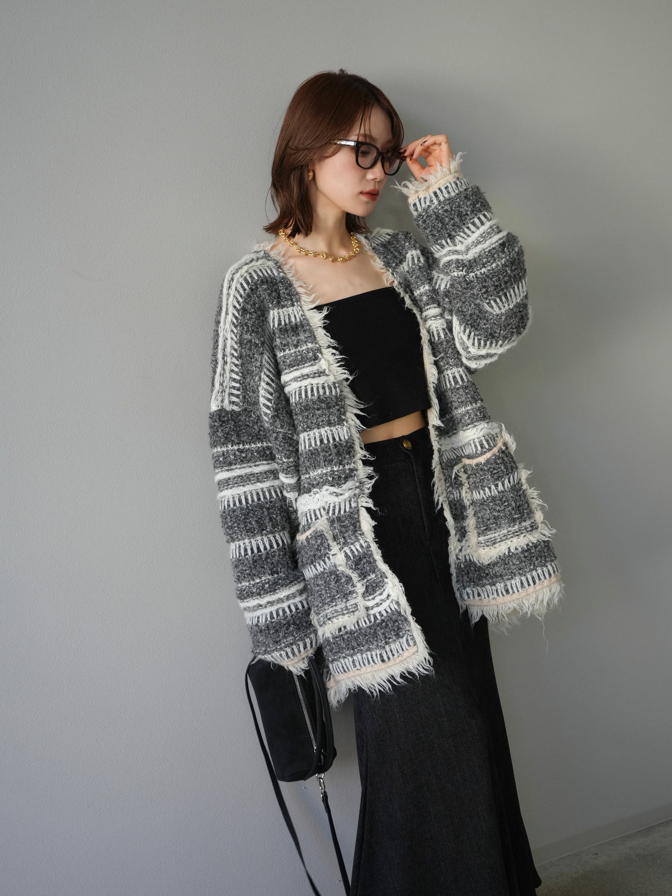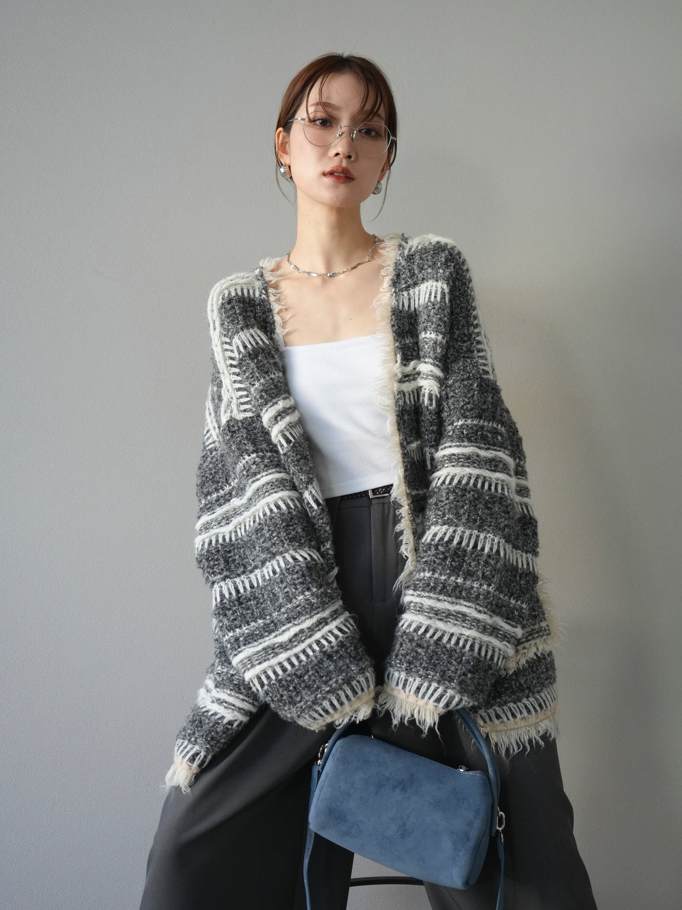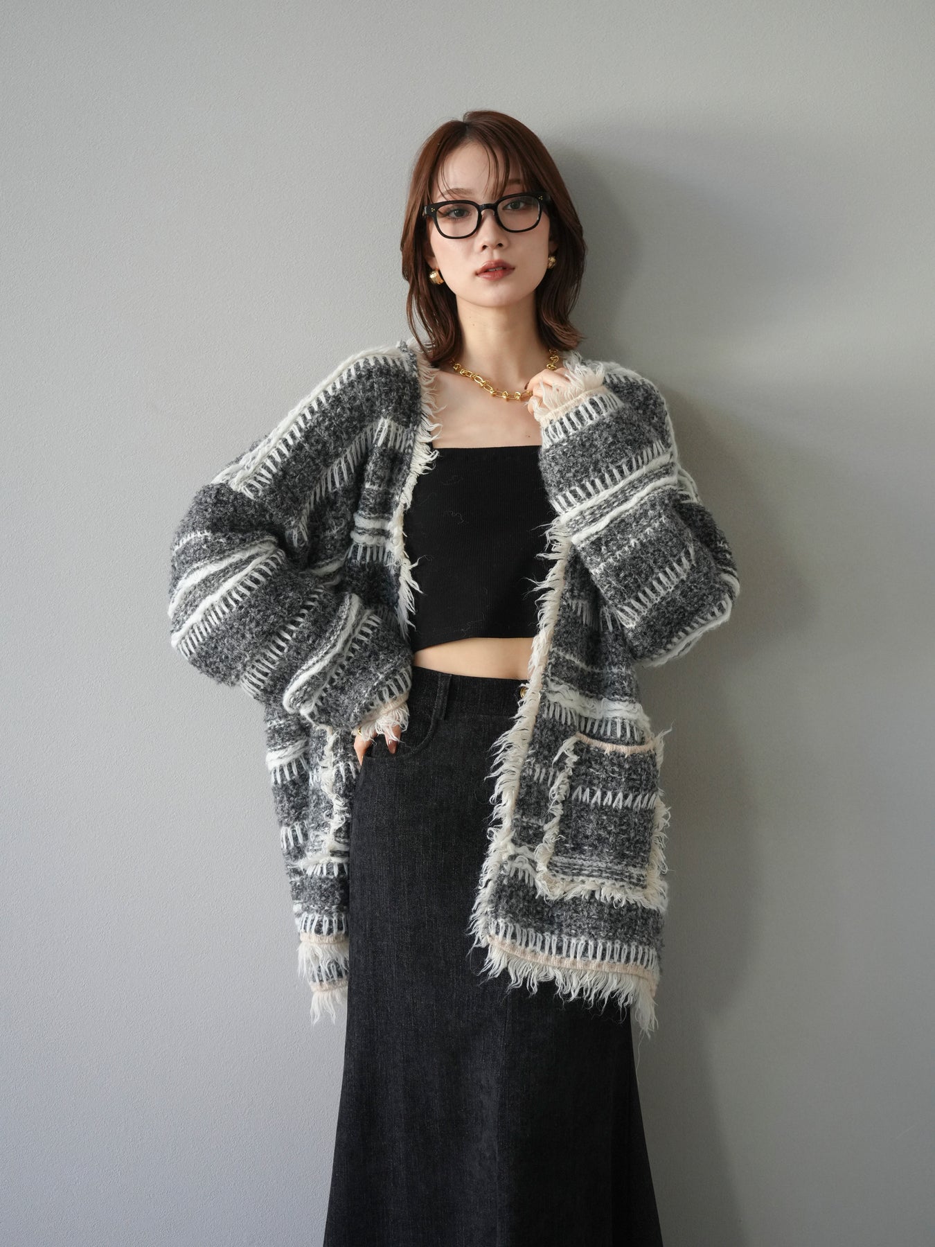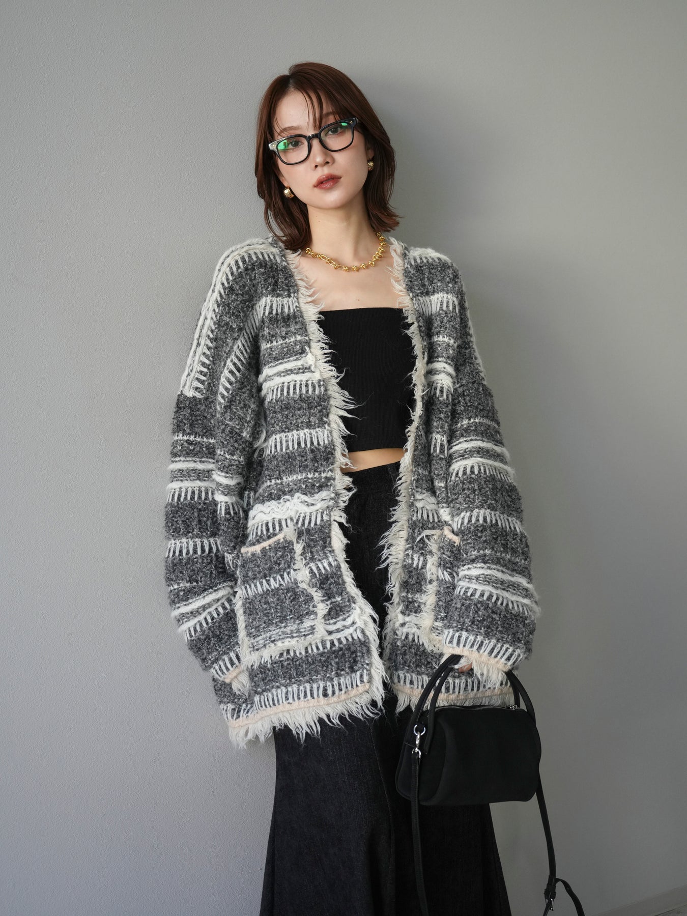 [予約]ミックスフリンジオーバーニットカーディガン/gray