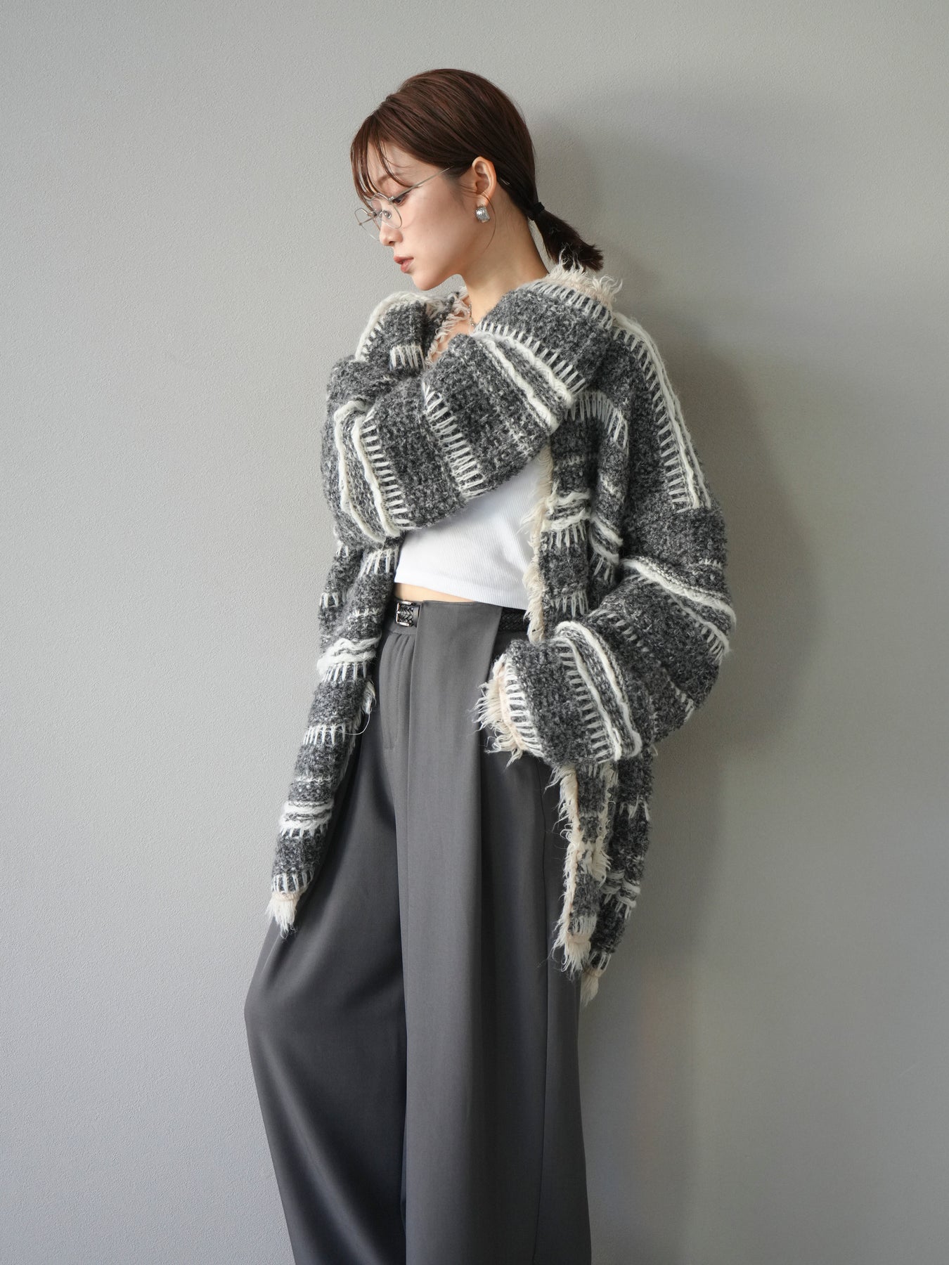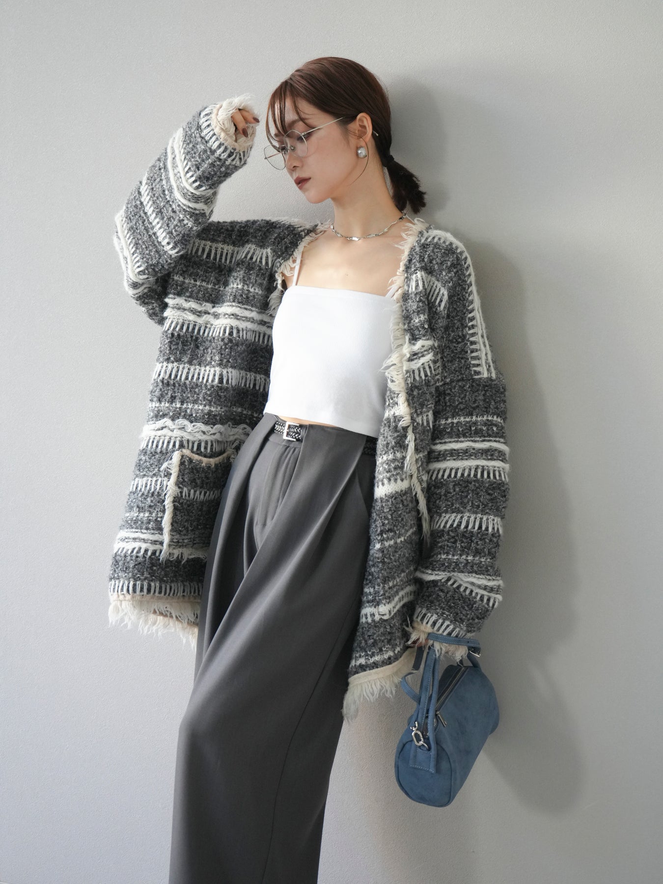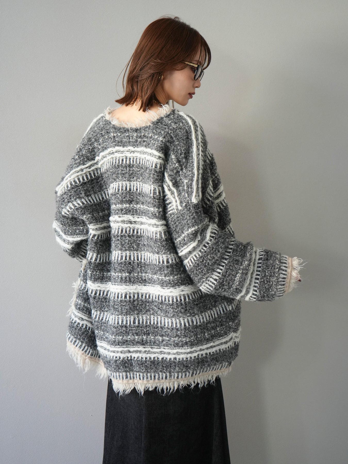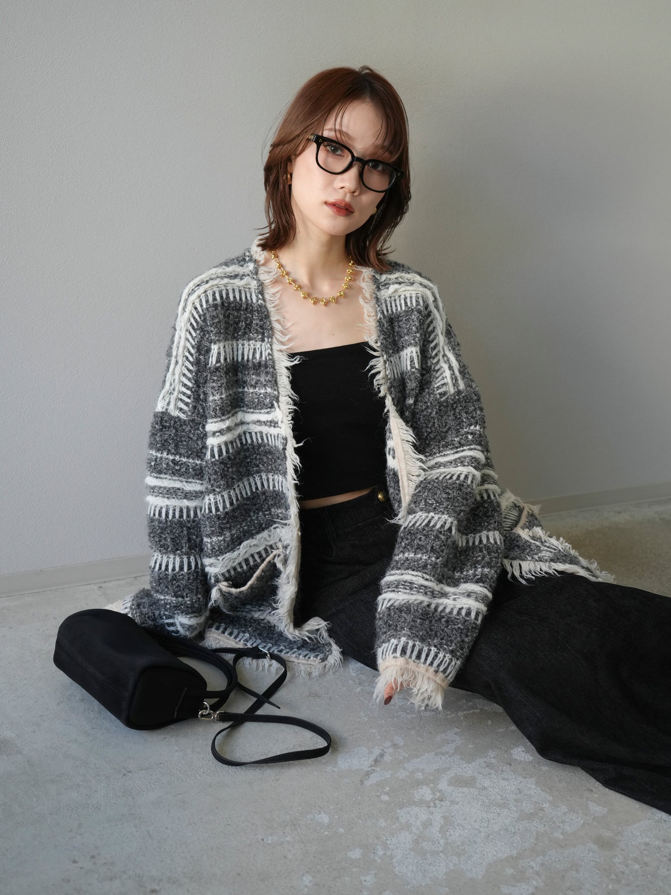 [予約]ミックスフリンジオーバーニットカーディガン/gray