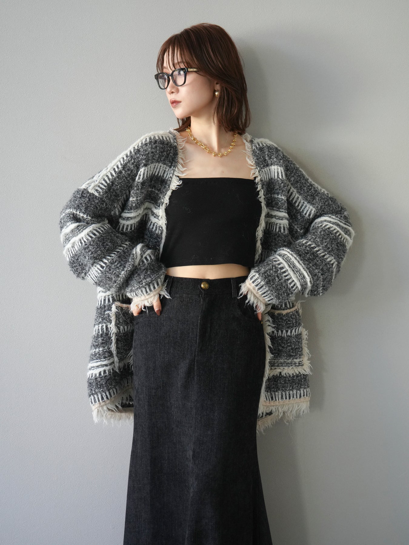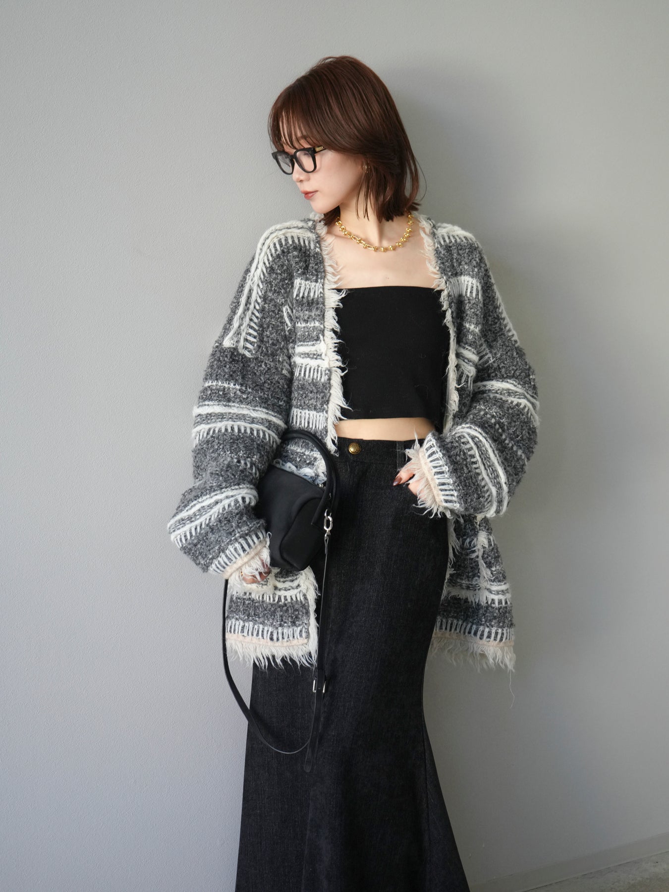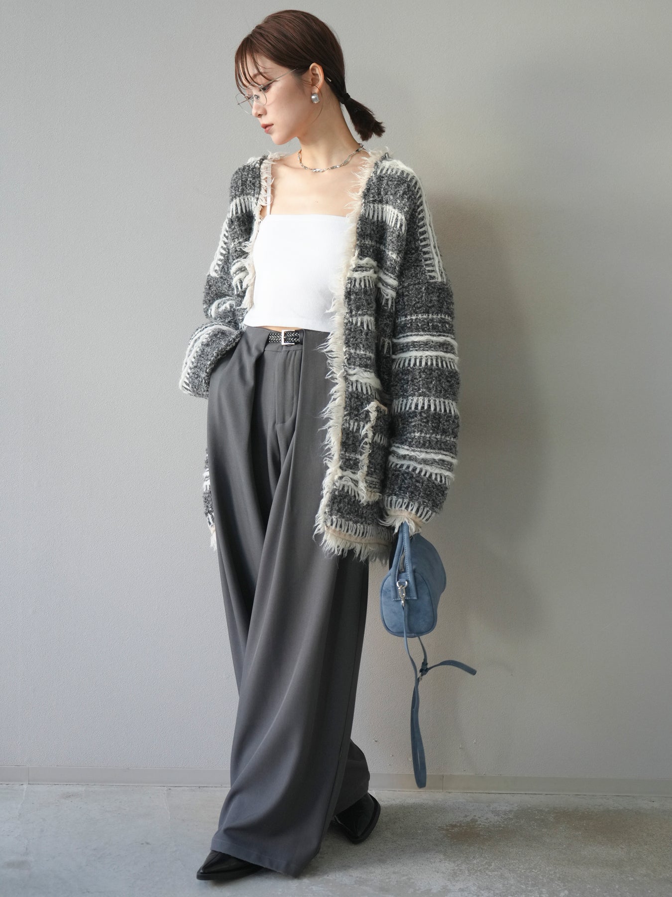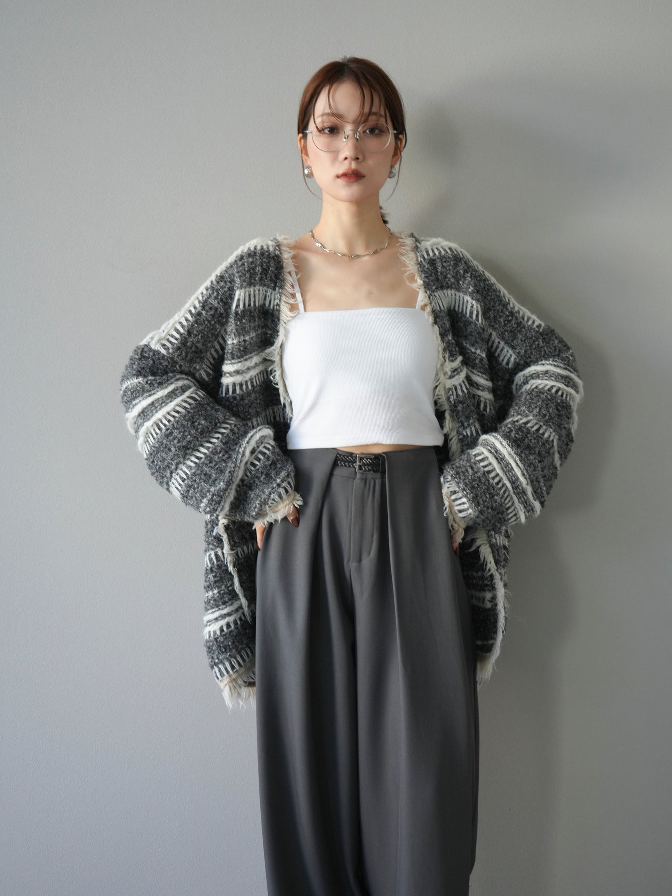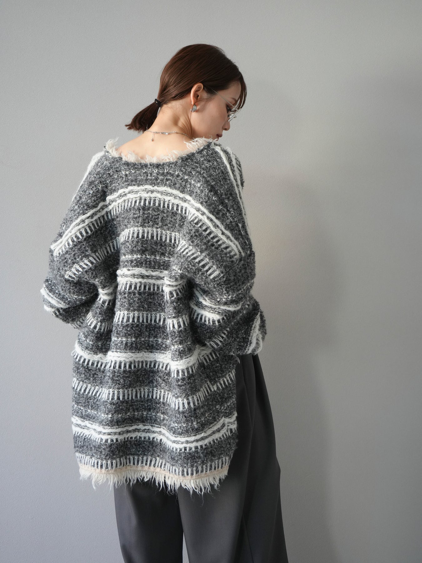 [予約]ミックスフリンジオーバーニットカーディガン/gray