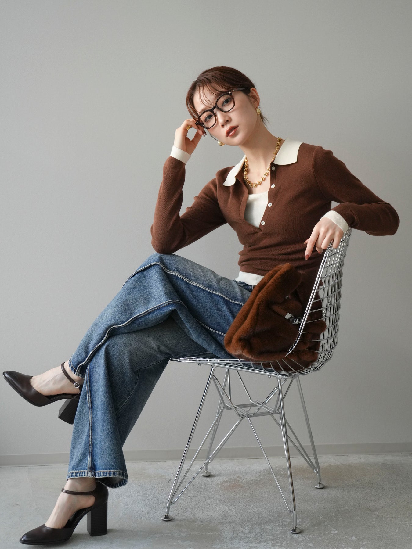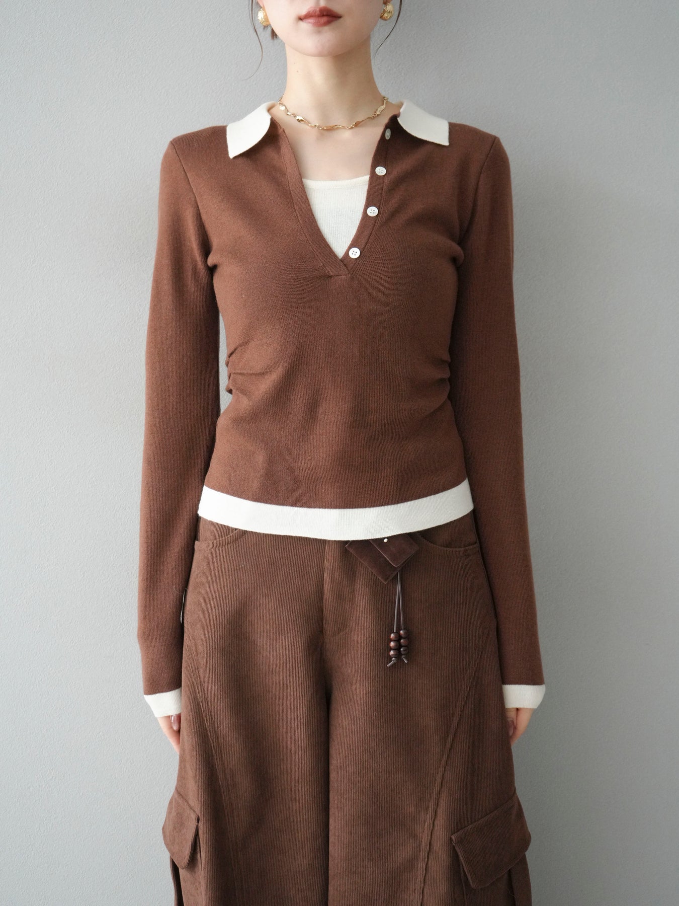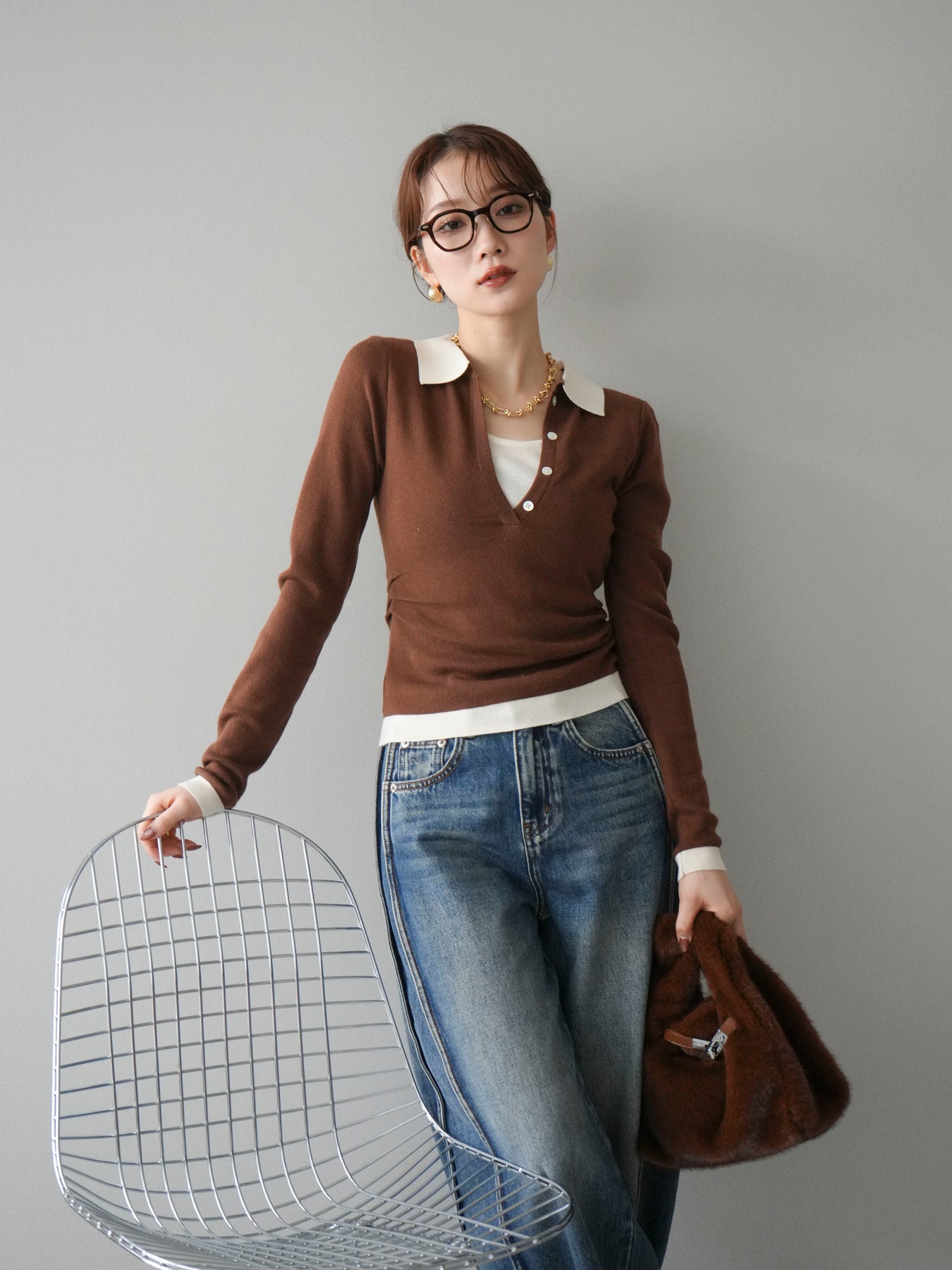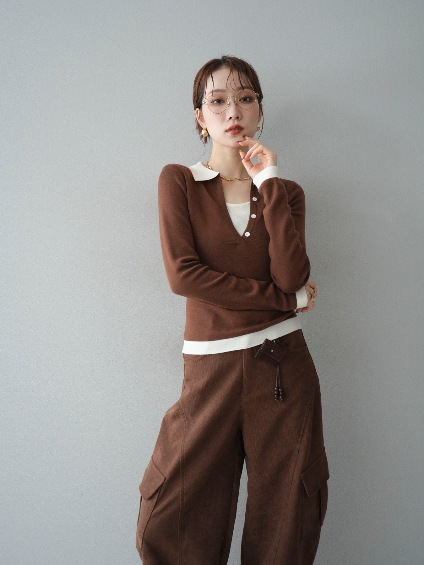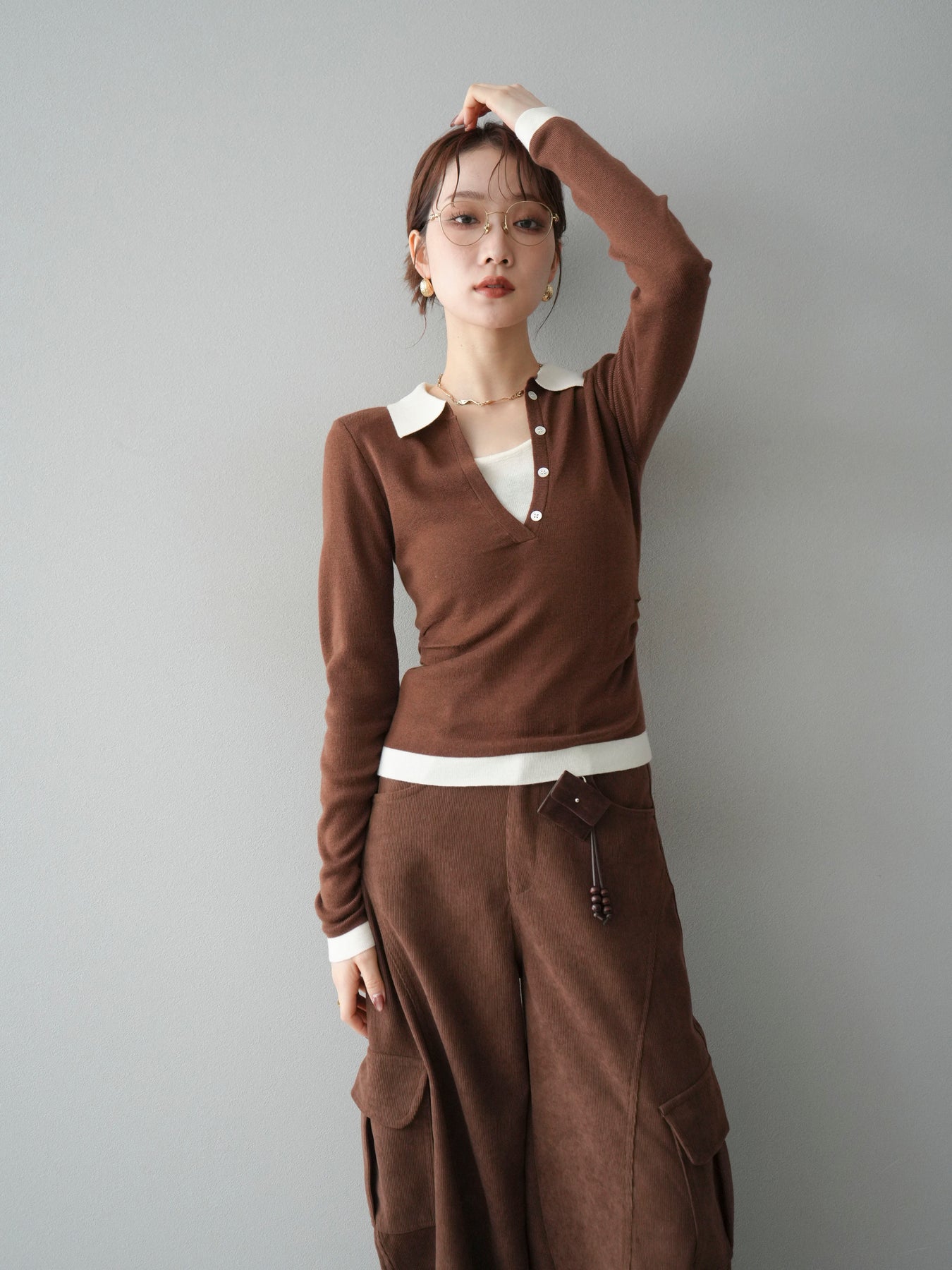 [予約]レイヤード配色ポロニットトップスに関連する商品を探す↓