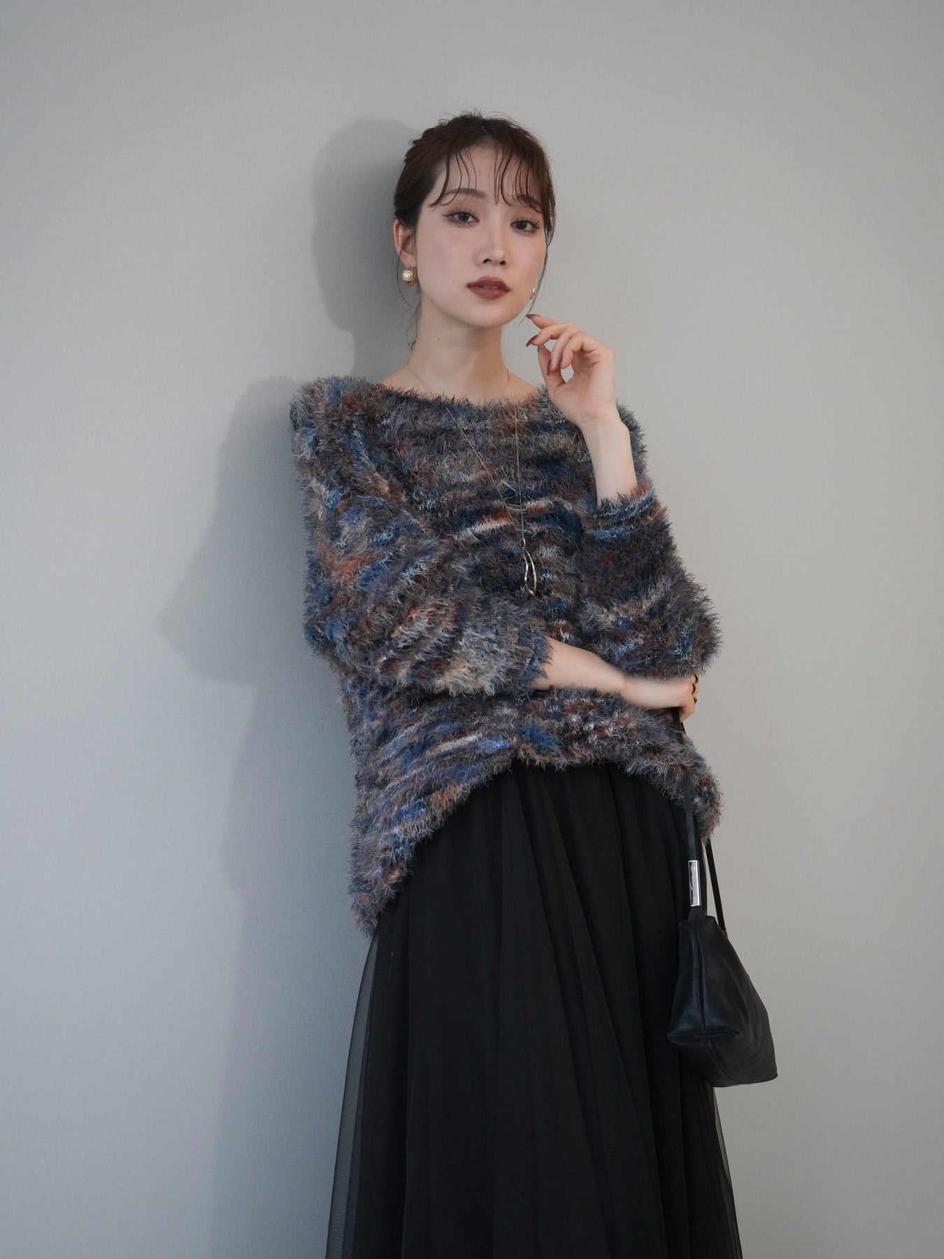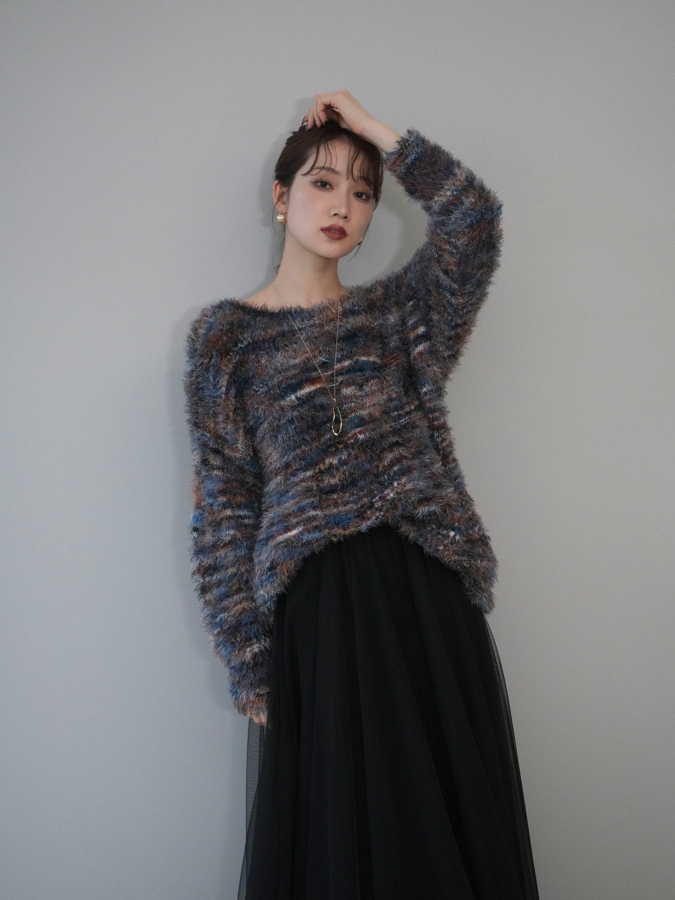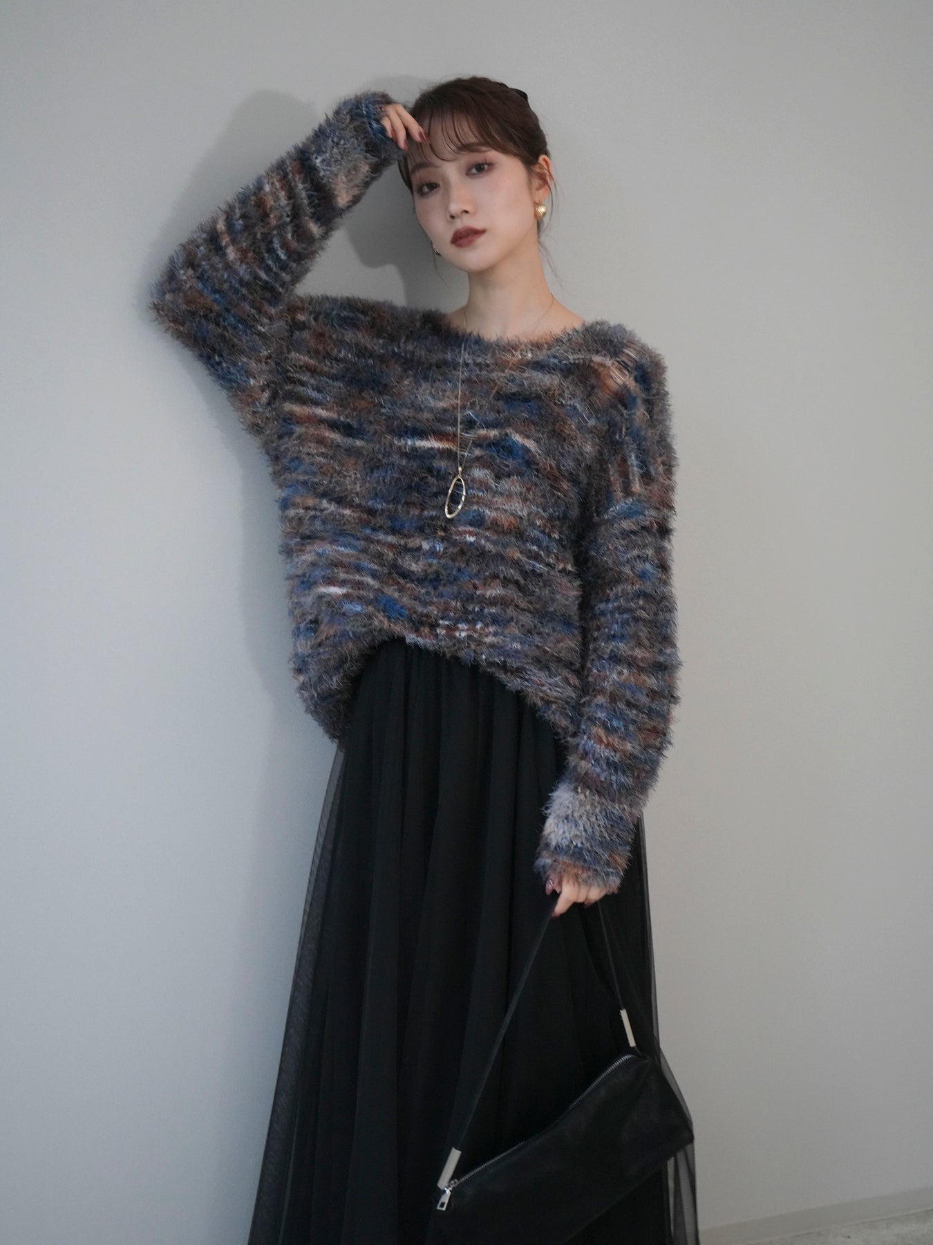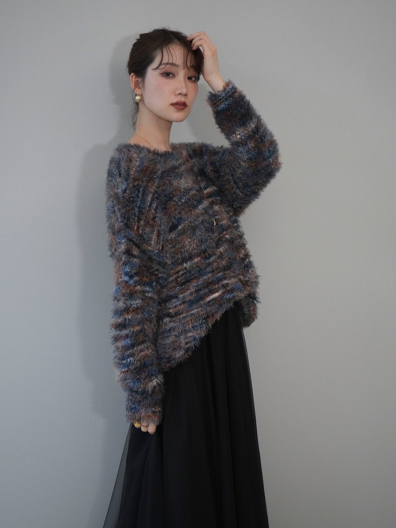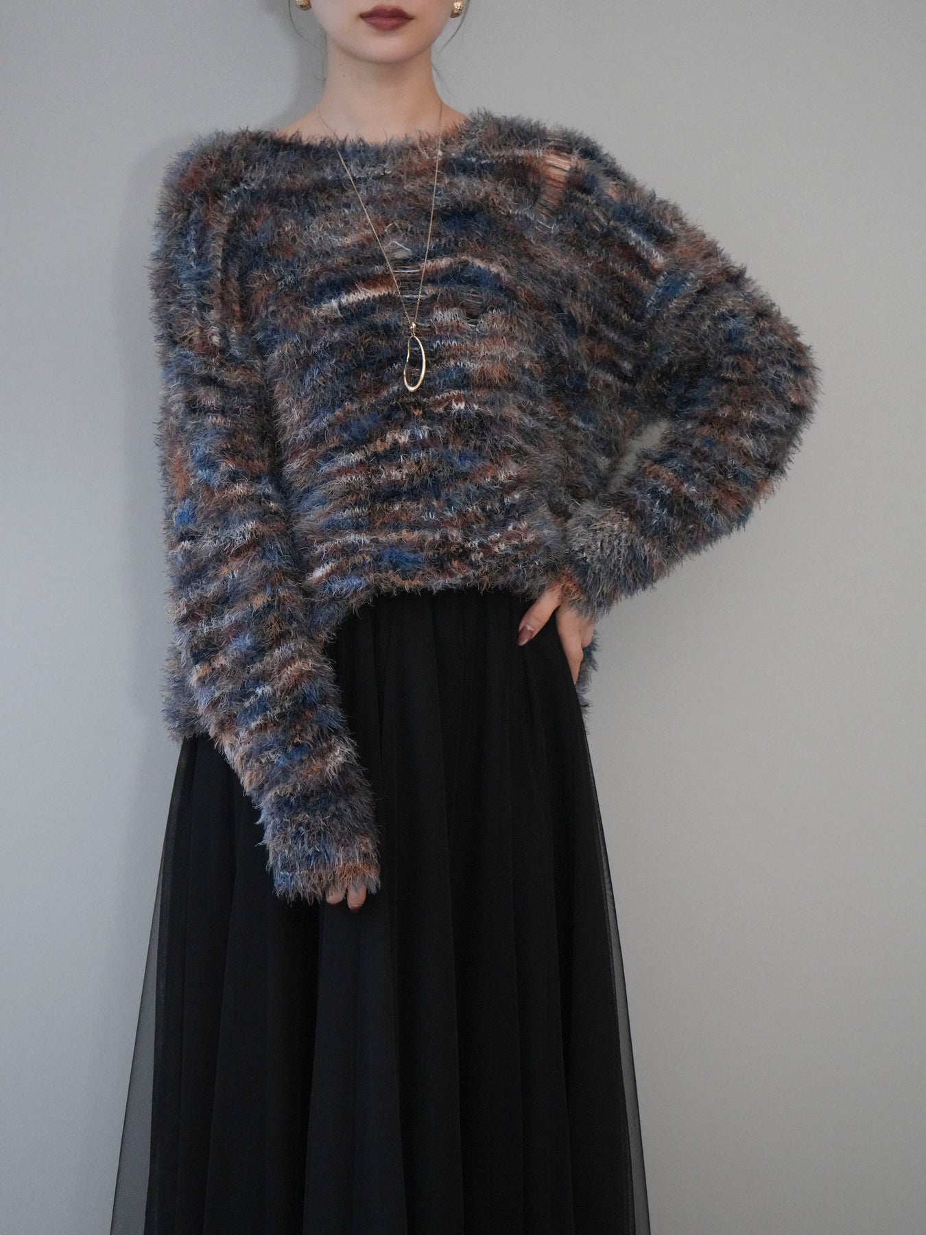ふんわりとしたシャギー素材とミックスカラーが魅力のルーズニットプルオーバー。 奥行きのある色合いと柔らかな質感が、シーズンムードを高めてくれます。 ゆったりとしたシルエットが抜け感を演出し、リラクシーながらも女性らしい印象に。 軽やかな着心地で、1枚で着るのはもちろん、シャツやハイネックとのレイヤードもおすすめです。 デニムやスカートなど、どんなボトムともバランス良く合わせられる万能アイテムです。 ※ボトムス、キャミソール(インナー)以外の商品は一律でインナーは付属していません。