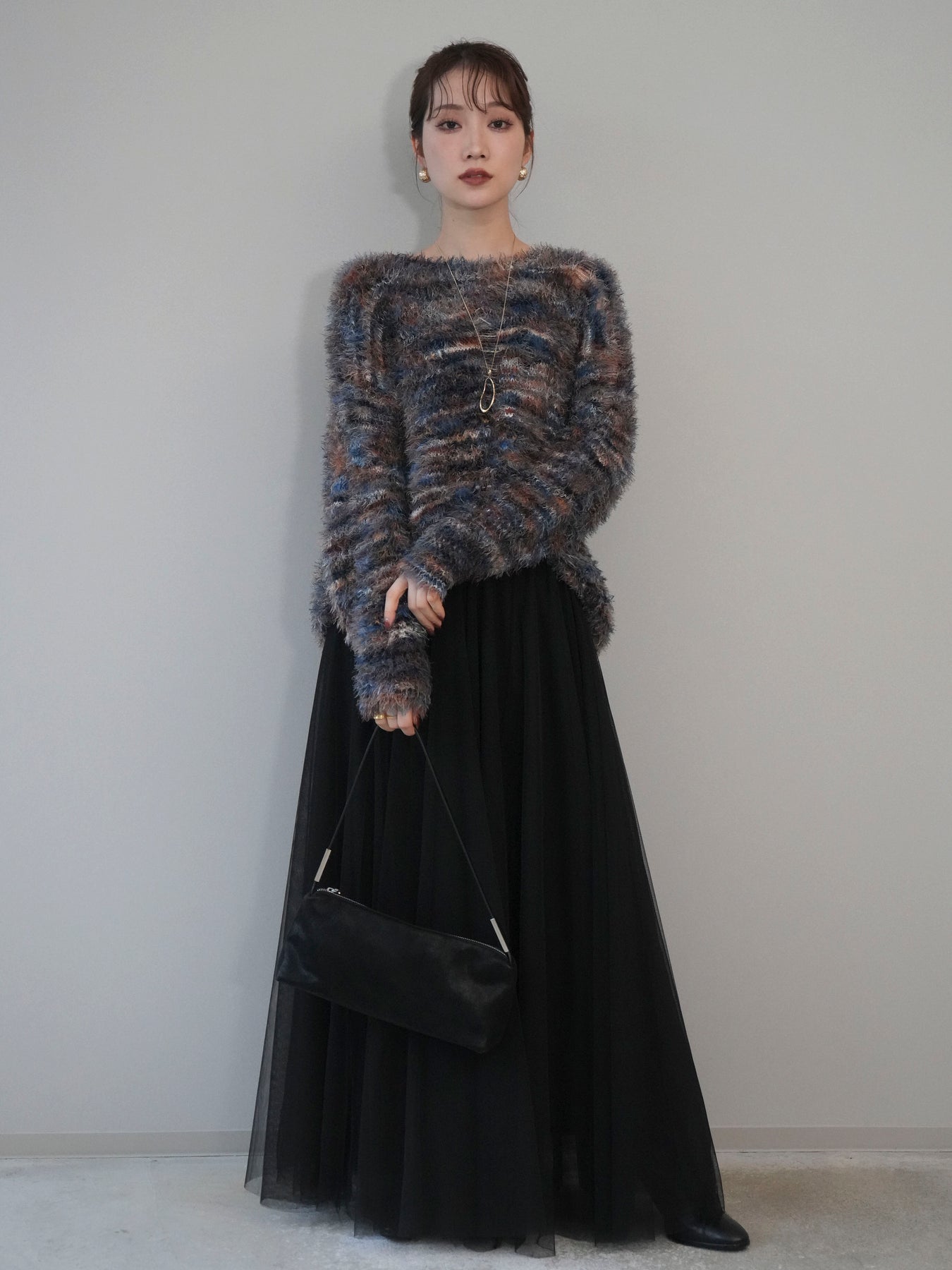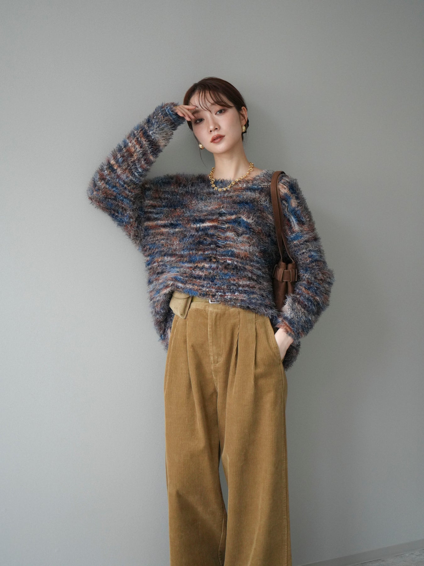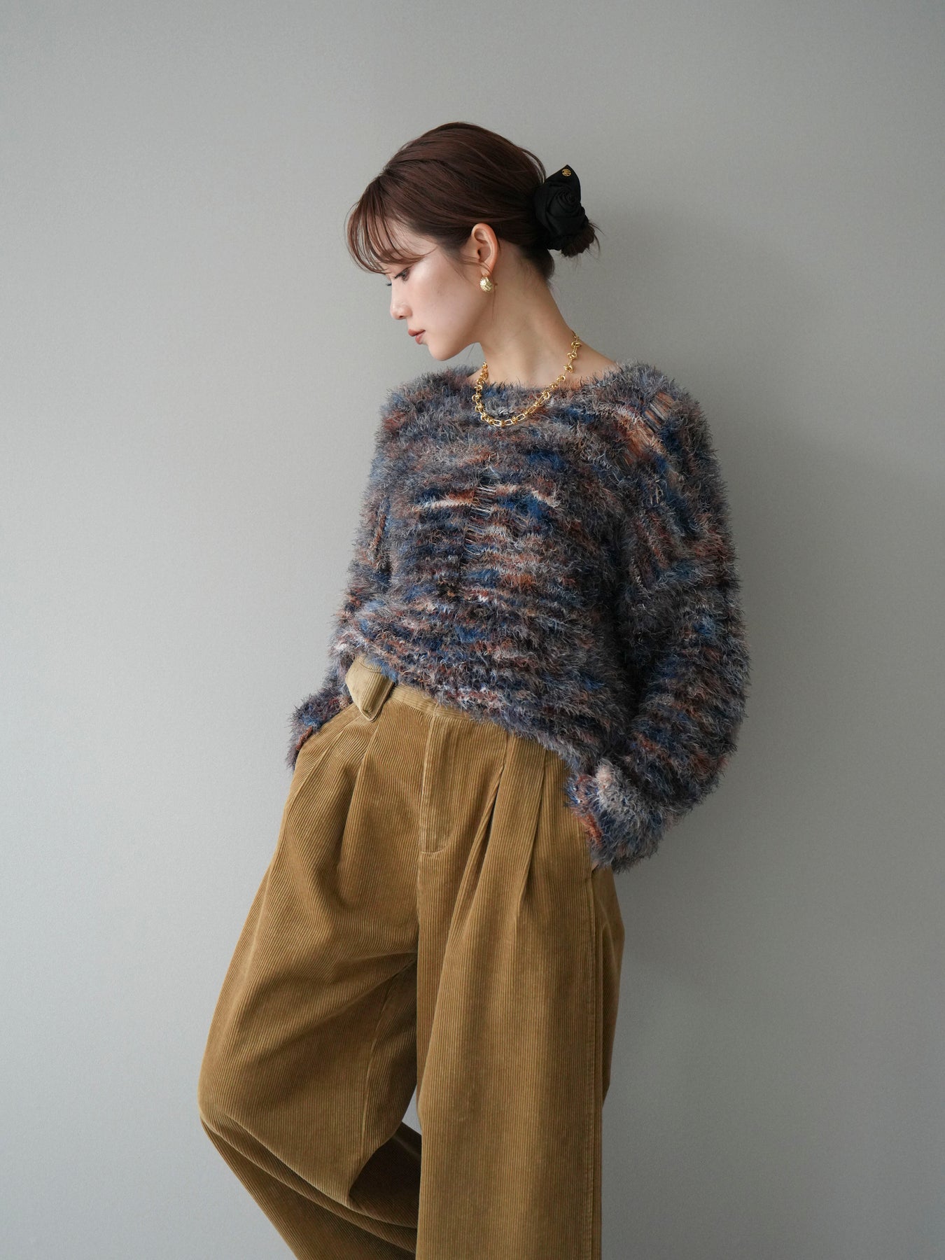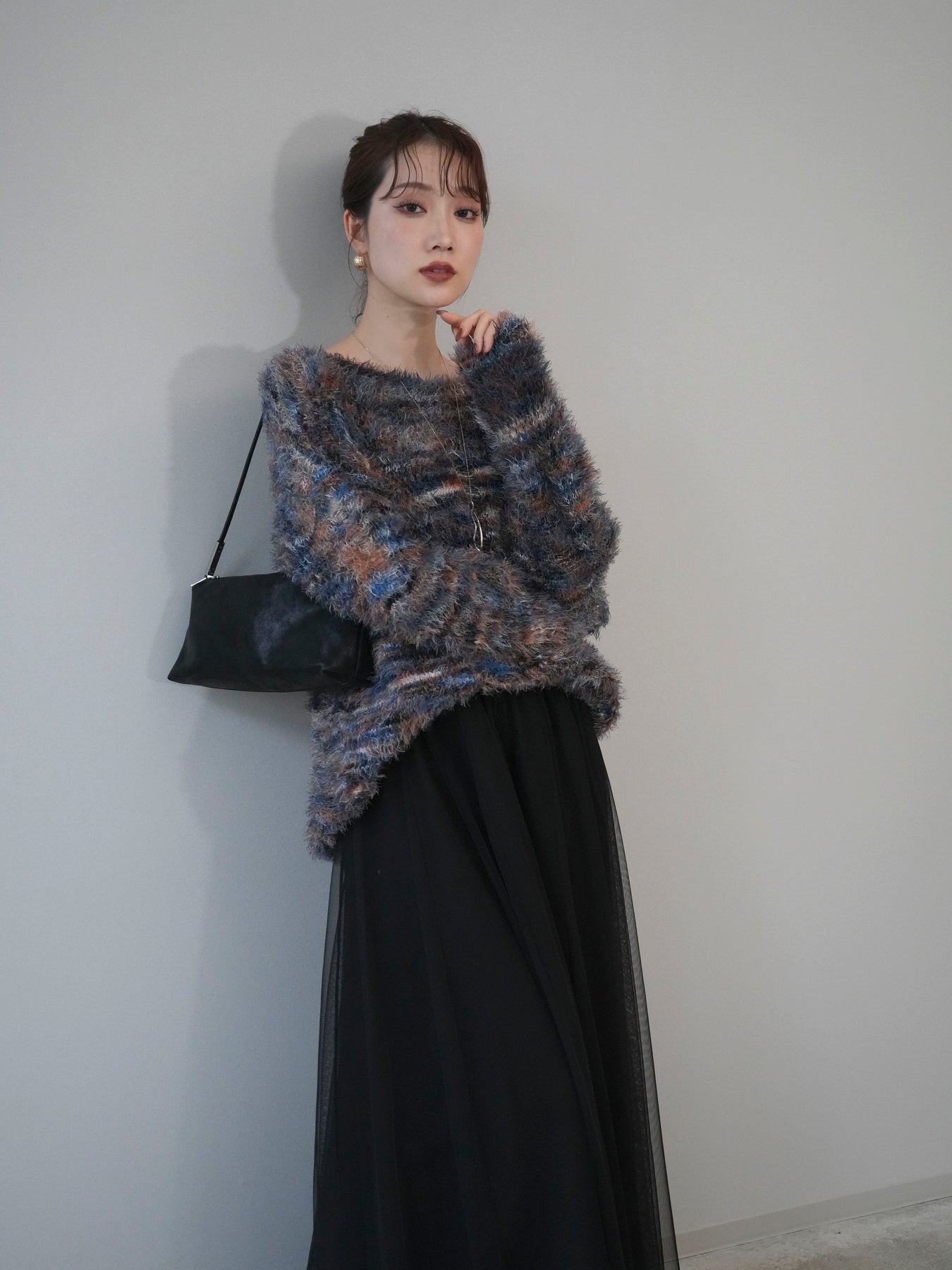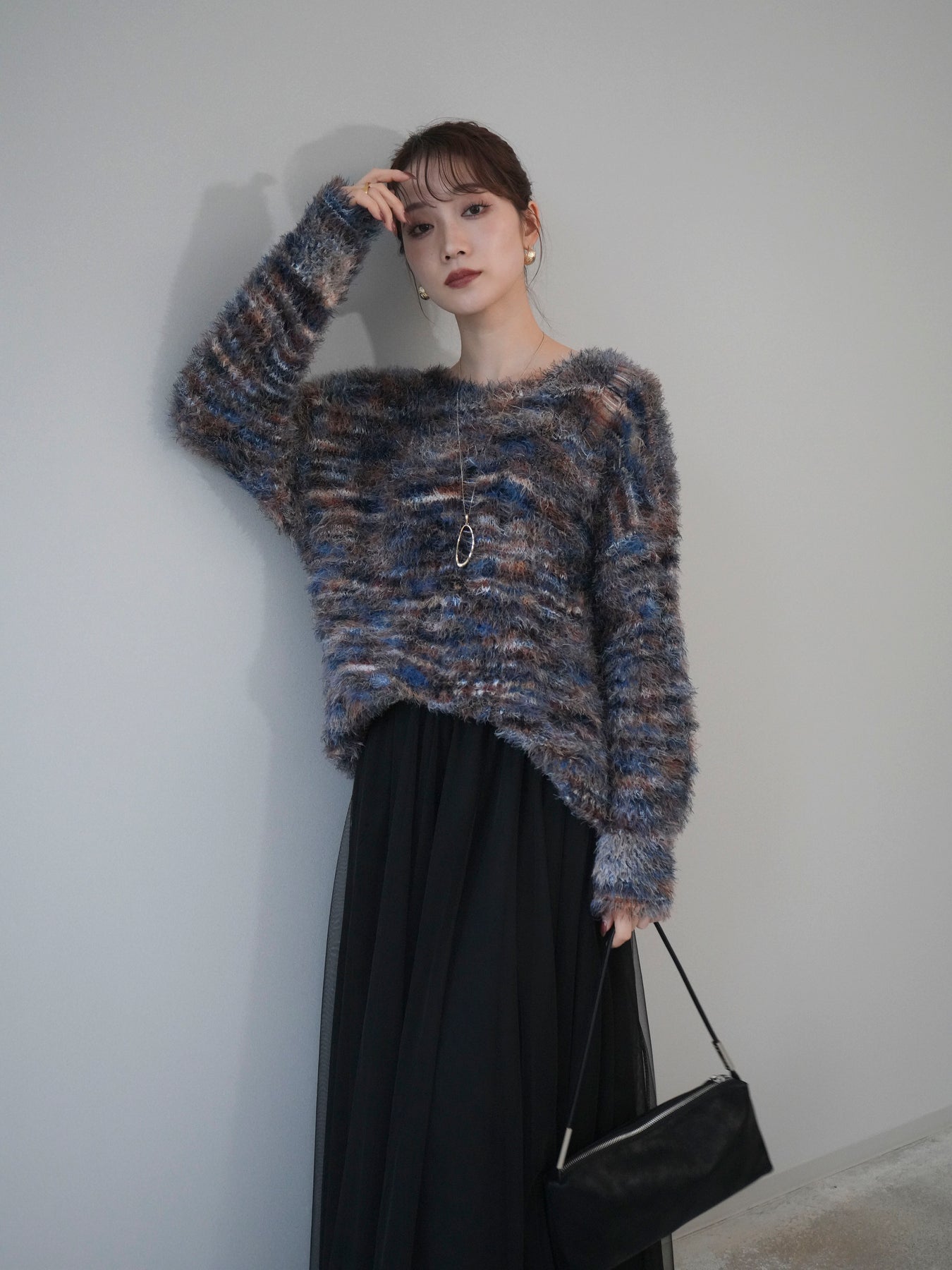 ふんわりとしたシャギー素材とミックスカラーが魅力のルーズニットプルオーバー。 奥行きのある色合いと柔らかな質感が、シーズンムードを高めてくれます。 ゆったりとしたシルエットが抜け感を演出し、リラクシーながらも女性らしい印象に。 軽やかな着心地で、1枚で着るのはもちろん、シャツやハイネックとのレイヤードもおすすめです。 デニムやスカートなど、どんなボトムともバランス良く合わせられる万能アイテムです。 ※ボトムス、キャミソール(インナー)以外の商品は一律でインナーは付属していません。