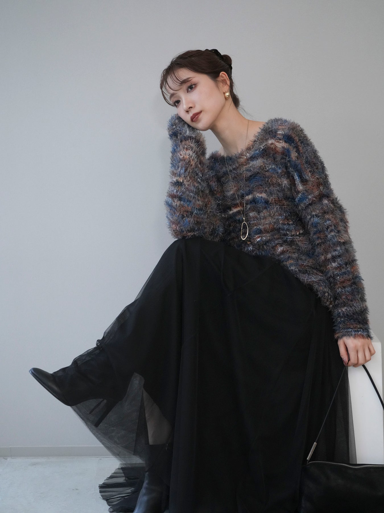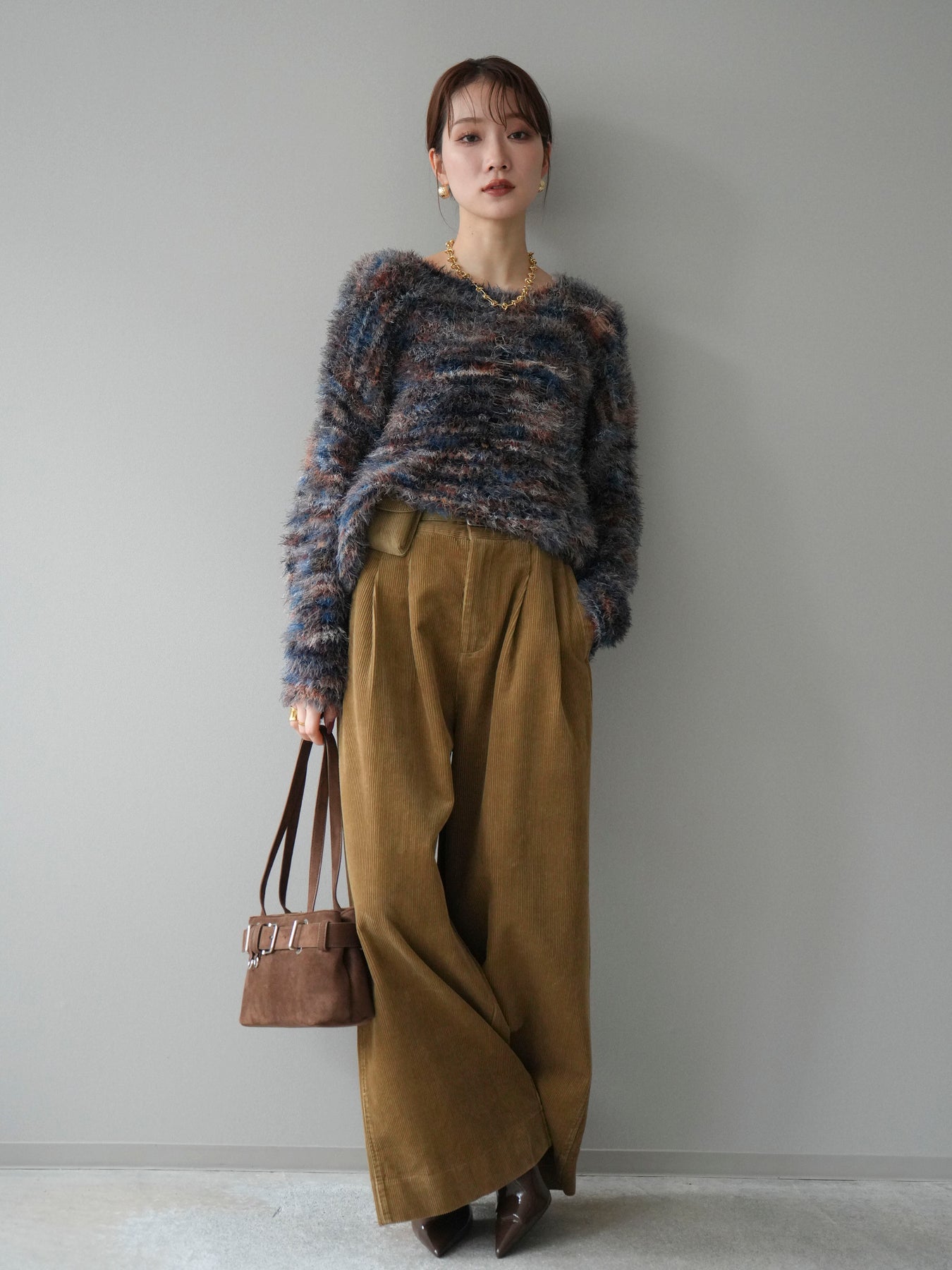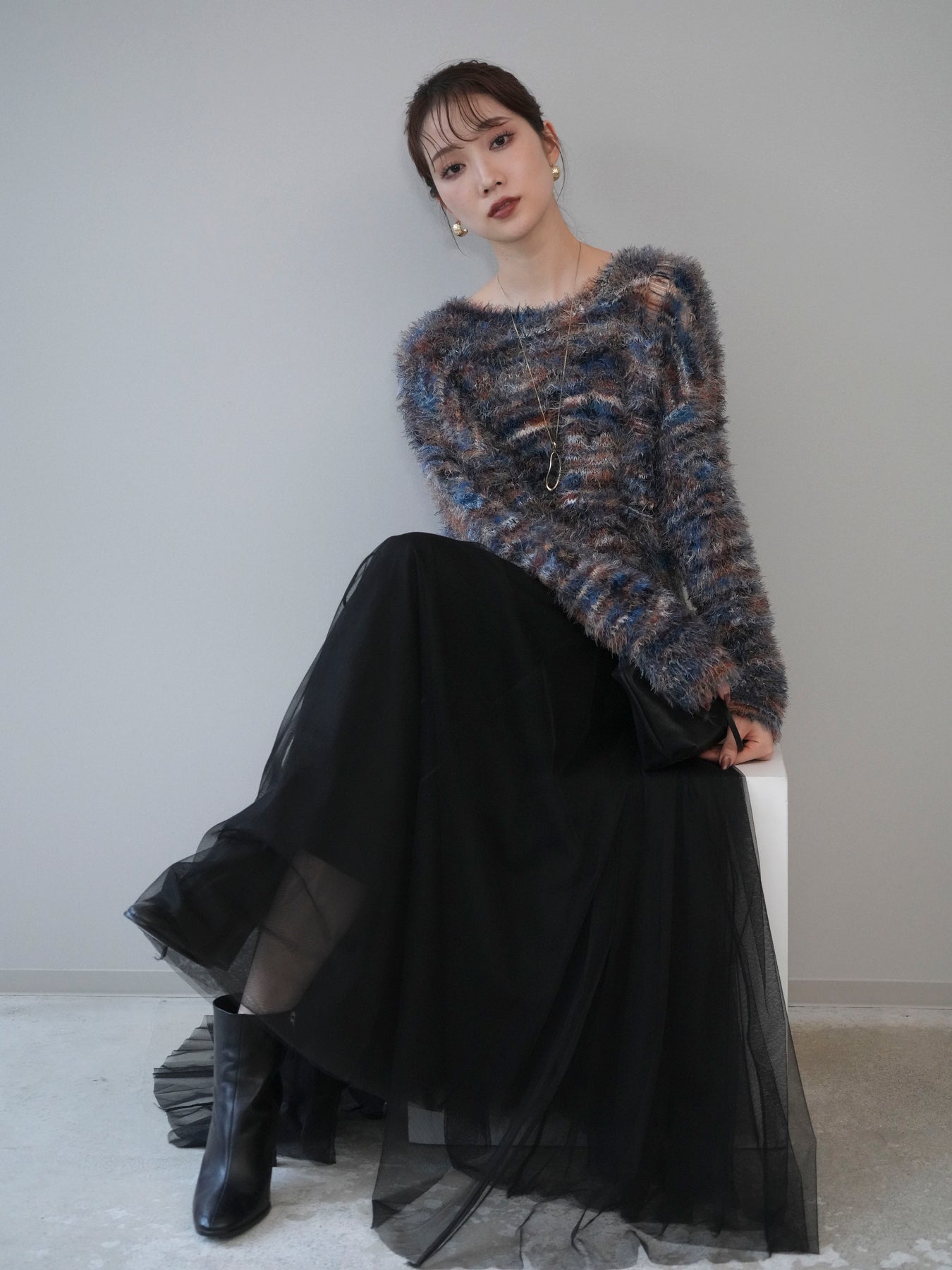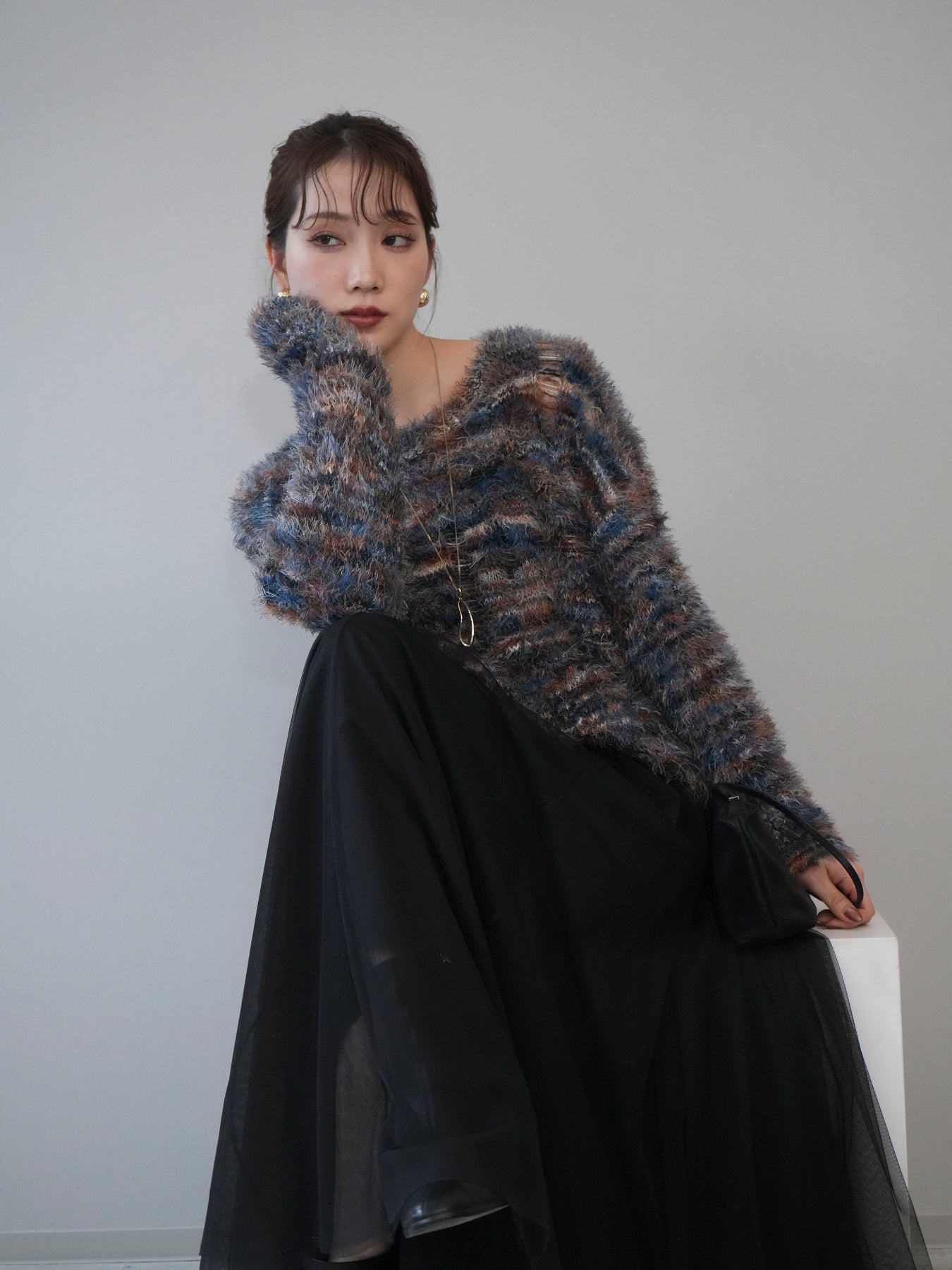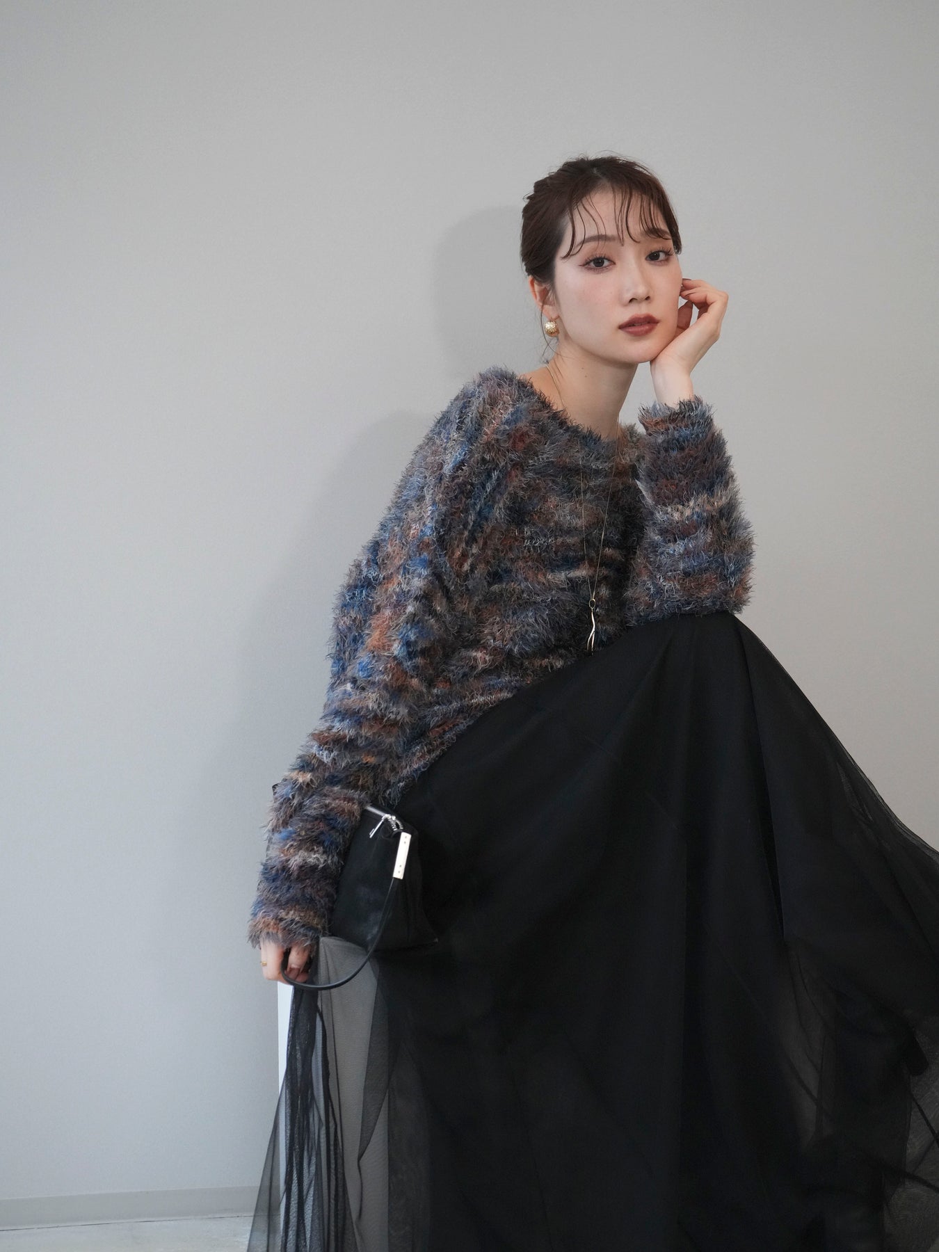 ふんわりとしたシャギー素材とミックスカラーが魅力のルーズニットプルオーバー。 奥行きのある色合いと柔らかな質感が、シーズンムードを高めてくれます。 ゆったりとしたシルエットが抜け感を演出し、リラクシーながらも女性らしい印象に。 軽やかな着心地で、1枚で着るのはもちろん、シャツやハイネックとのレイヤードもおすすめです。 デニムやスカートなど、どんなボトムともバランス良く合わせられる万能アイテムです。 ※ボトムス、キャミソール(インナー)以外の商品は一律でインナーは付属していません。