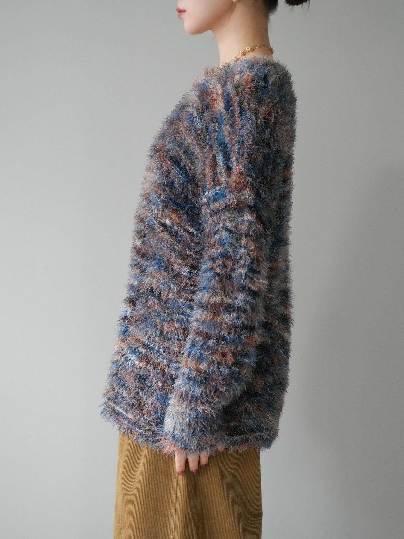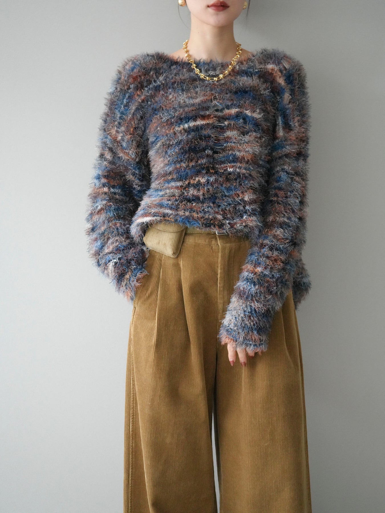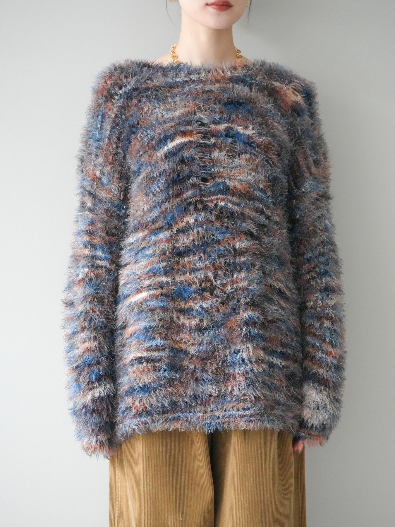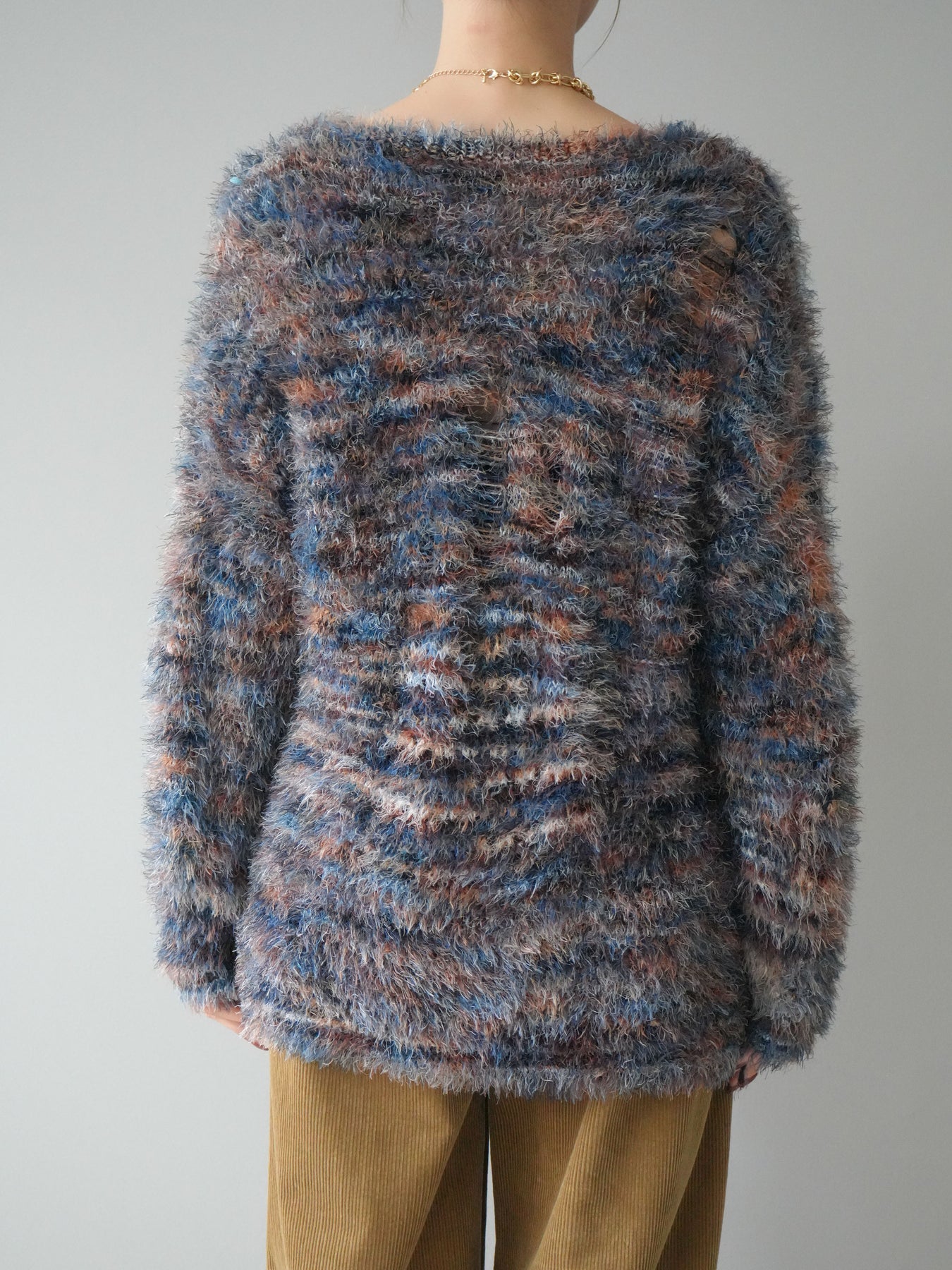 [予約]ミックスシャギールーズニットプルオーバー/blue