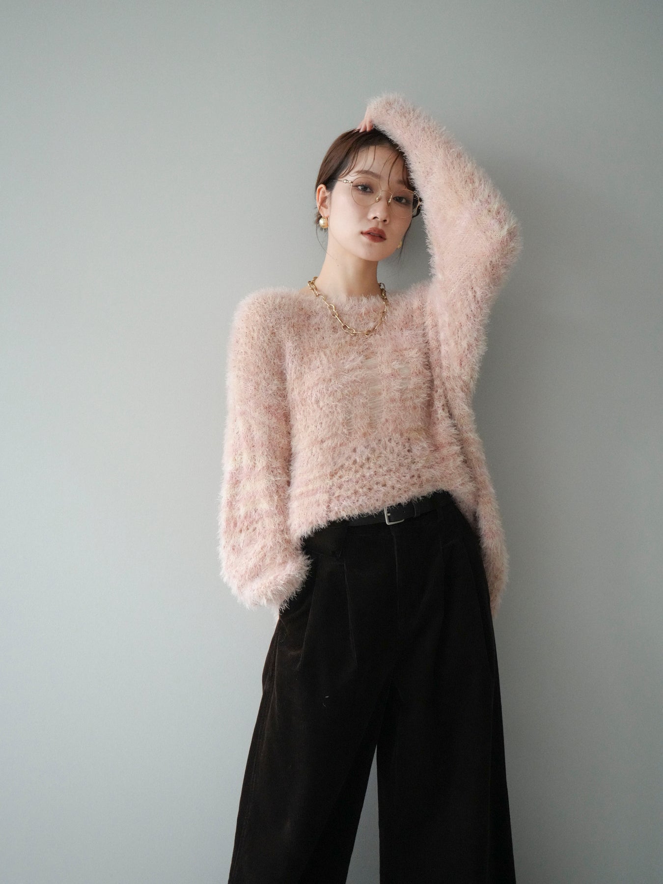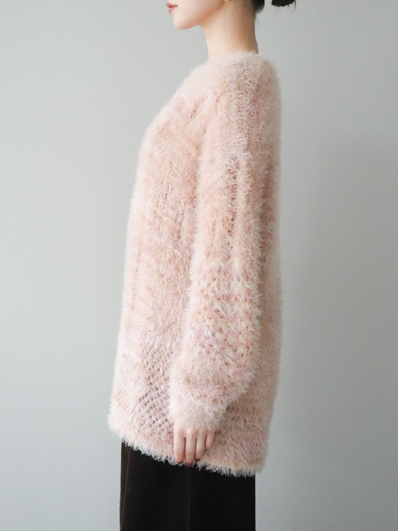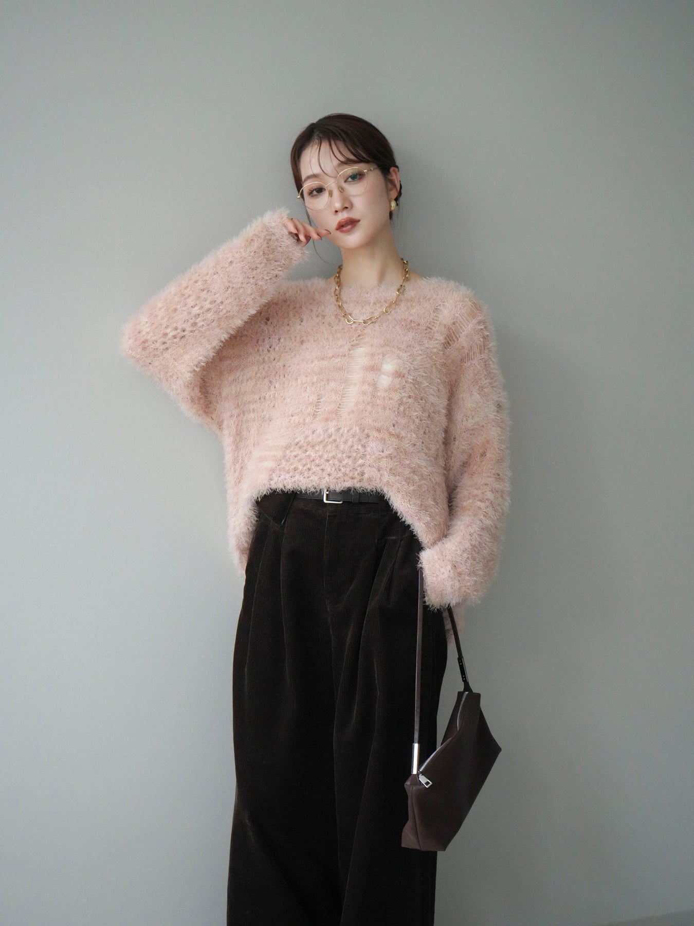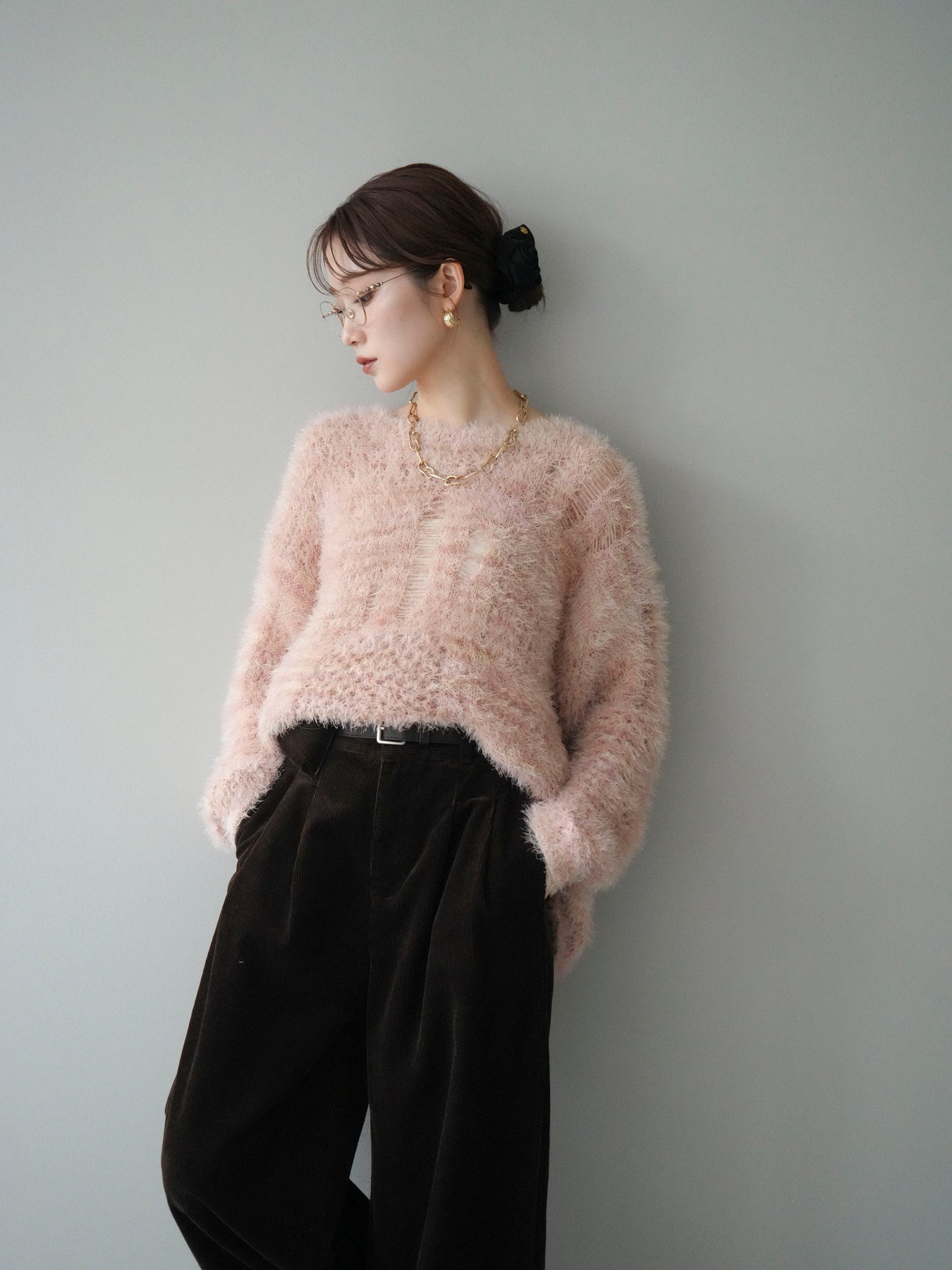 [予約]ミックスシャギールーズニットプルオーバー/pink