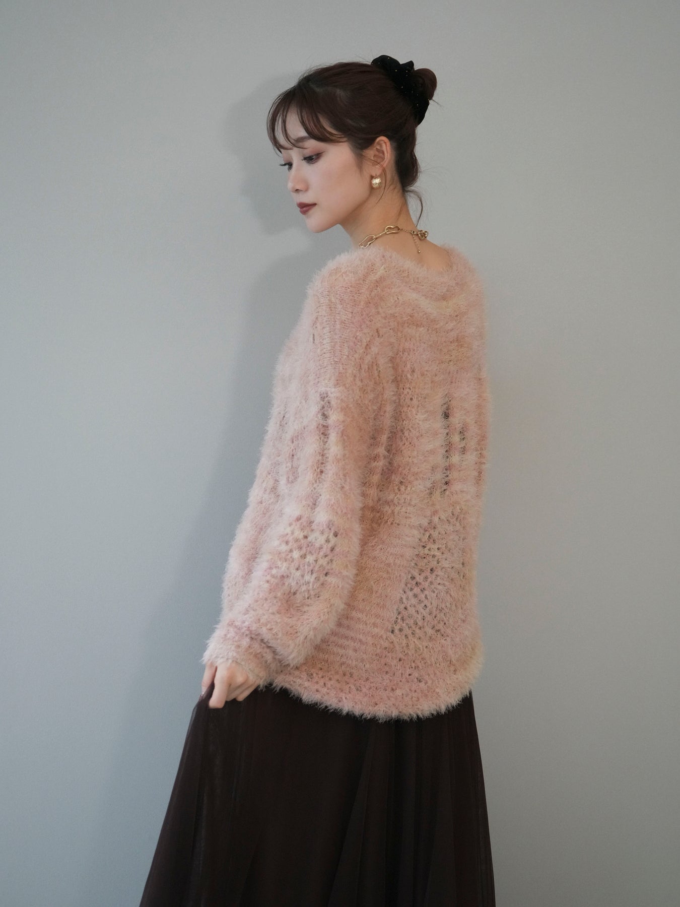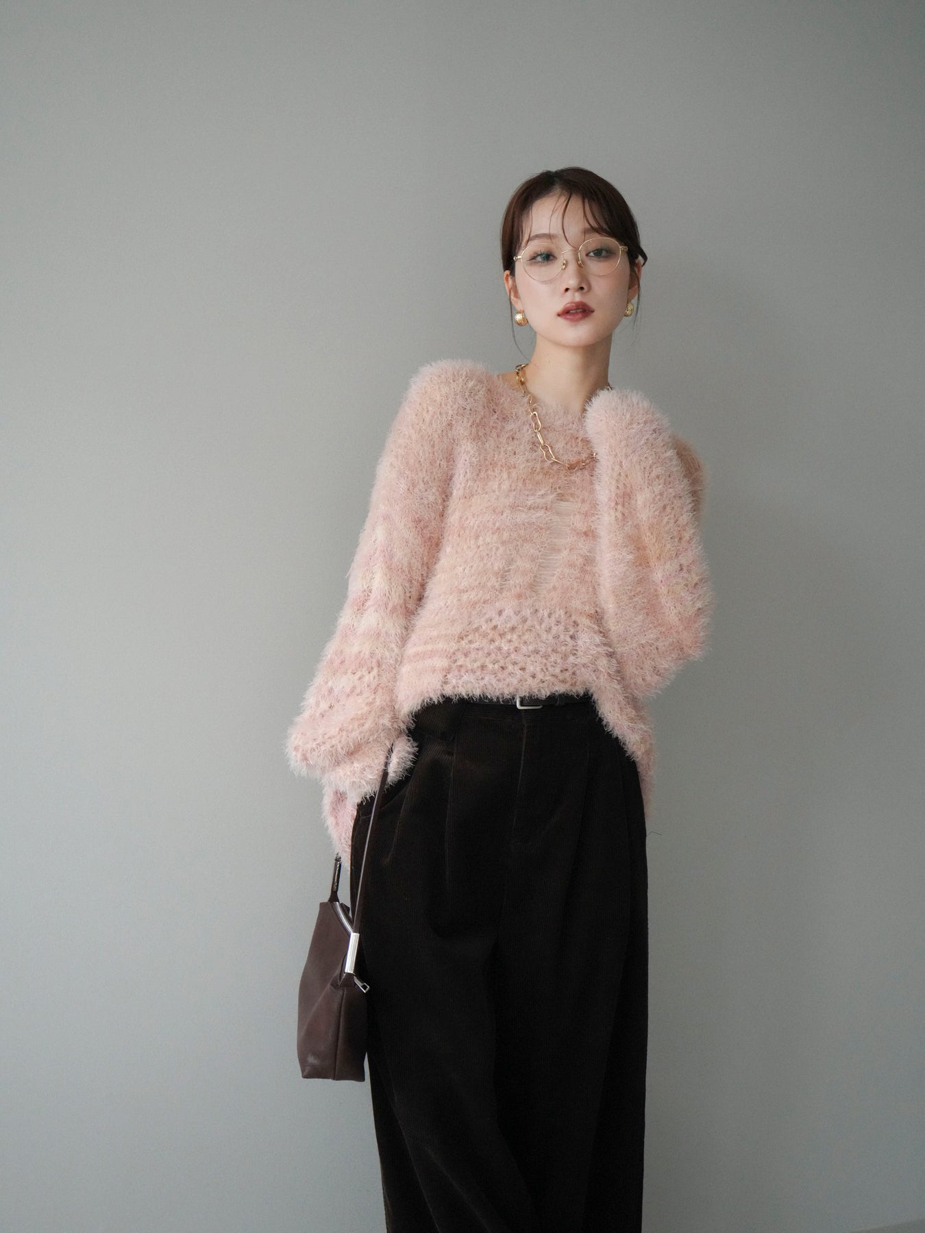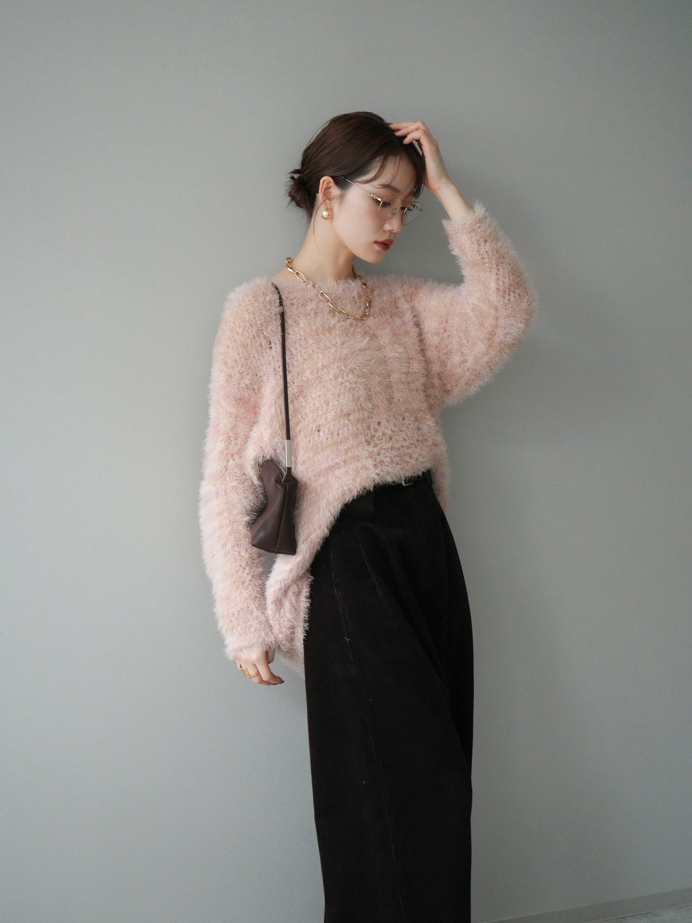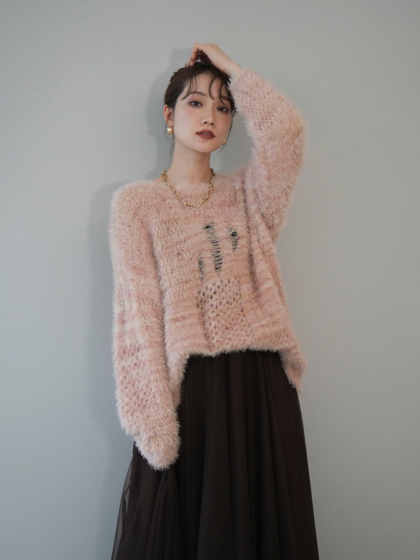 [予約]ミックスシャギールーズニットプルオーバー/pink