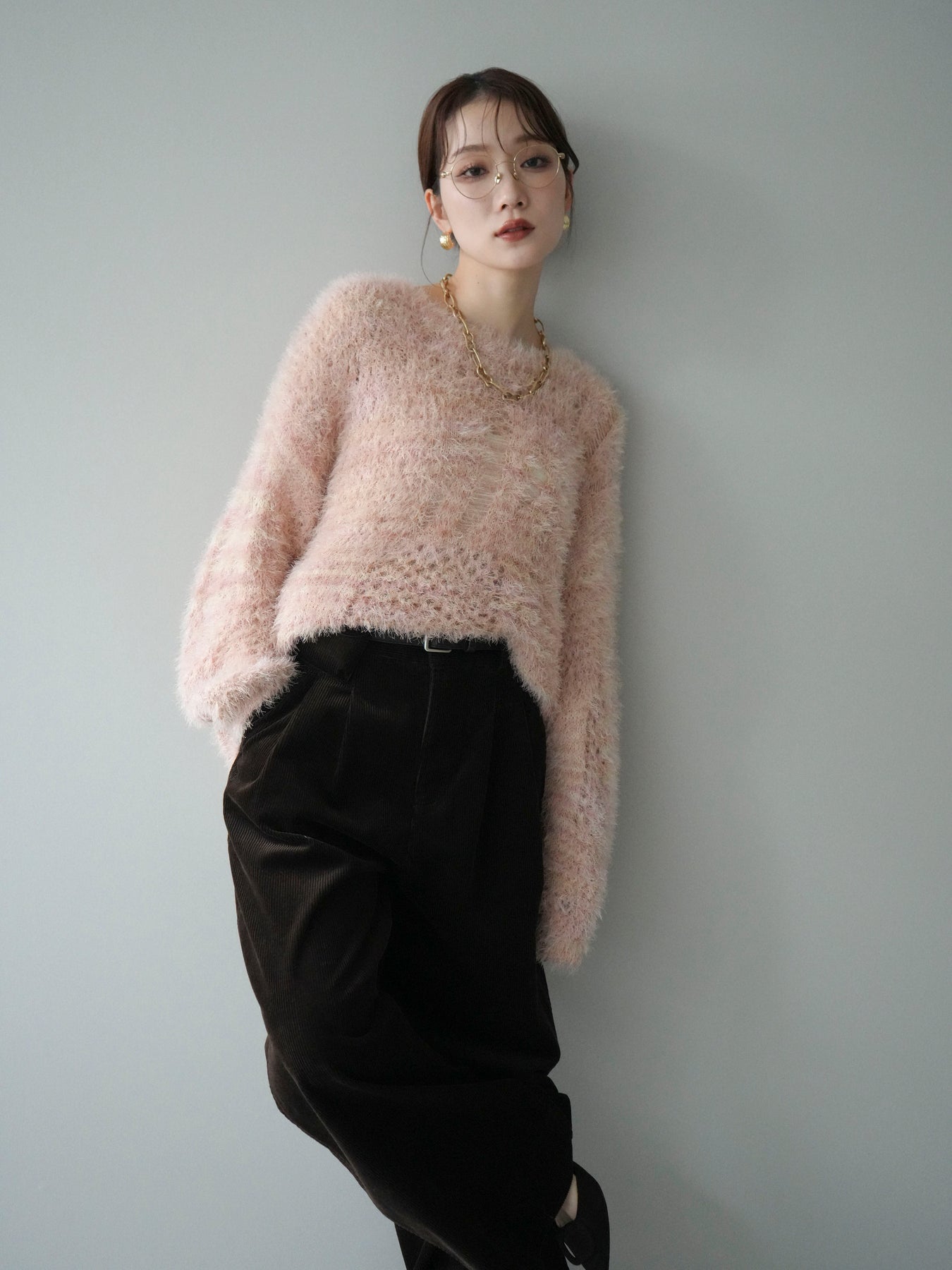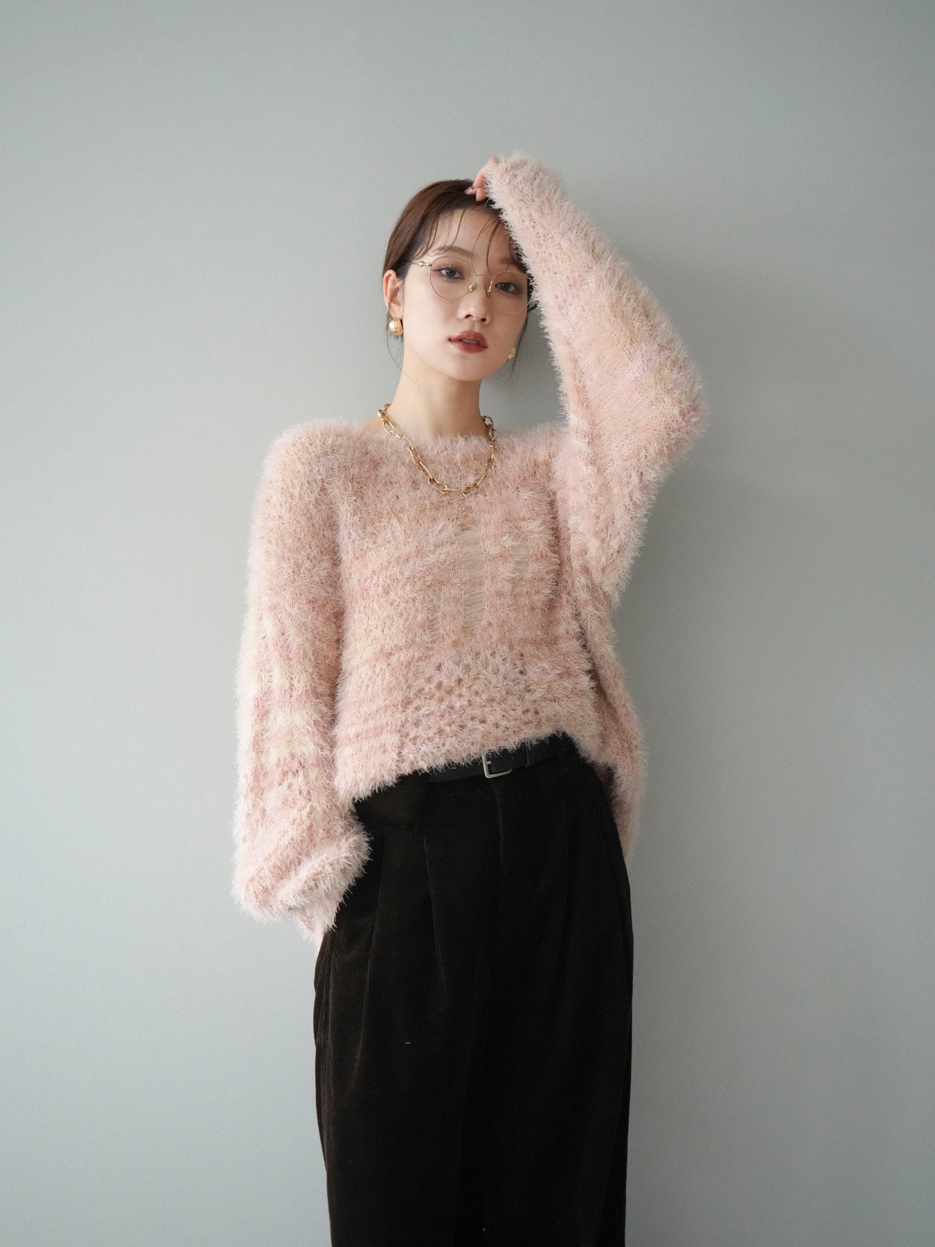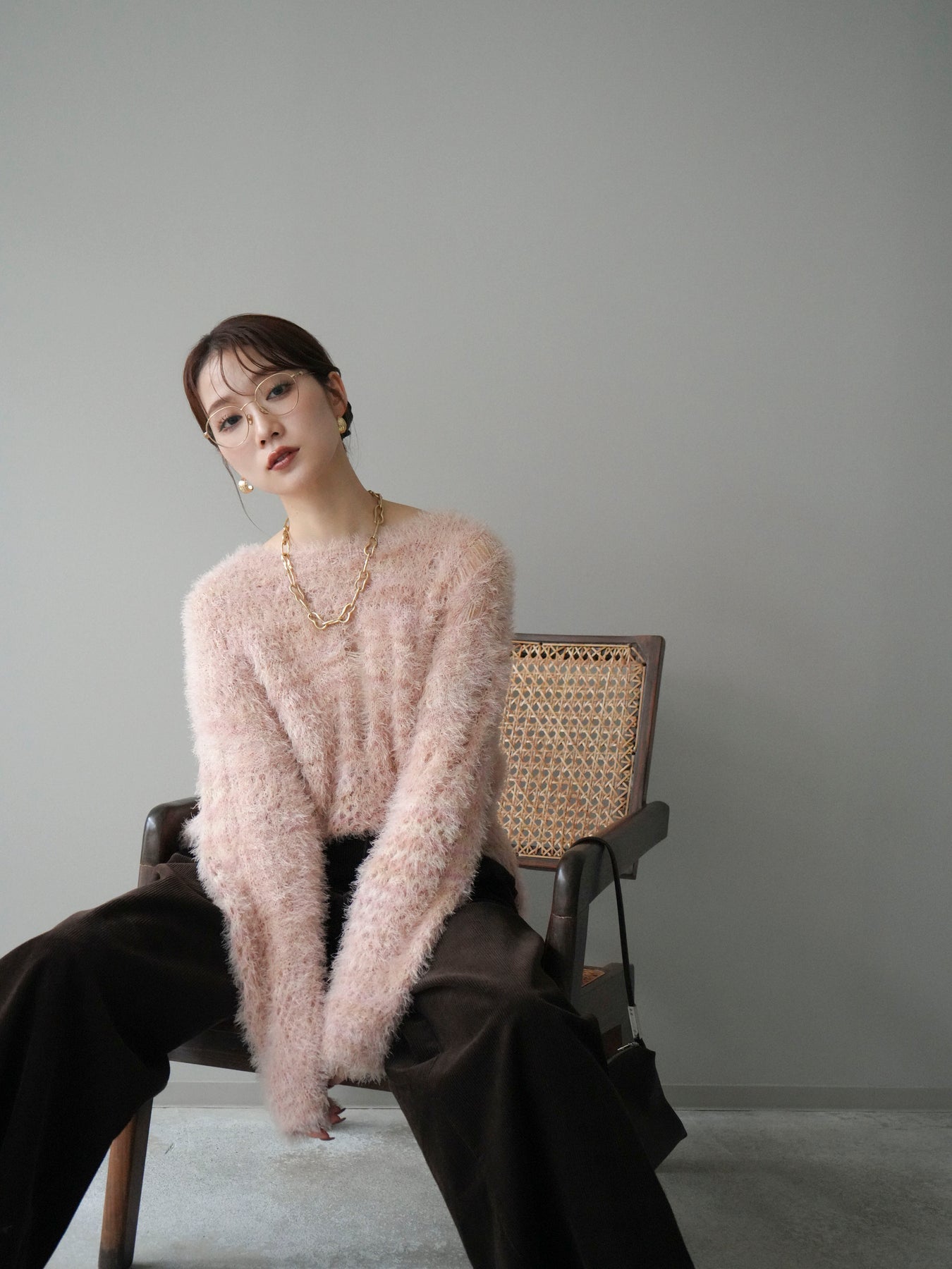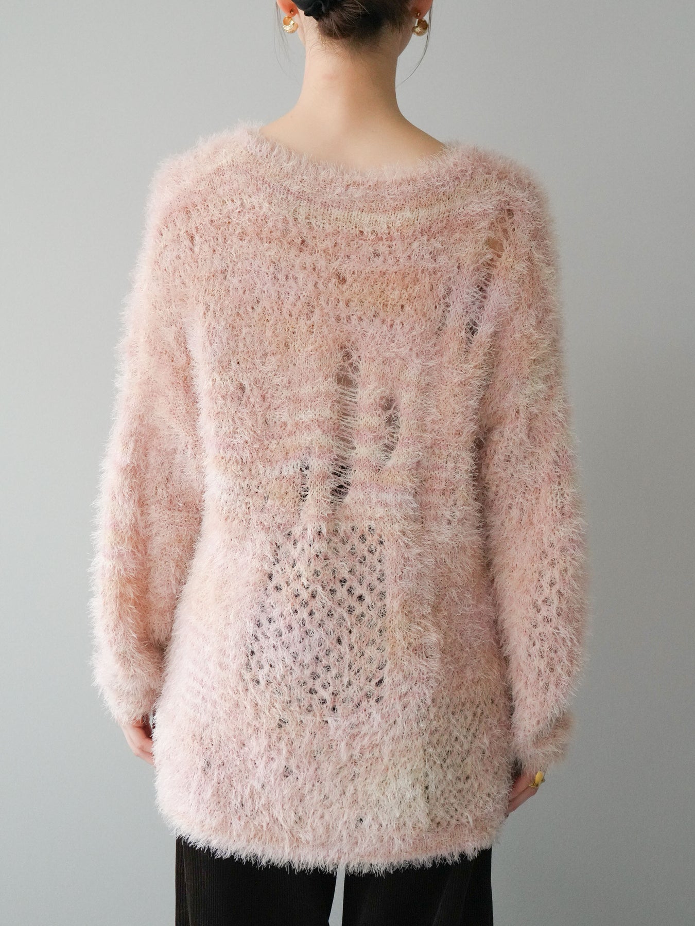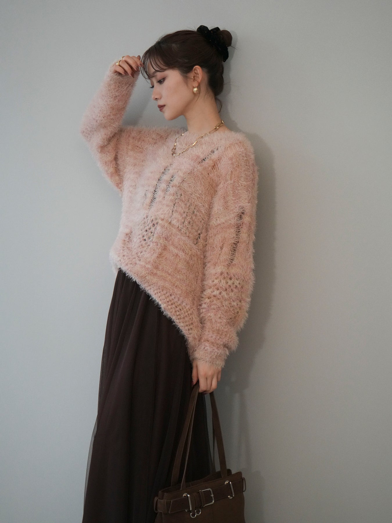 [予約]ミックスシャギールーズニットプルオーバー/pink