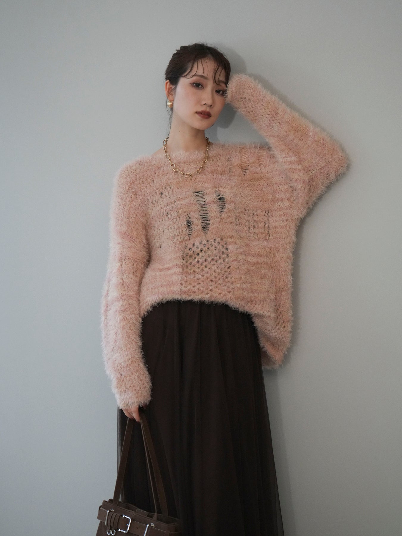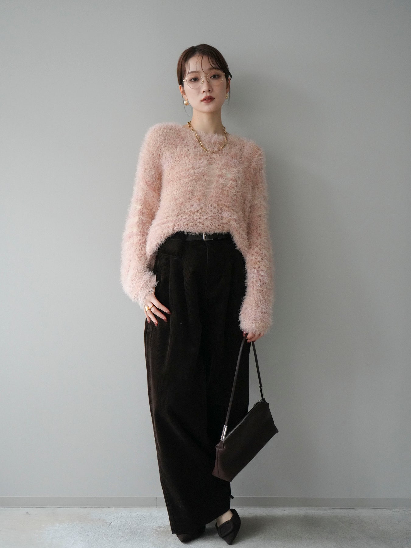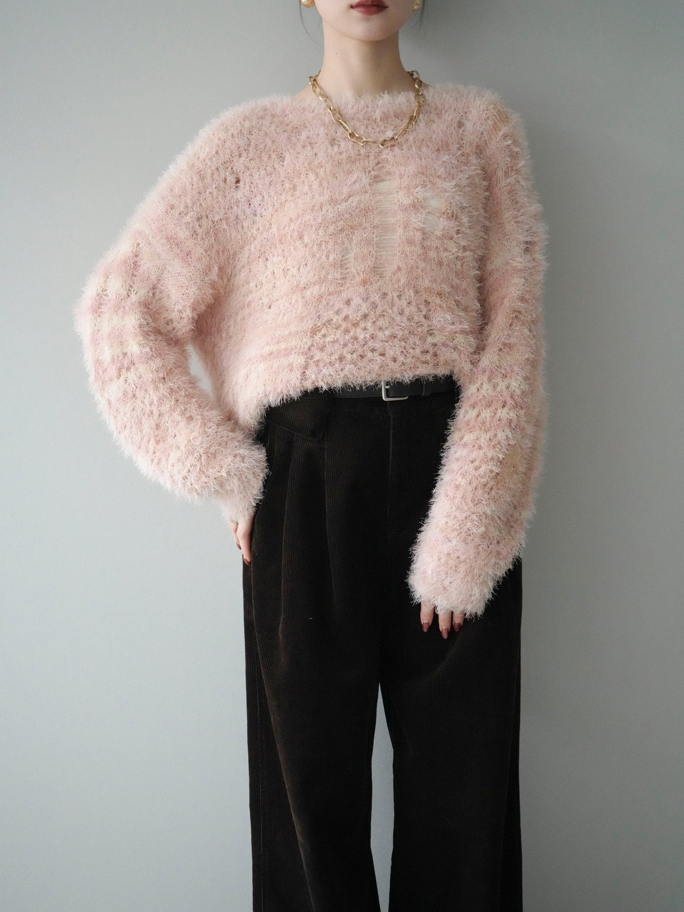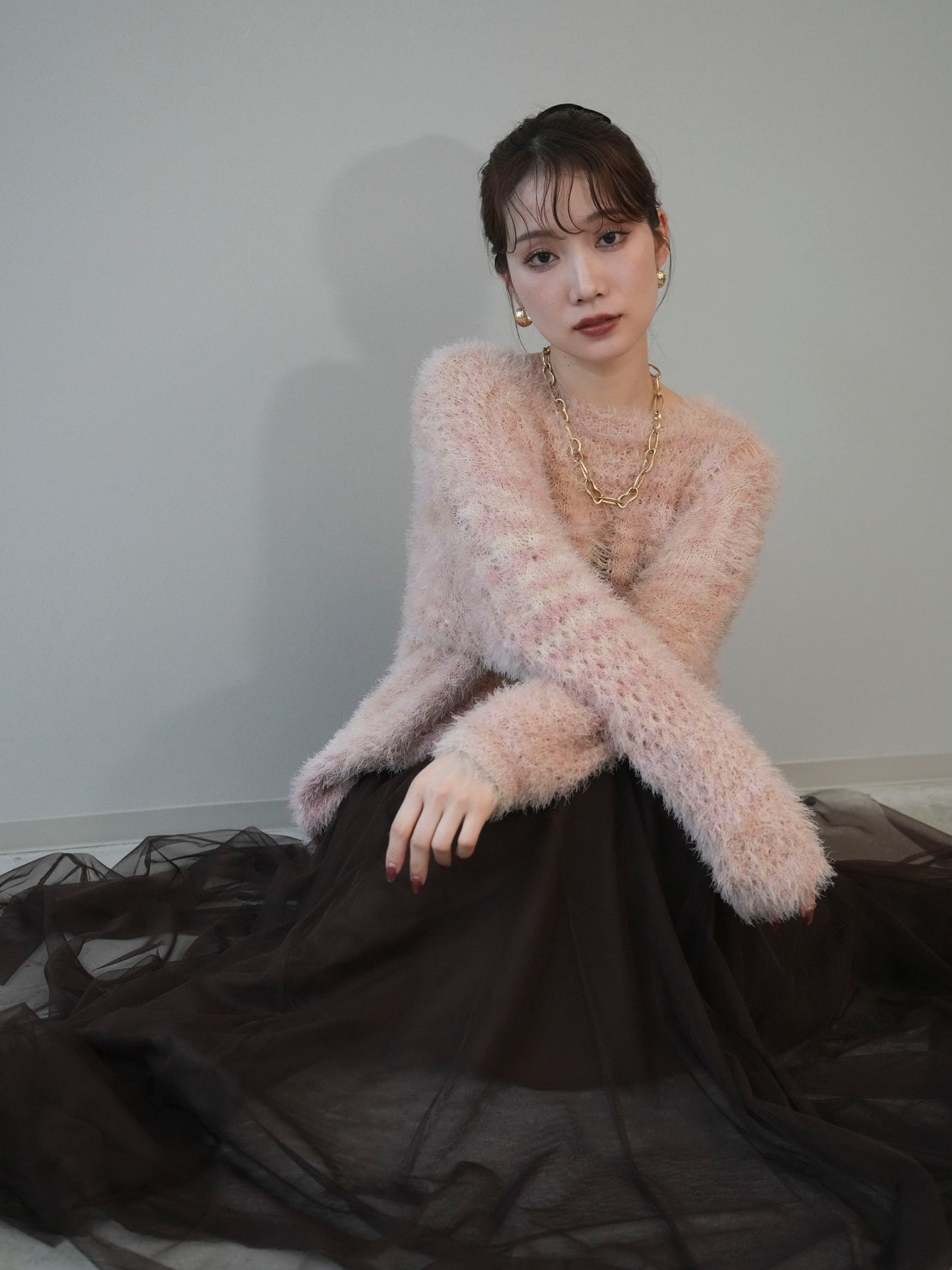 [予約]ミックスシャギールーズニットプルオーバー/pink
