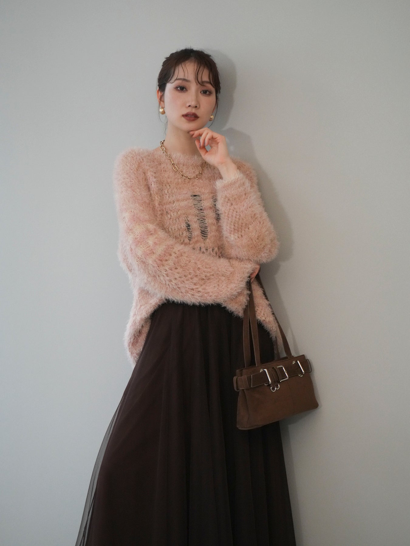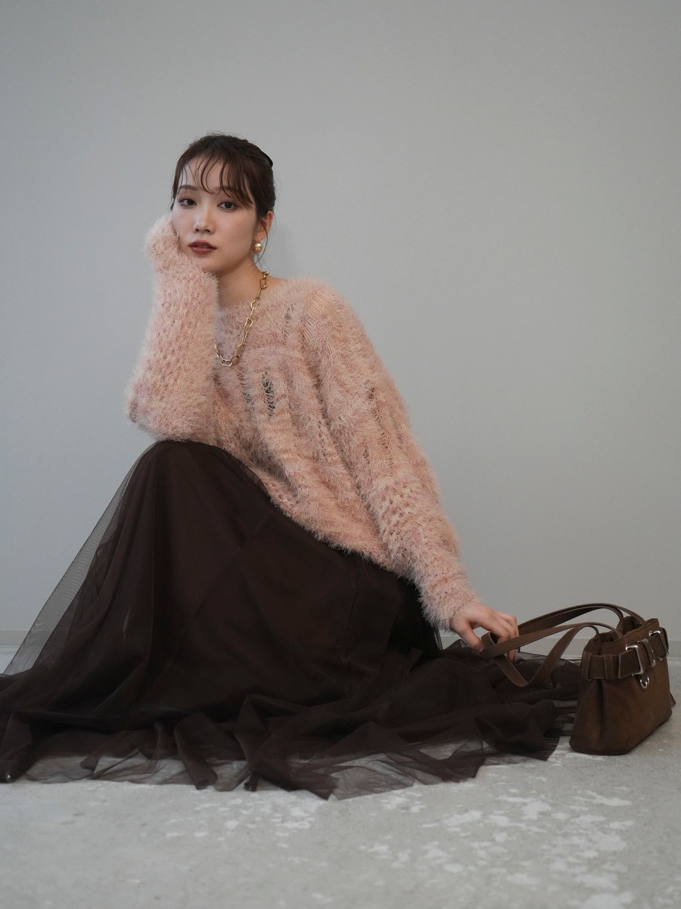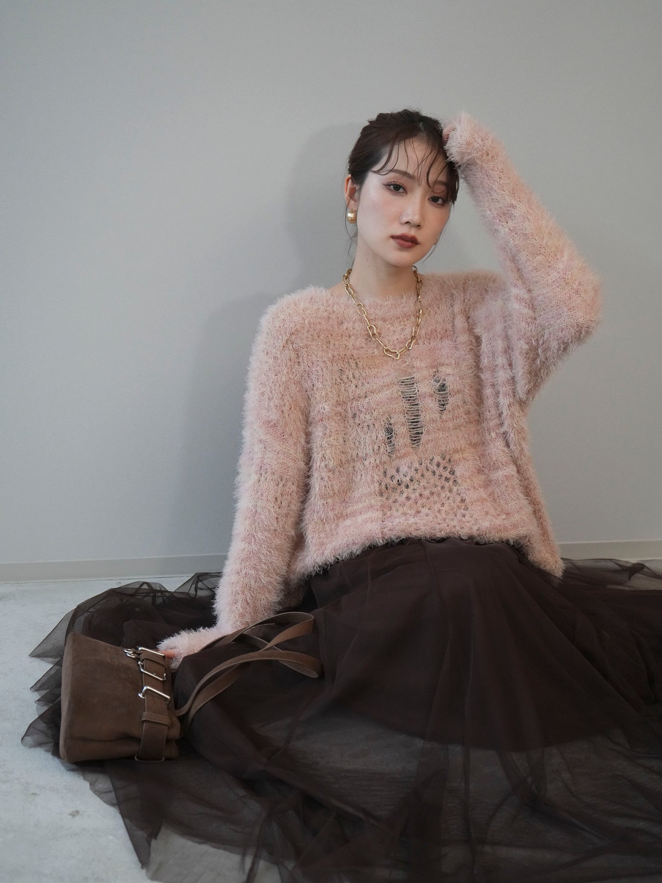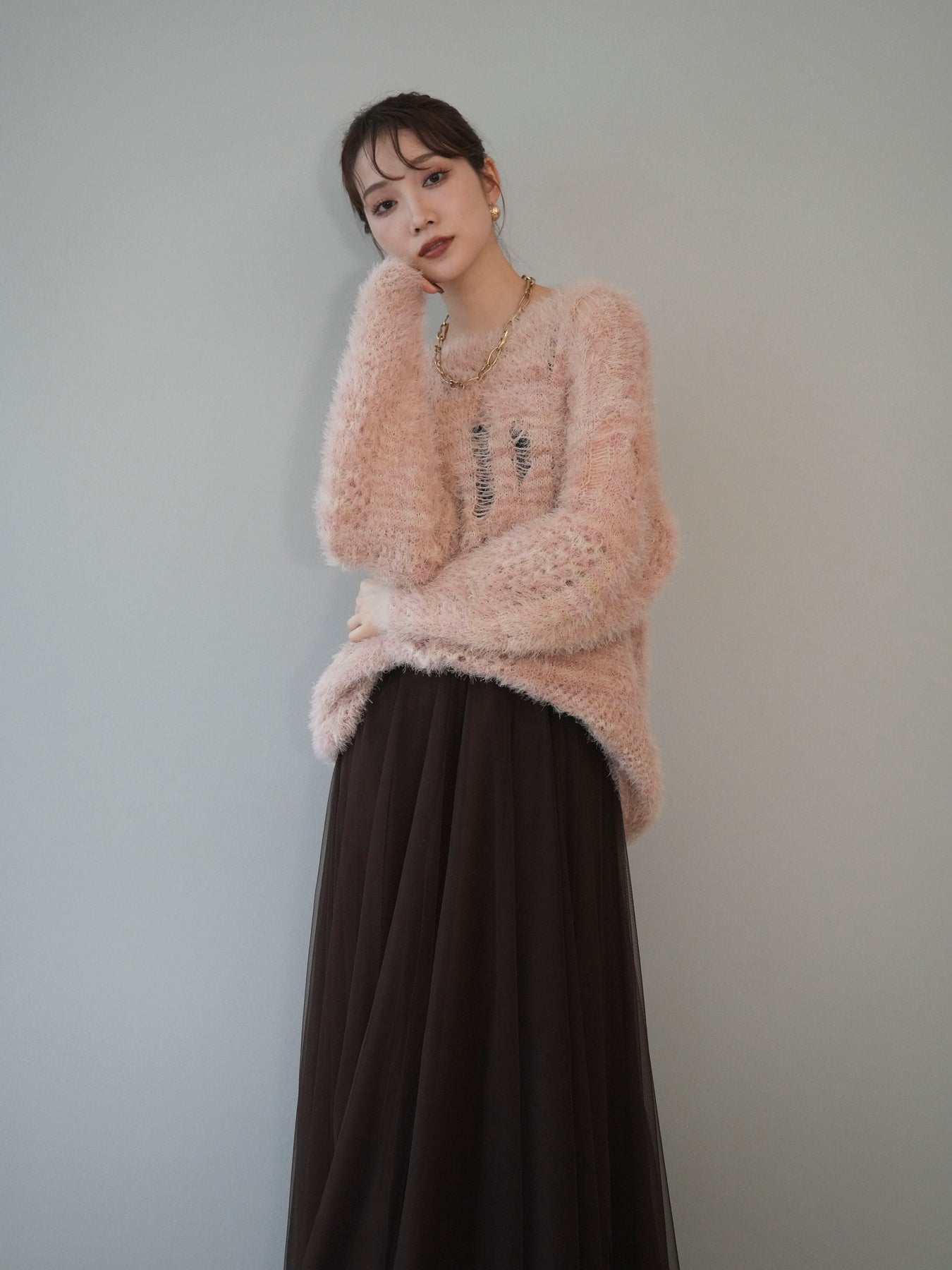 [予約]ミックスシャギールーズニットプルオーバー/pink
