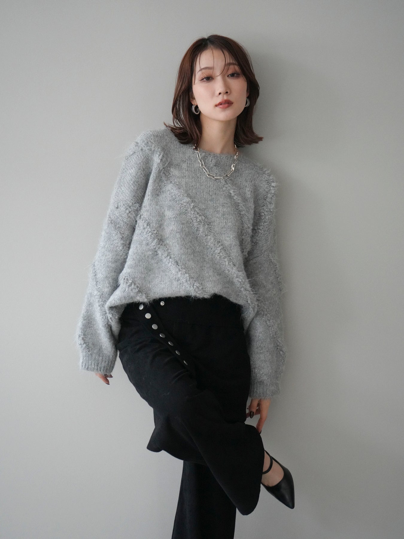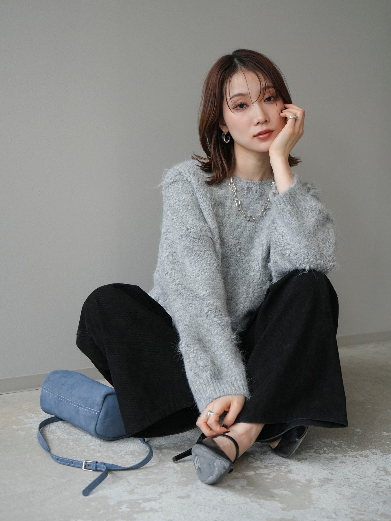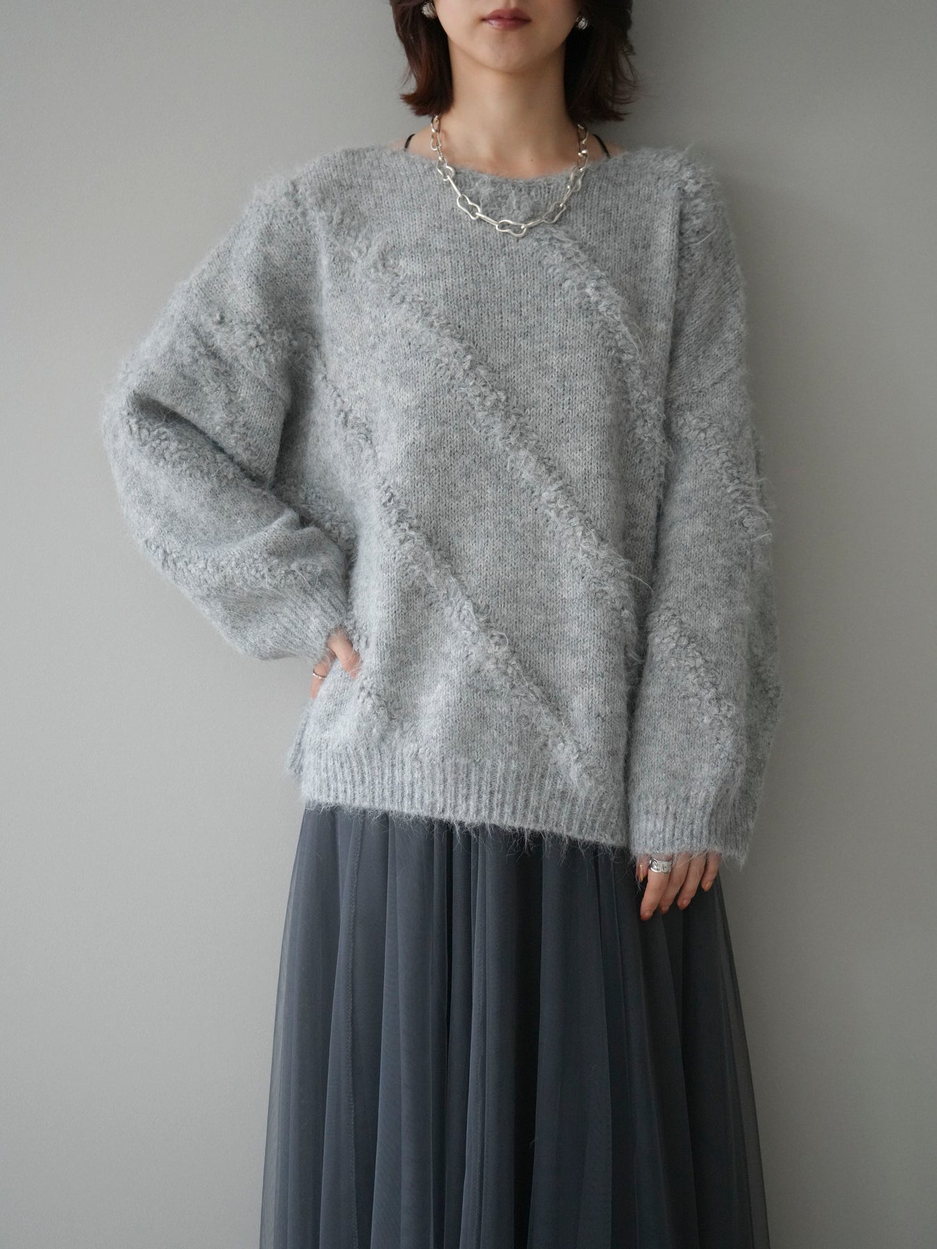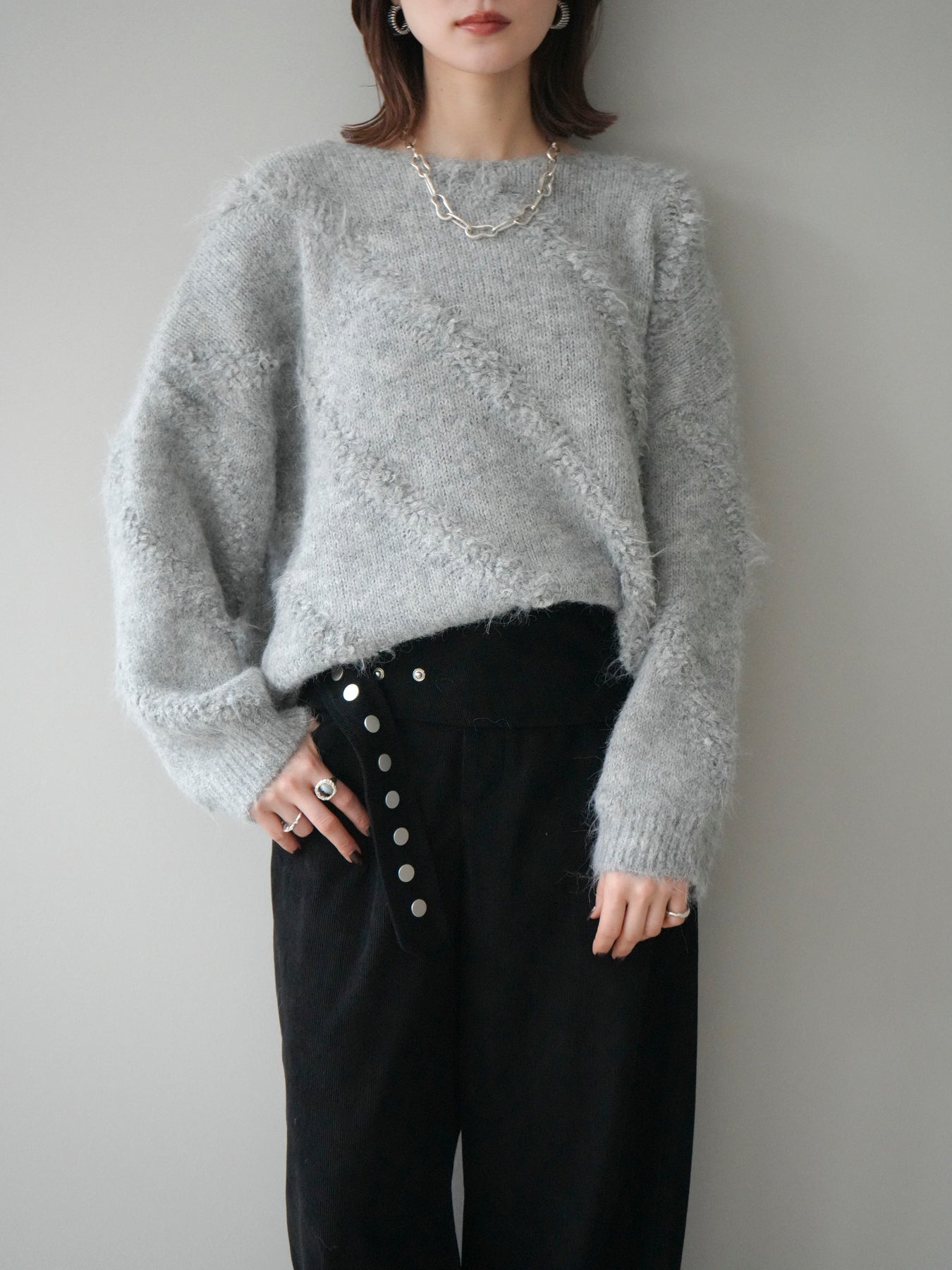 [予約]ブークレラインデザインニットプルオーバー/gray