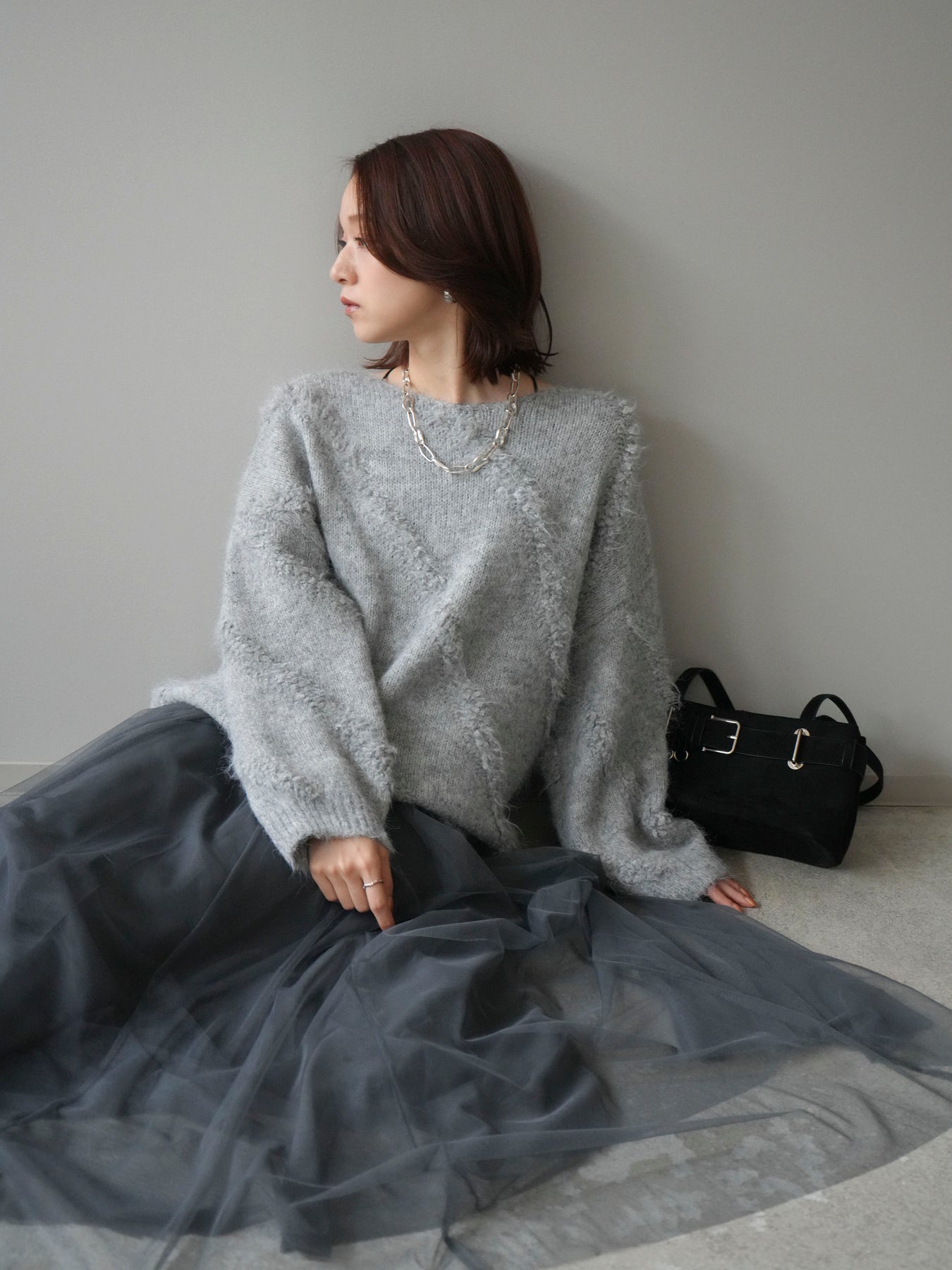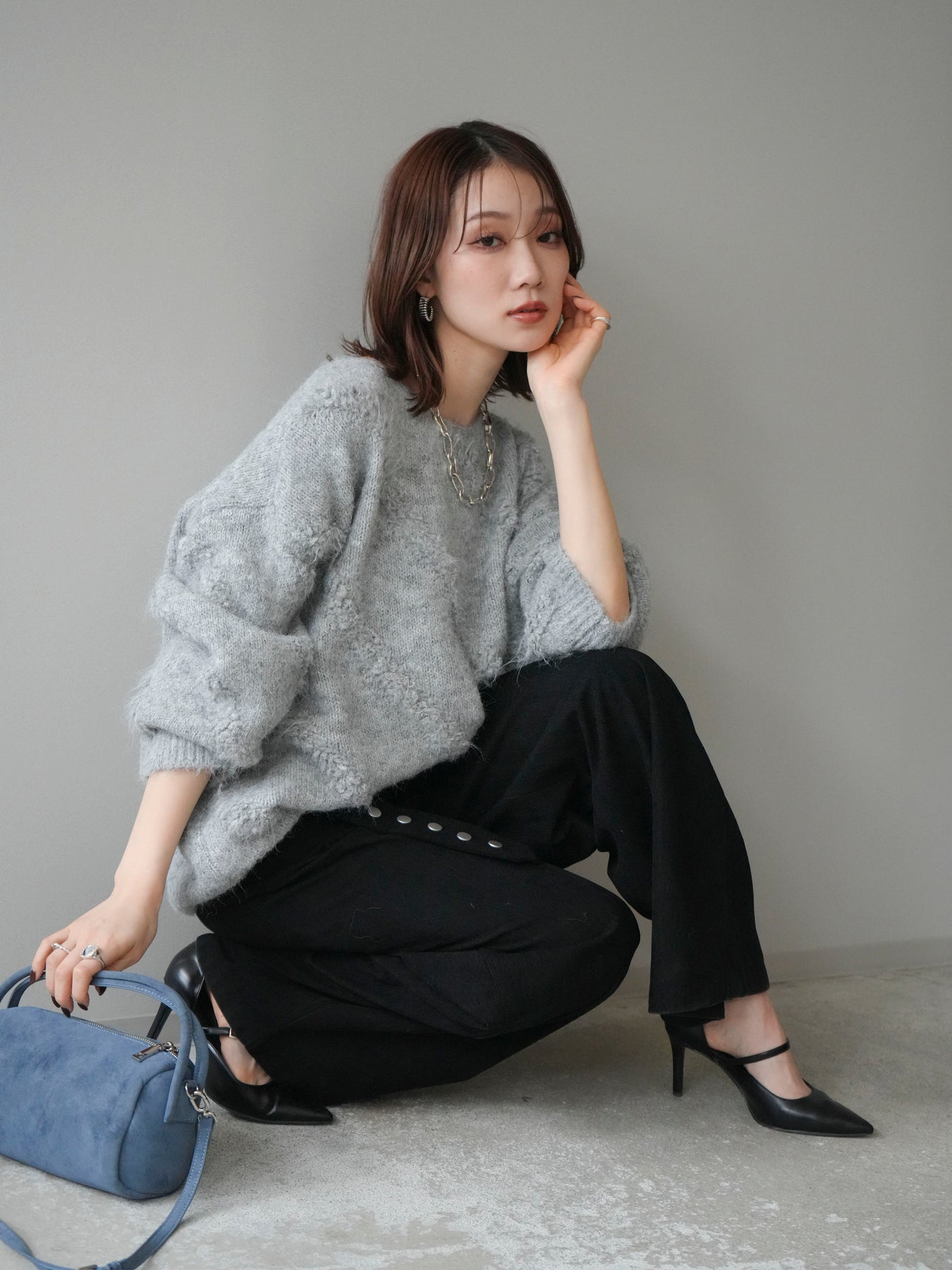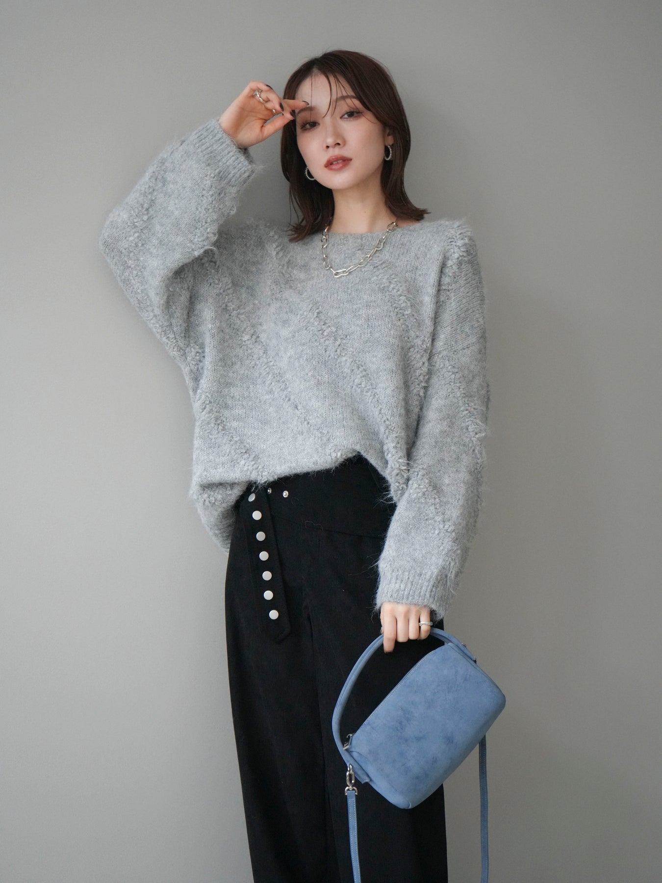 [予約]ブークレラインデザインニットプルオーバー/gray