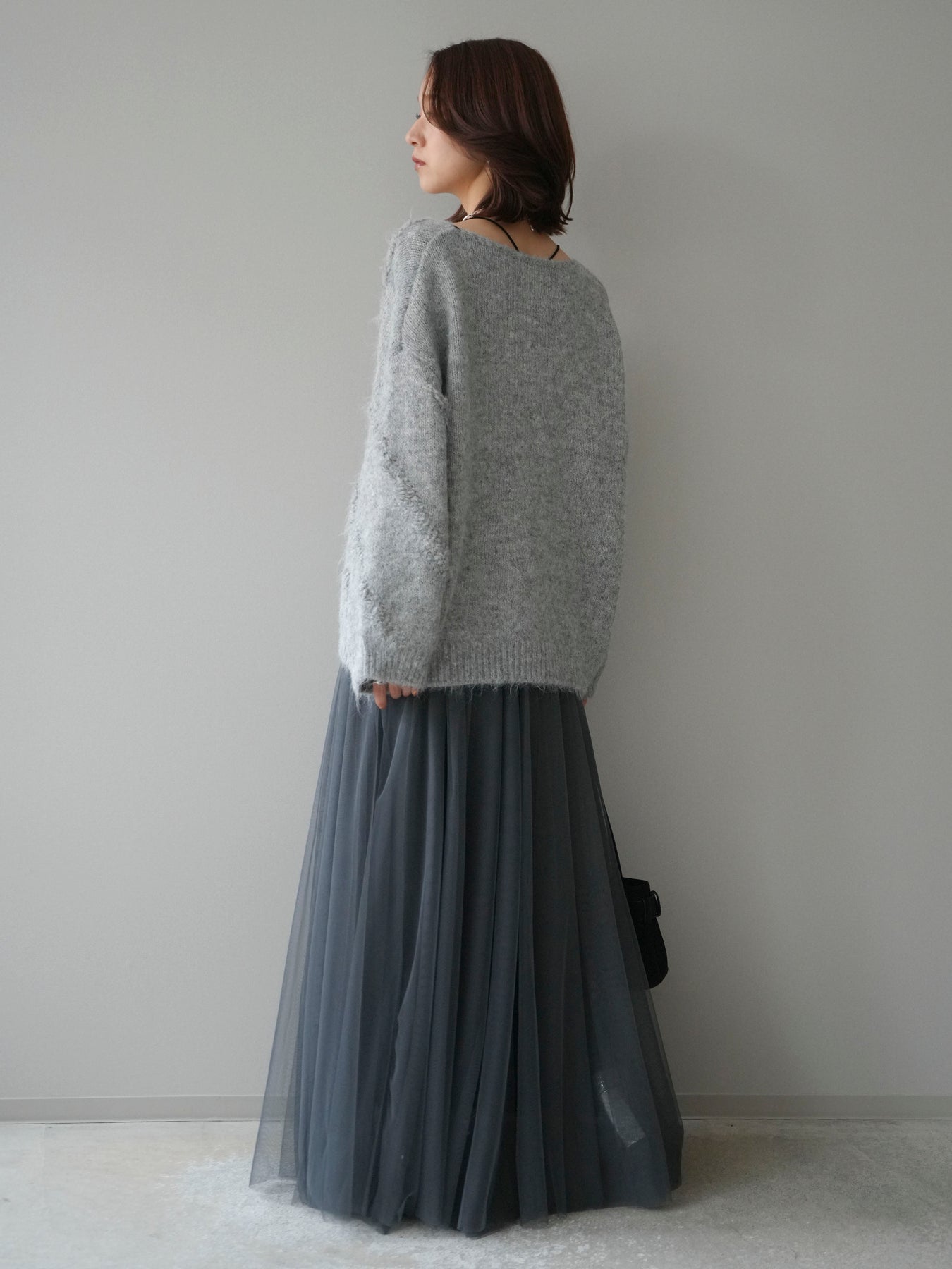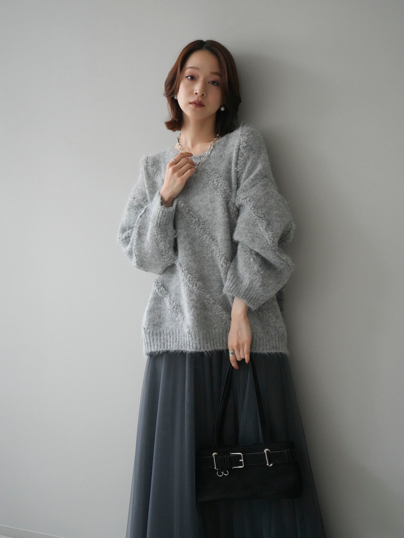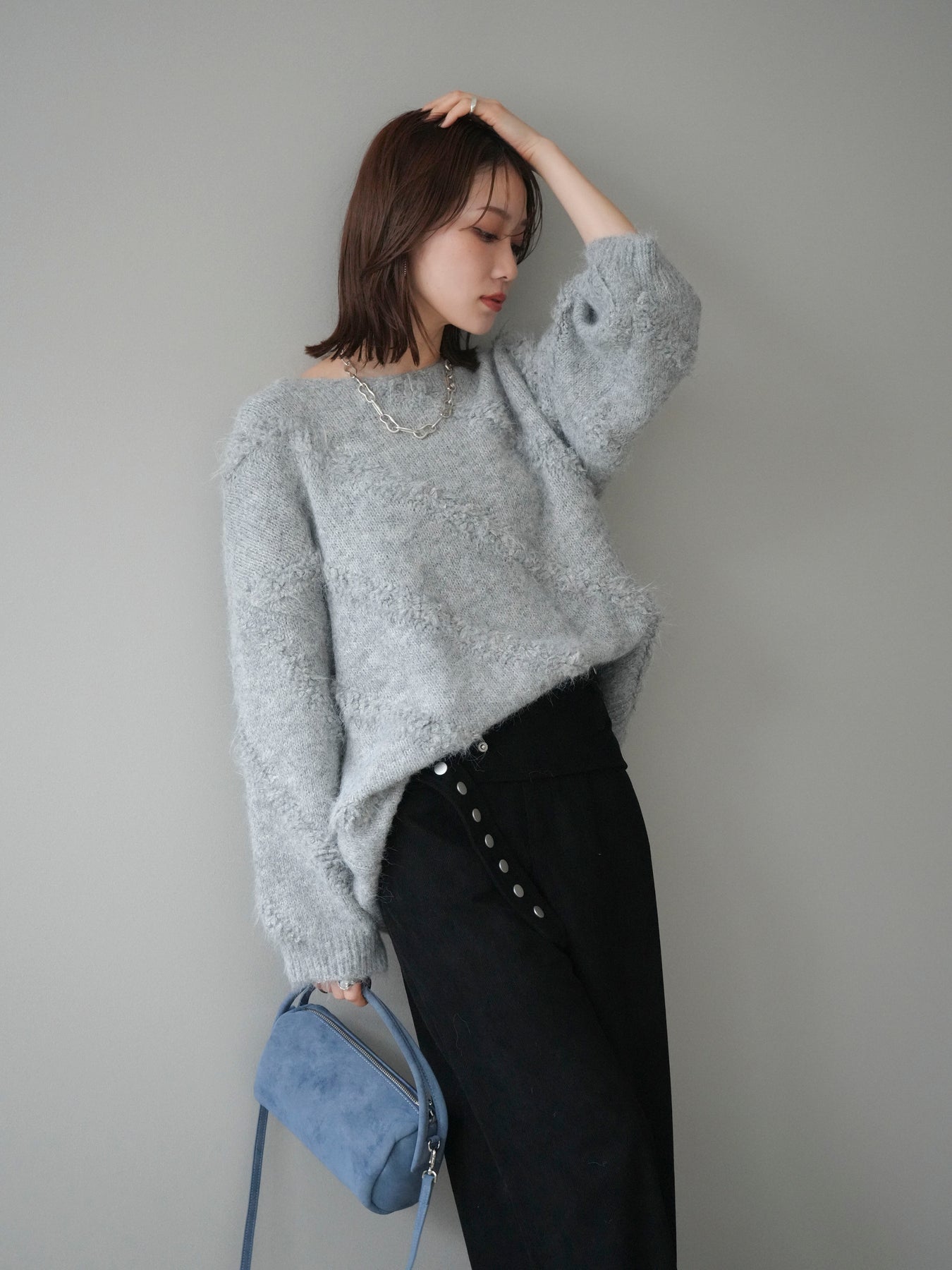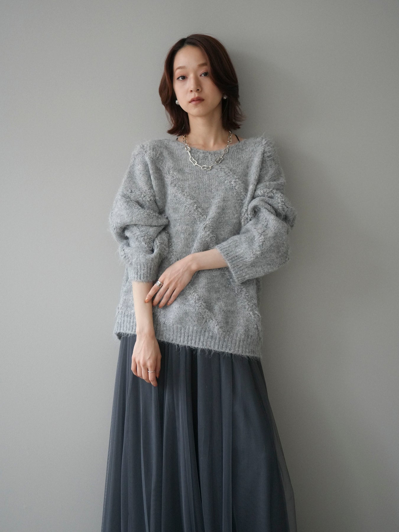 [予約]ブークレラインデザインニットプルオーバー/gray
