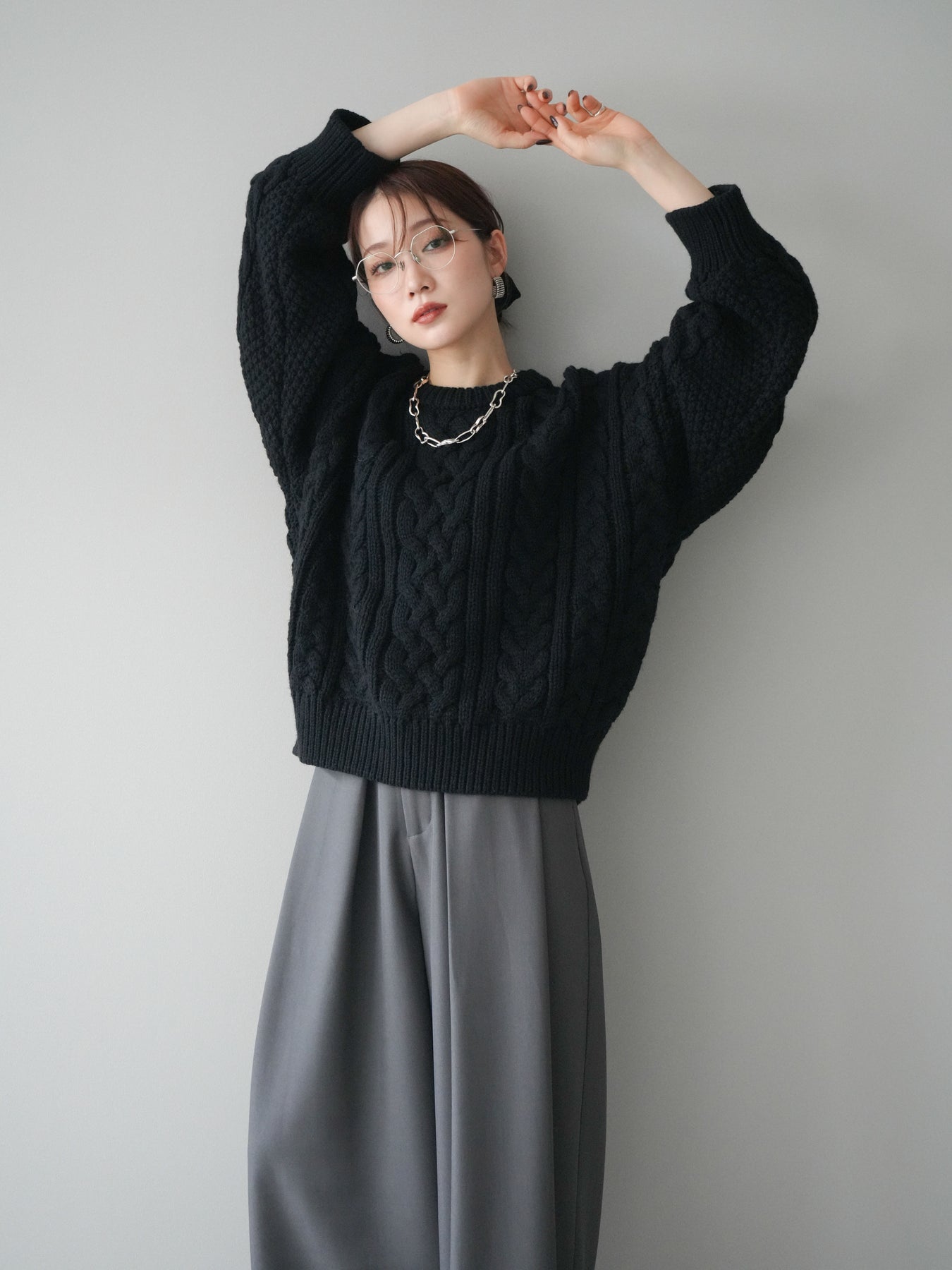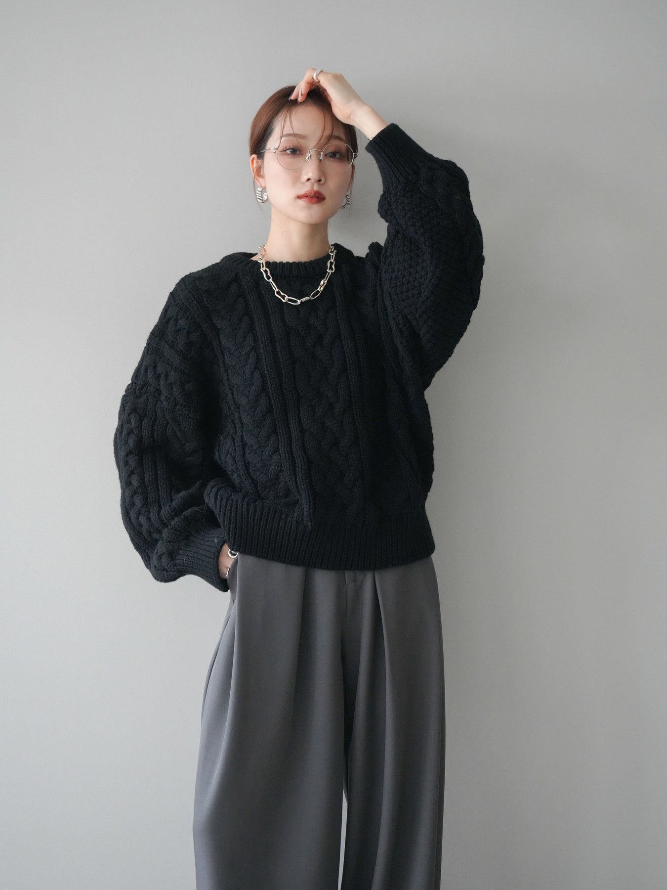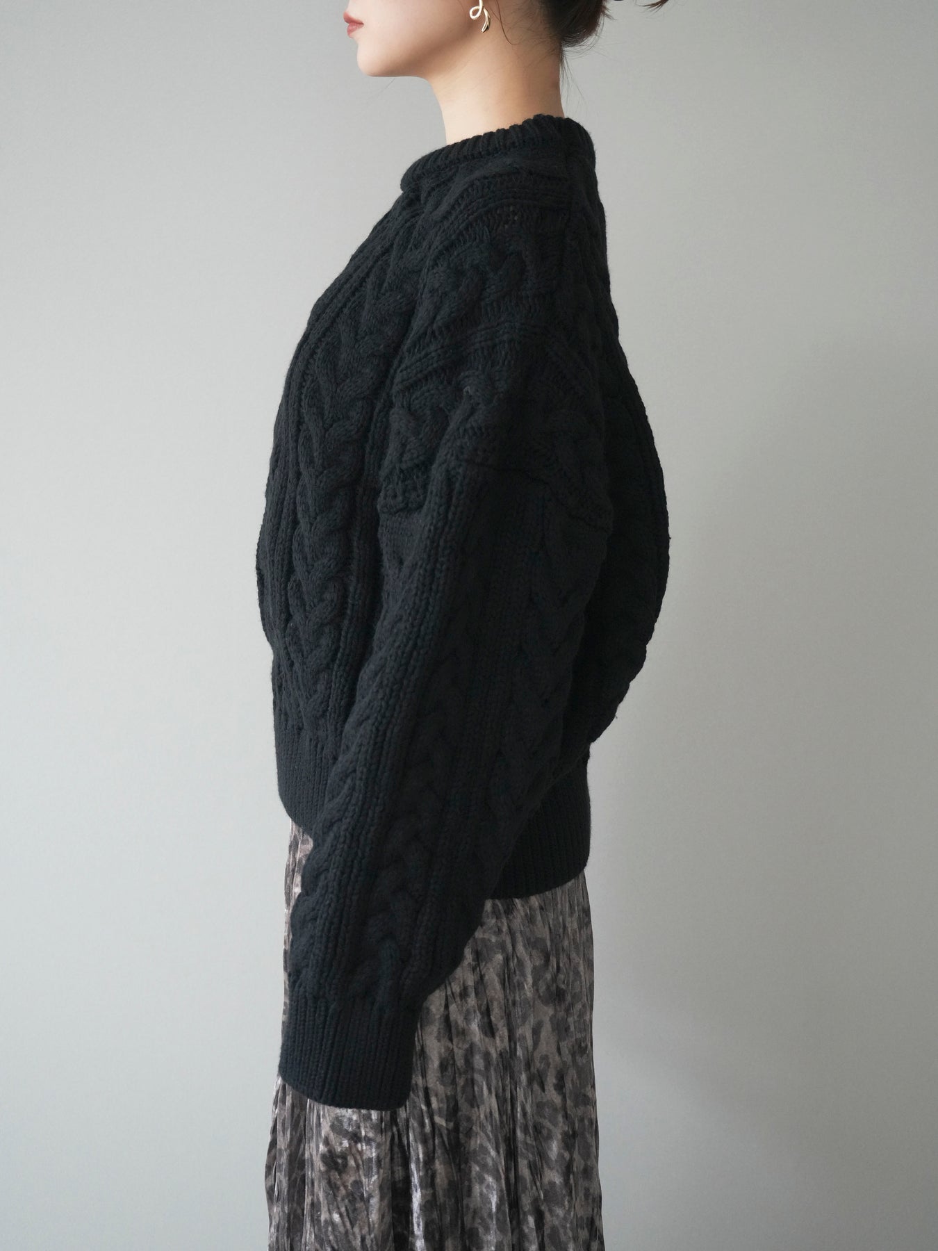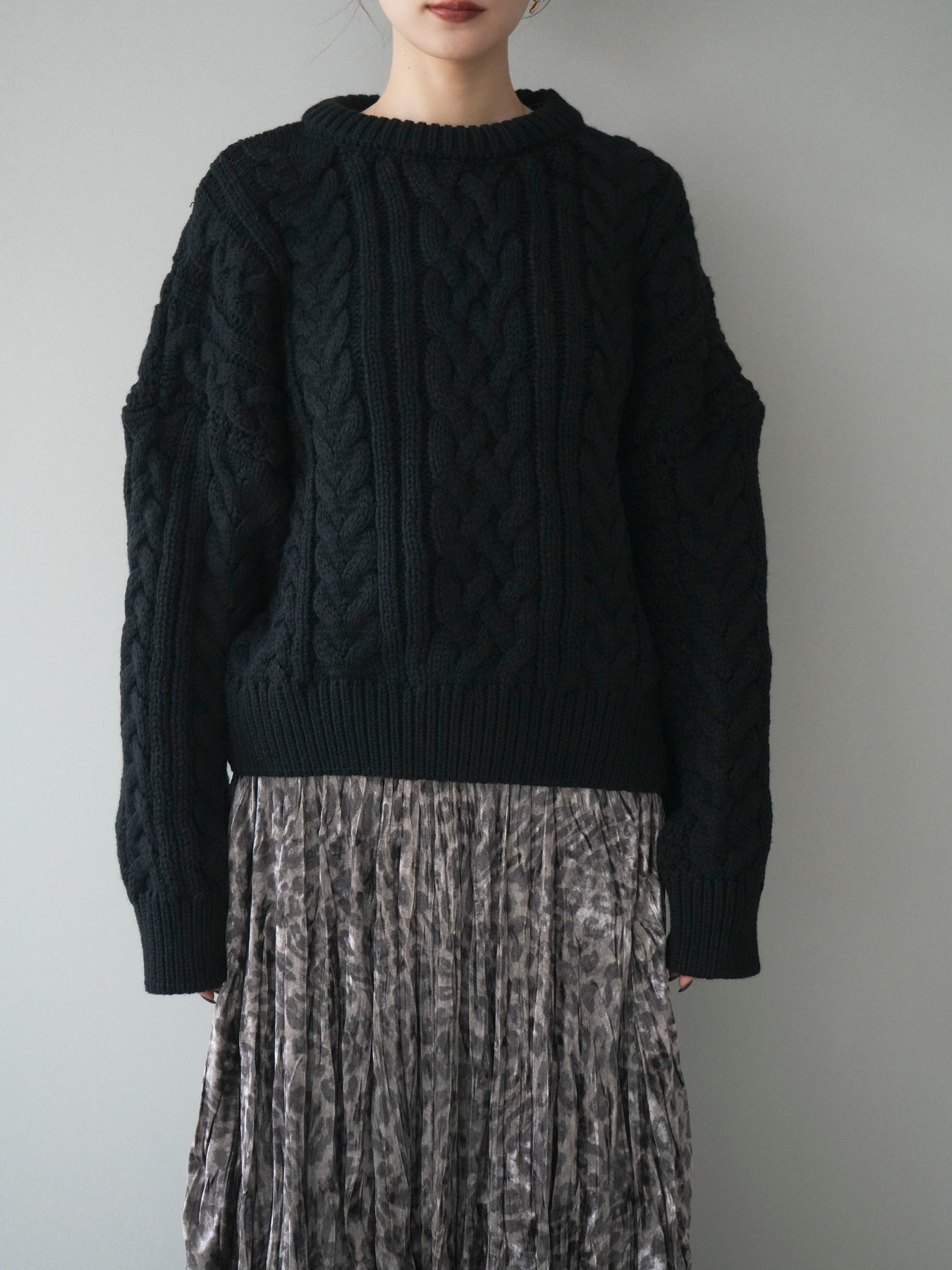 [予約]ボリュームケーブルニットプルオーバー/black