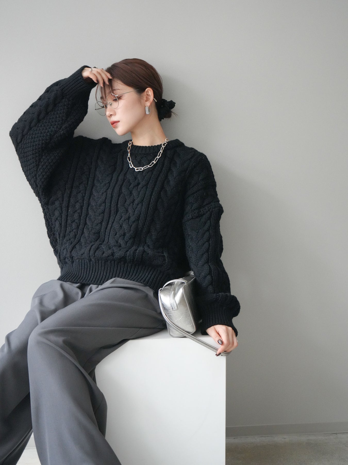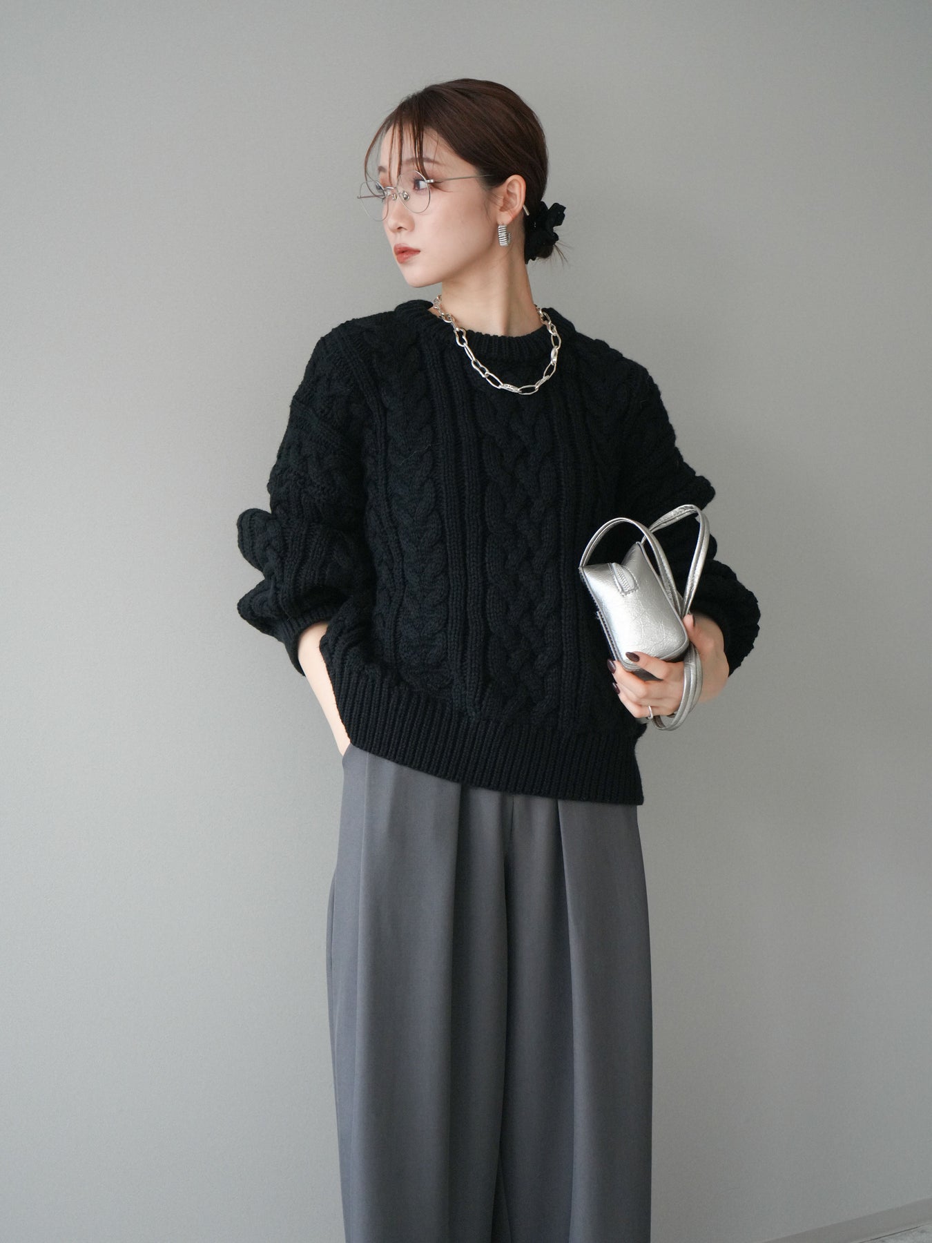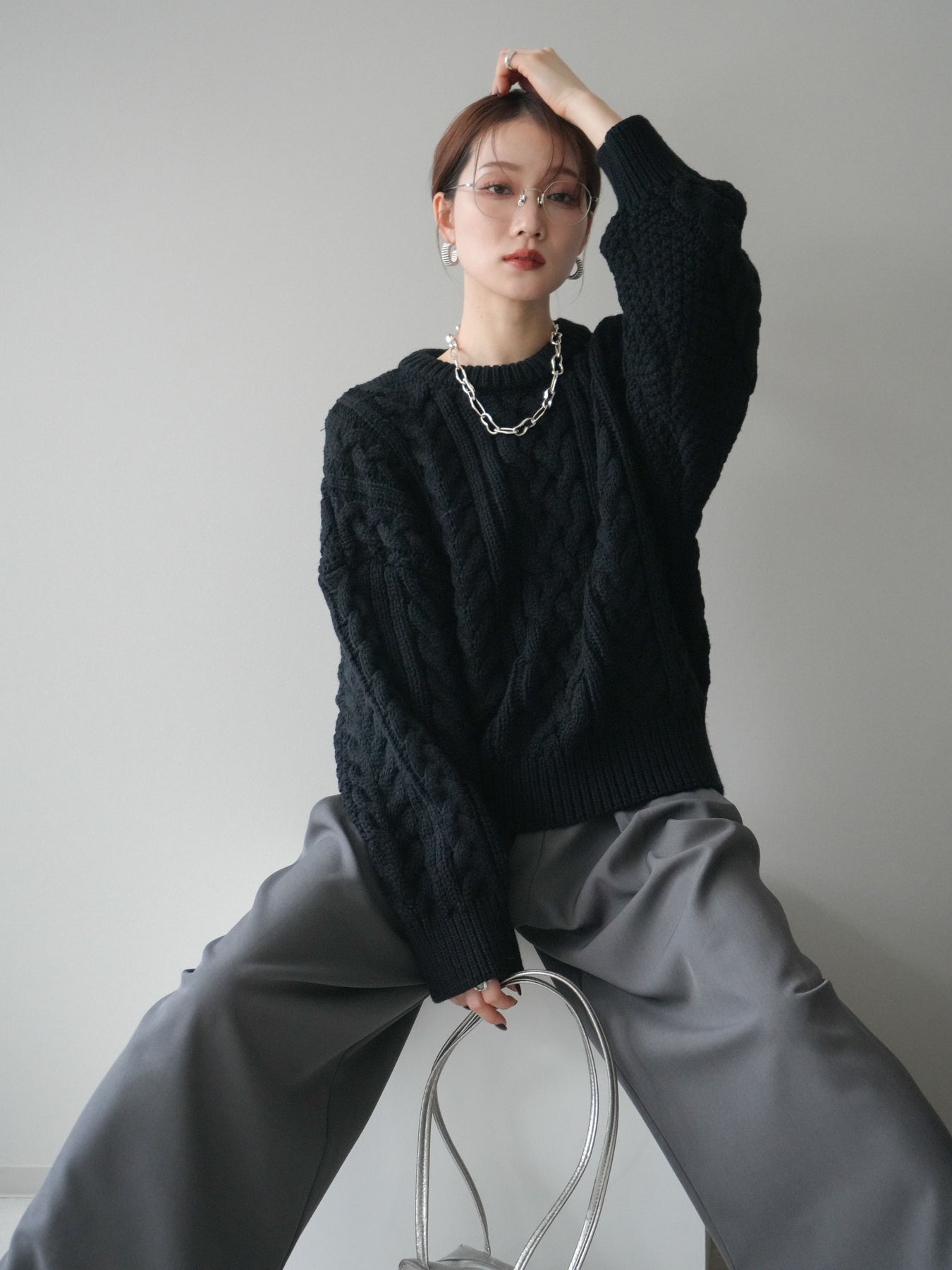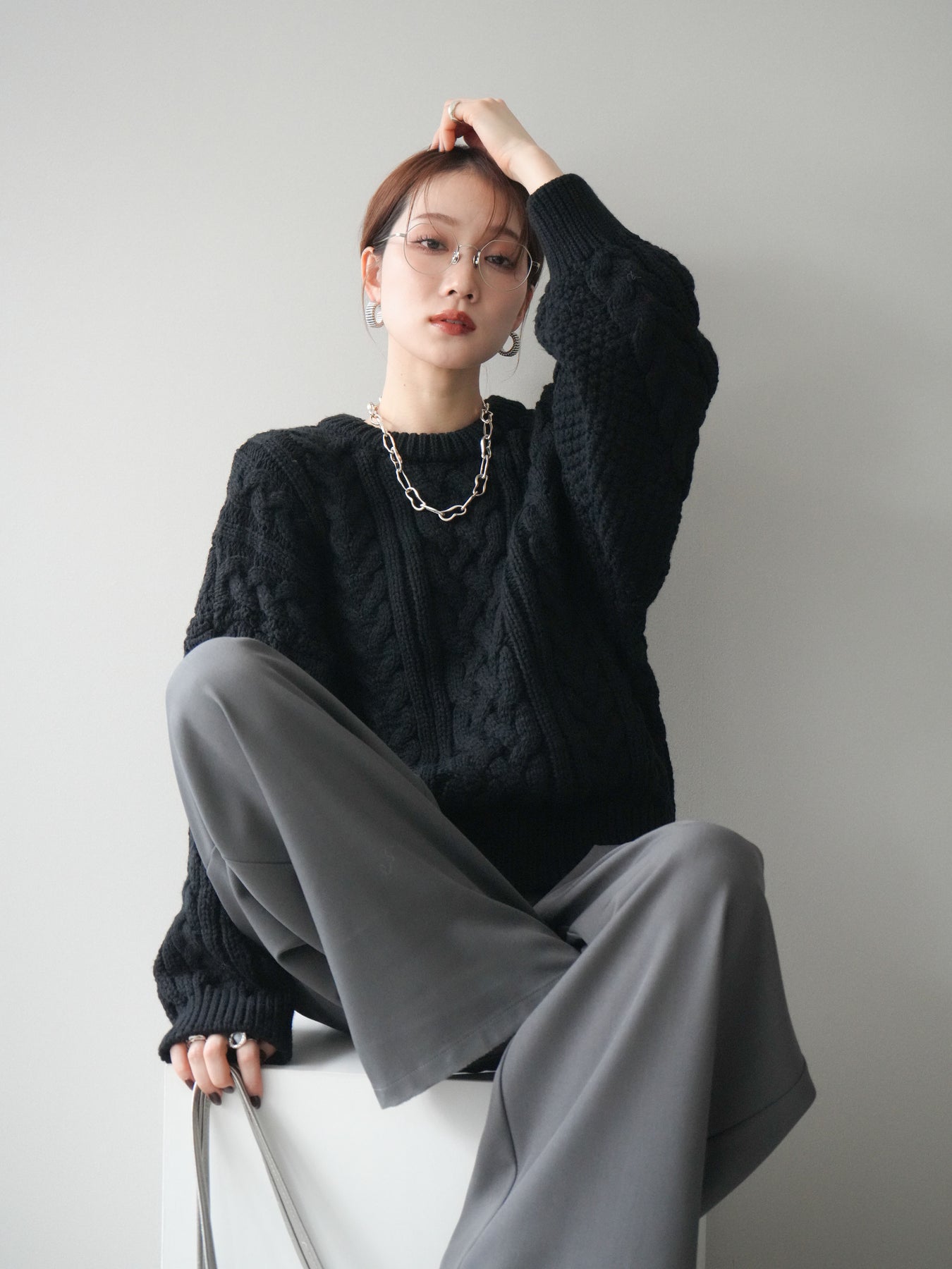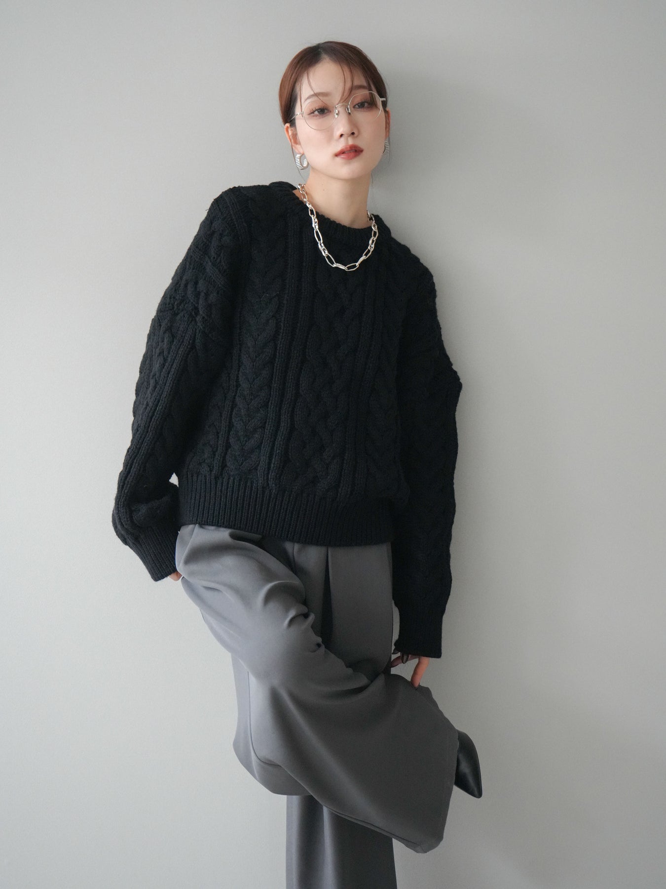 [予約]ボリュームケーブルニットプルオーバー/black