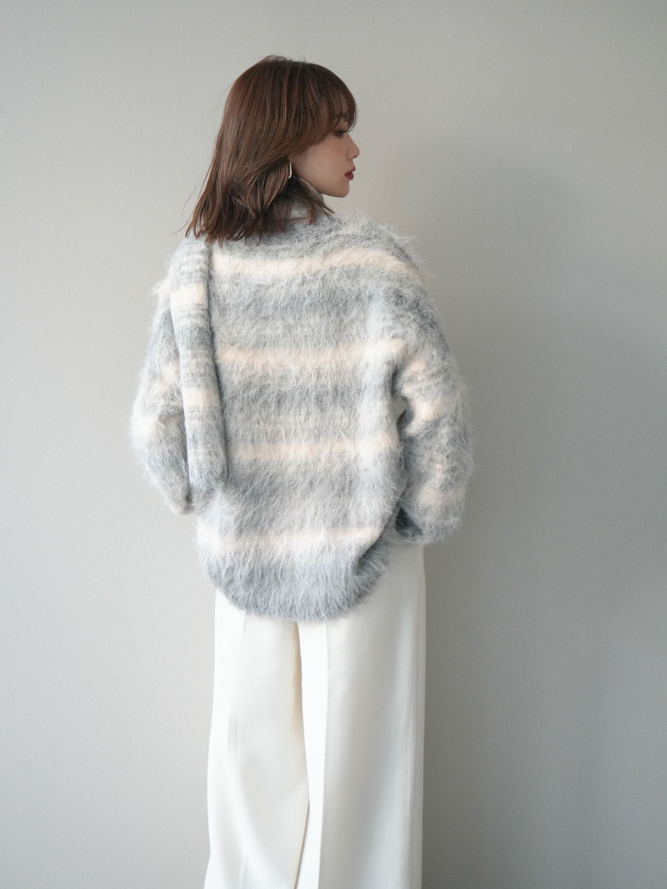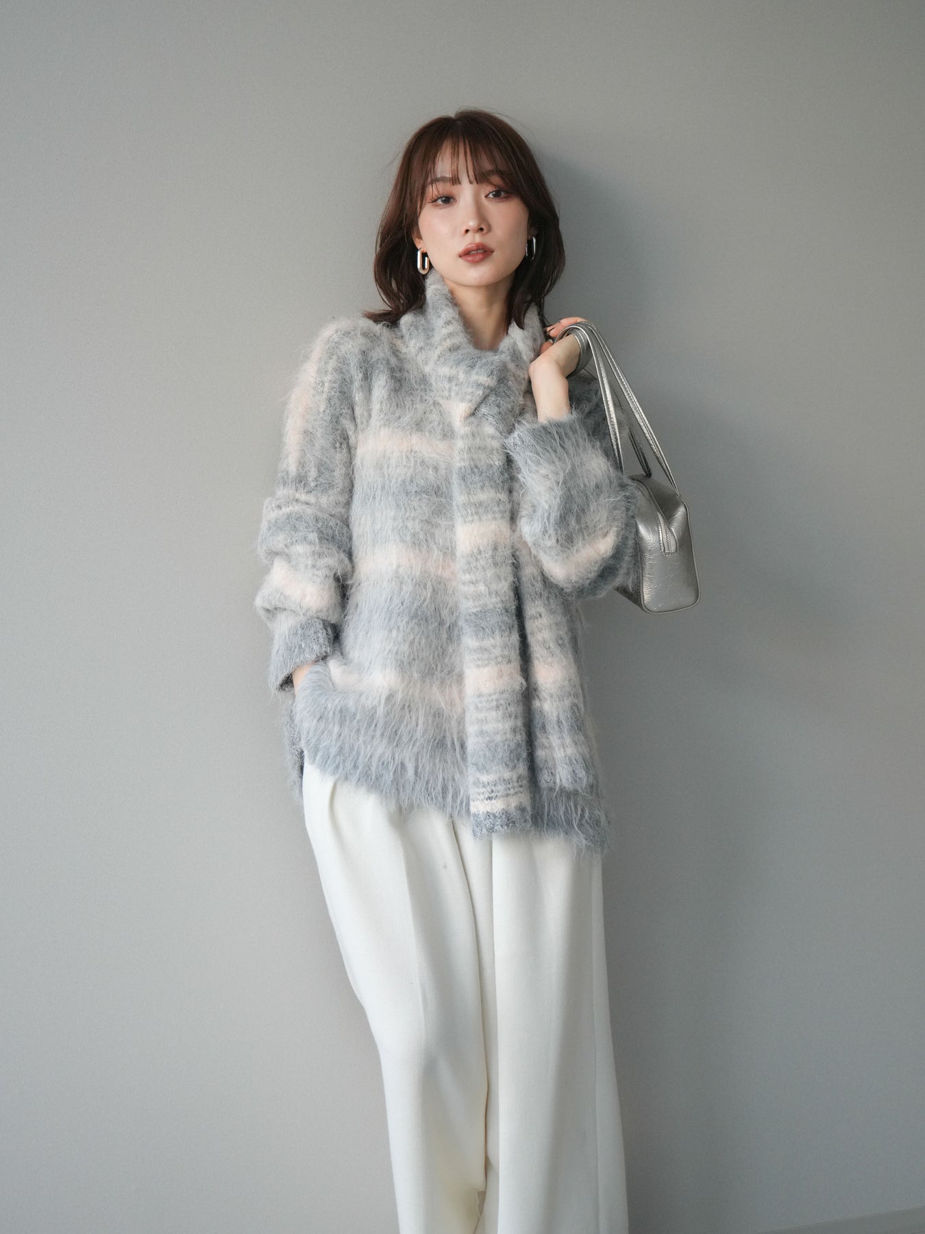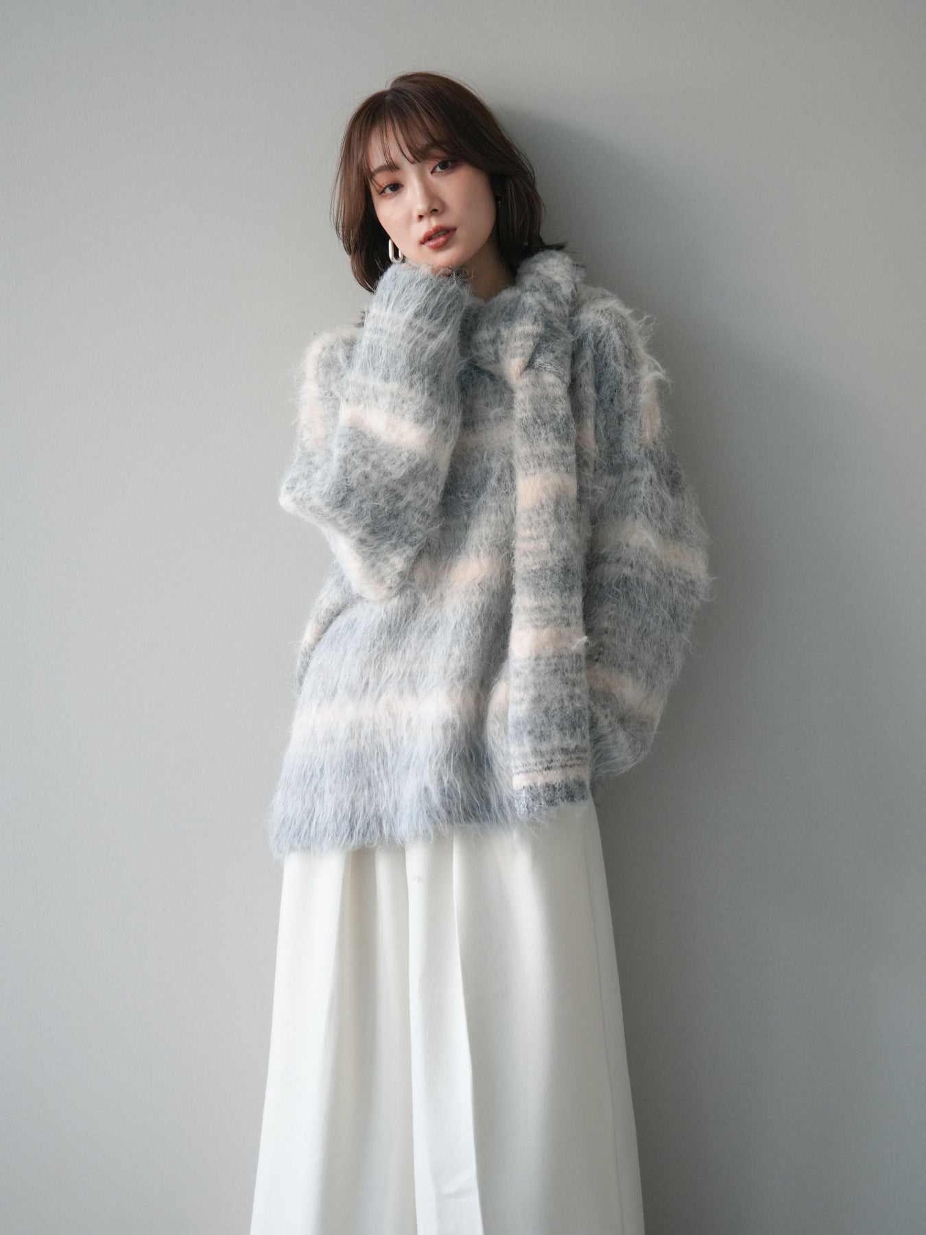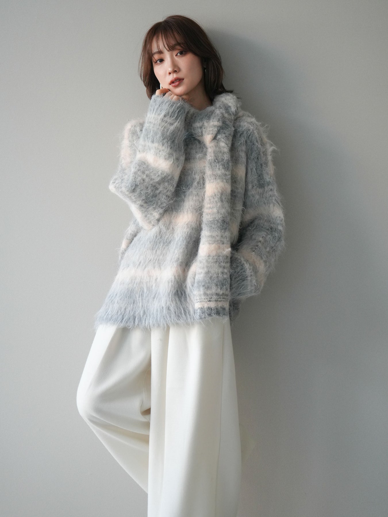 [予約]ストール付シャギーマルチボーダーニットプルオーバー/gray