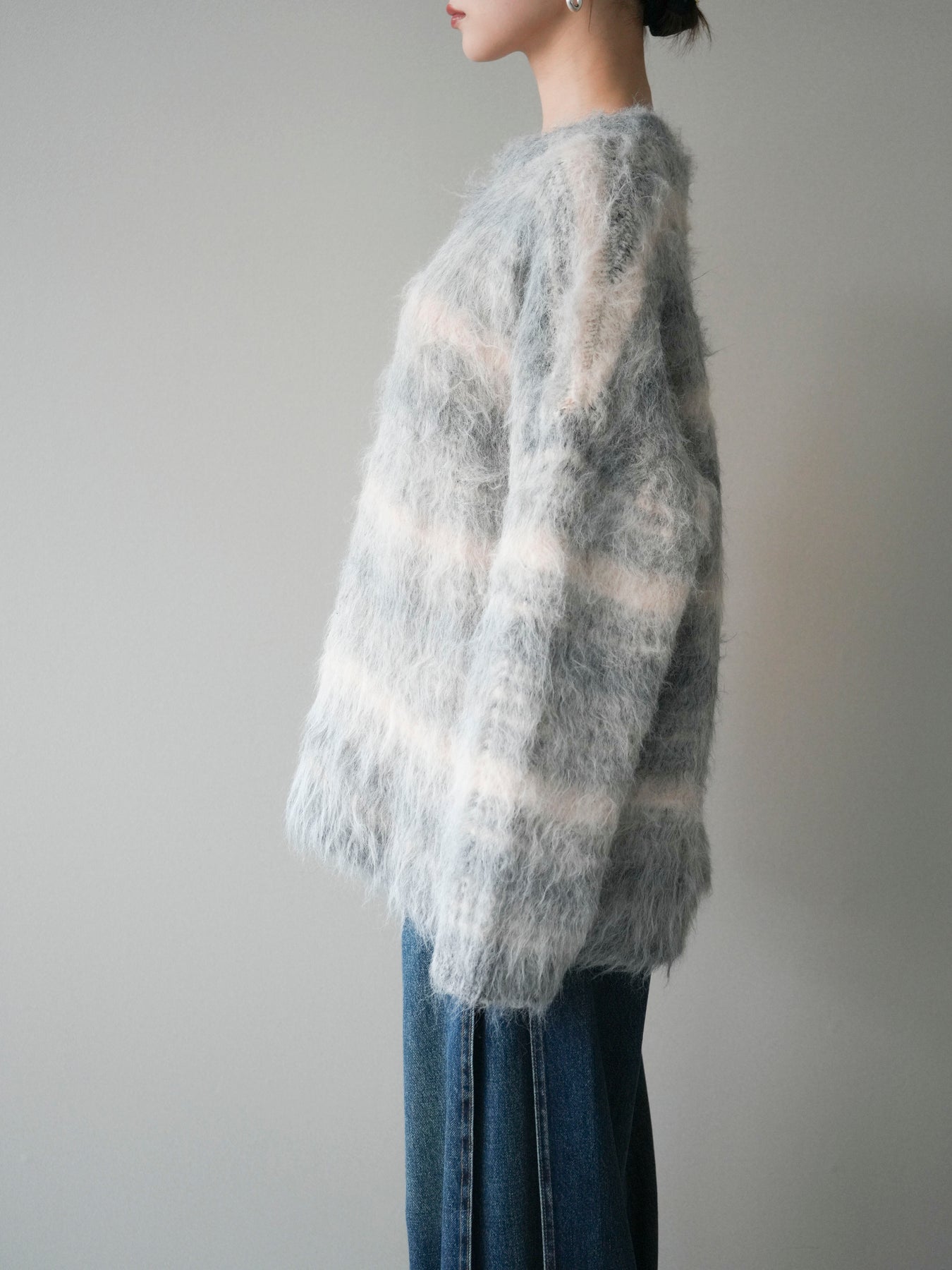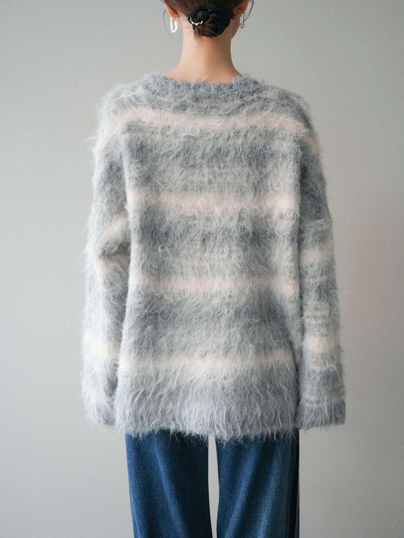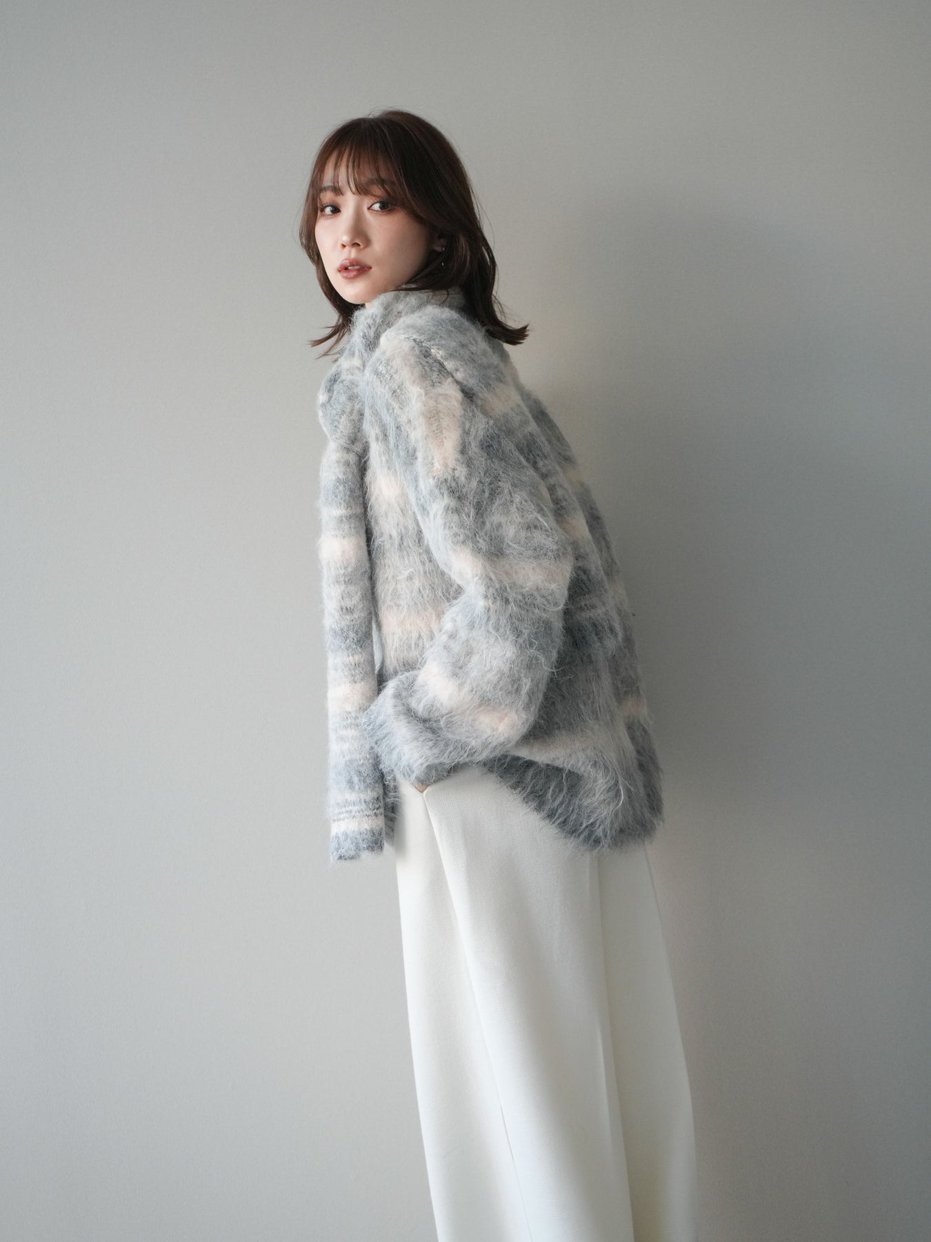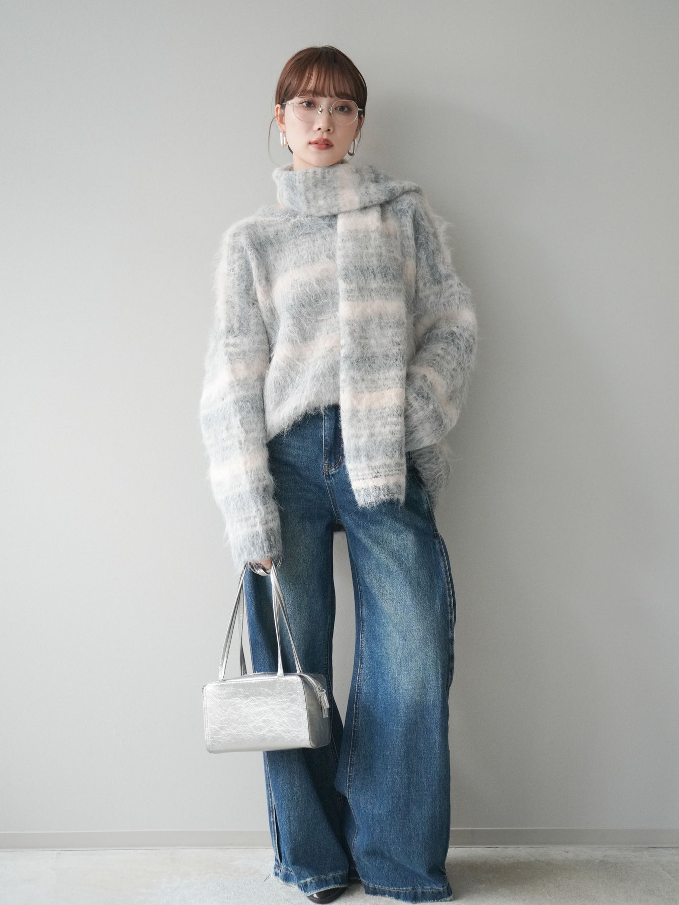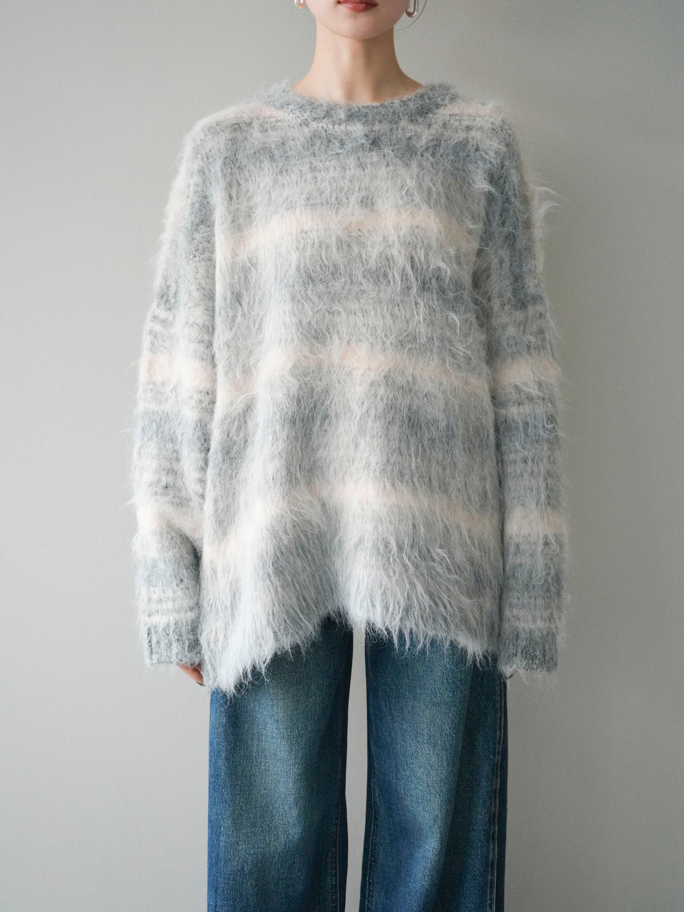 [予約]ストール付シャギーマルチボーダーニットプルオーバー/gray