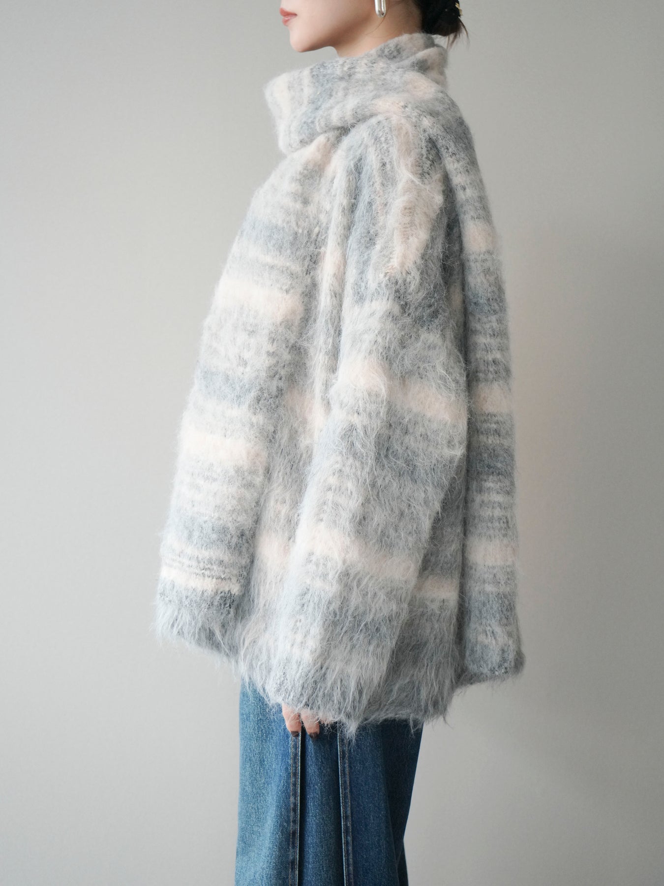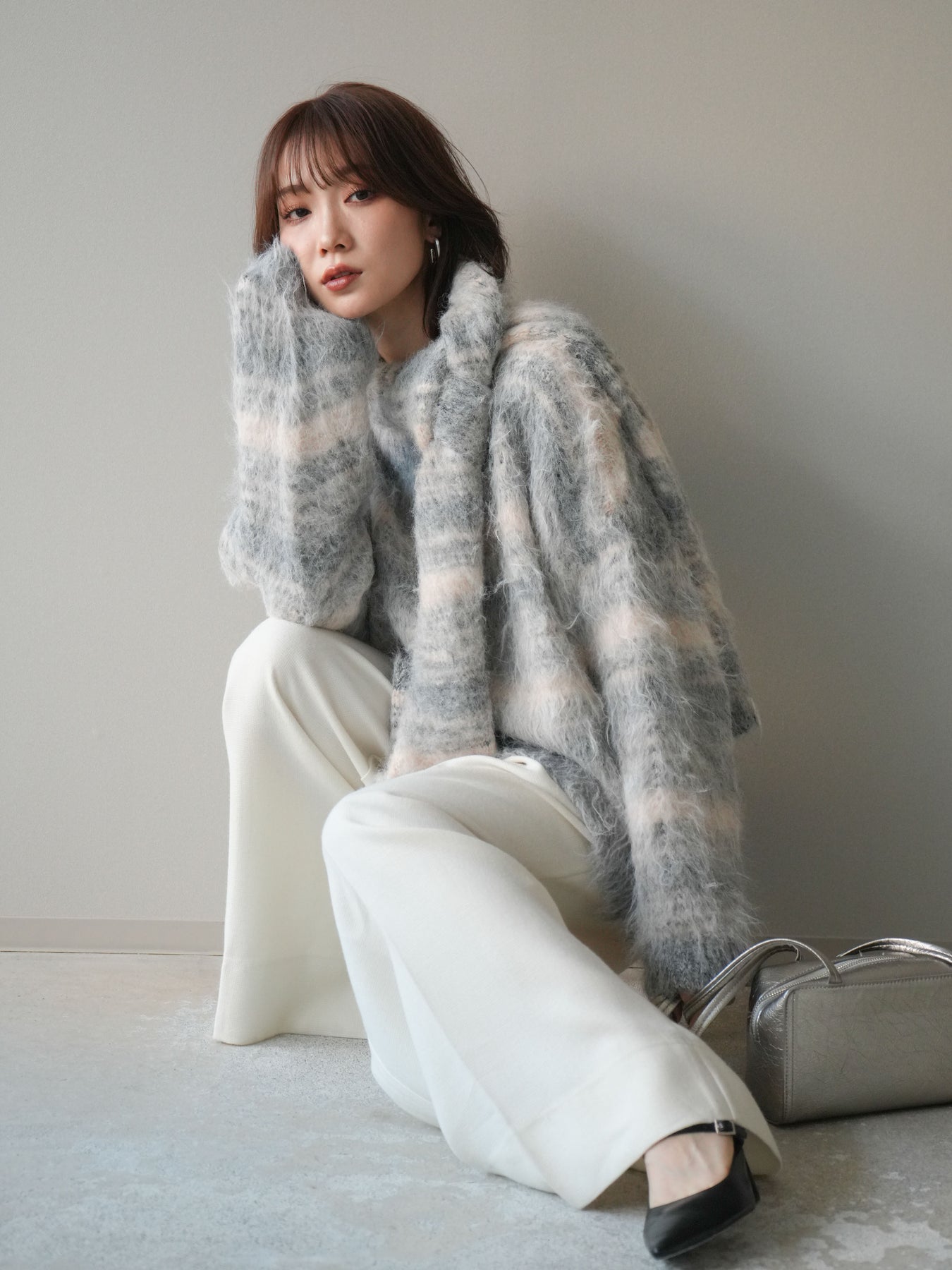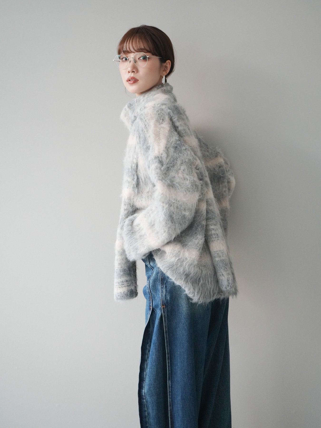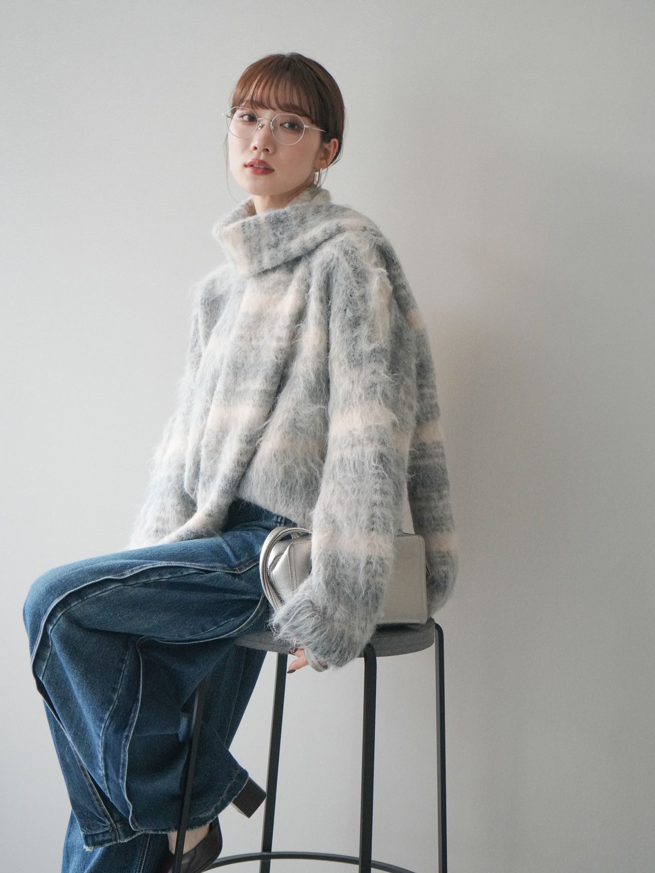 [予約]ストール付シャギーマルチボーダーニットプルオーバー/gray