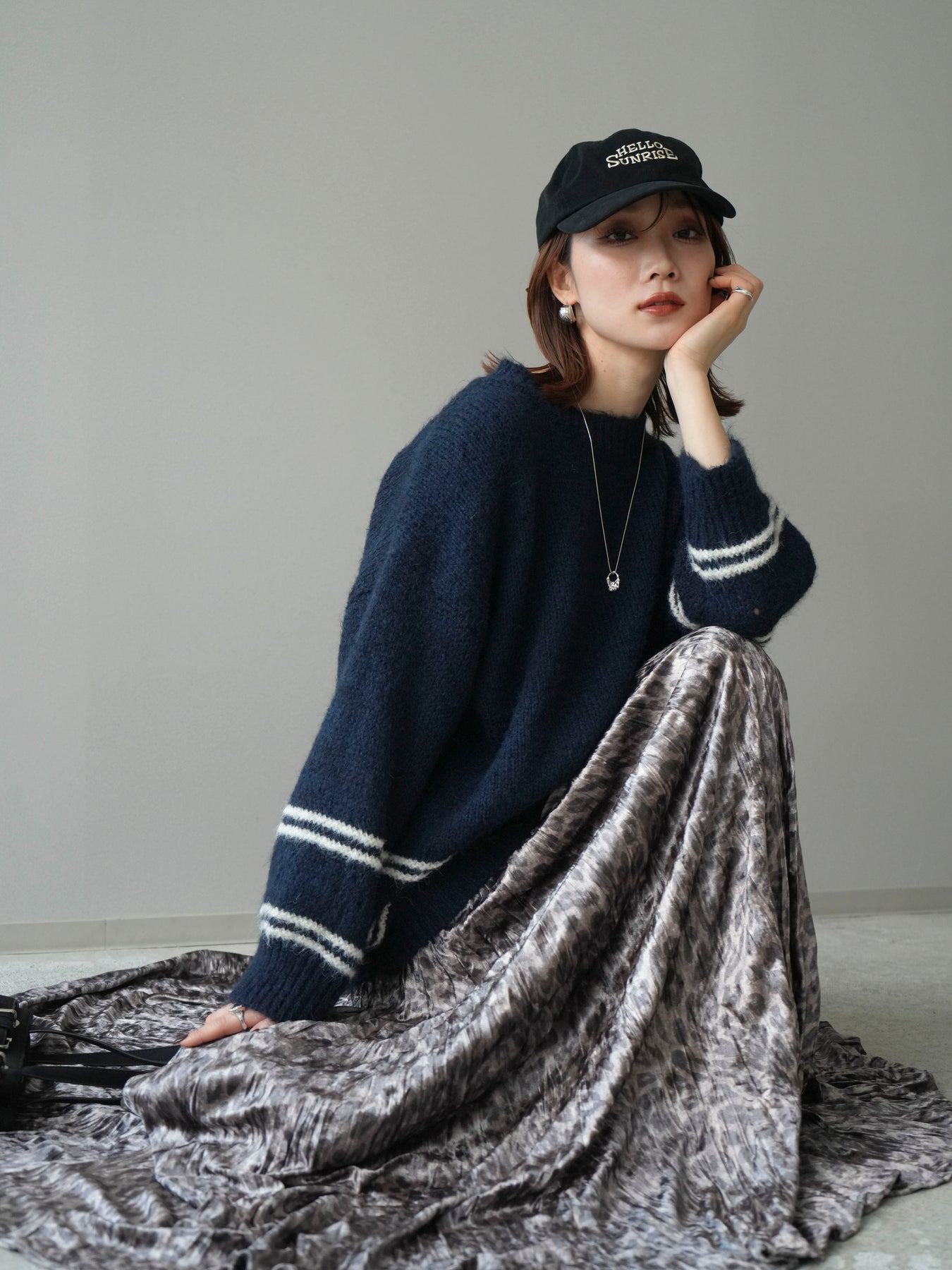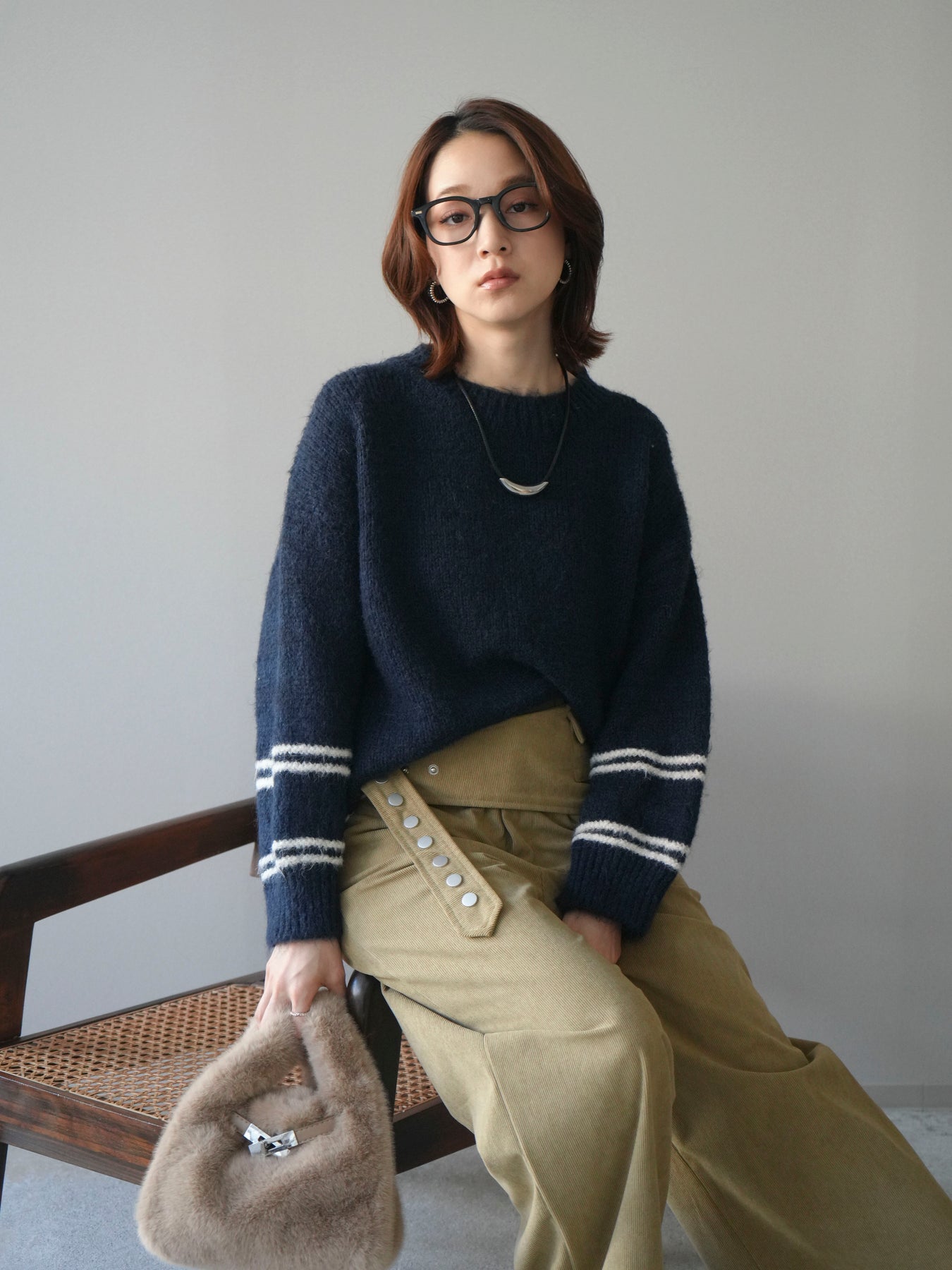 [予約]クルーネックラインボーダーニットプルオーバー/navy