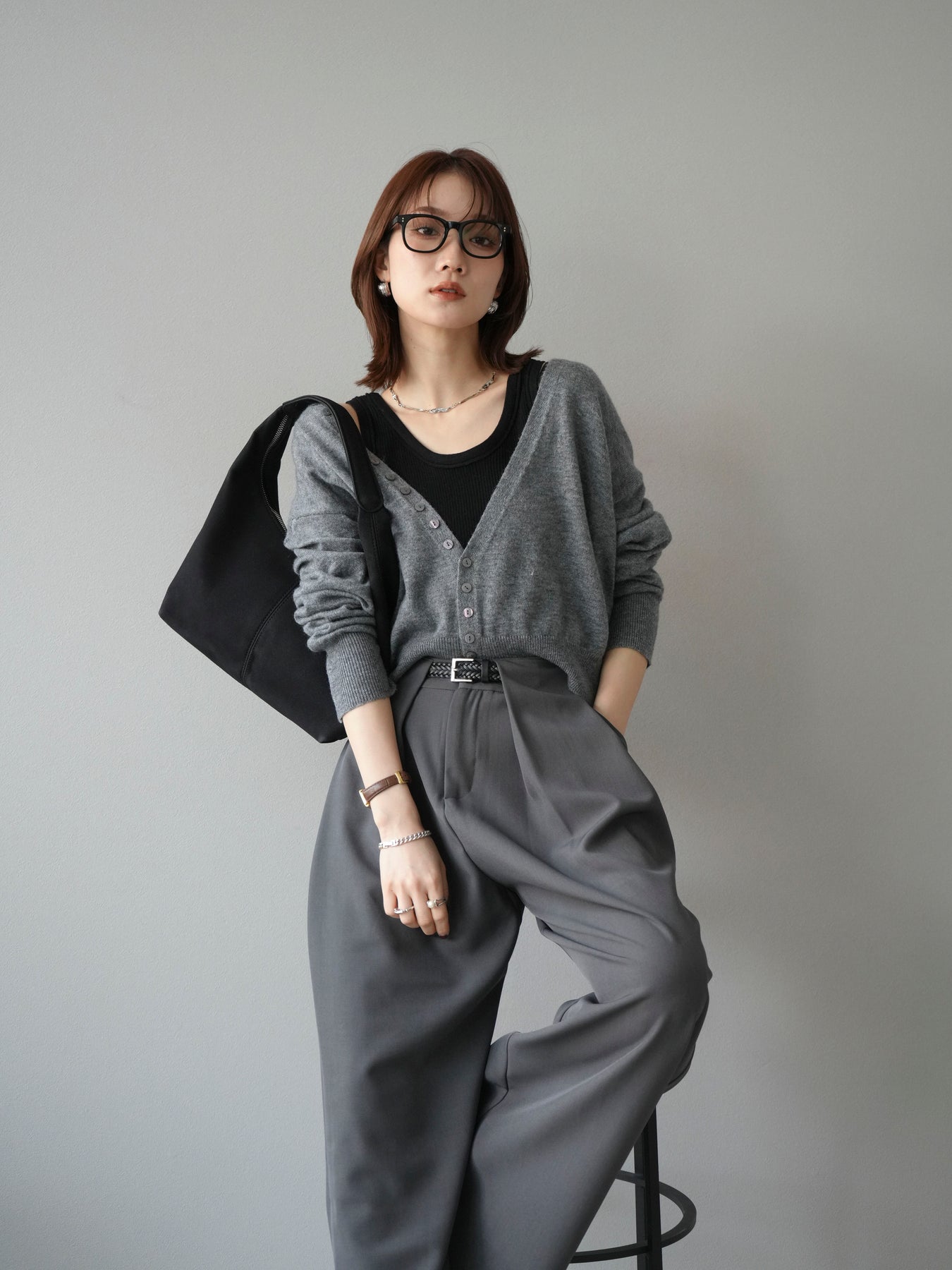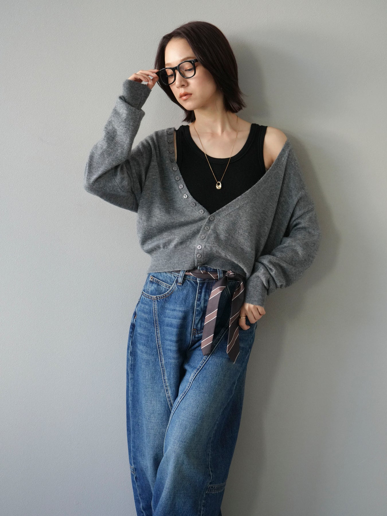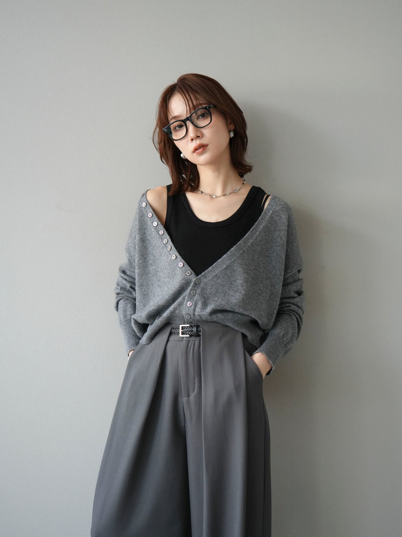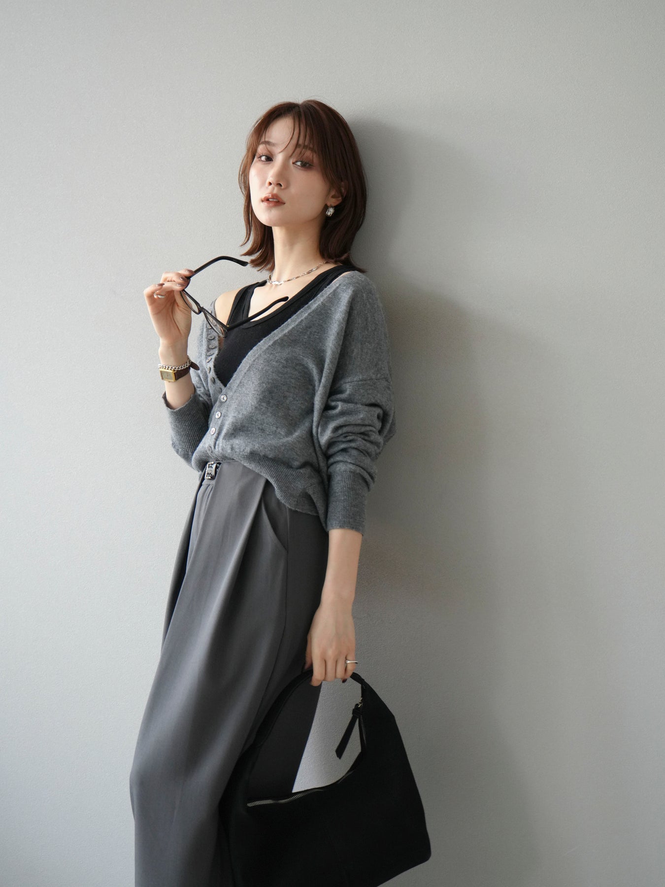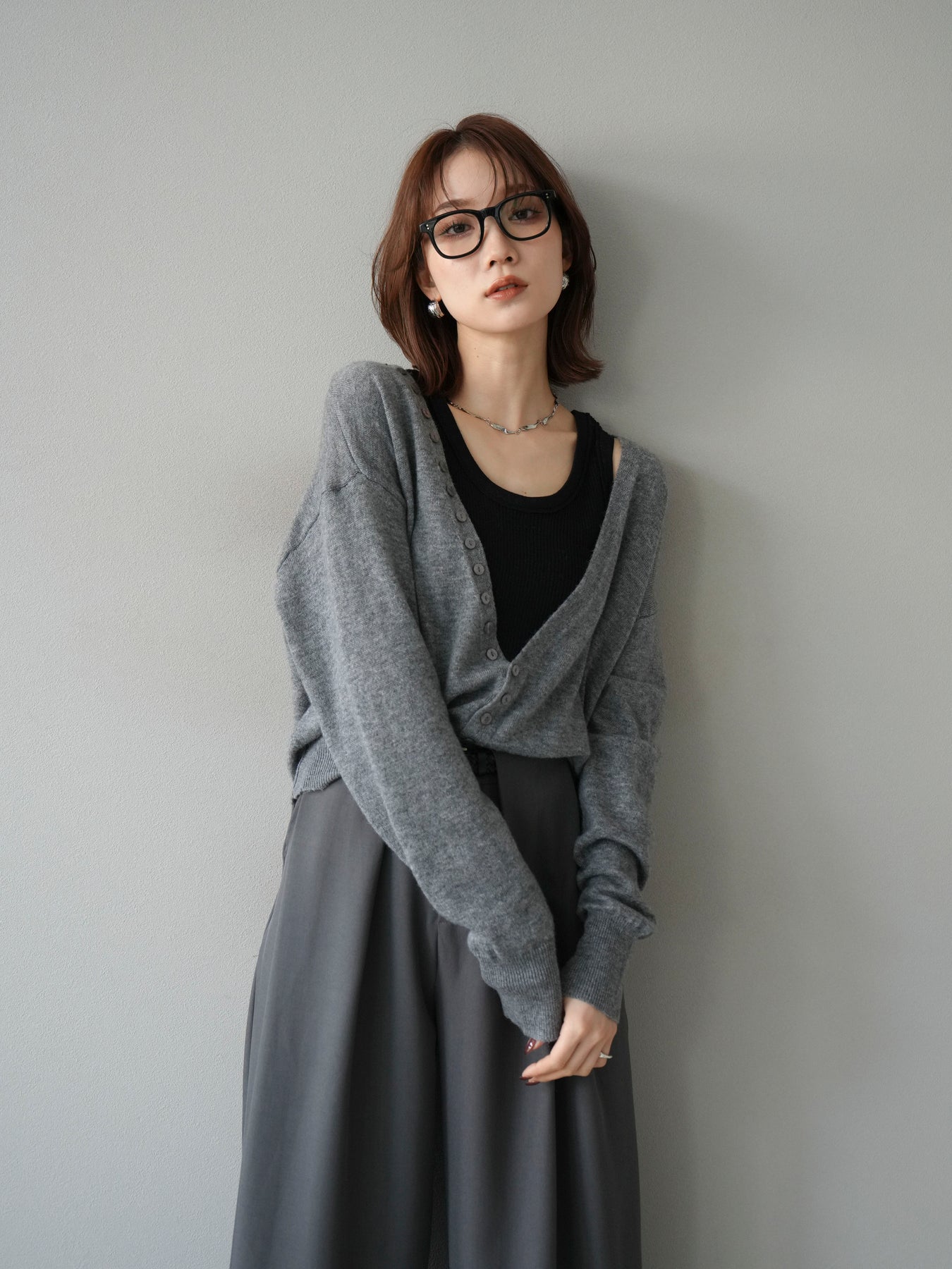 [予約]デザインボタンニットカーディガン&タンクトップSET/グレー
