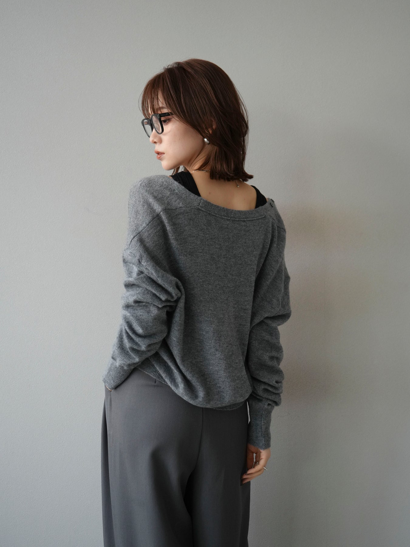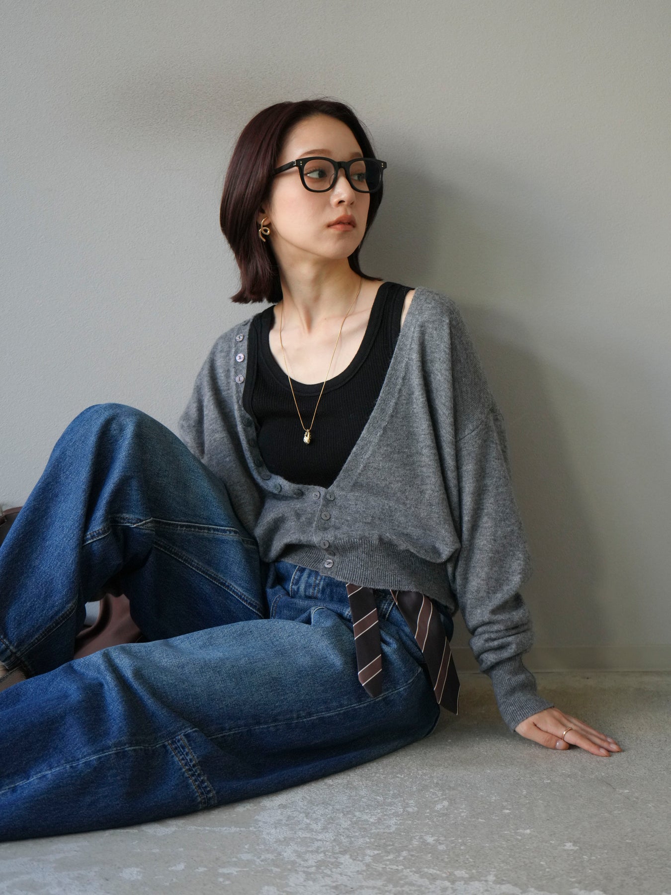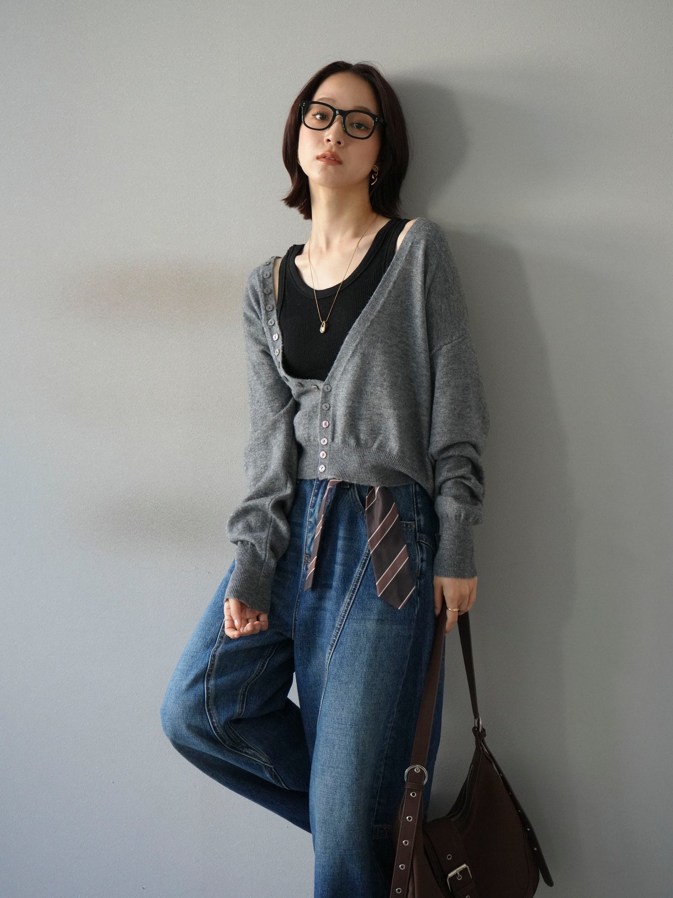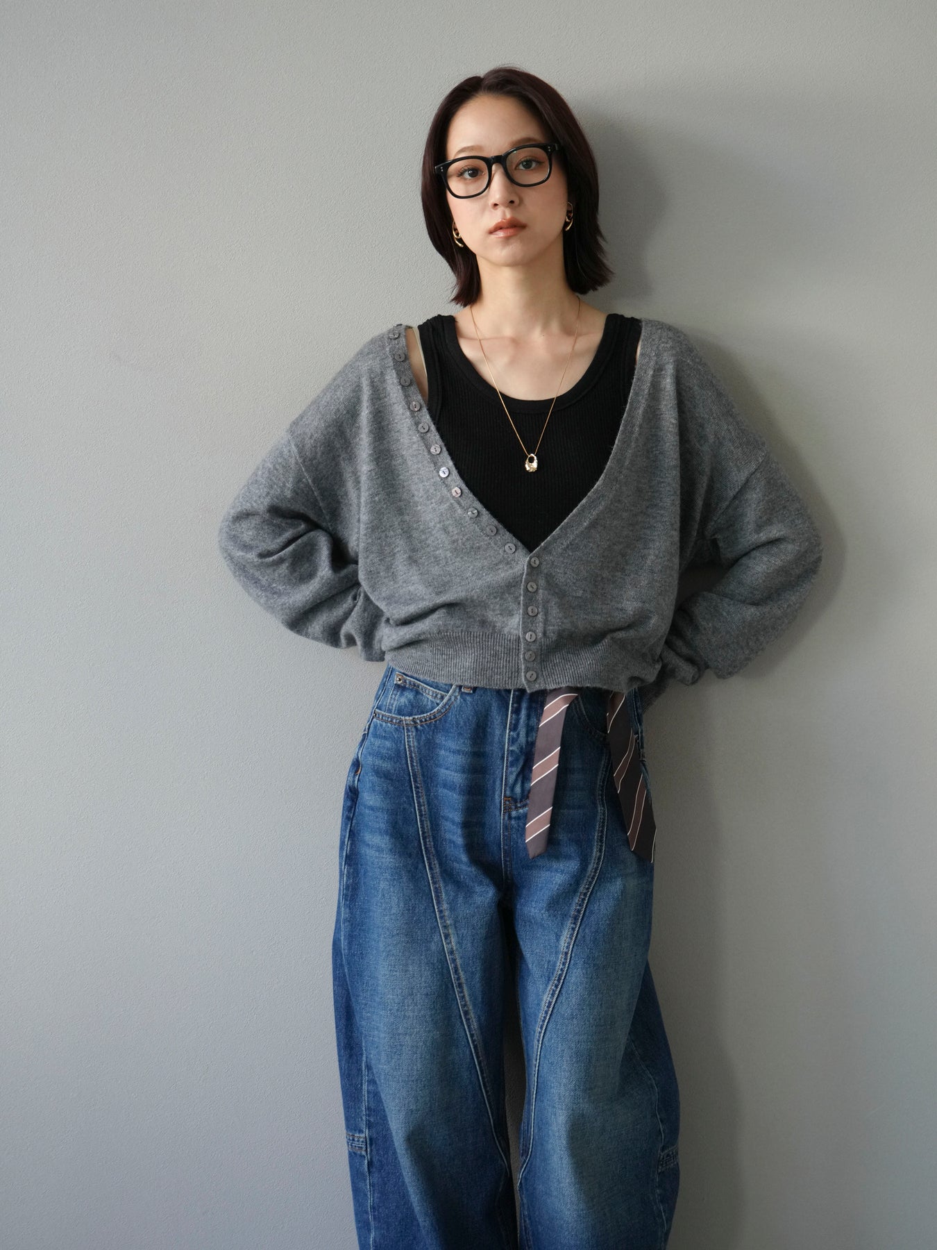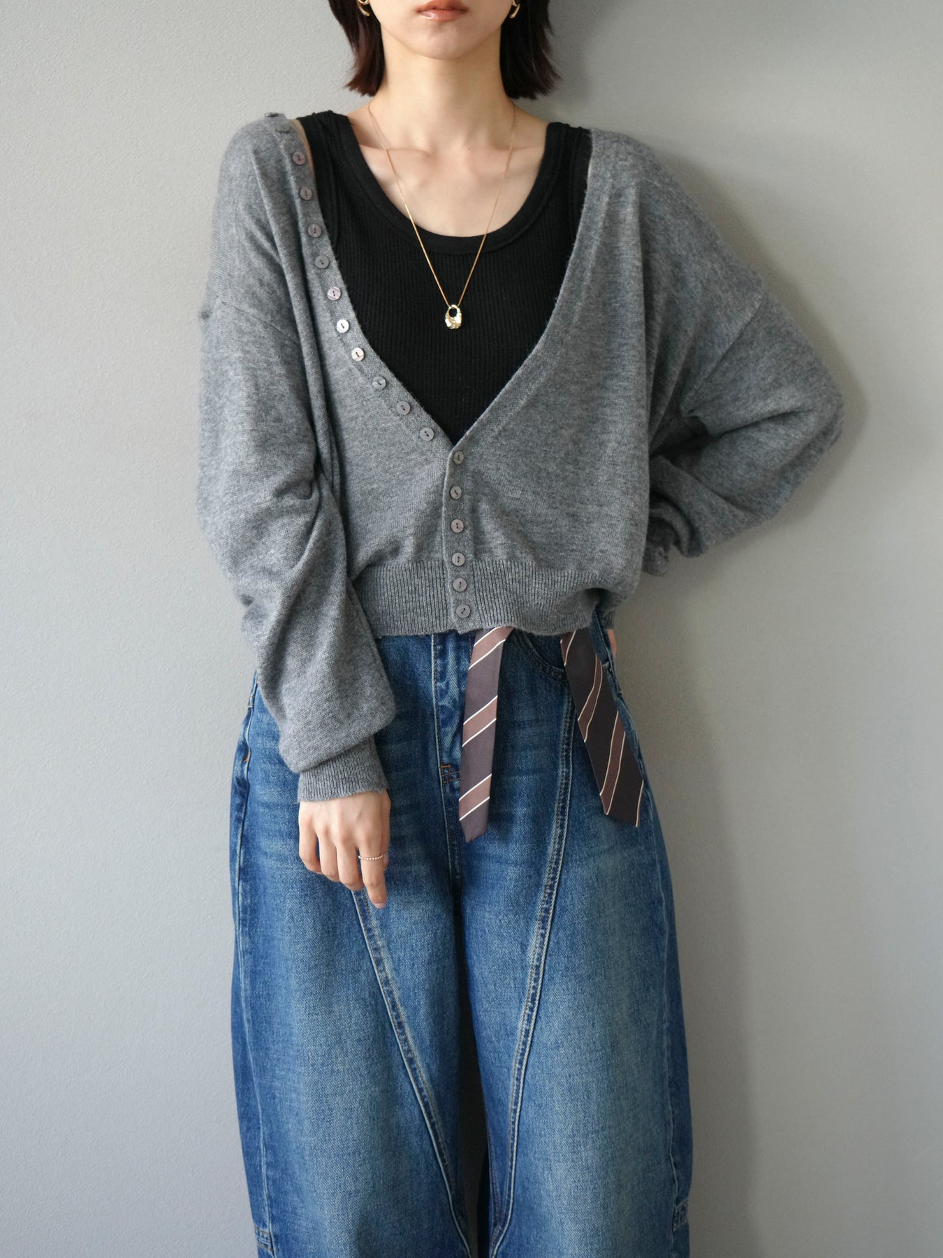 [予約]デザインボタンニットカーディガン&タンクトップSET/グレー
