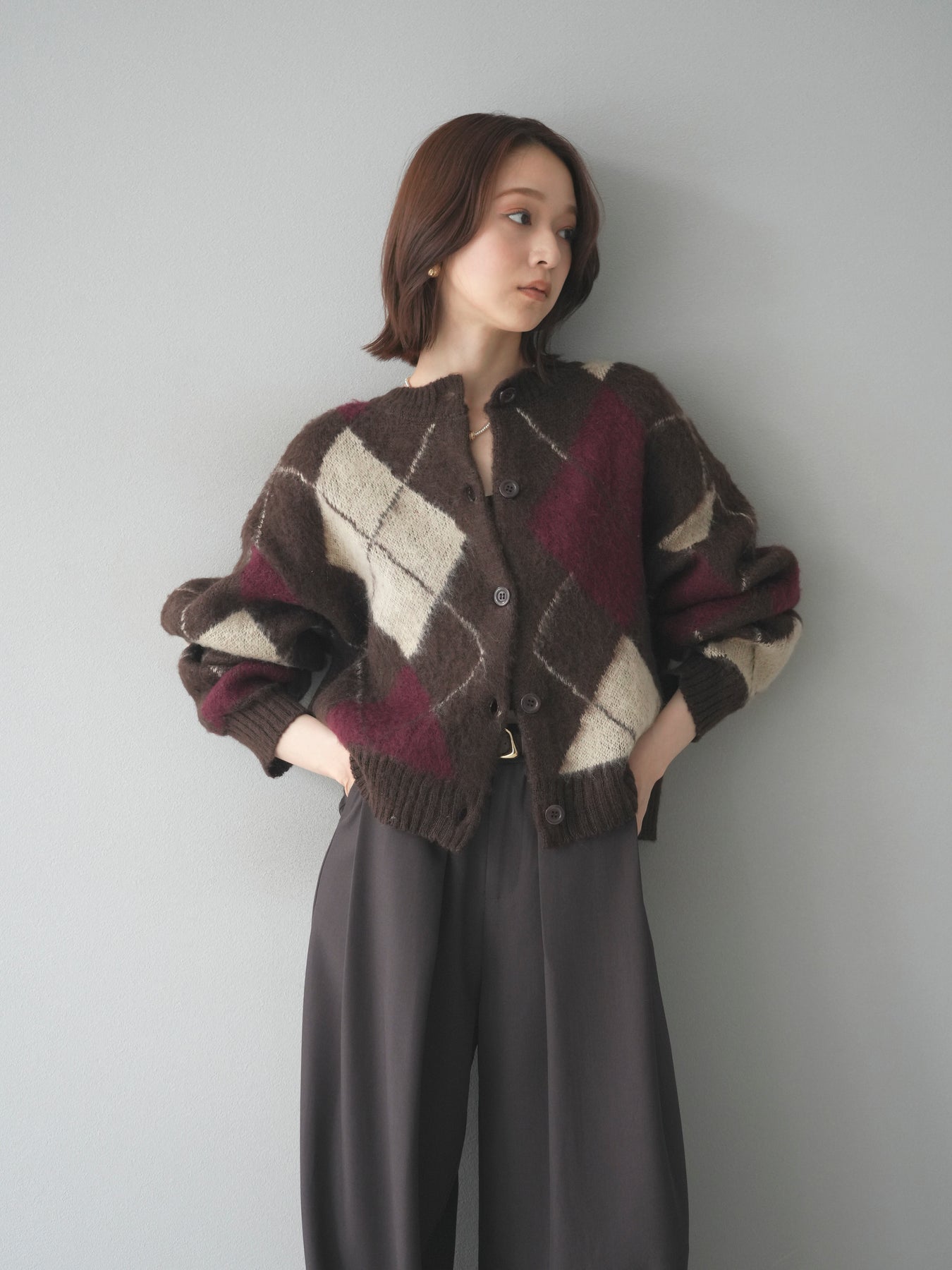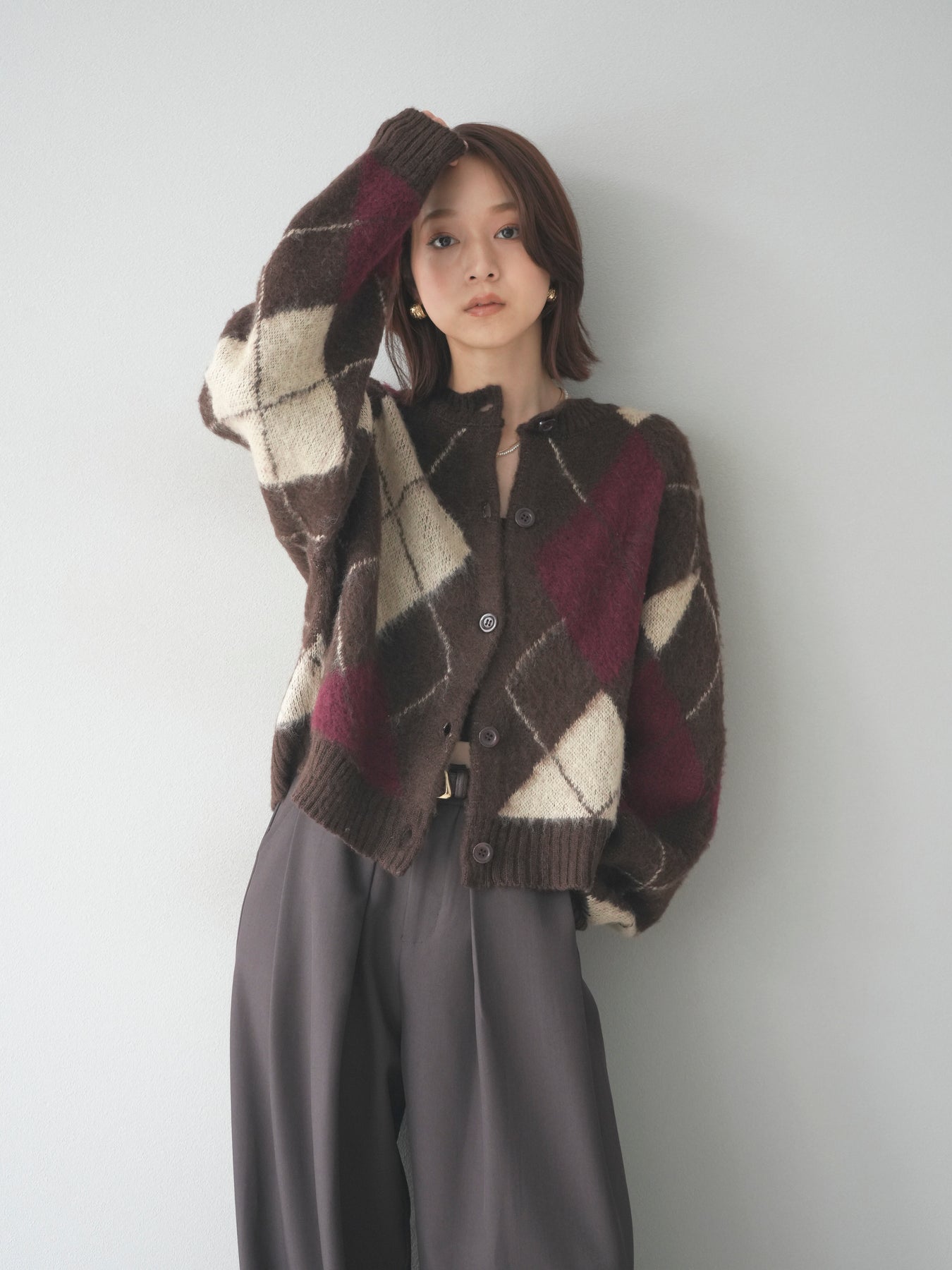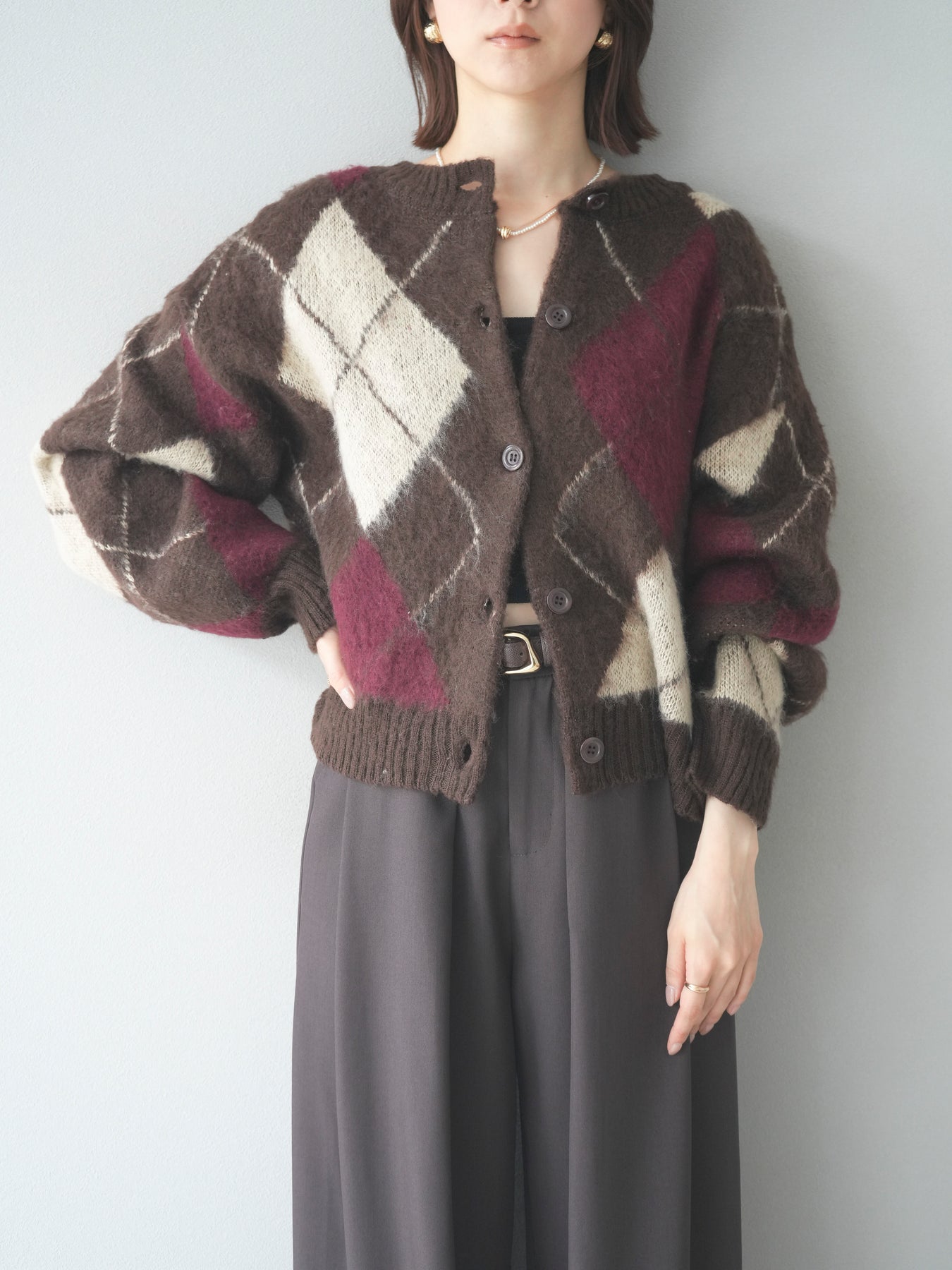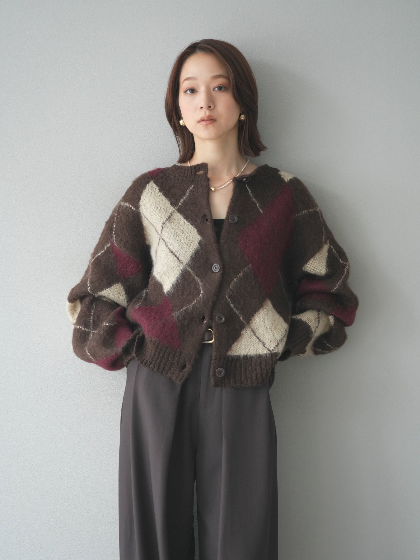 [予約]モヘアタッチアーガイルニットカーディガン/brown
