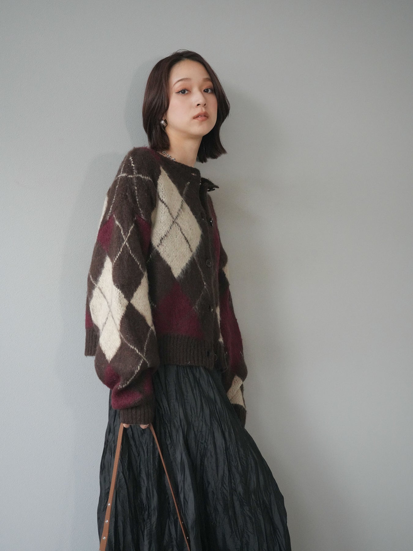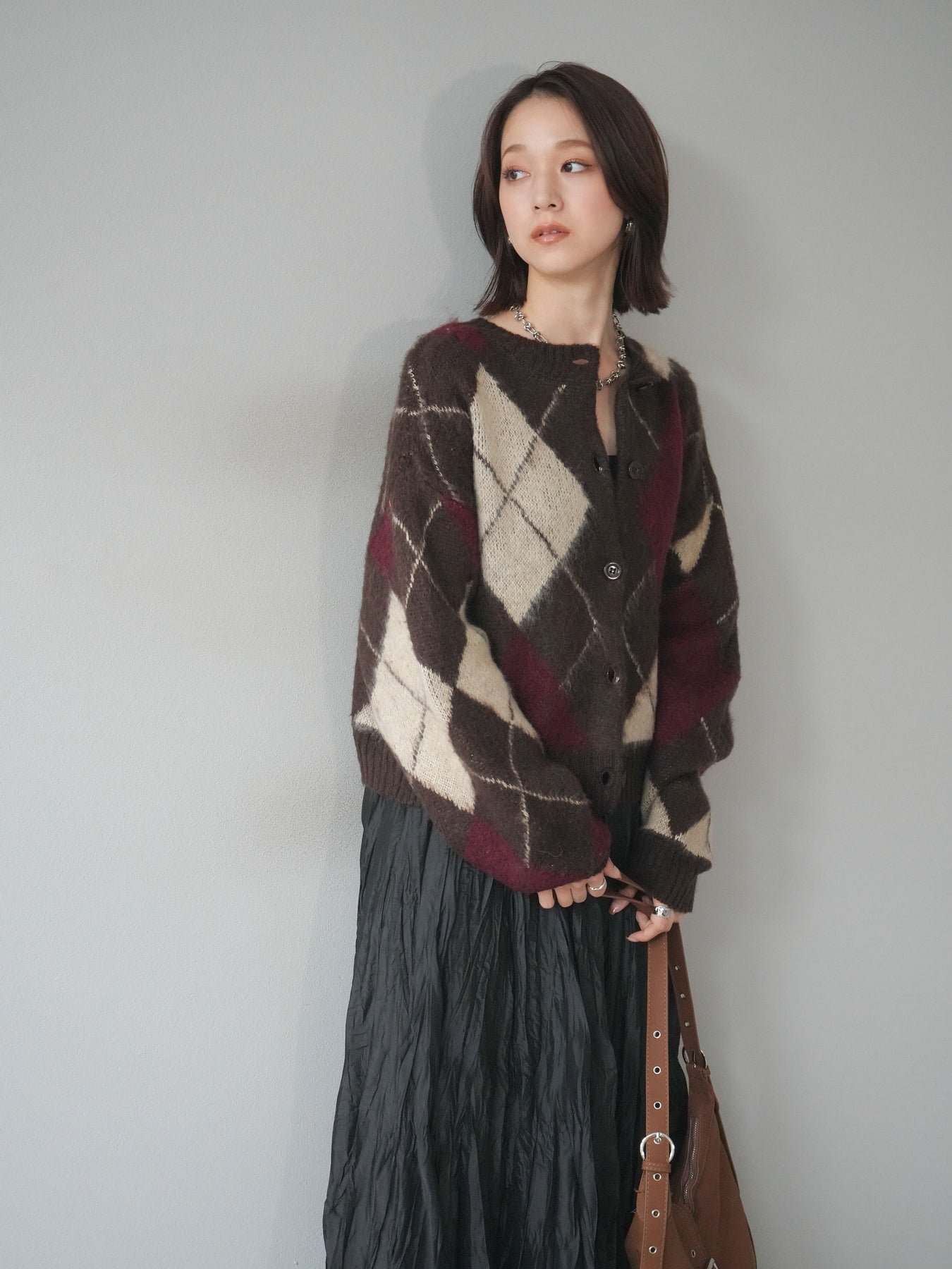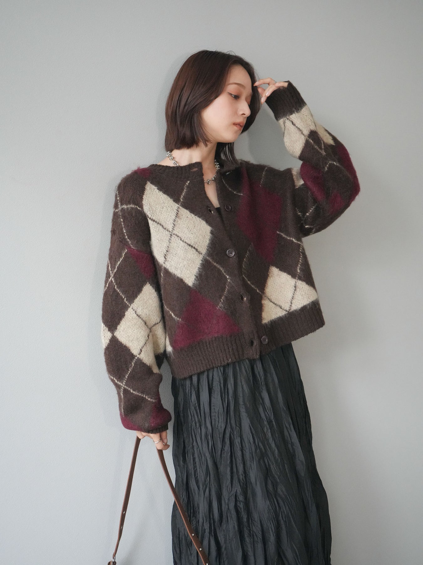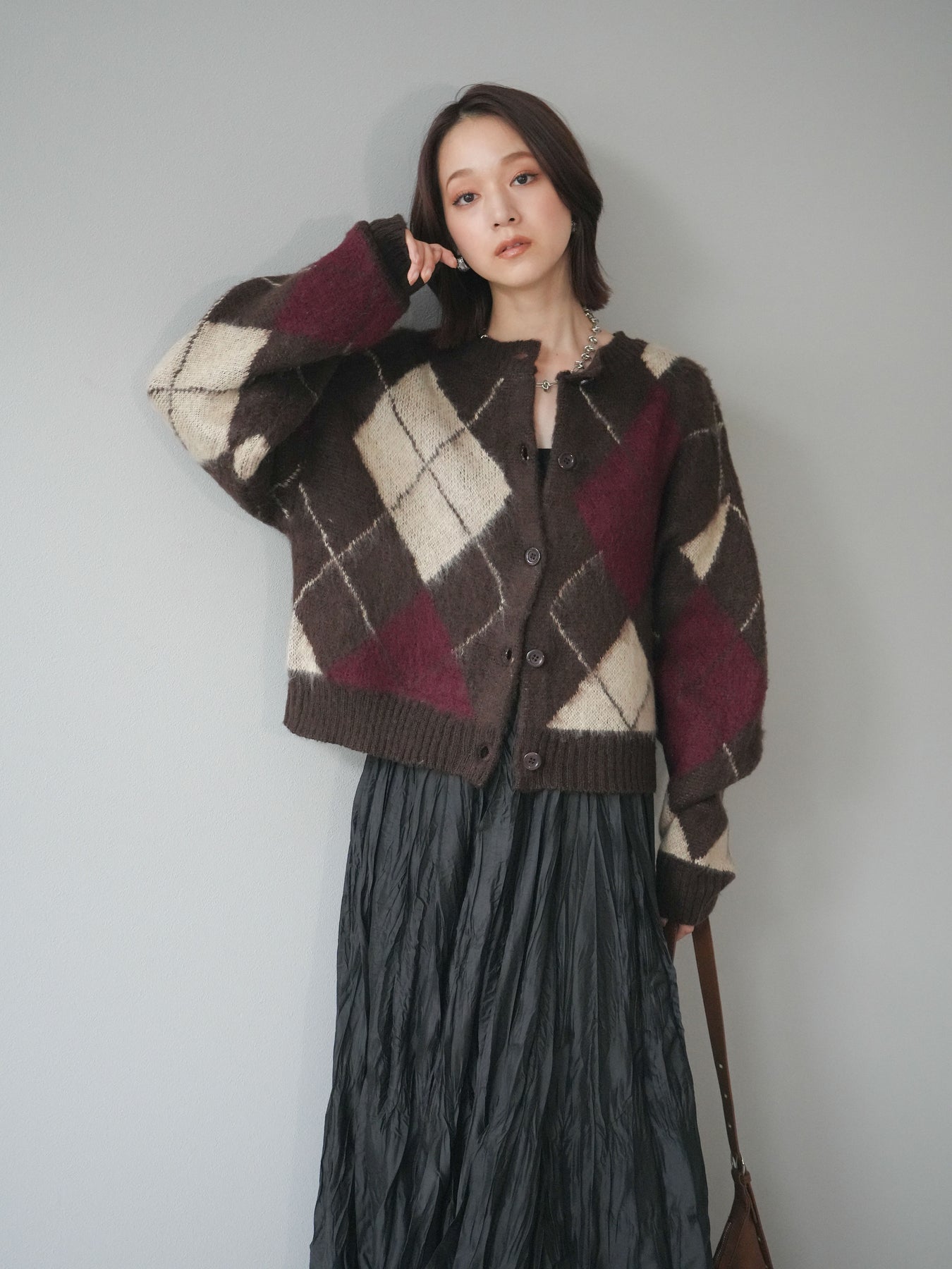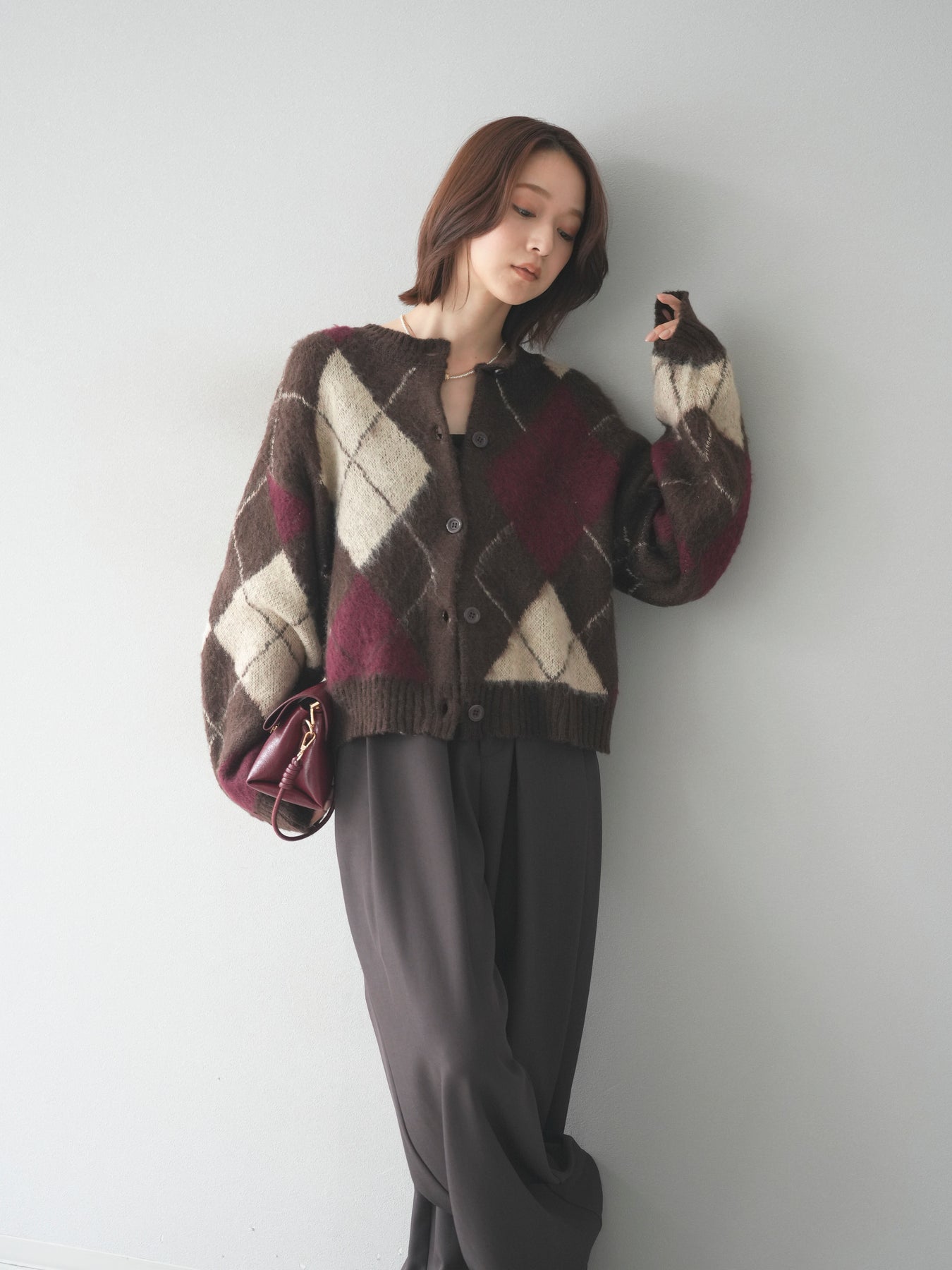 [予約]モヘアタッチアーガイルニットカーディガン/brown