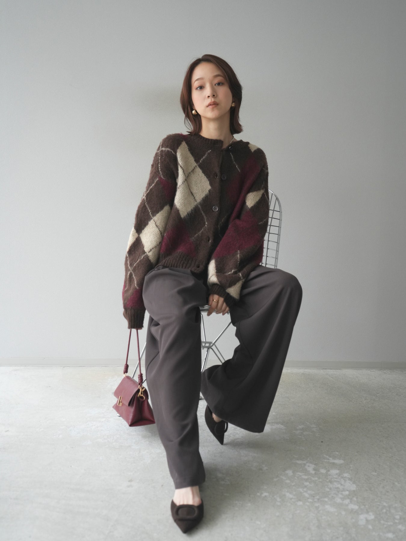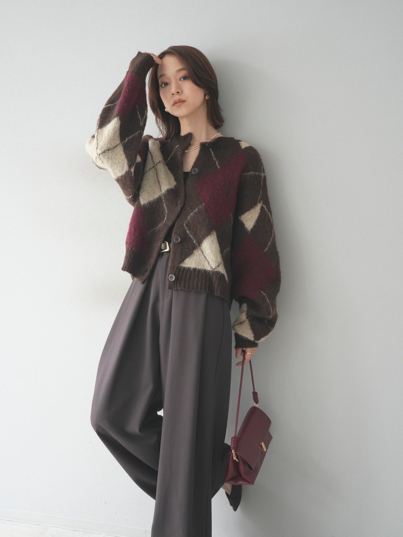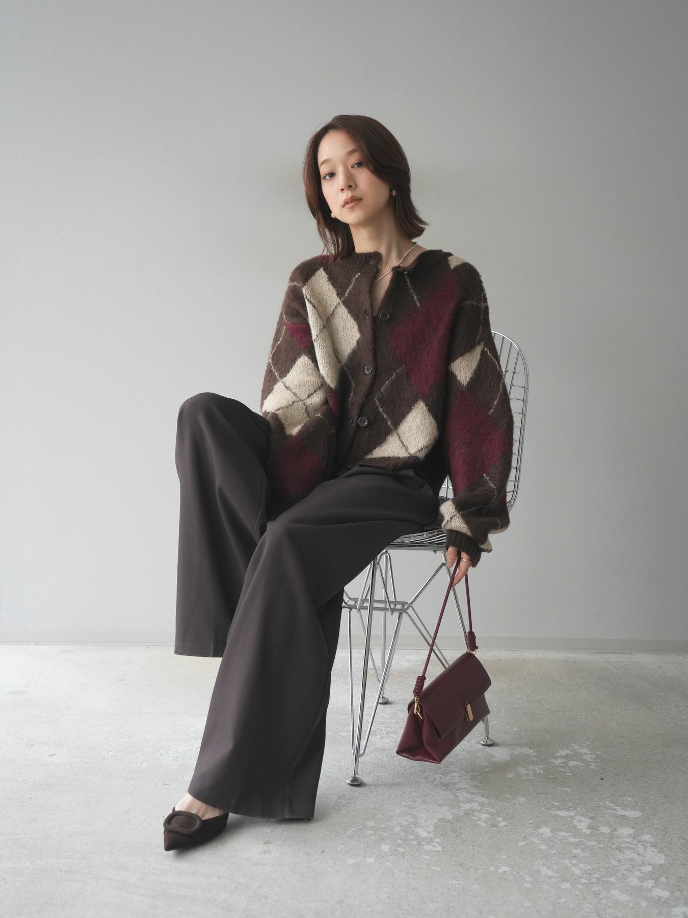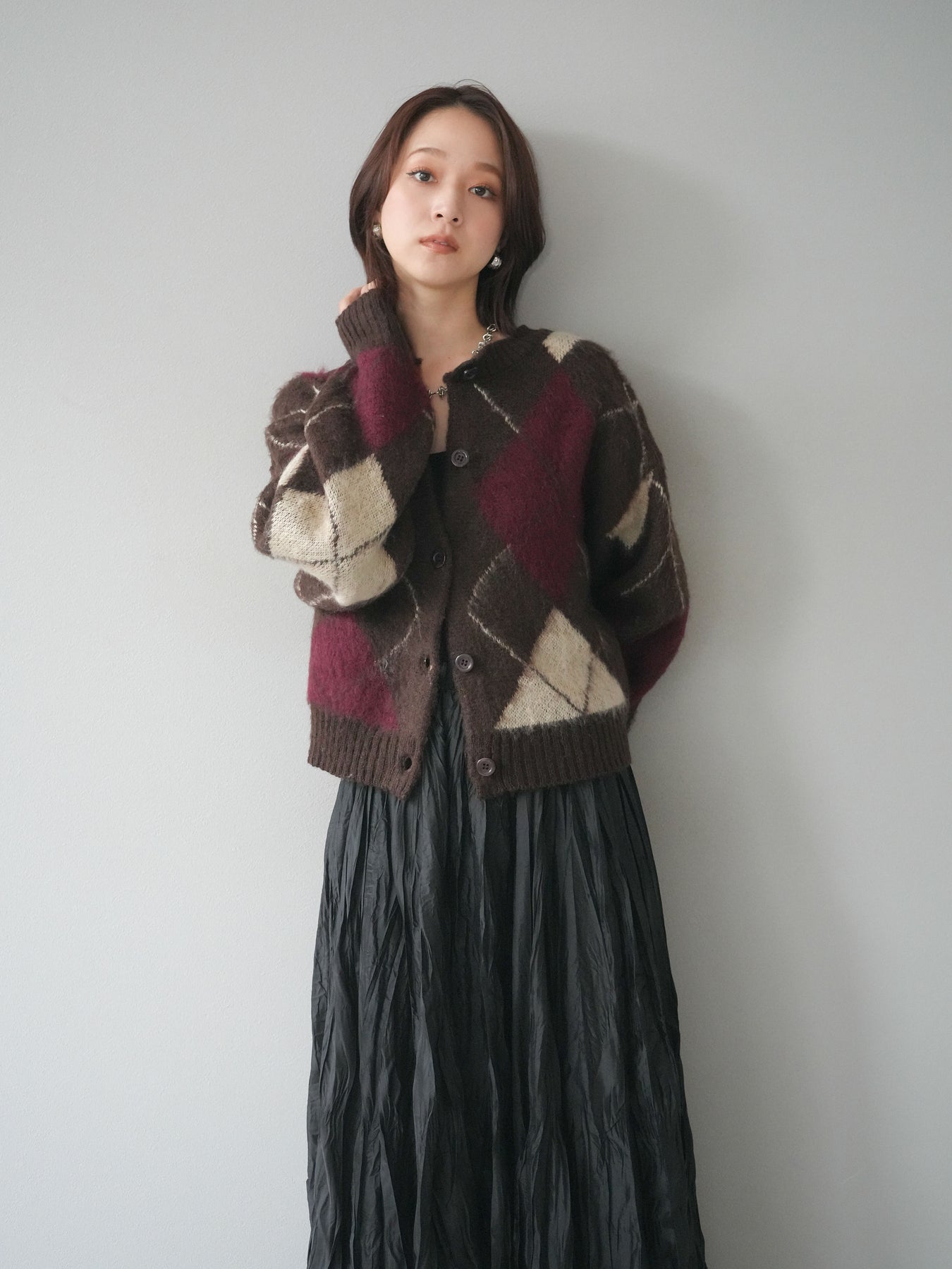 [予約]モヘアタッチアーガイルニットカーディガン/brown