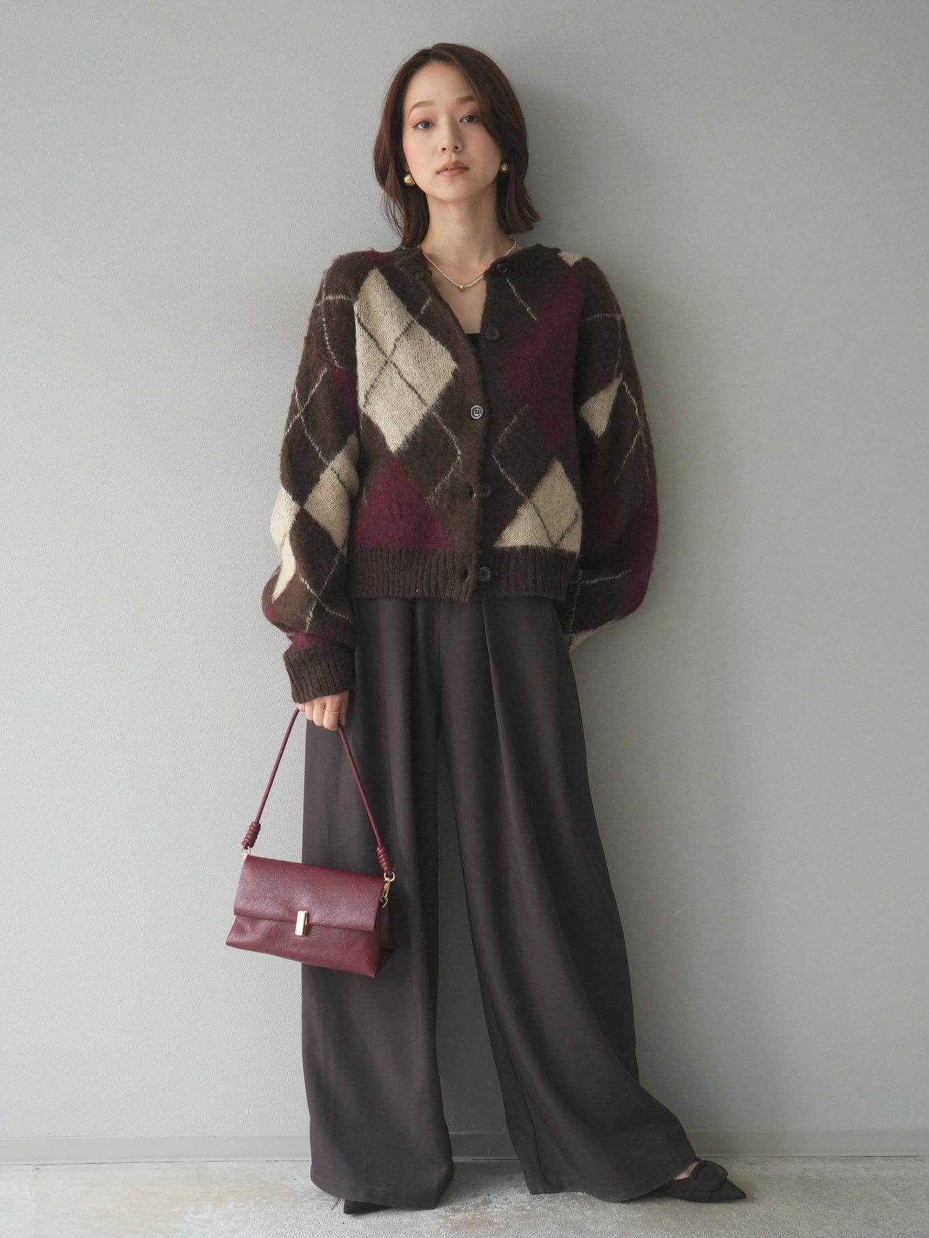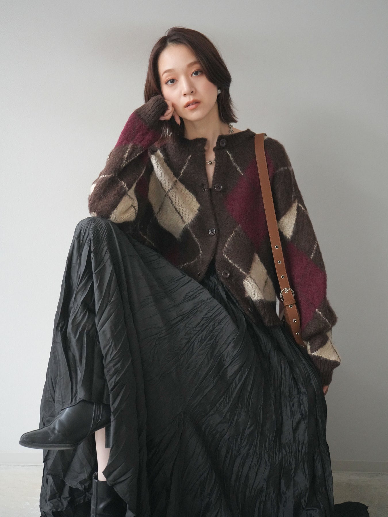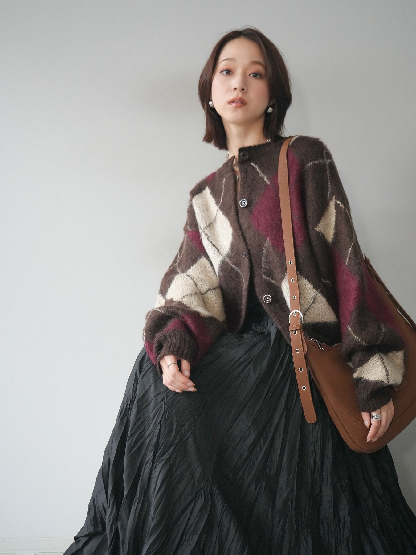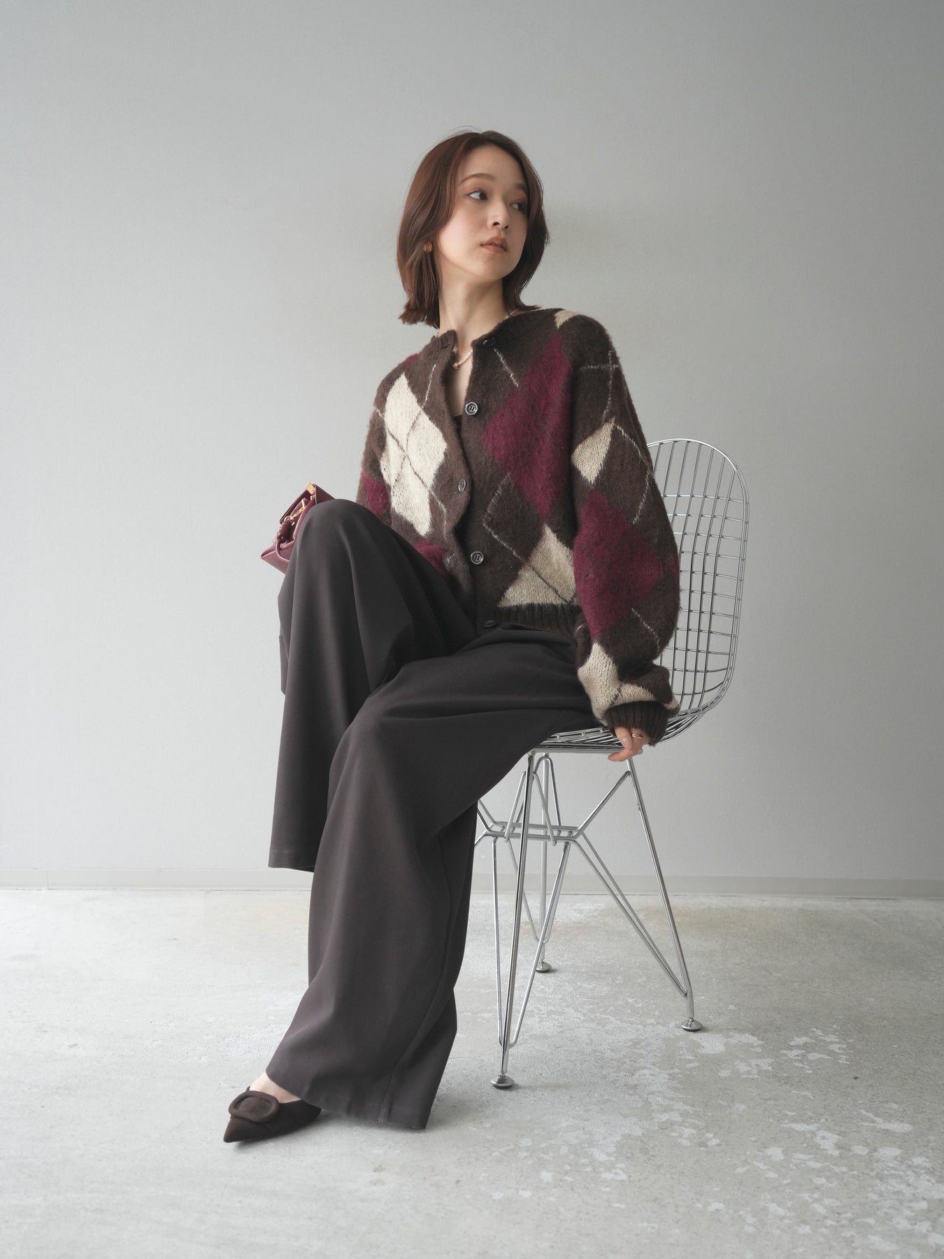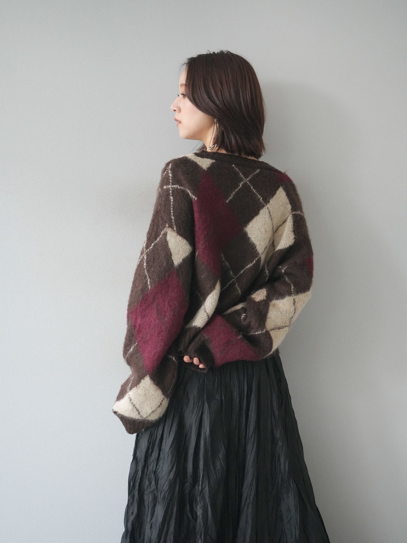 [予約]モヘアタッチアーガイルニットカーディガン/brown