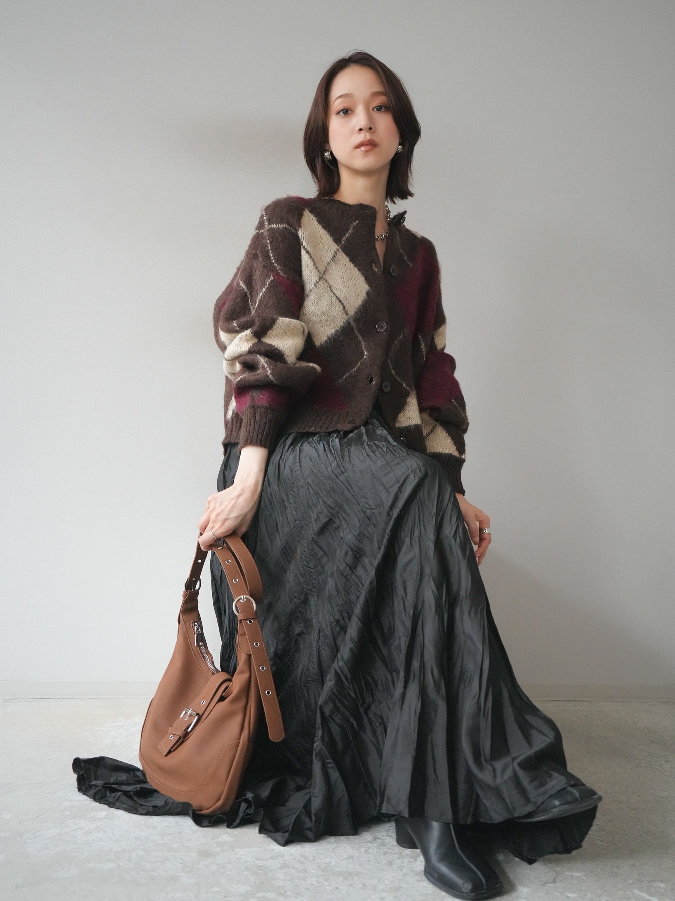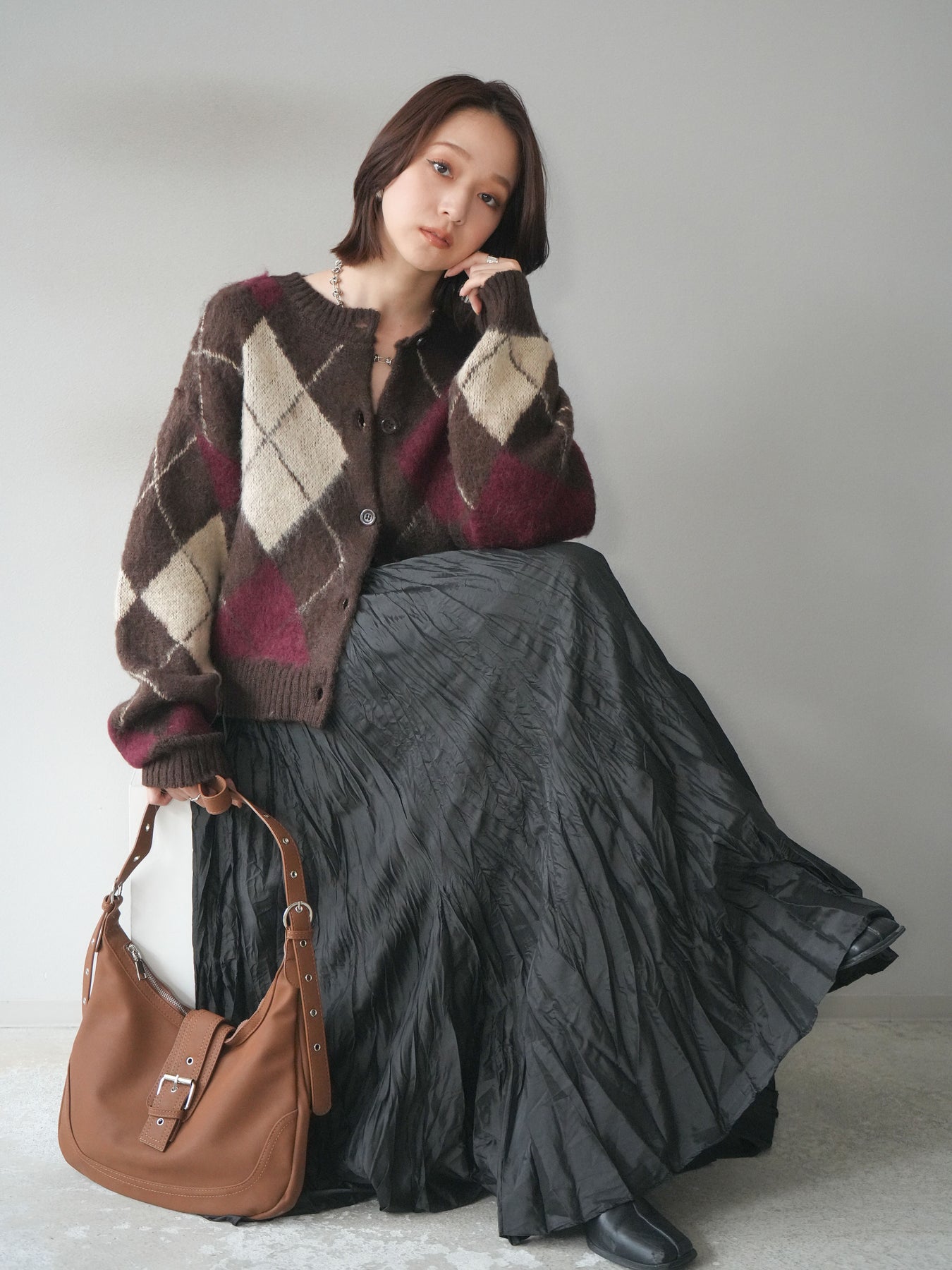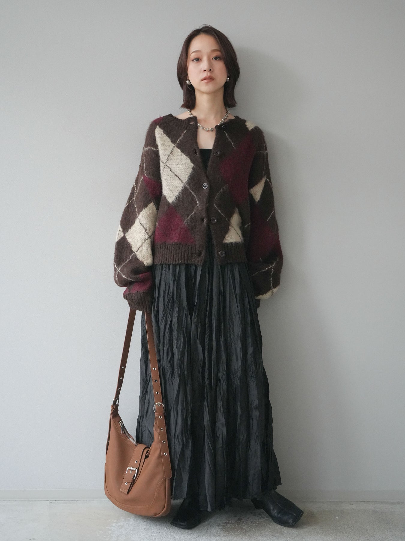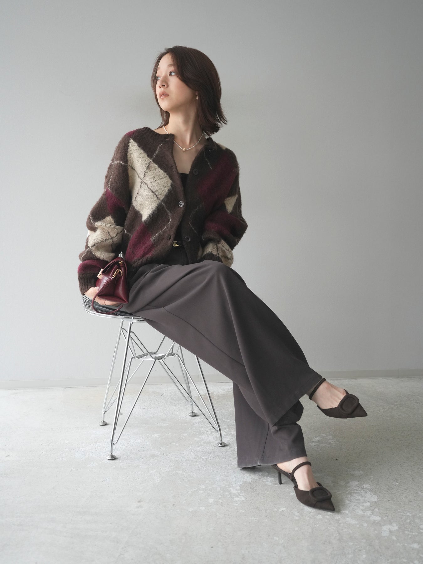 [予約]モヘアタッチアーガイルニットカーディガン/brown
