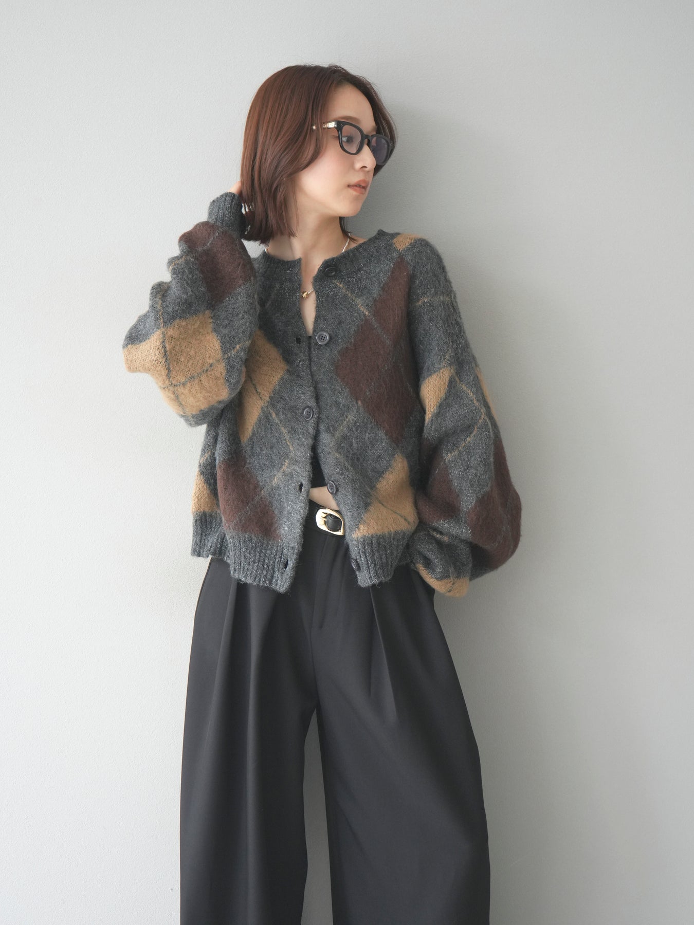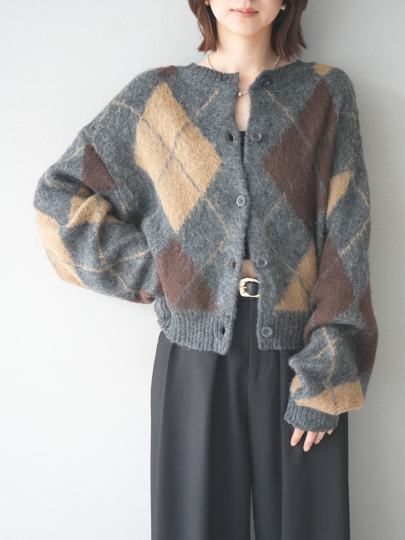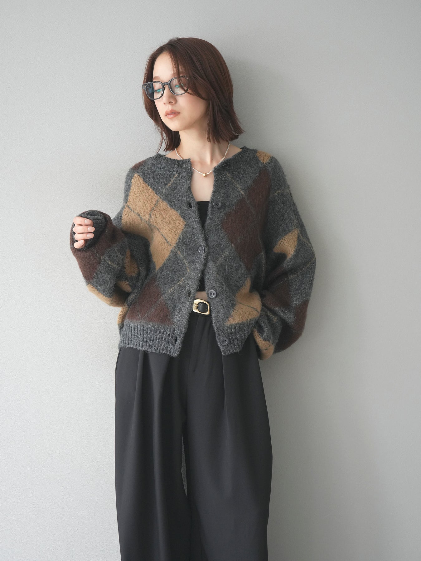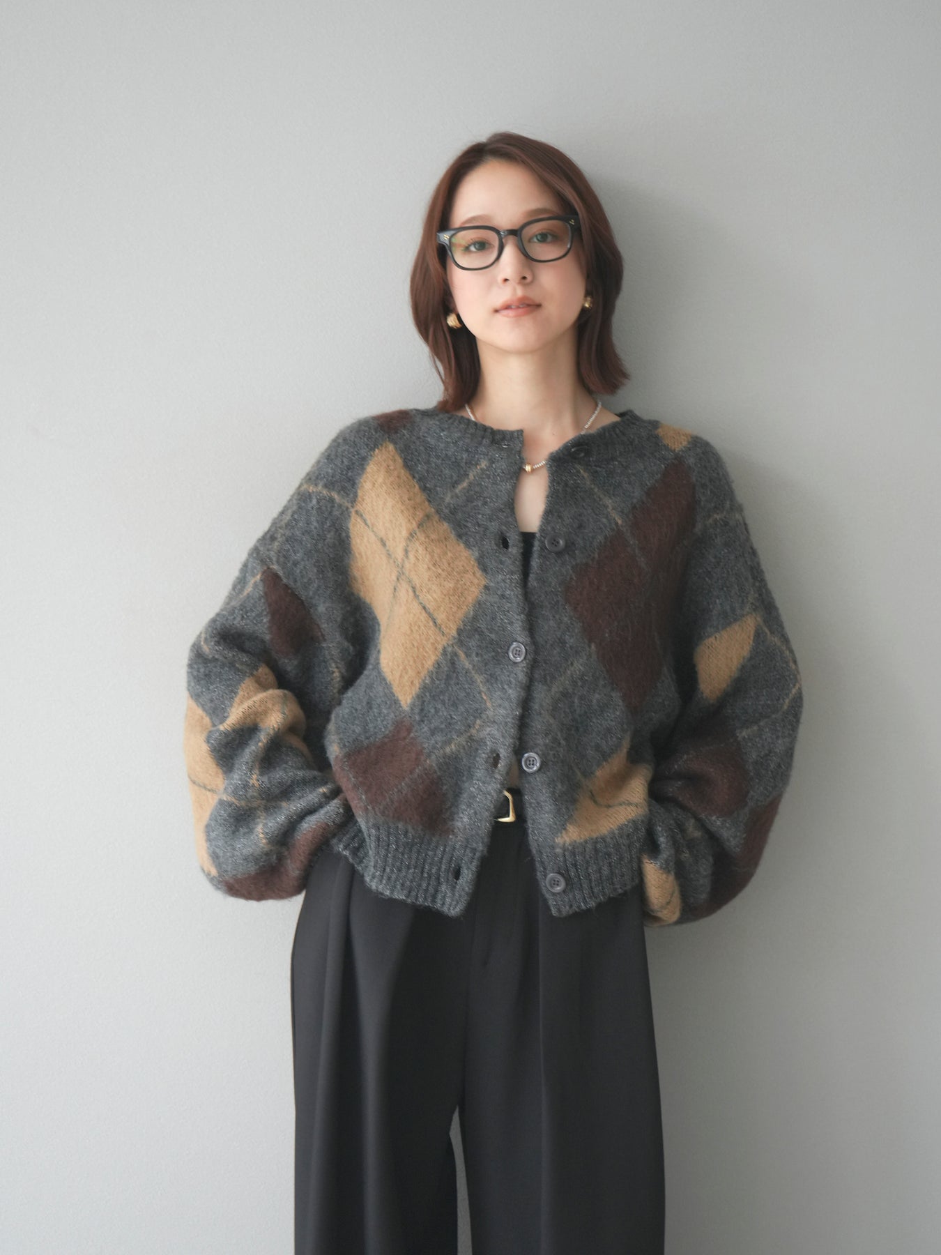 [予約]モヘアタッチアーガイルニットカーディガン/charcoal