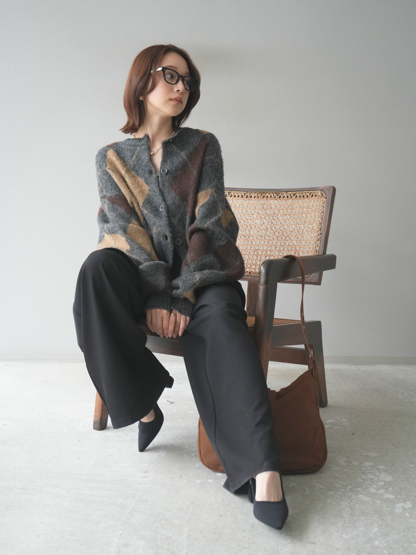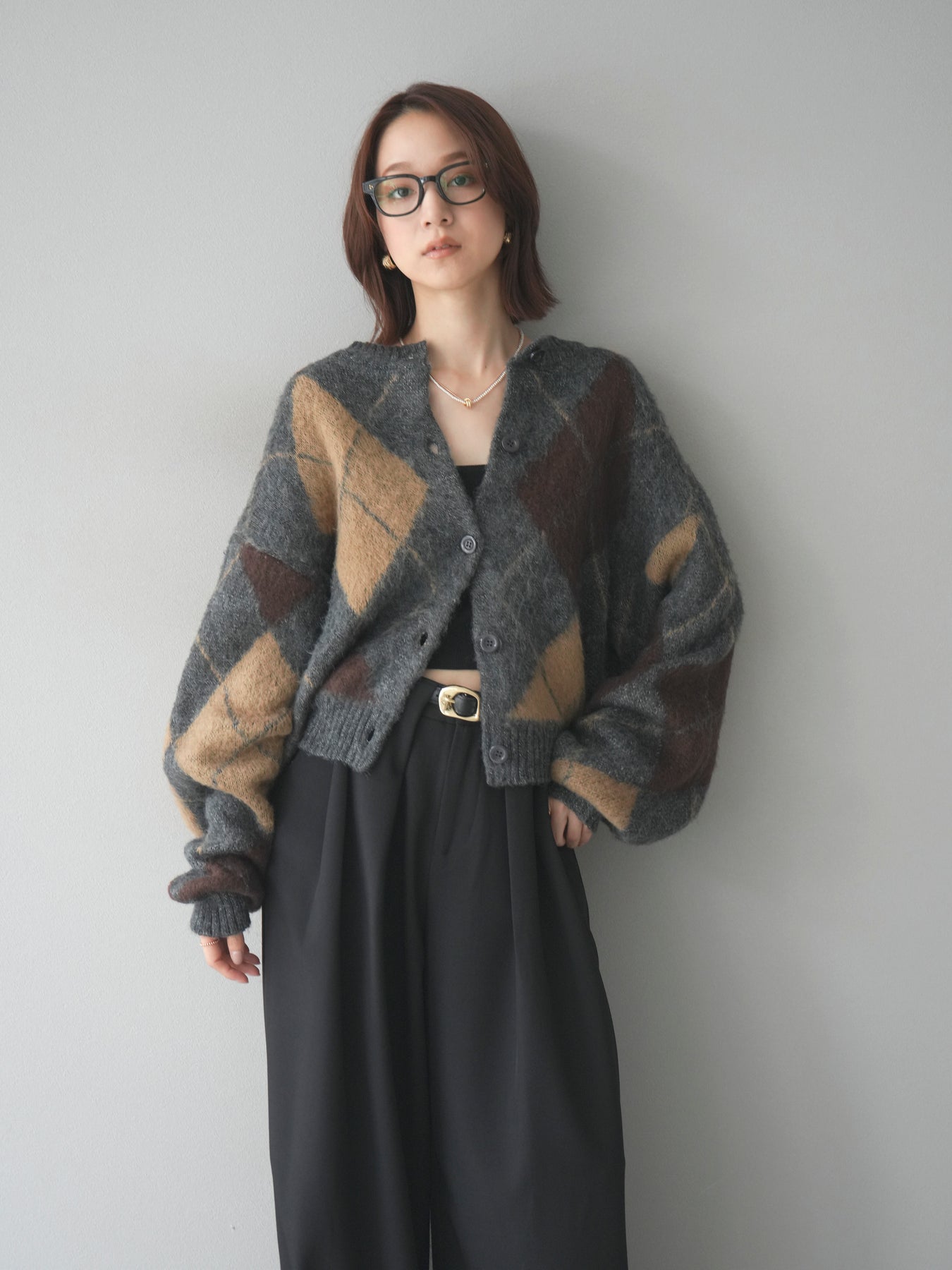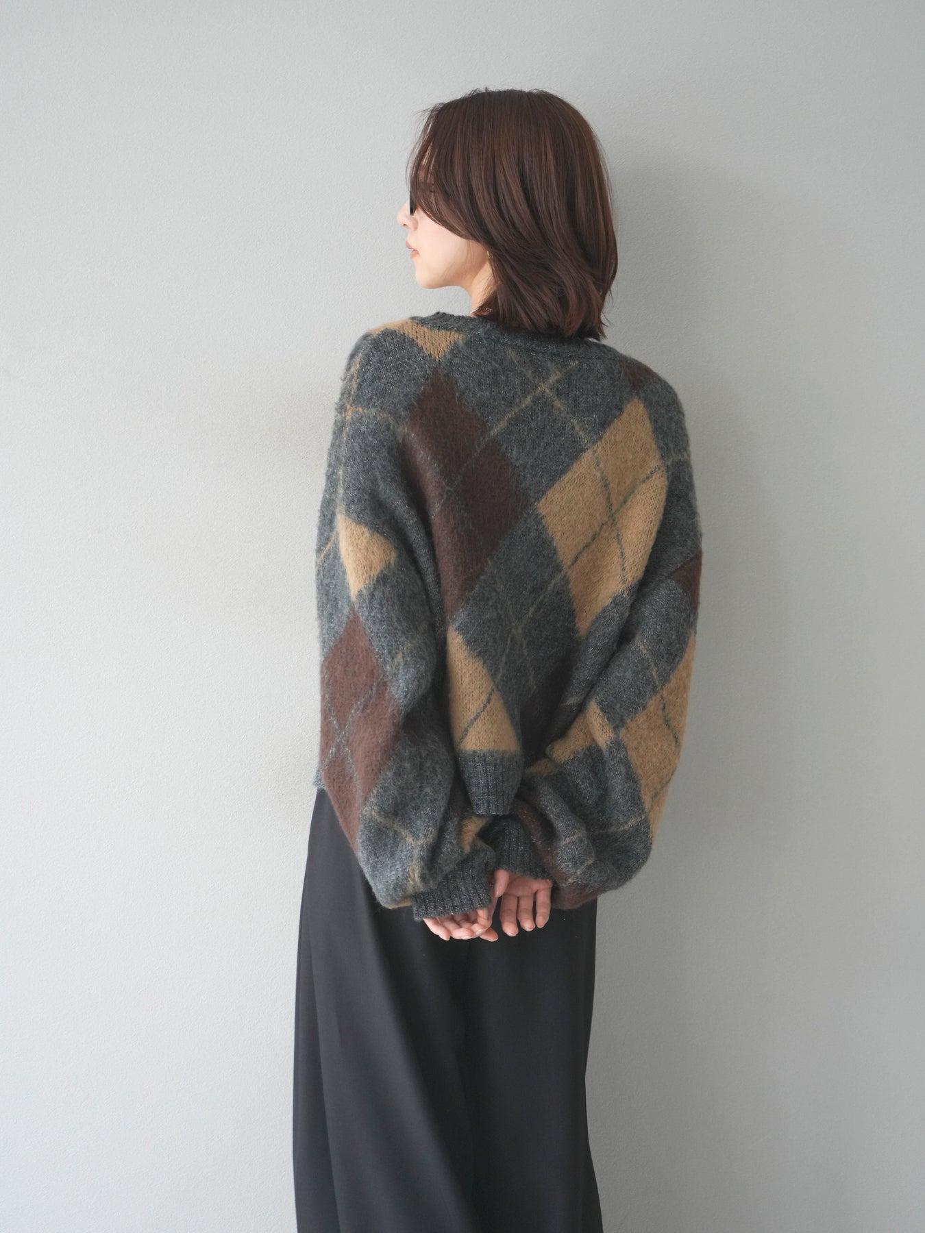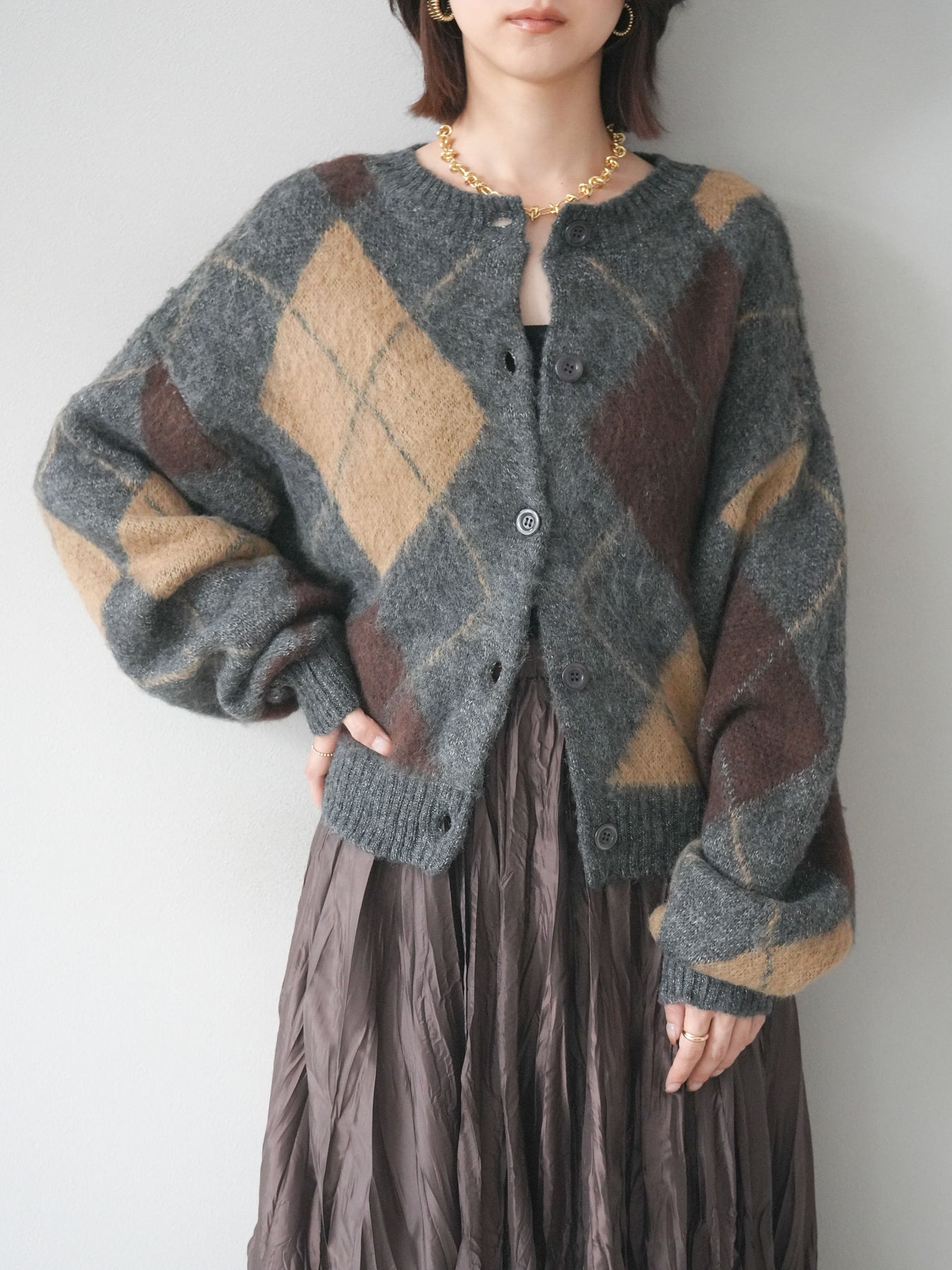 [予約]モヘアタッチアーガイルニットカーディガン/charcoal