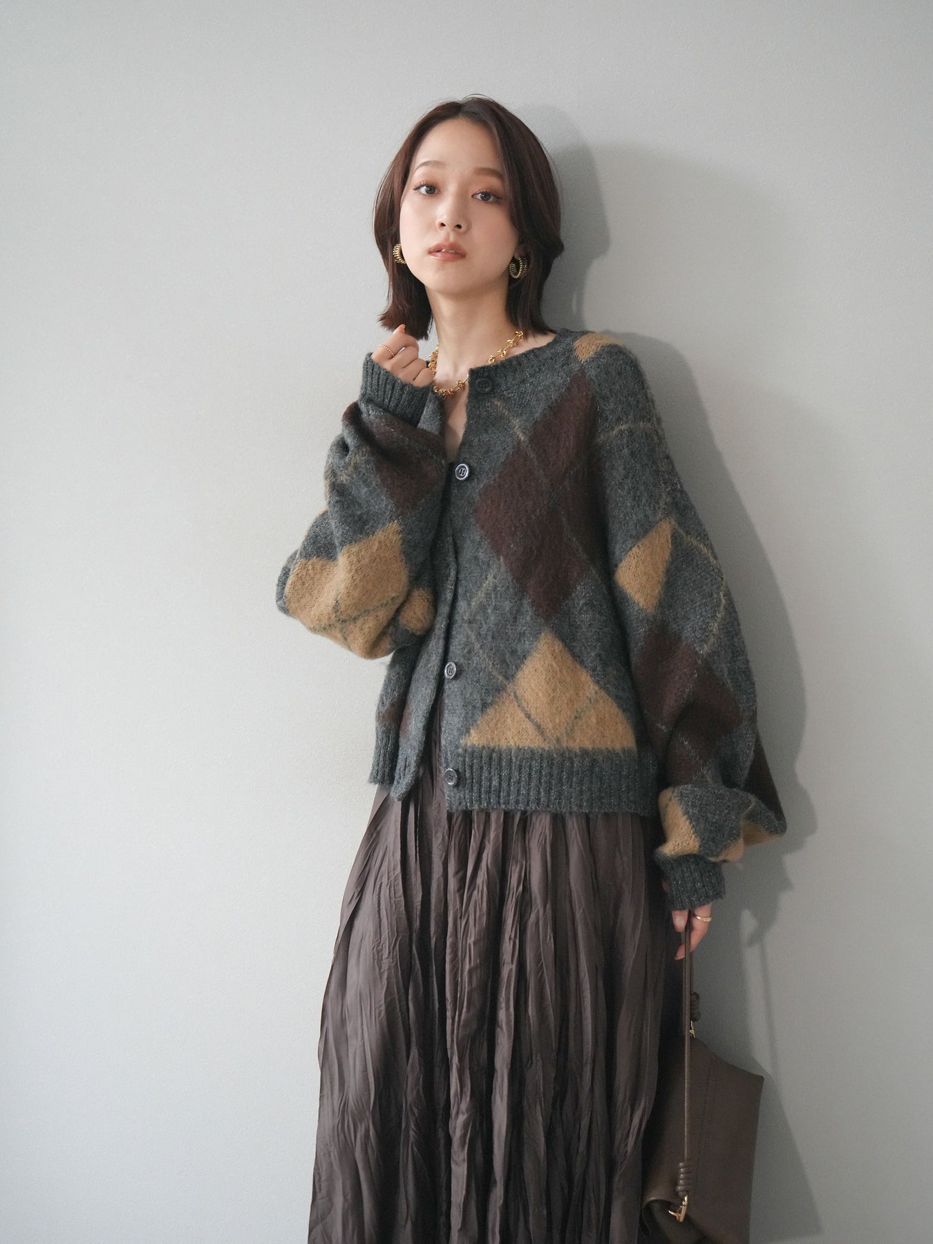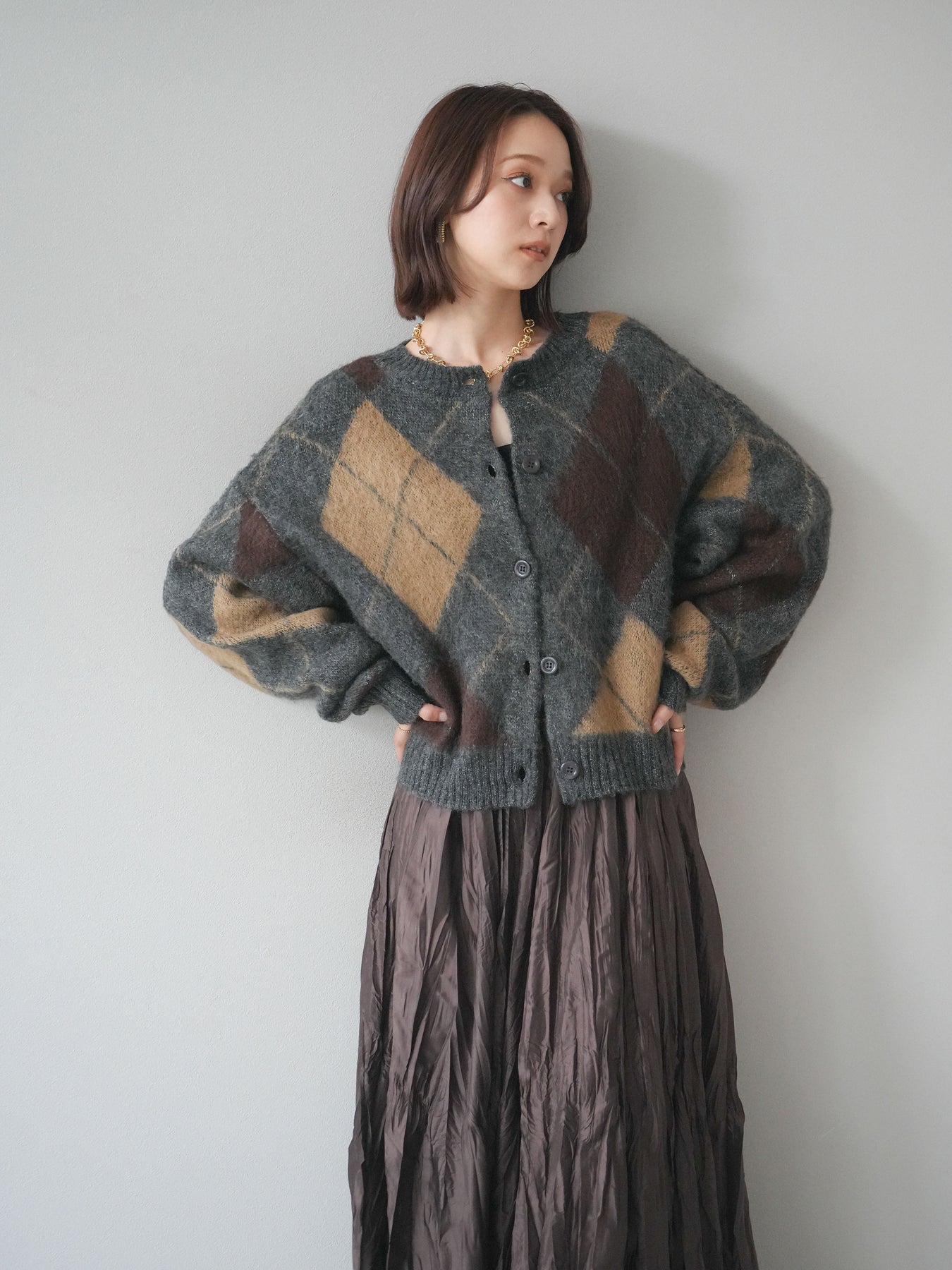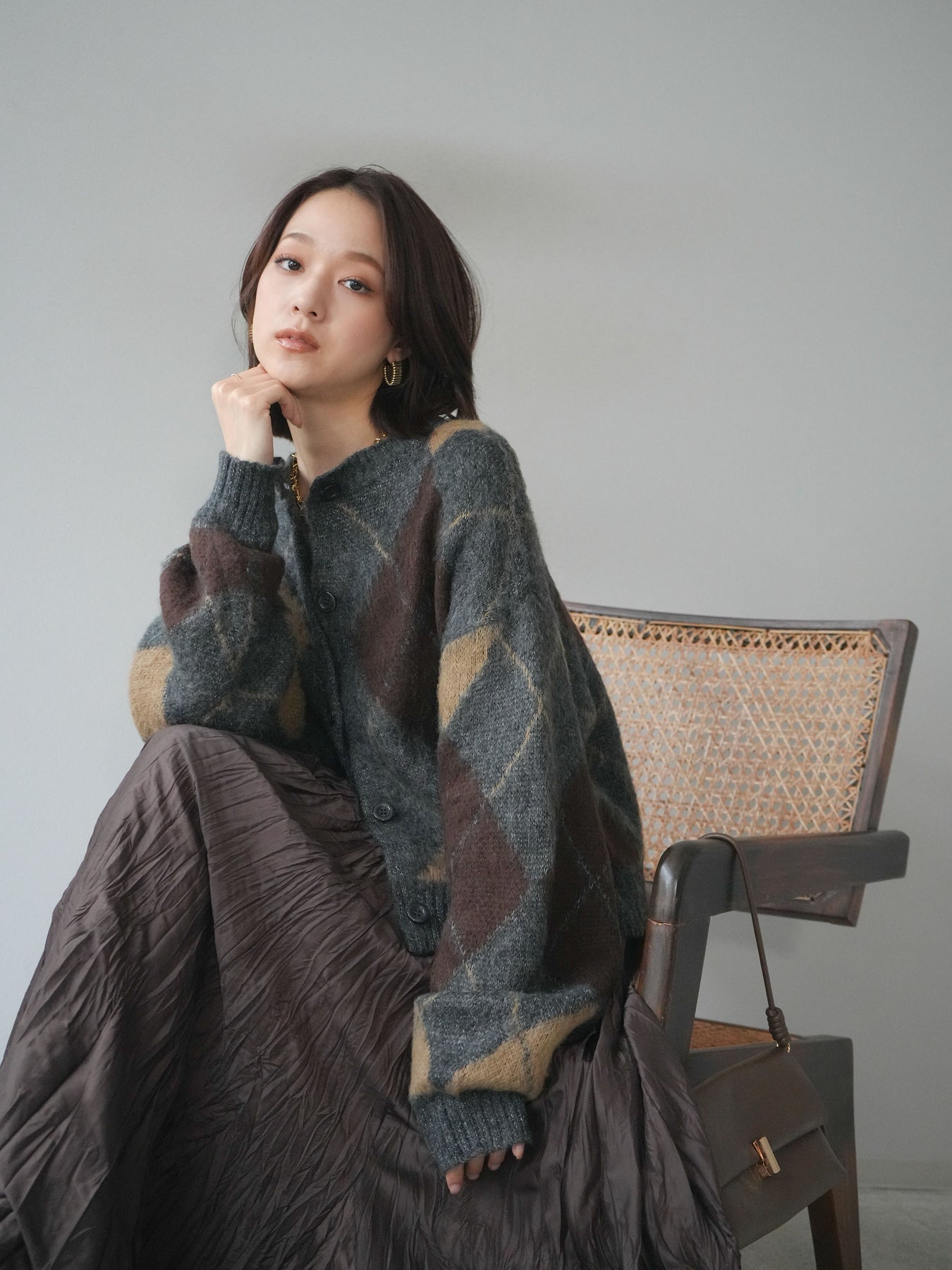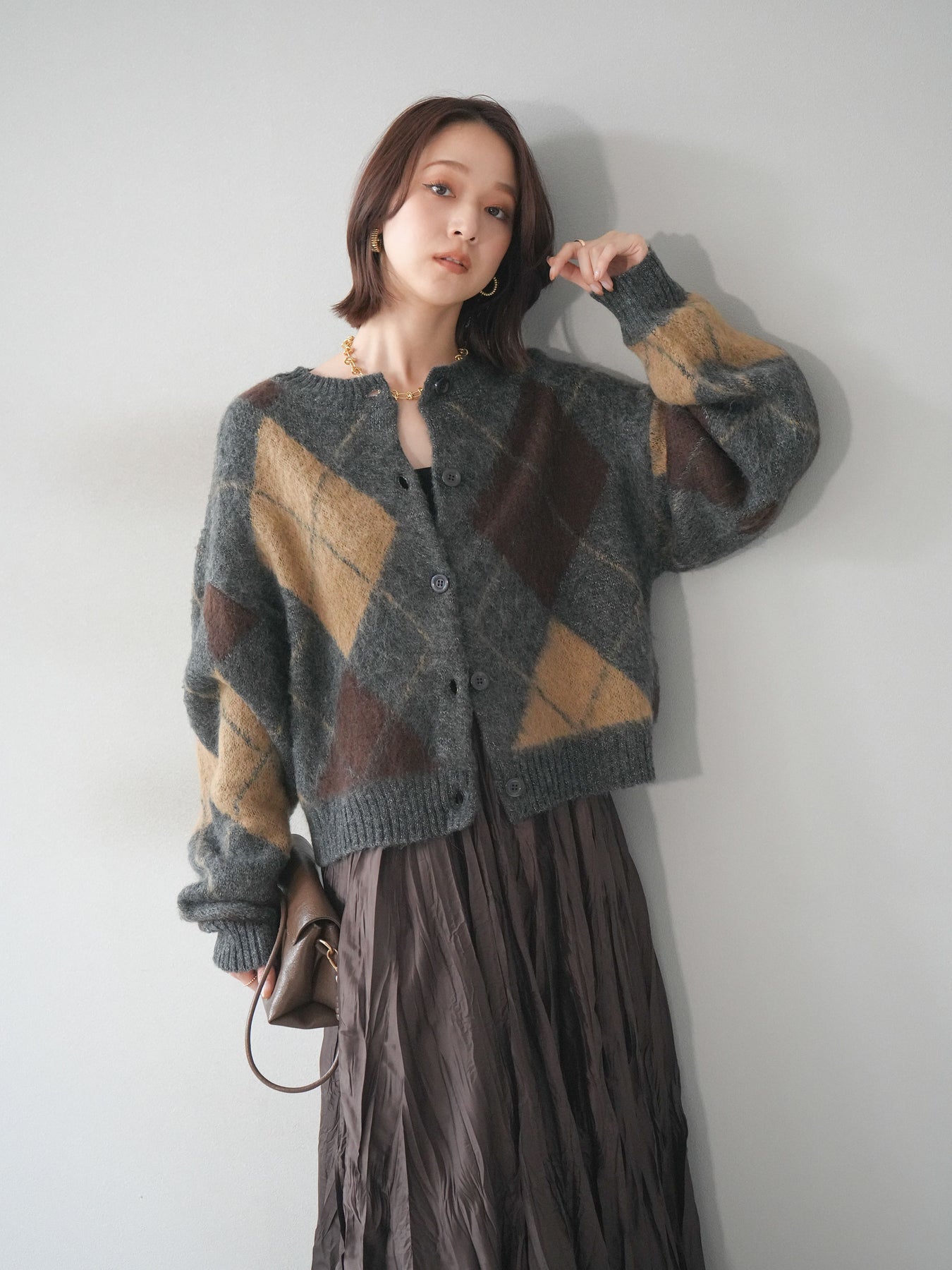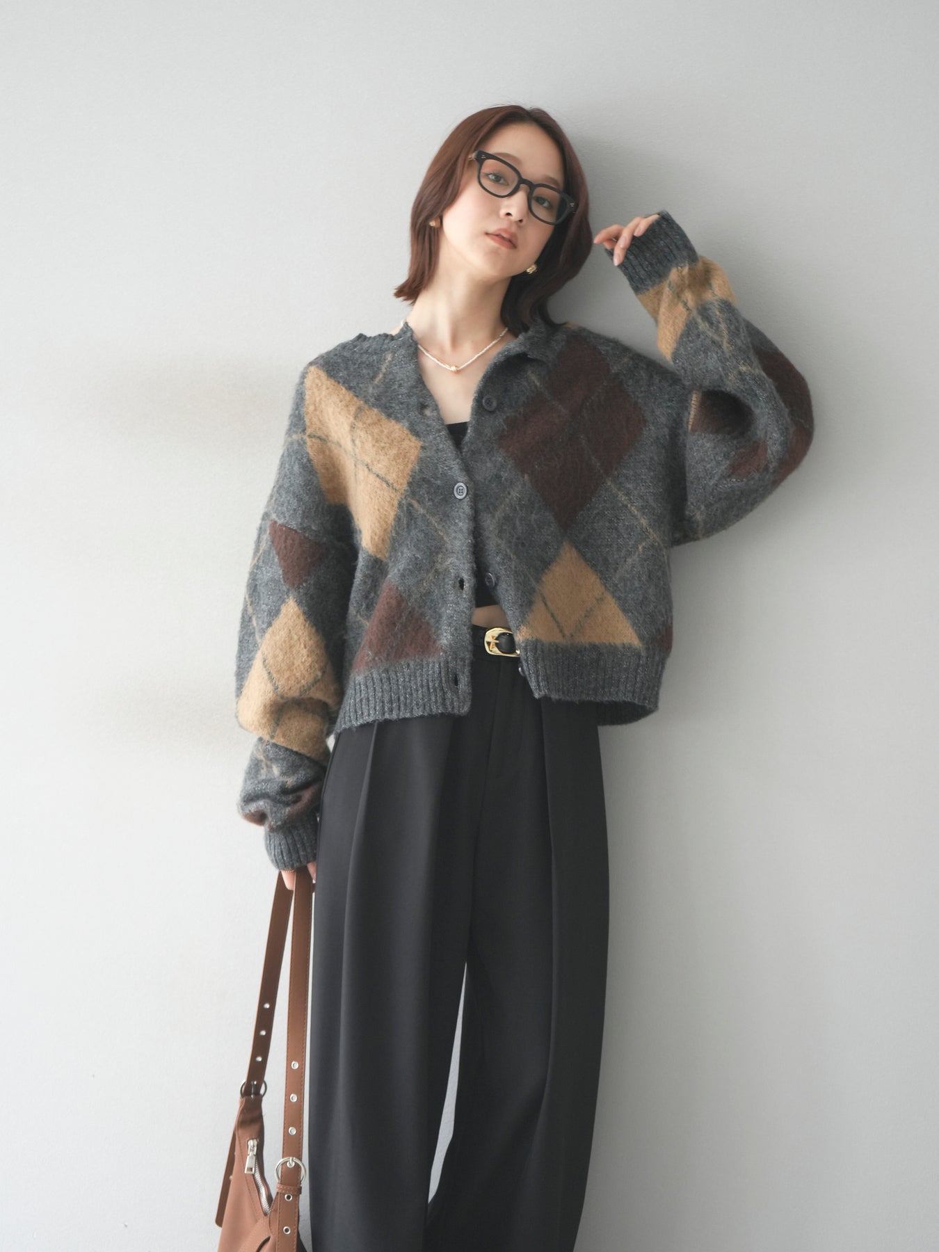 [予約]モヘアタッチアーガイルニットカーディガン/charcoal