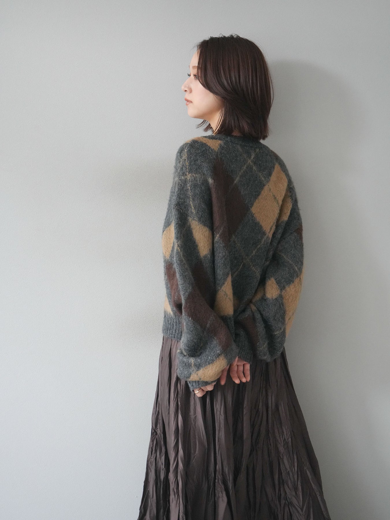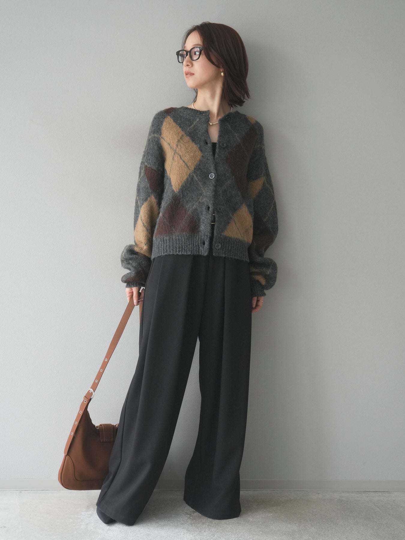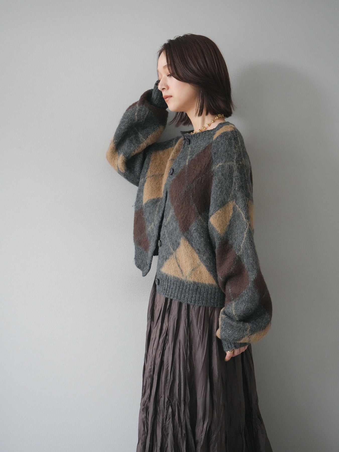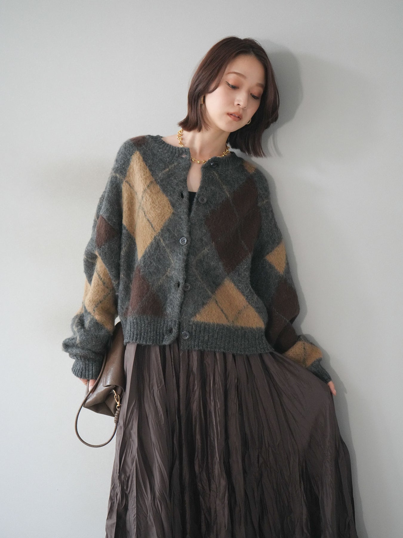 [予約]モヘアタッチアーガイルニットカーディガン/charcoal