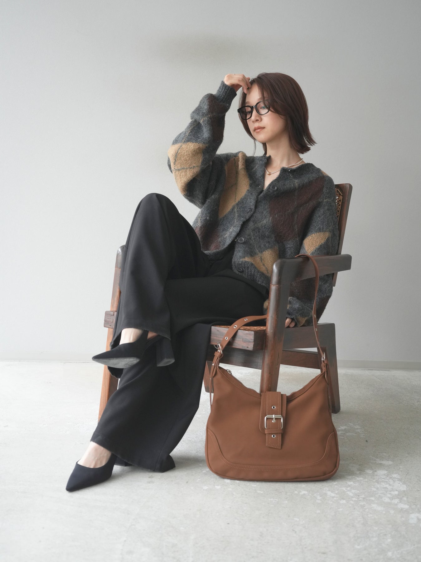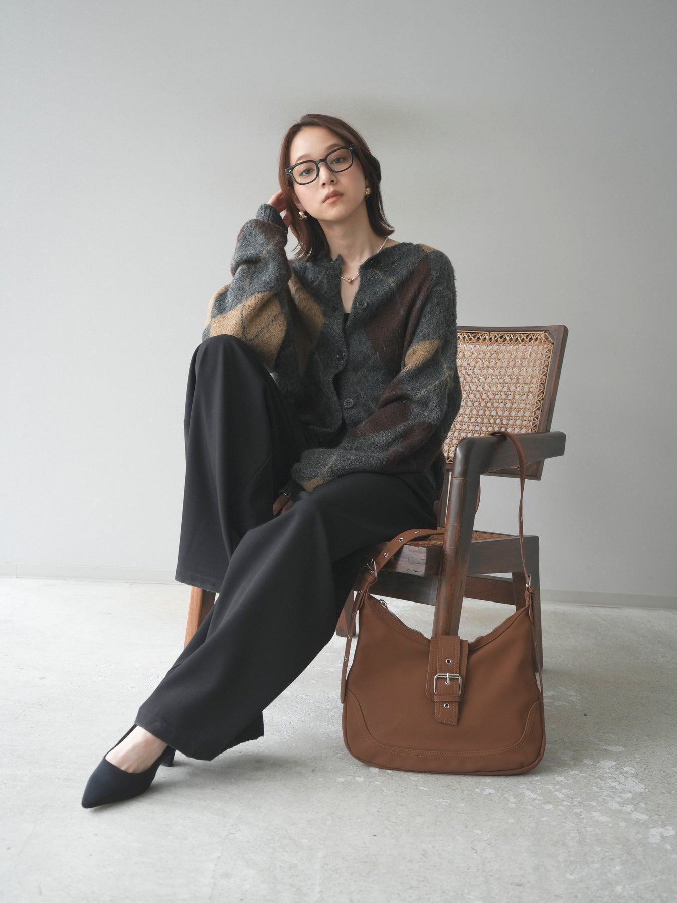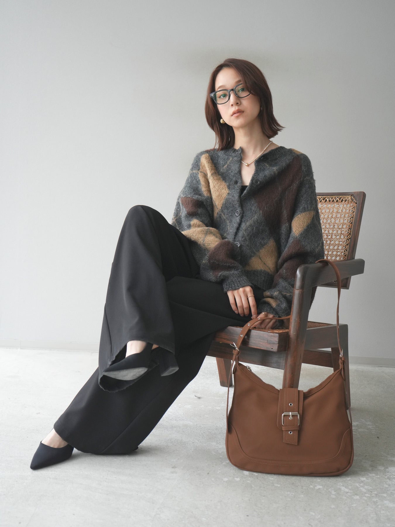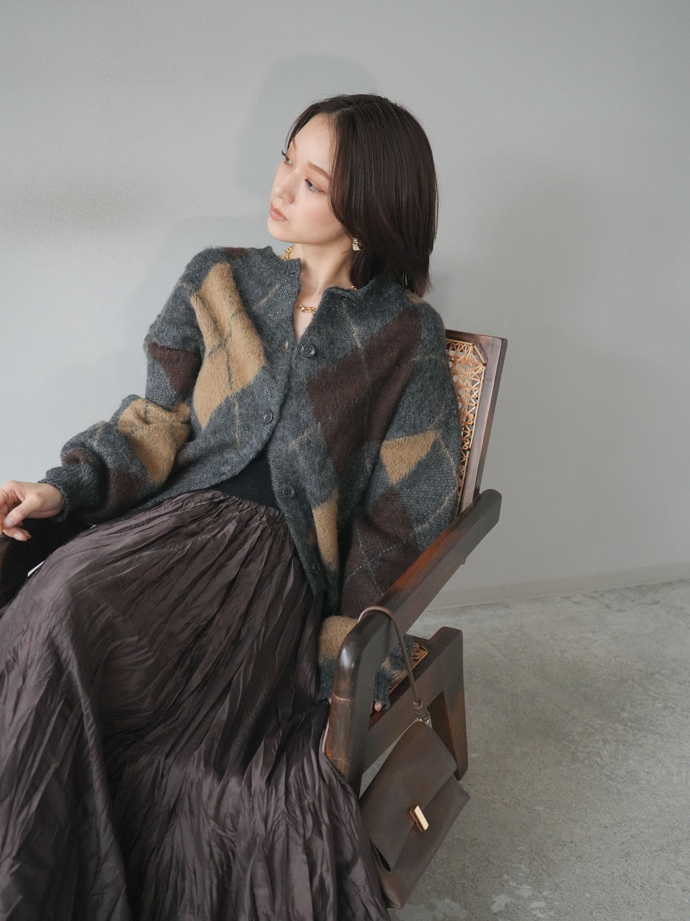 [予約]モヘアタッチアーガイルニットカーディガン/charcoal