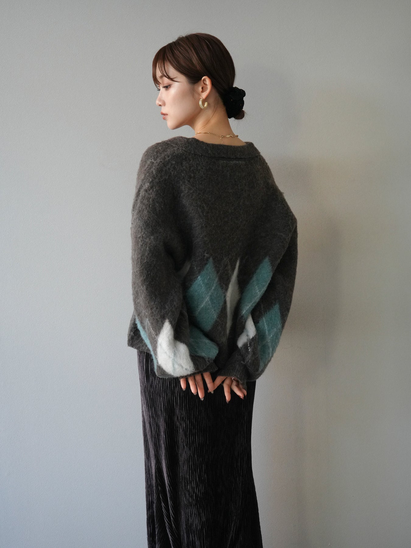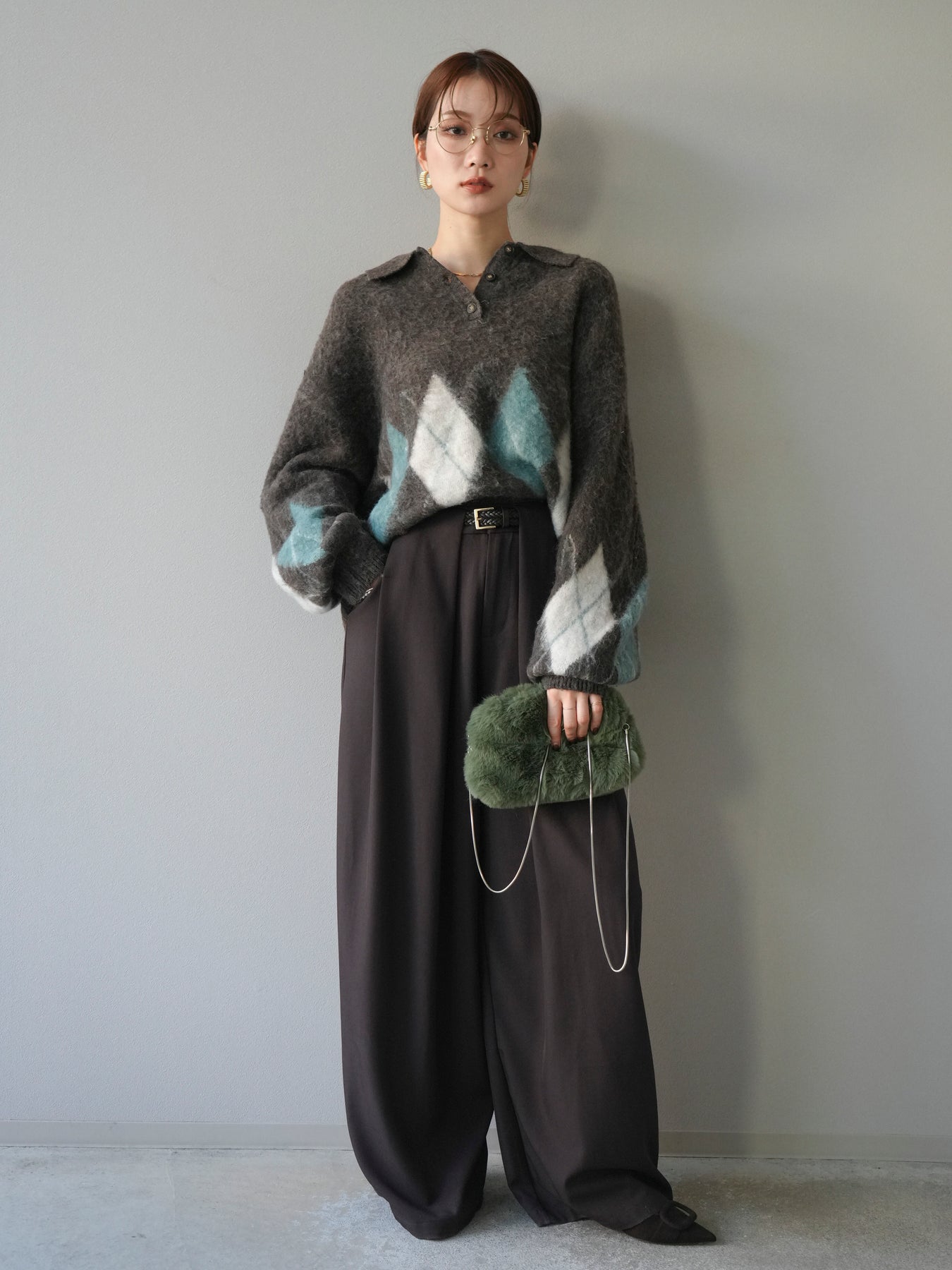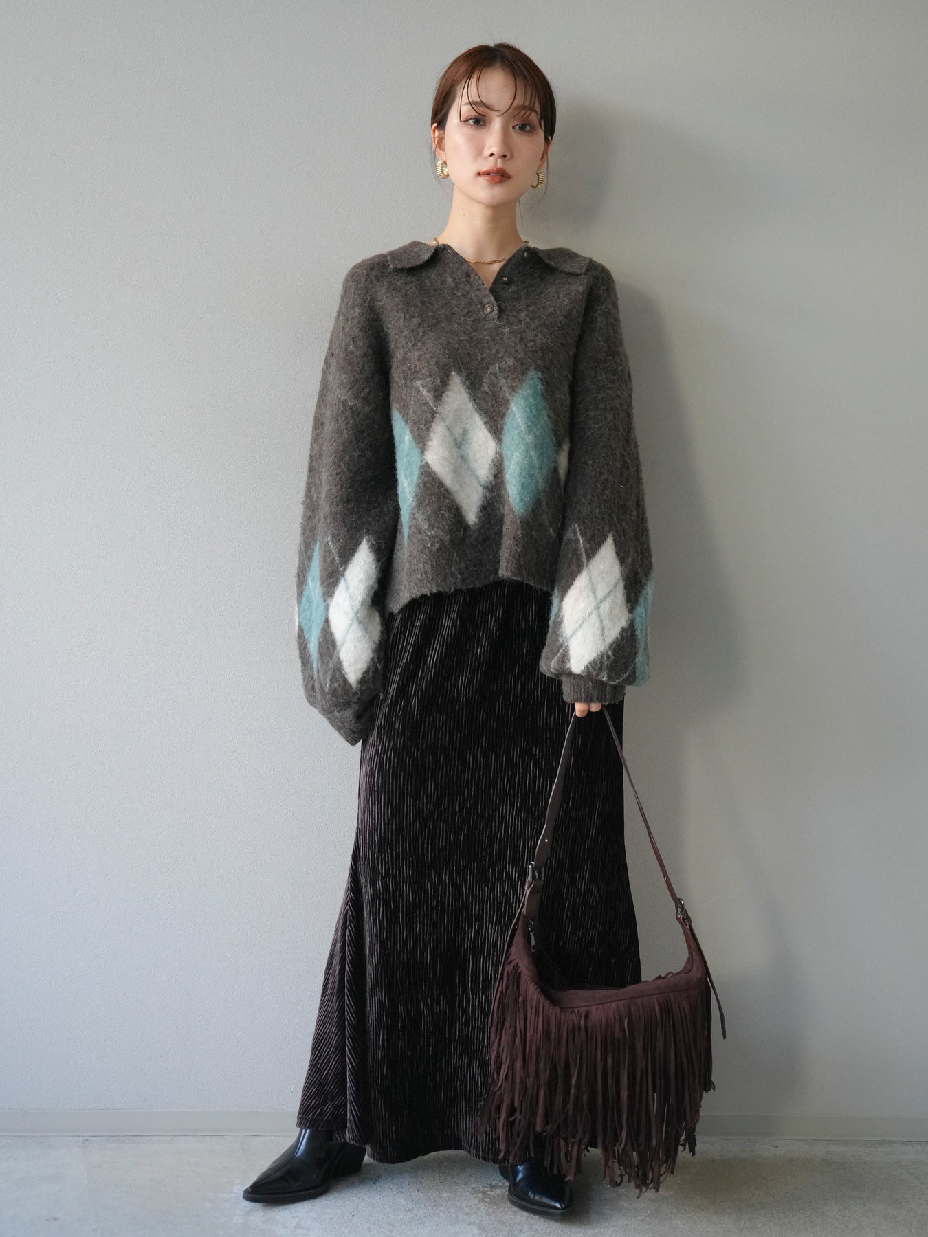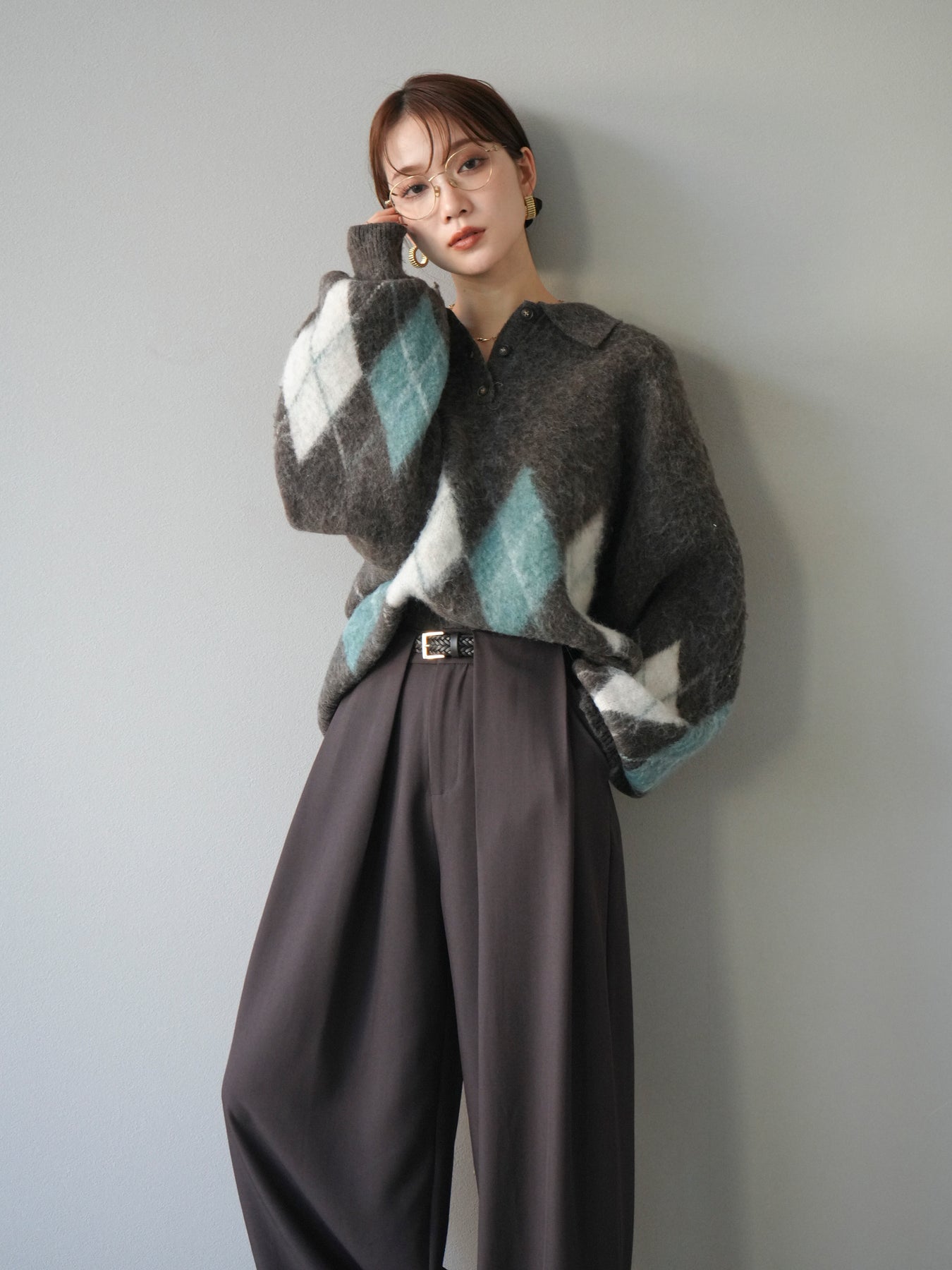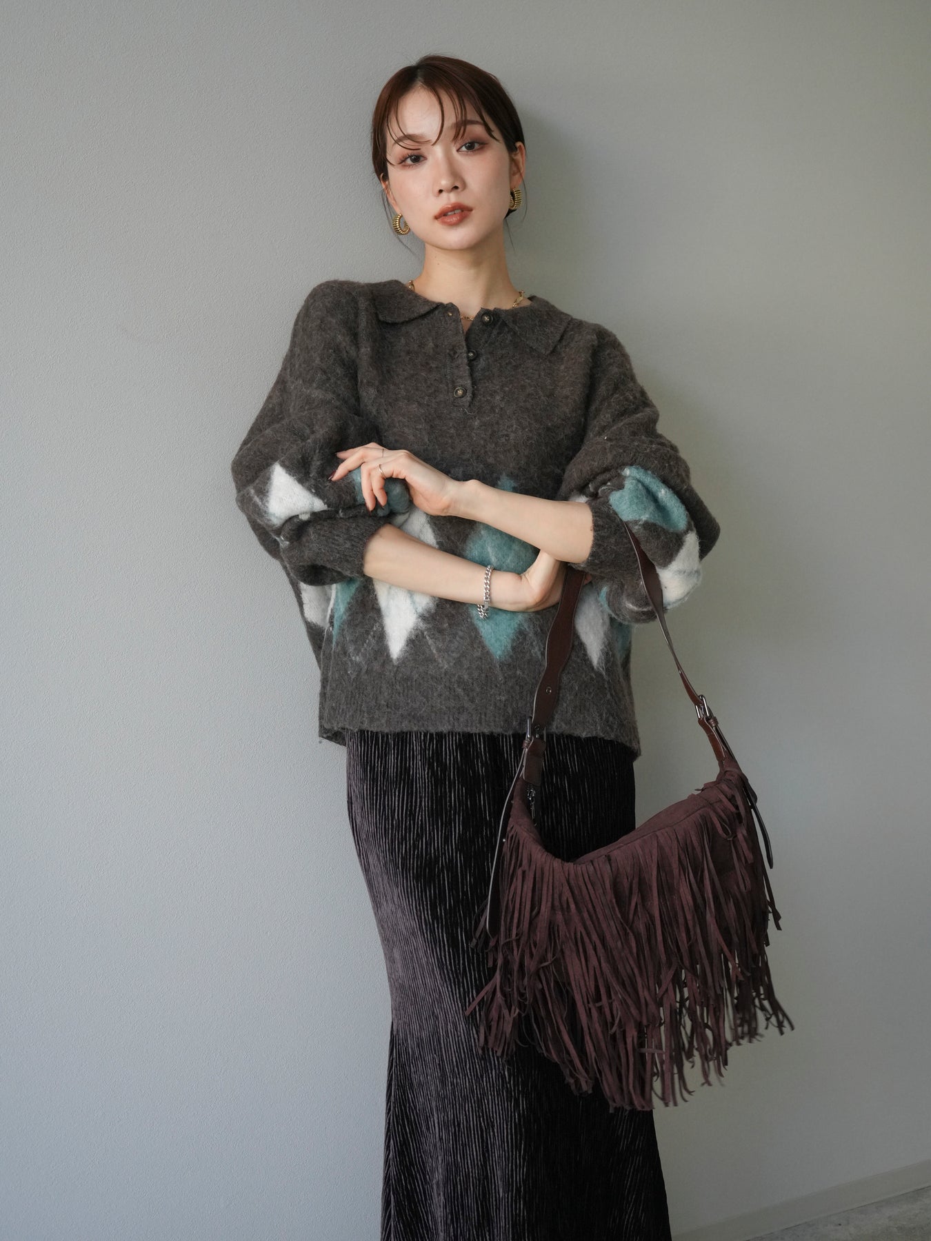 [予約]アーガイル柄ルーズポロニットプルオーバー/brown