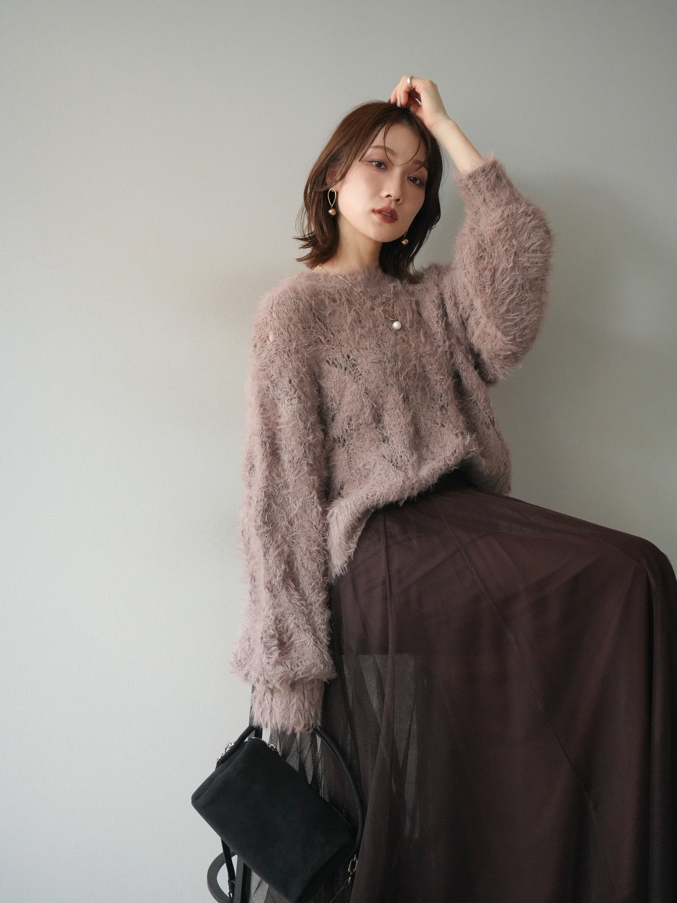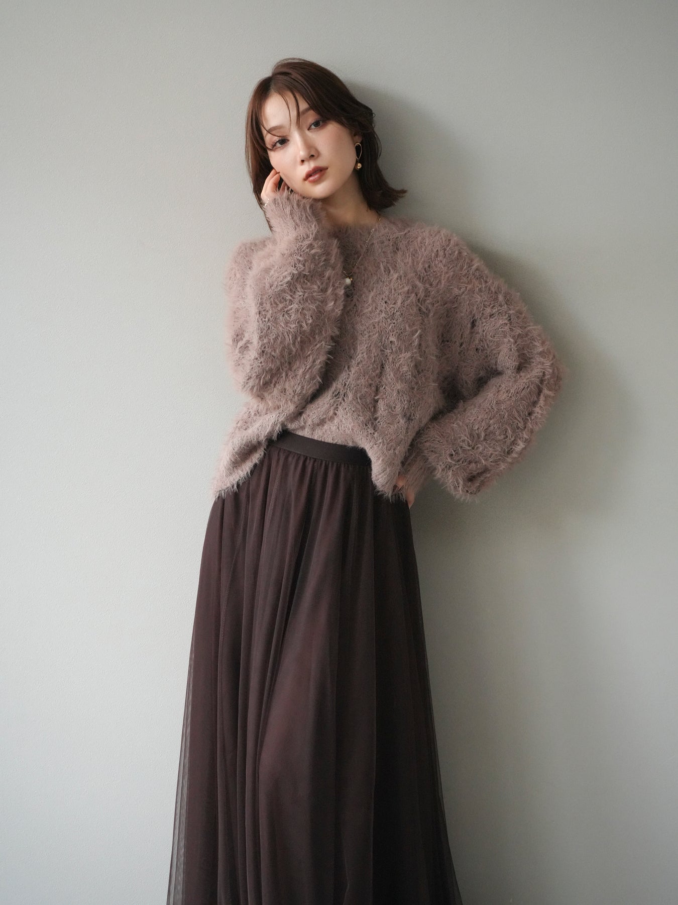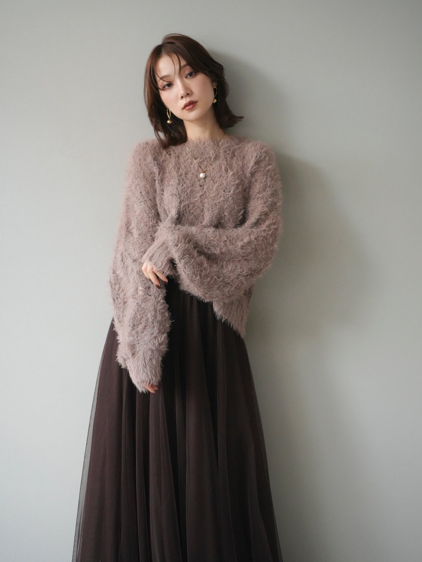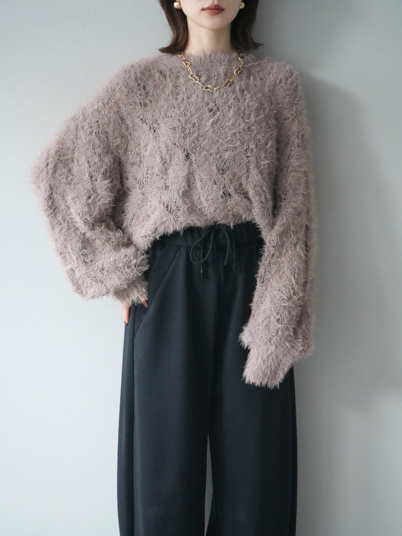 [予約]モール×フェザー透かし編みニットプルオーバーに関連する商品を探す↓