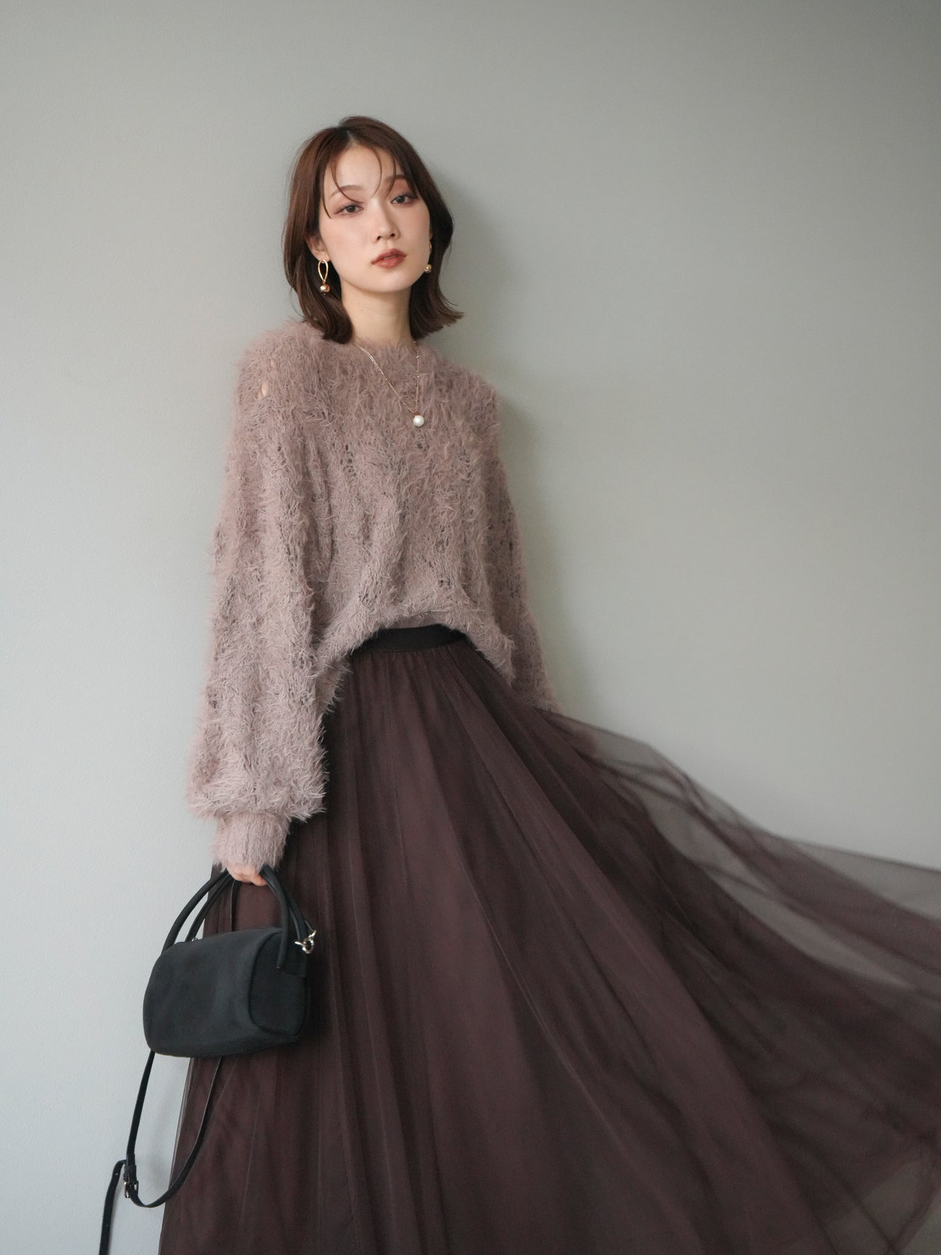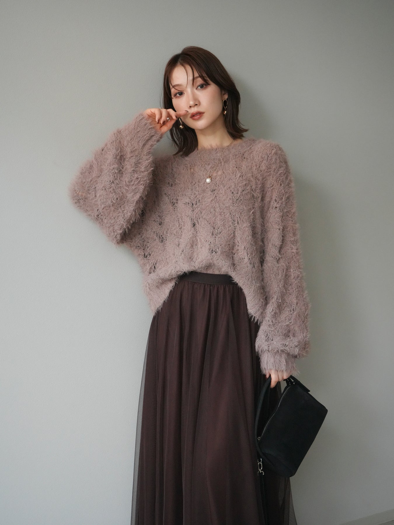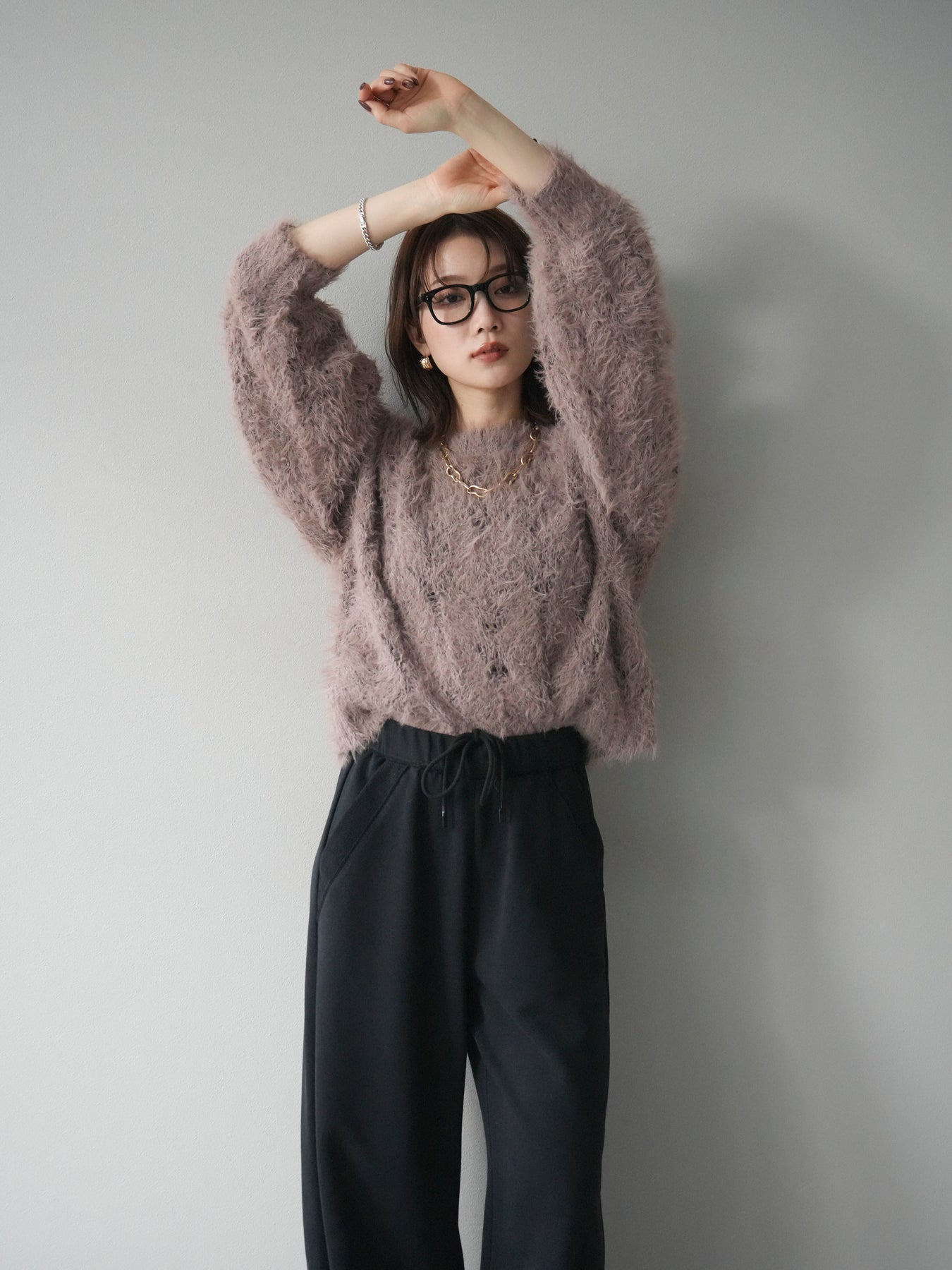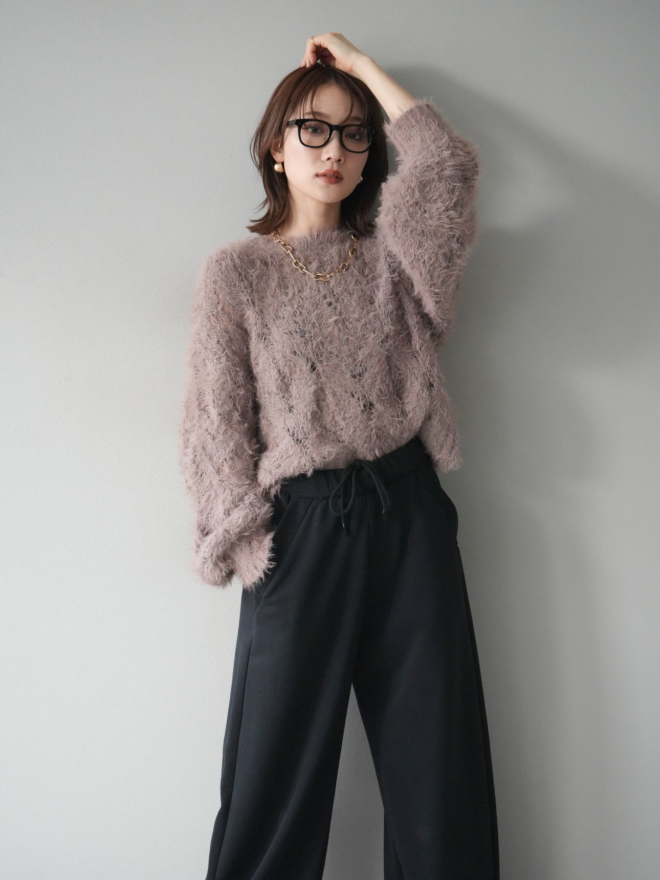 [予約]モール×フェザー透かし編みニットプルオーバーに関連する商品を探す↓
