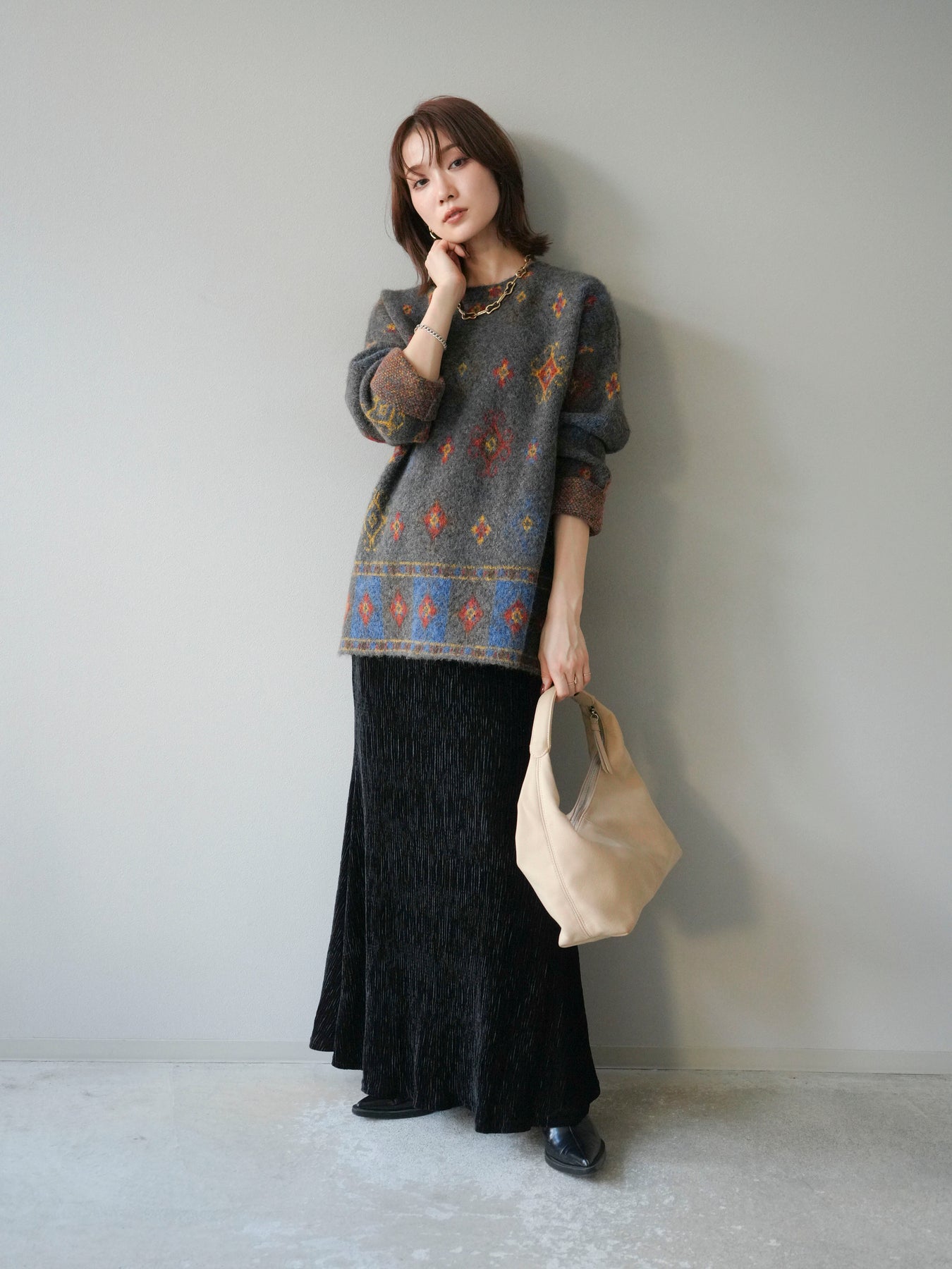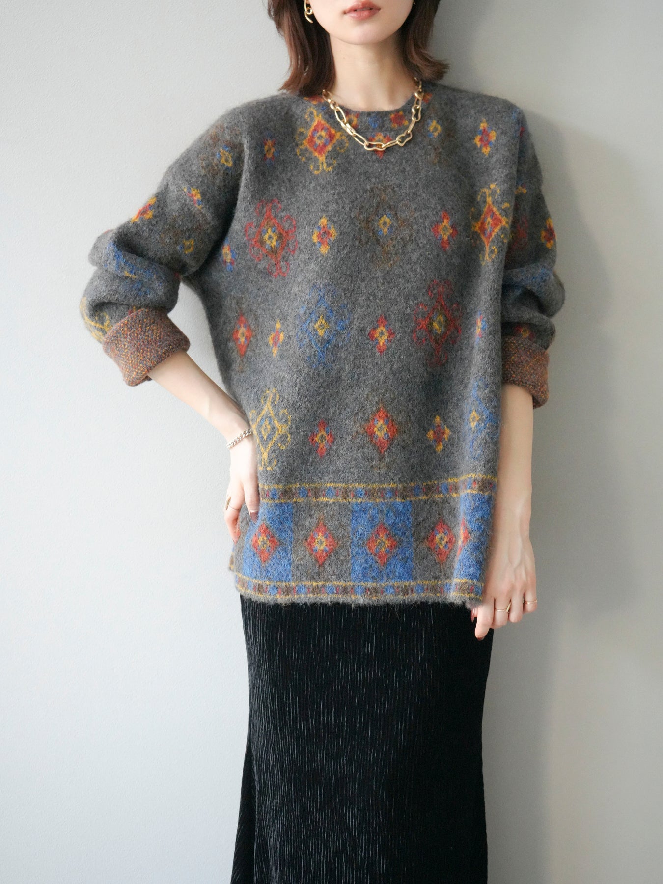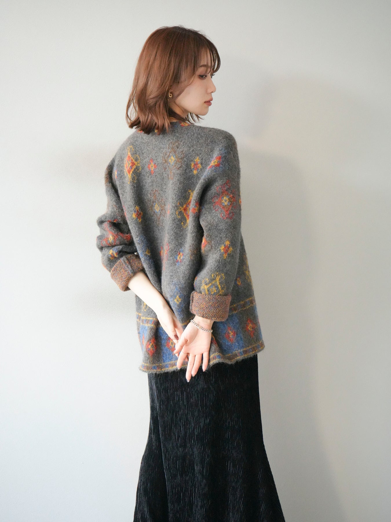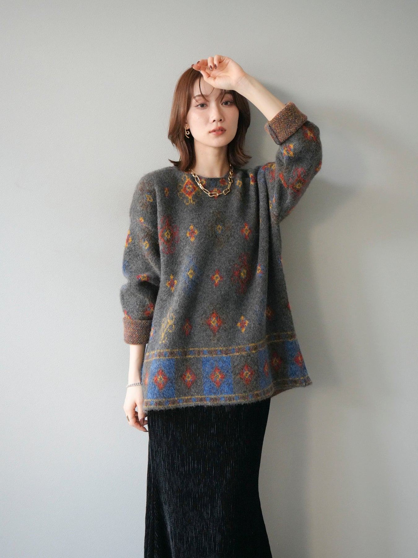[予約]ヴィンテージ柄オーバーニットプルオーバー/チャコール