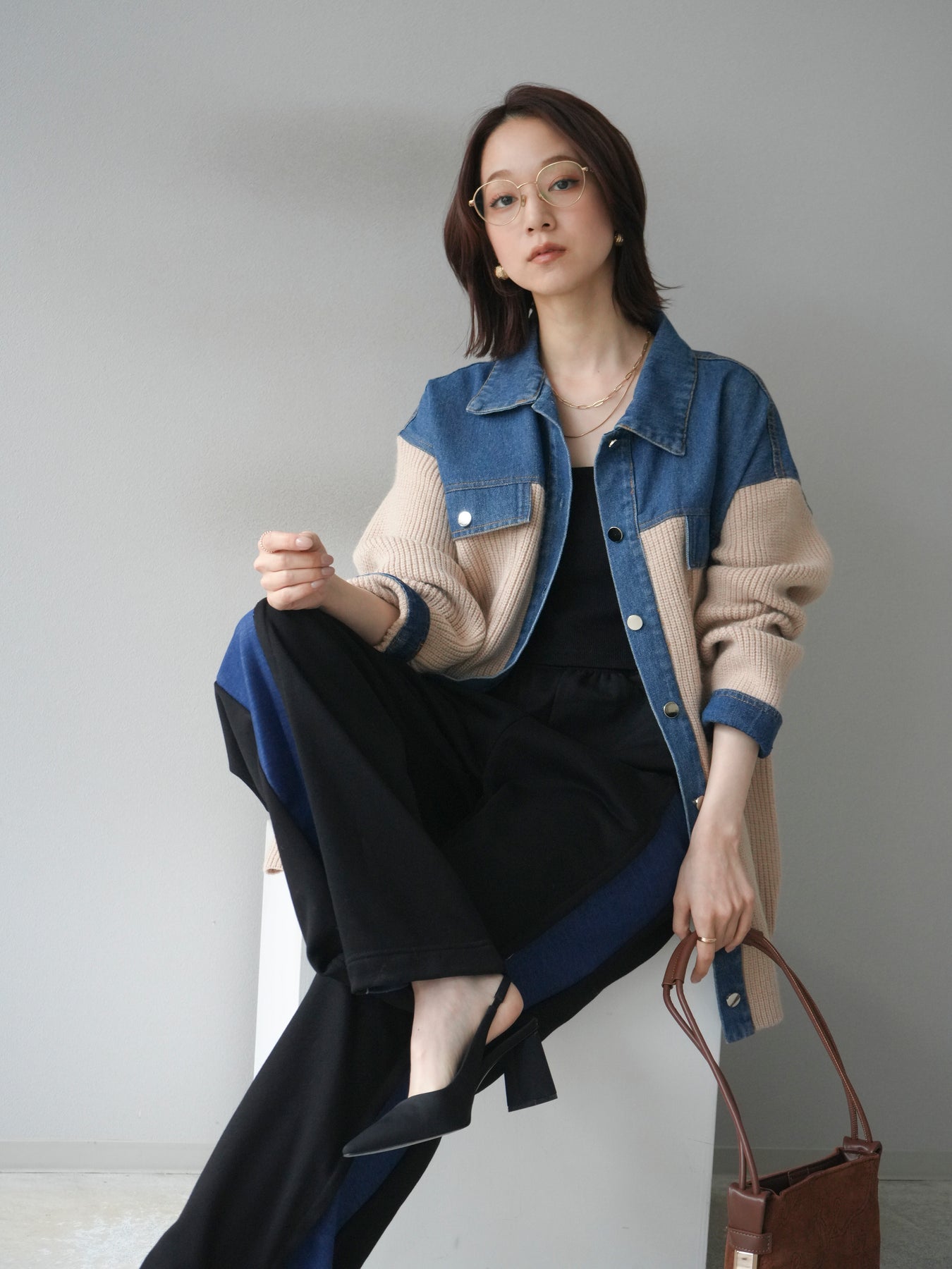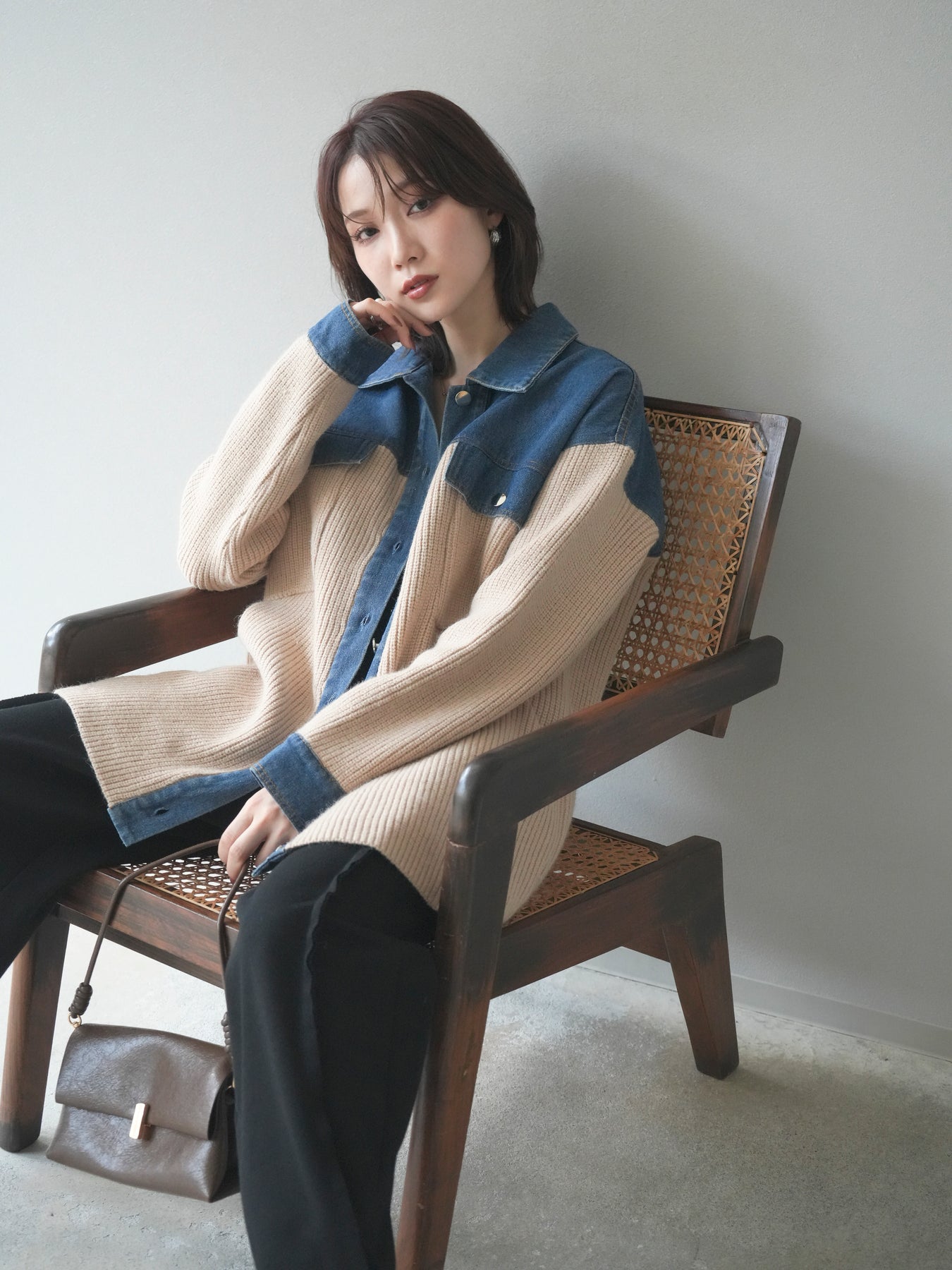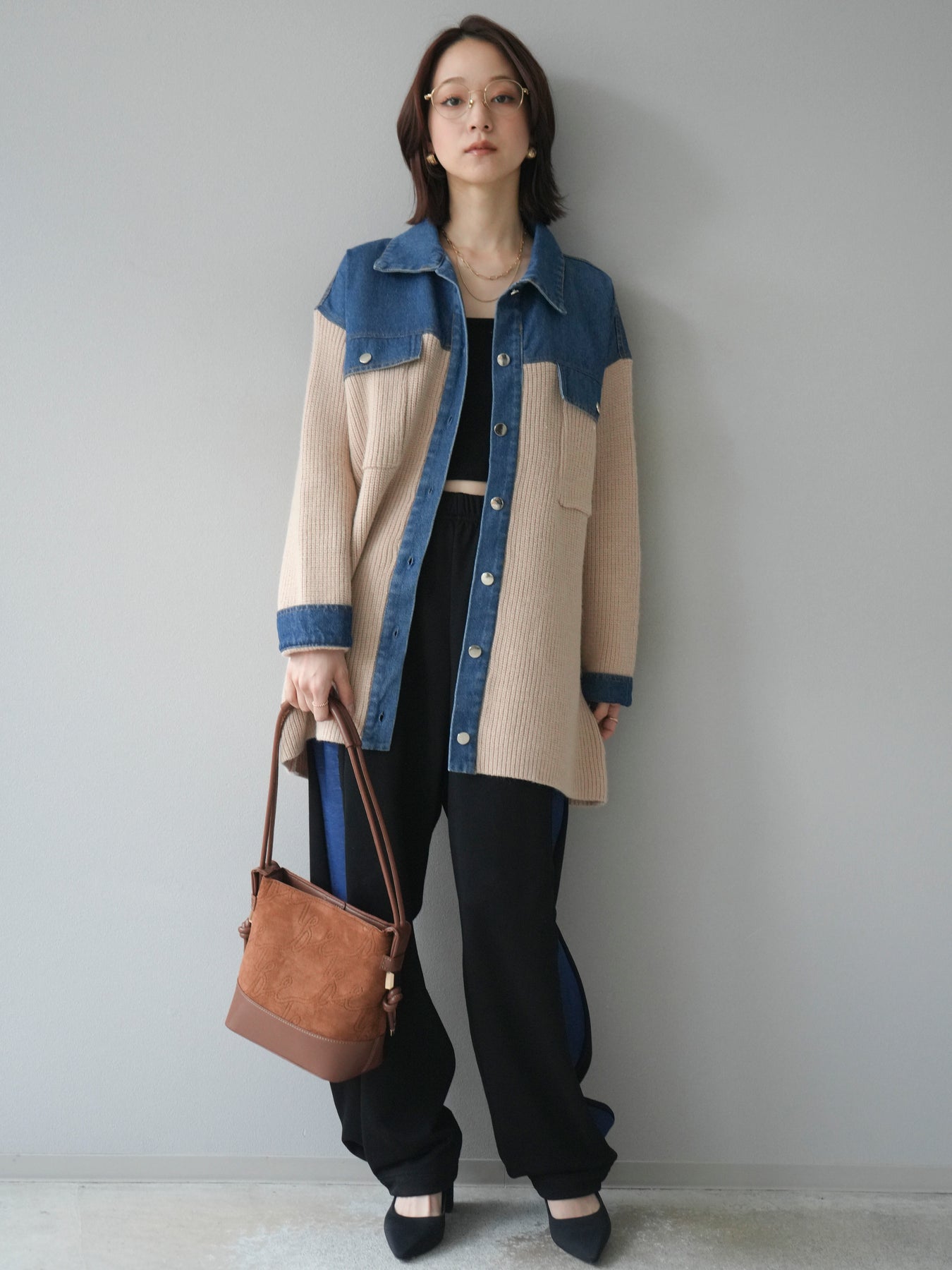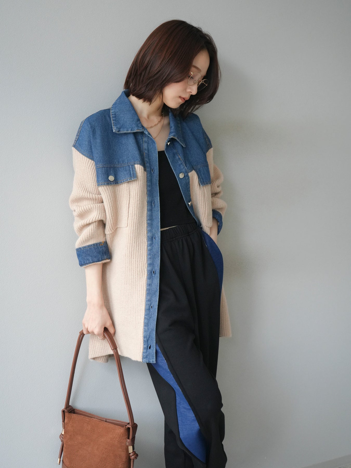 デニムとニットを組み合わせた異素材デザインが目を惹く襟付きシャツジャケット。 デニムのカジュアルさとニットの柔らかさが絶妙にマッチし、抜け感のあるスタイリングを演出します。 ゆったりとしたシルエットで重ね着もしやすく、季節の変わり目のライトアウターとしても活躍。 襟元やカフス部分のデニム切り替えがアクセントとなり、一枚でトレンド感のある印象に仕上がります。 パンツにもスカートにも合わせやすく、デイリーに取り入れやすい万能アイテムです。 ※ボトムス、キャミソール(インナー)以外の商品は一律でインナーは付属していません。