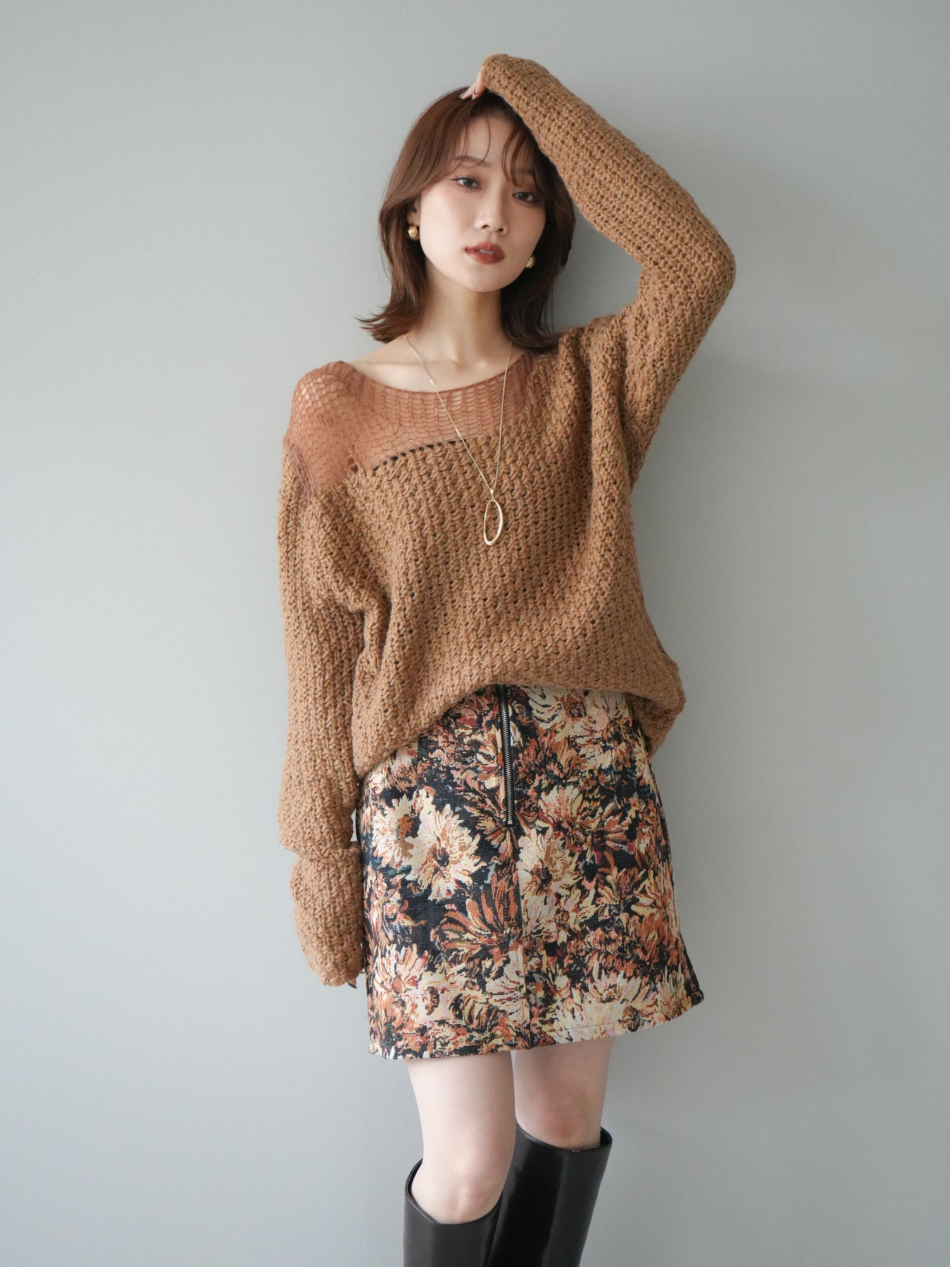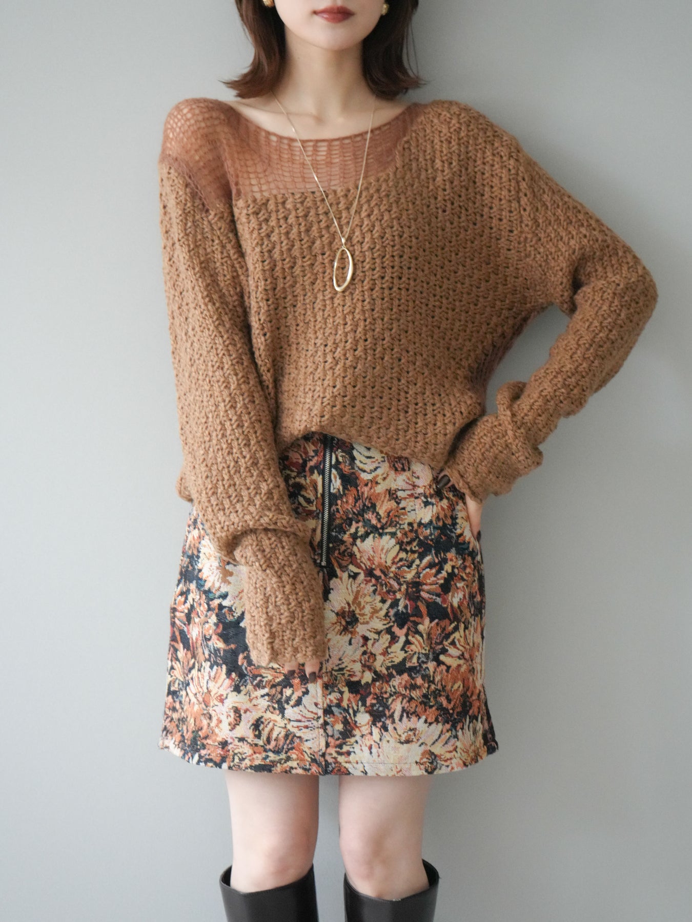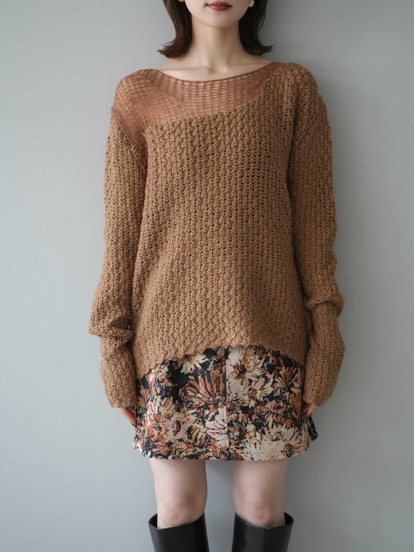 [予約]ダメージデザインニットプルオーバー/camel
