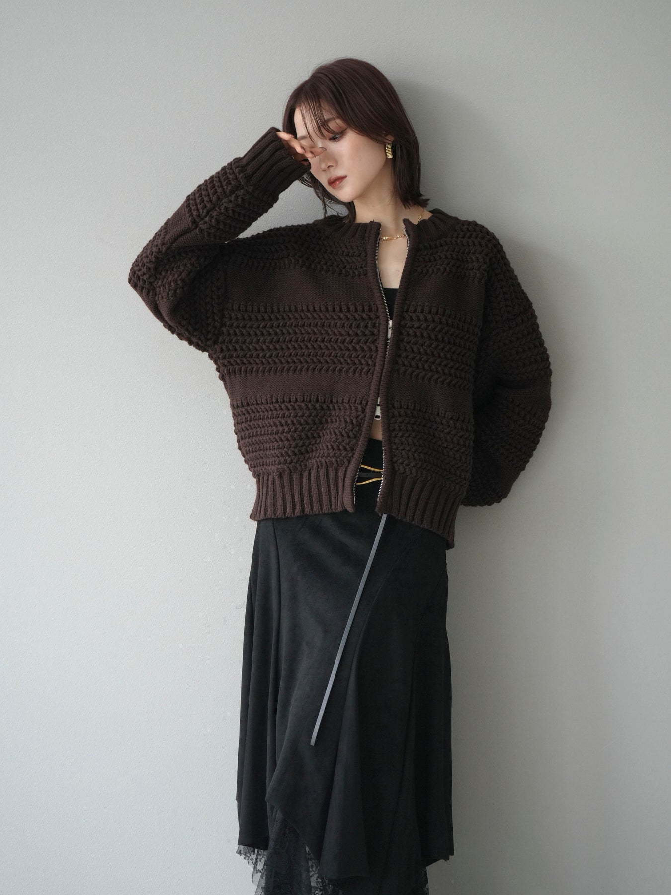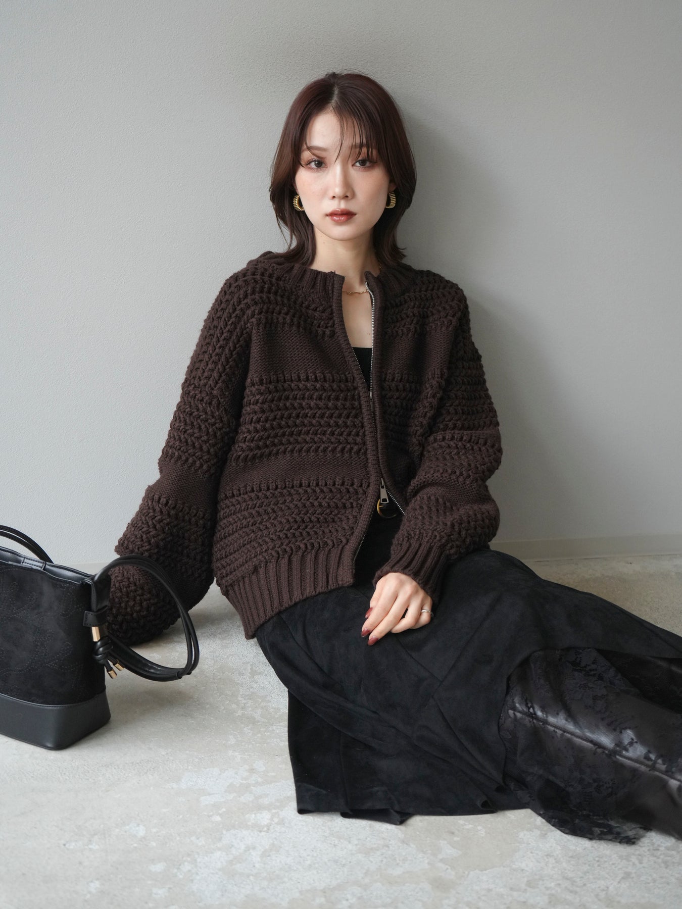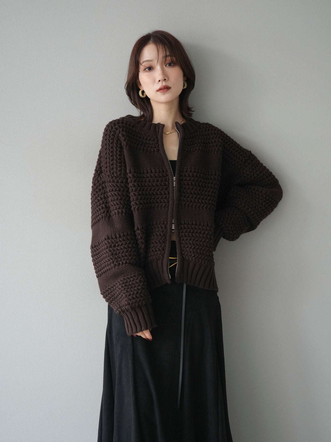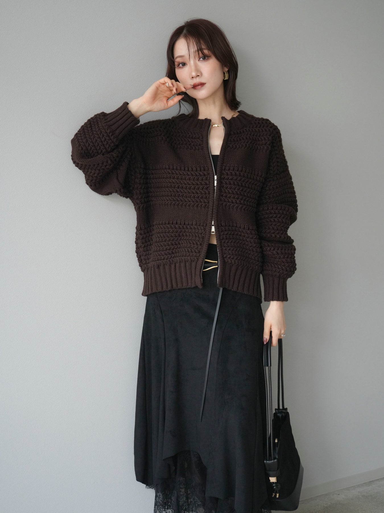 [予約]ケーブル編みZIPニットカーディガン/brown